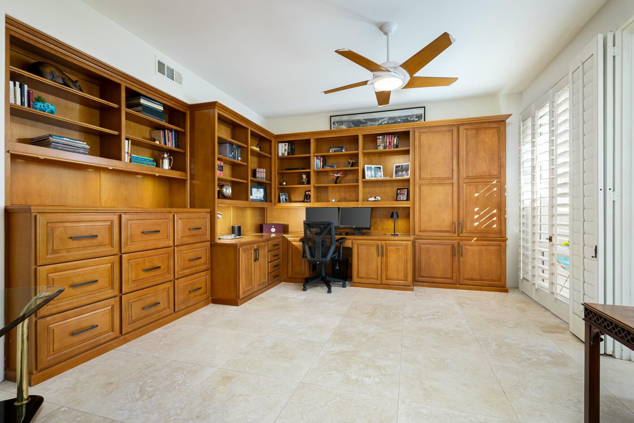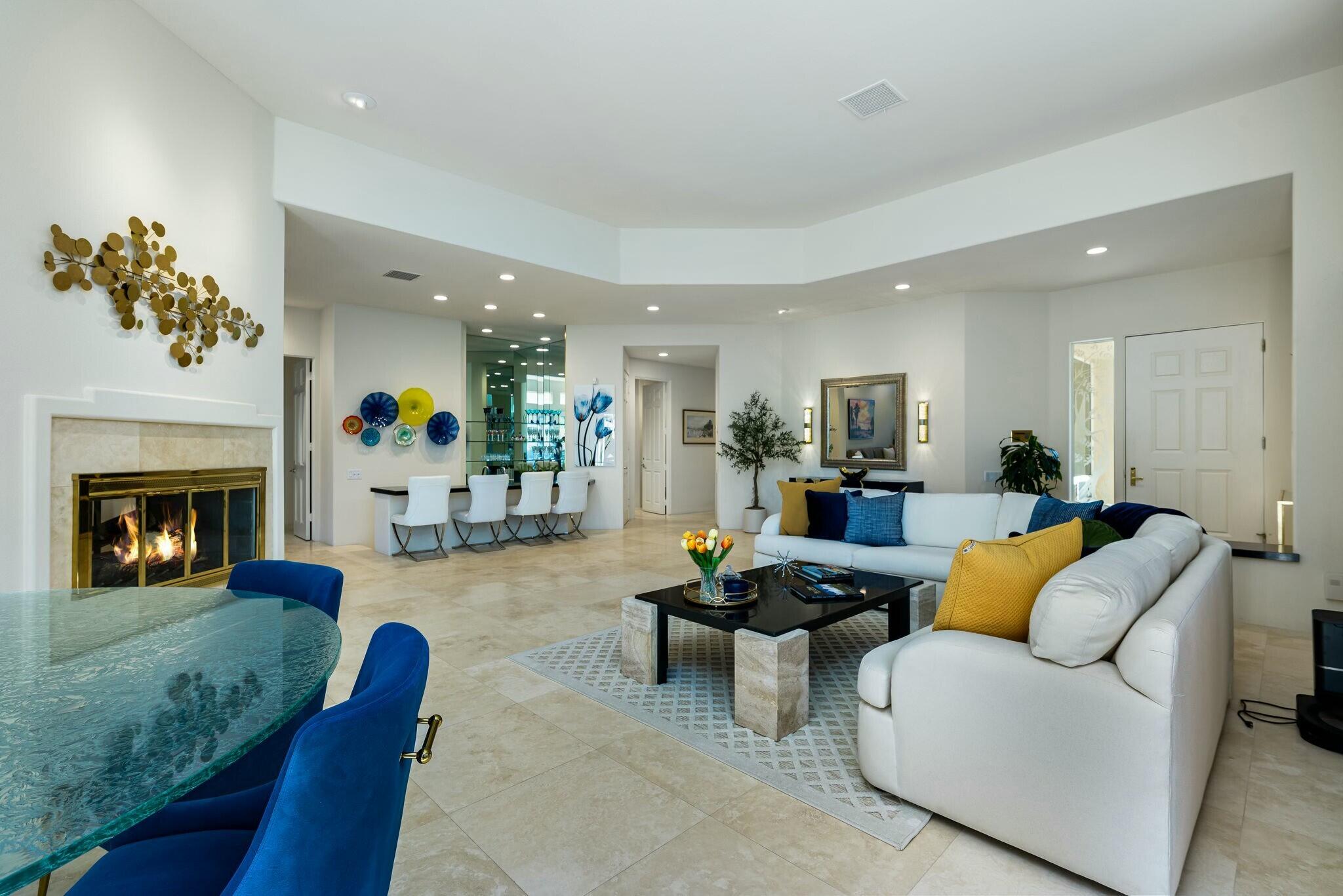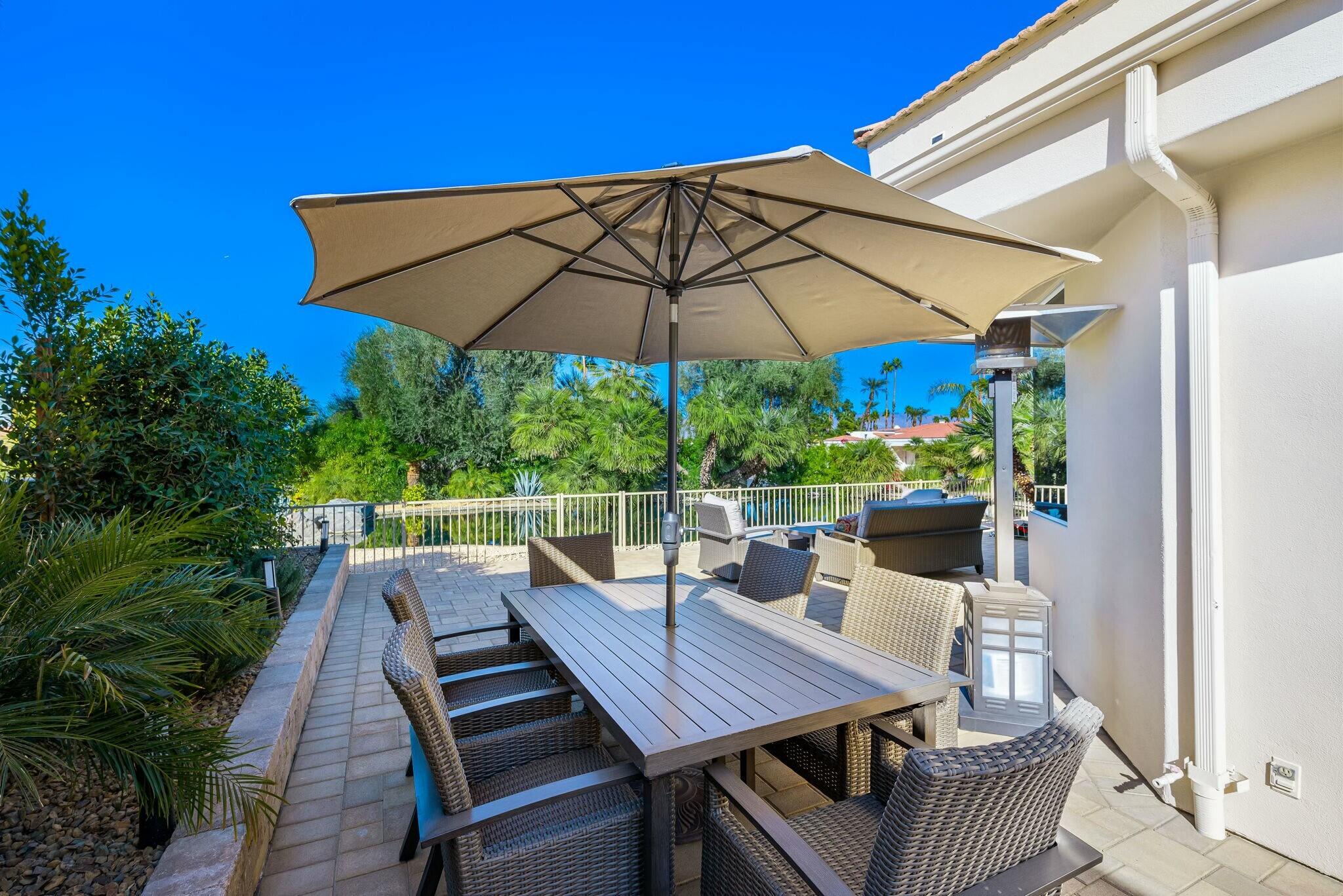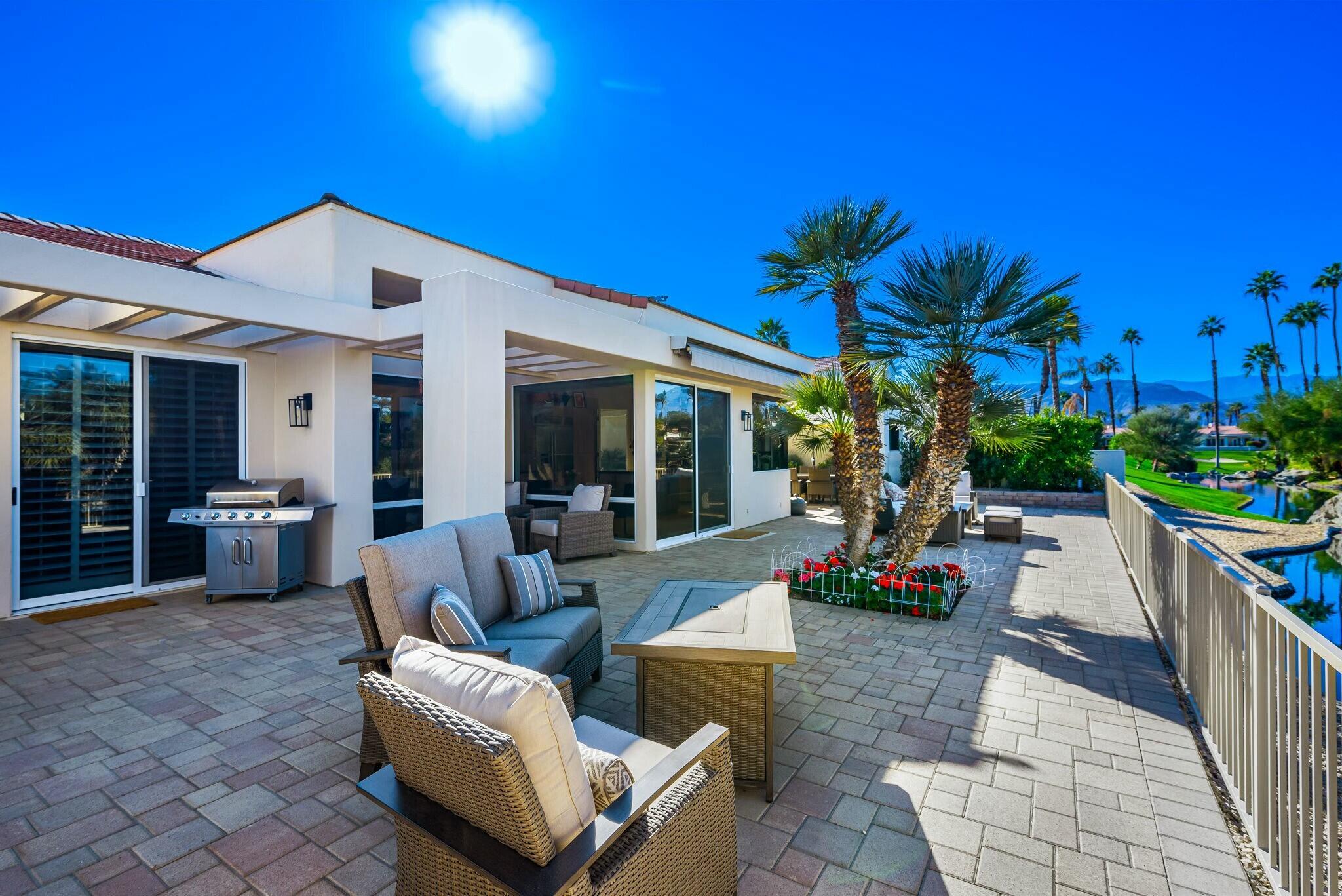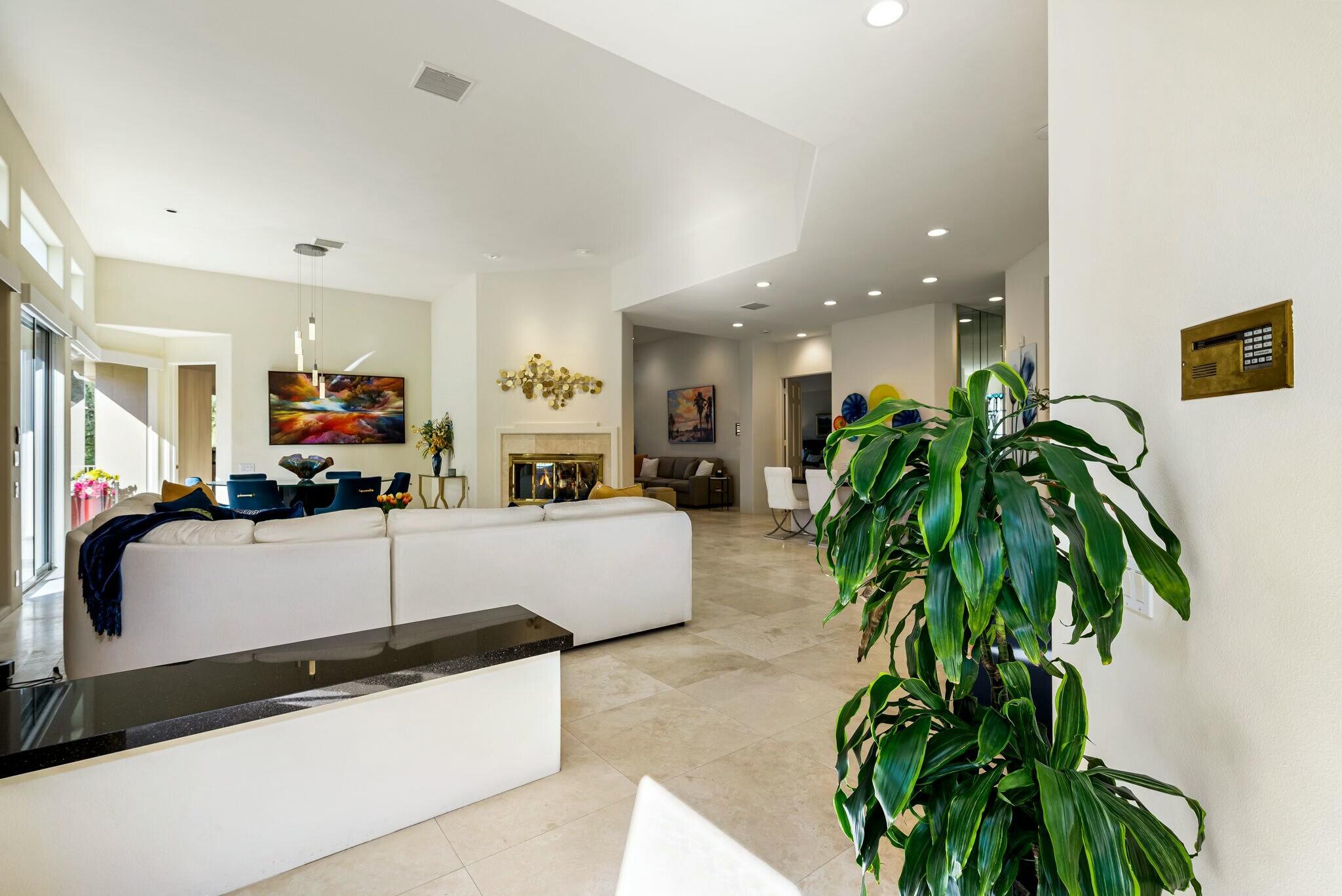 Lease Available for $4500 per month June til October. LEASED Nov- May 2026 This lovely Furnished 3 Bedroom Home is situated in a cul-de-sac within the prestigious community of Desert Horizons Country Club. With only one neighboring home, the peaceful surroundings enhance the allure of this property. Upon entering, you are greeted by a private pavered Courtyard and a beautiful landscaped yard. This custom Doral floor plan has an Open-concept layout, enhanced by a striking double-sided fireplace, which is a focal point for both the Living Room and Family Room. The Family Room offers a large Flat Screen TV and Sofa. For those who work from home, the Office features custom built-in cabinets and a slider that leads out to a 3rd Patio area and large side yard. The Primary Suite boasts a King Bed, spa-style bath with dual vanities and a spacious walk-in closet. The comfortable 2nd Bedroom offers a Queen Bed with an en-suite bath and the versatile 3rd bedroom which serves as a Den has a Flat Screen TV, enhancing the home's functionality. Step outside to the patio with TV, where you will enjoy stunning evening sunsets overlooking the serene pond view, all while listening to the soothing sounds of a waterfall. In addition, there is an impressive 1500 sq ft of enclosed landscaped yard. Completing this exceptional home is a 2-car Garage w/ Golf Cart Garage. Community Pool & Spa are just steps away. Cleaning Service included every 2 weeks. Golf Cart Available with proof of insurance.Interested in this Listing?