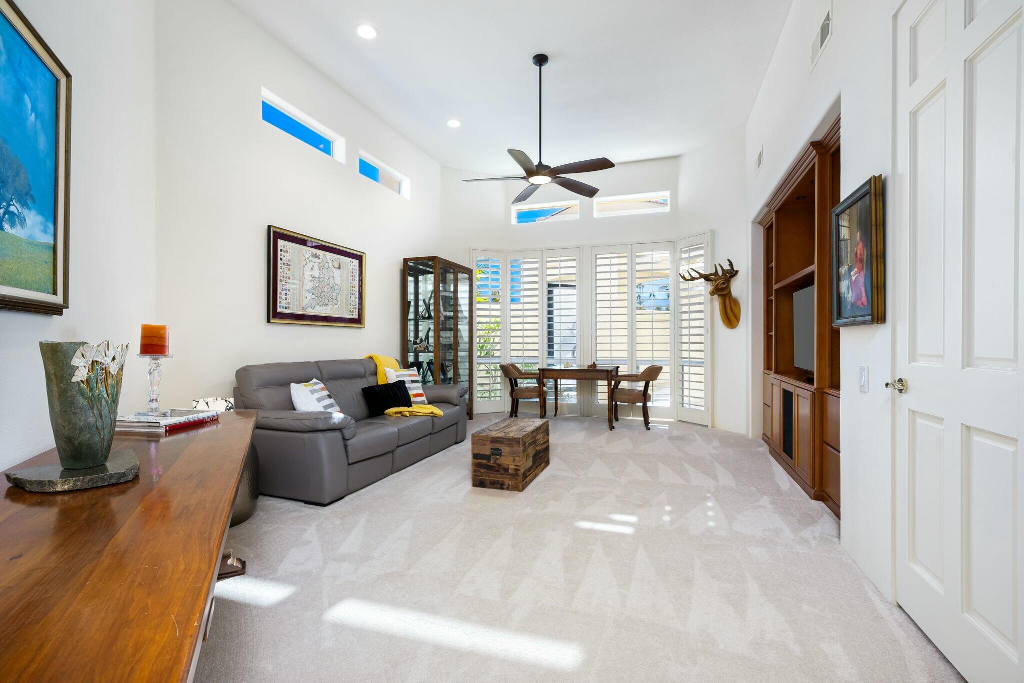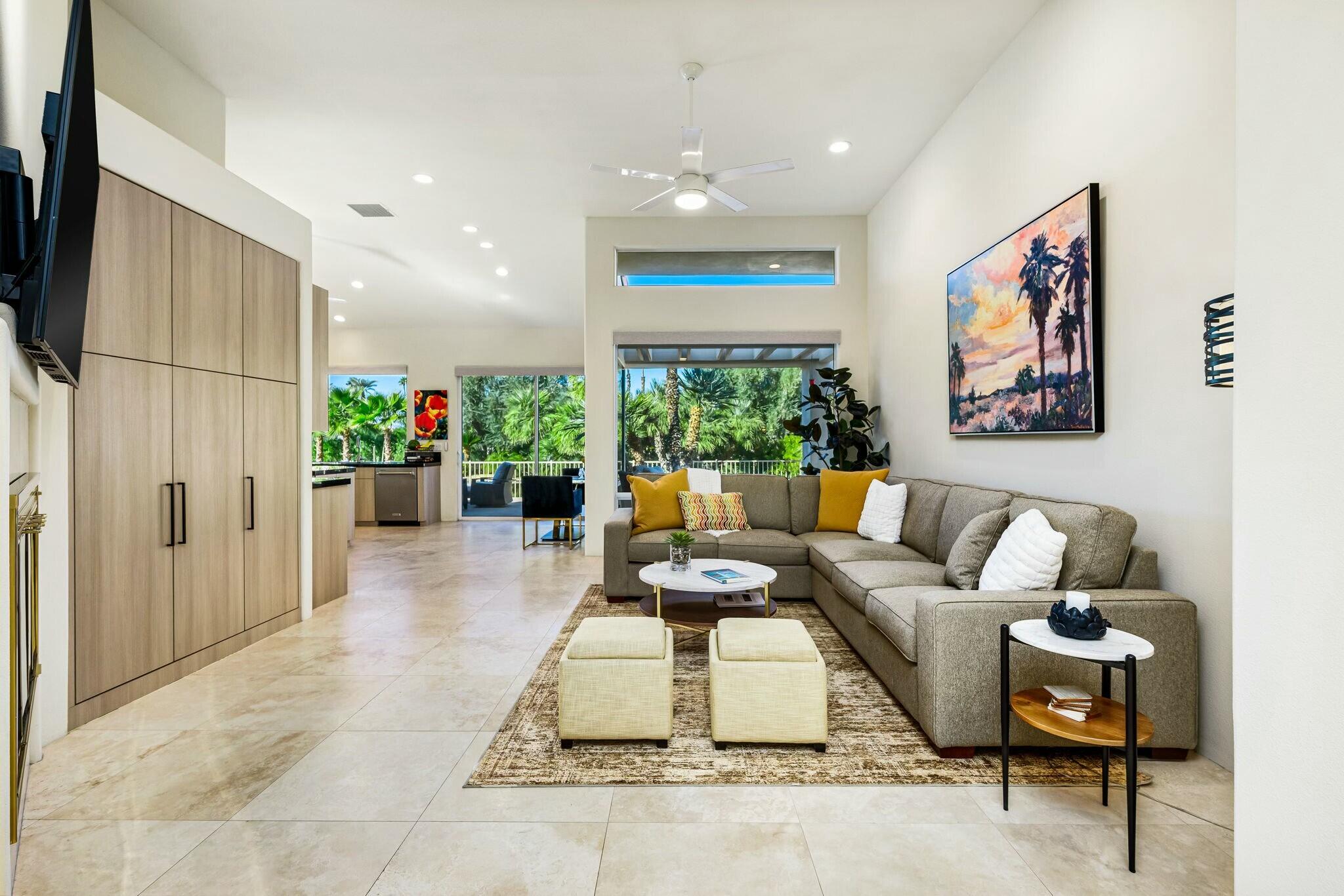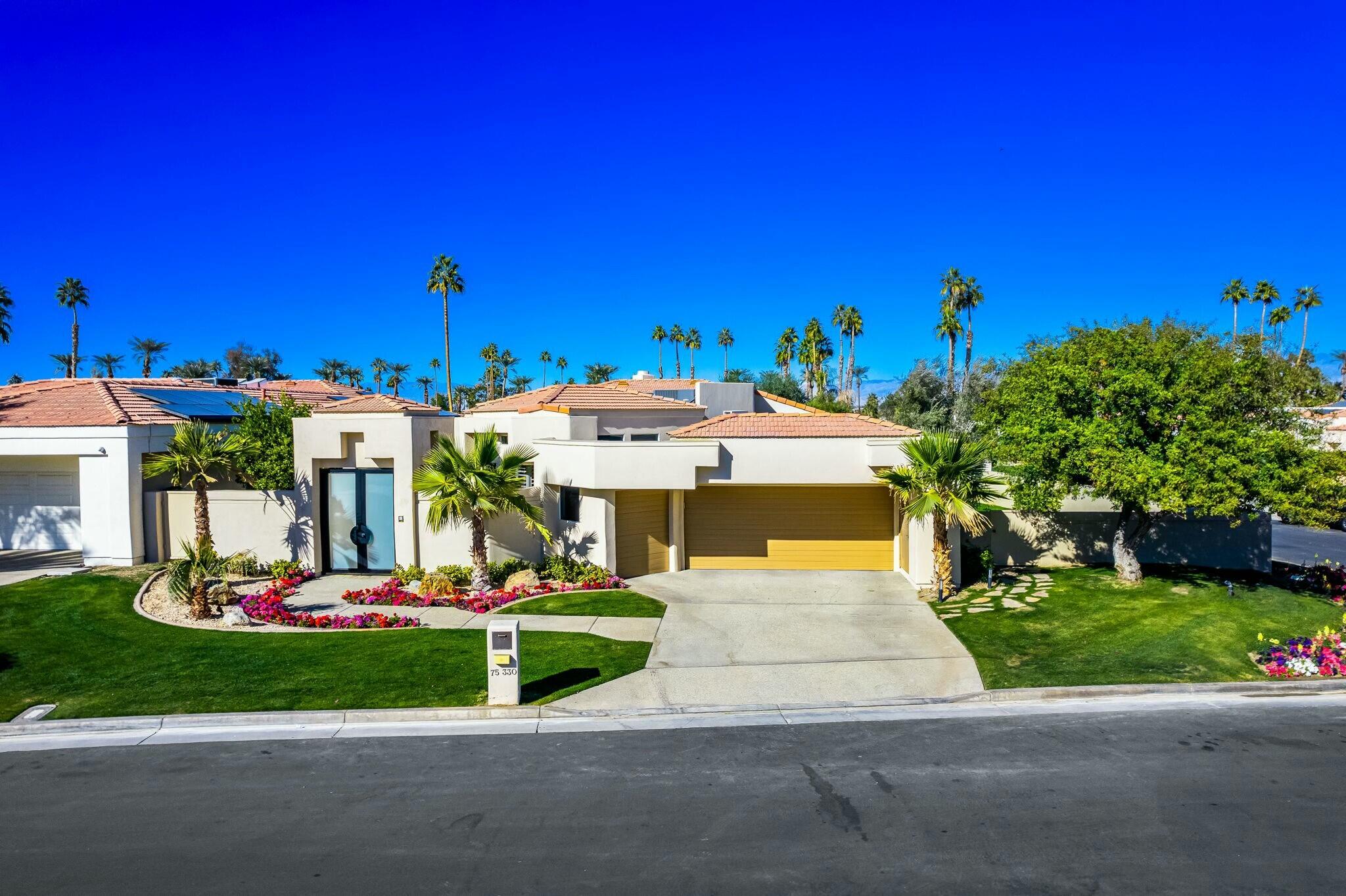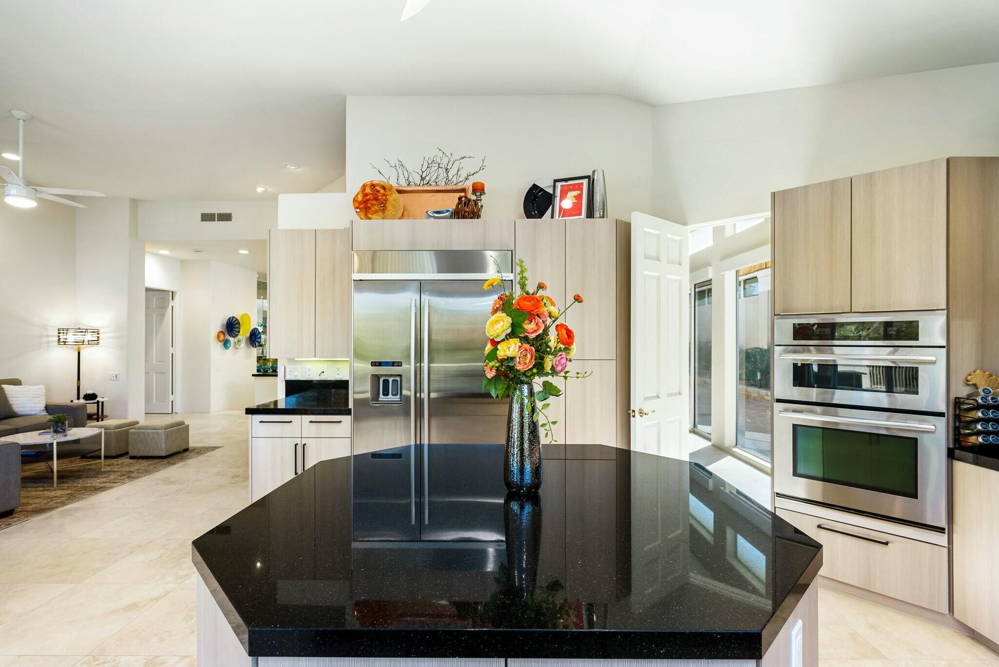Lease Available for $4500 per month June til October. LEASED Nov- May 2026 This lovely Furnished 3 Bedroom Home is situated in a cul-de-sac within the prestigious community of Desert Horizons Country Club. With only one neighboring home, the peaceful surroundings enhance the allure of this property. Upon entering, you are greeted by a private pavered Courtyard and a beautiful landscaped yard. This custom Doral floor plan has an Open-concept layout, enhanced by a striking double-sided fireplace, which is a focal point for both the Living Room and Family Room. The Family Room offers a large Flat Screen TV and Sofa. For those who work from home, the Office features custom built-in cabinets and a slider that leads out to a 3rd Patio area and large side yard. The Primary Suite boasts a King Bed, spa-style bath with dual vanities and a spacious walk-in closet. The comfortable 2nd Bedroom offers a Queen Bed with an en-suite bath and the versatile 3rd bedroom which serves as a Den has a Flat Screen TV, enhancing the home's functionality. Step outside to the patio with TV, where you will enjoy stunning evening sunsets overlooking the serene pond view, all while listening to the soothing sounds of a waterfall. In addition, there is an impressive 1500 sq ft of enclosed landscaped yard. Completing this exceptional home is a 2-car Garage w/ Golf Cart Garage. Community Pool & Spa are just steps away. Cleaning Service included every 2 weeks. Golf Cart Available with proof of insurance.Interested in this Listing?