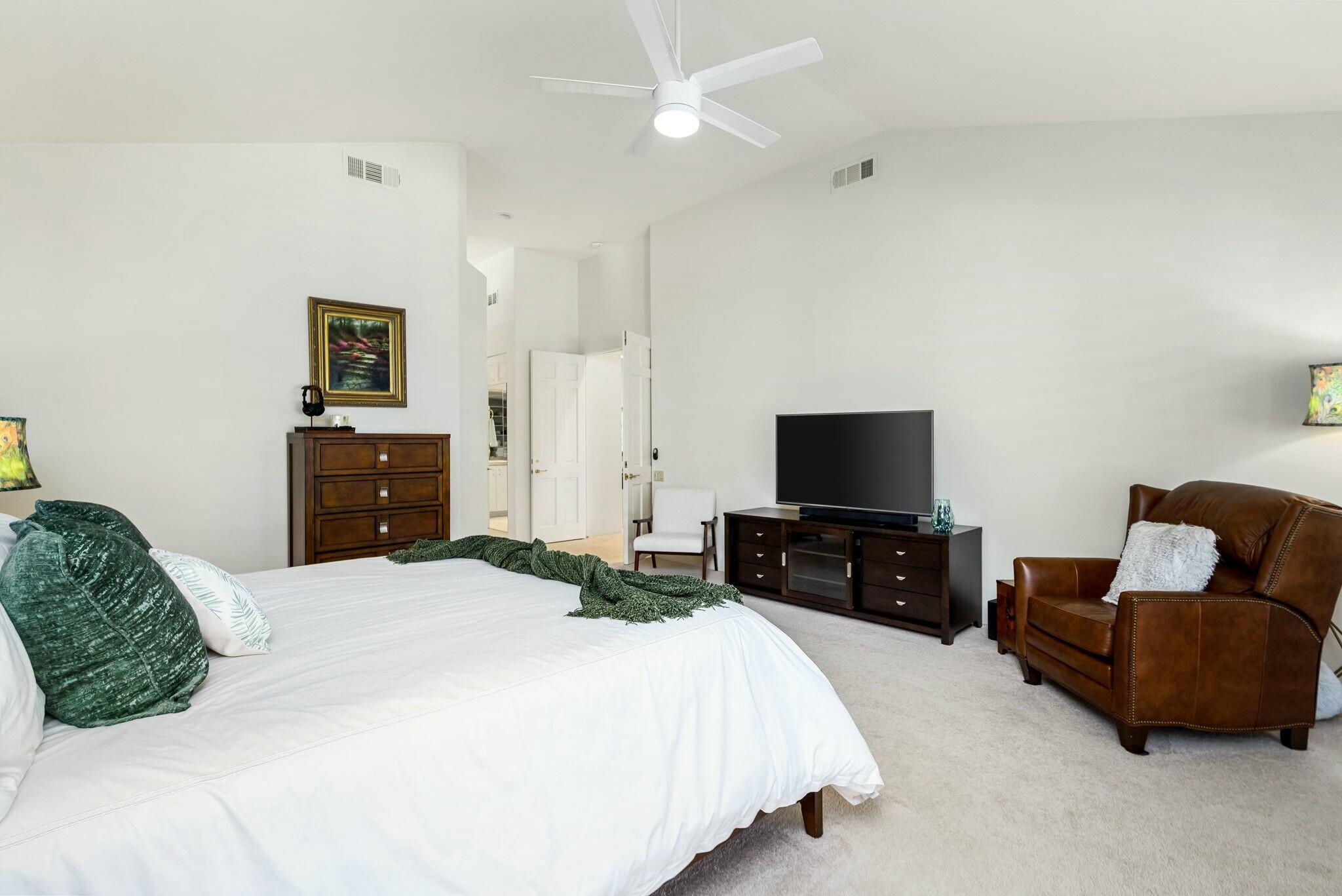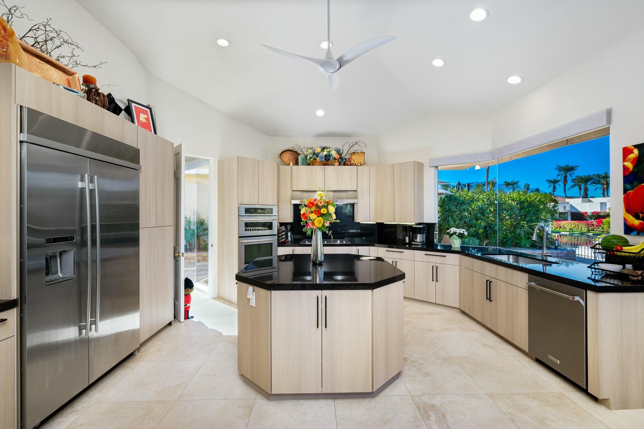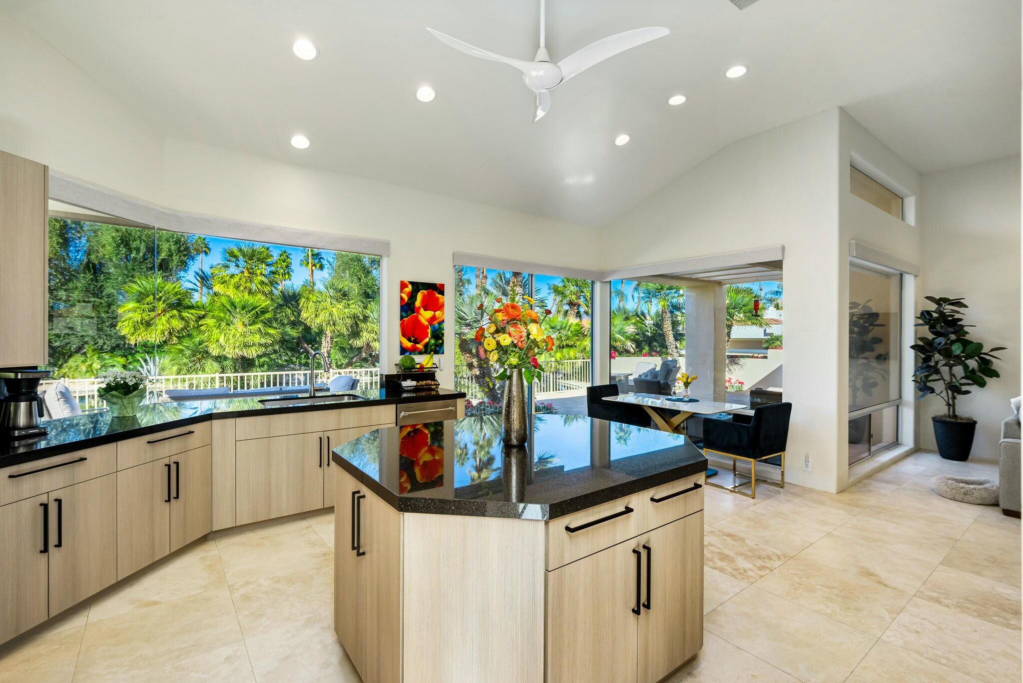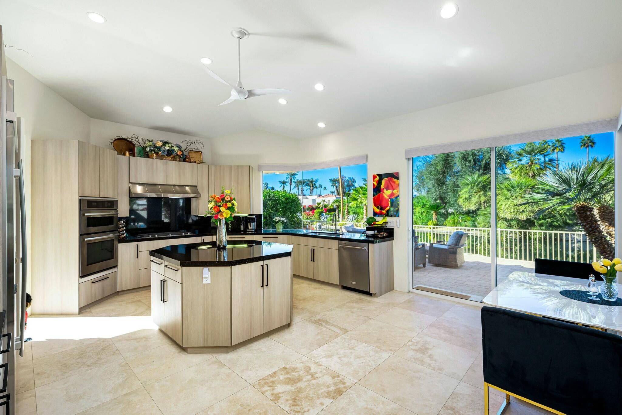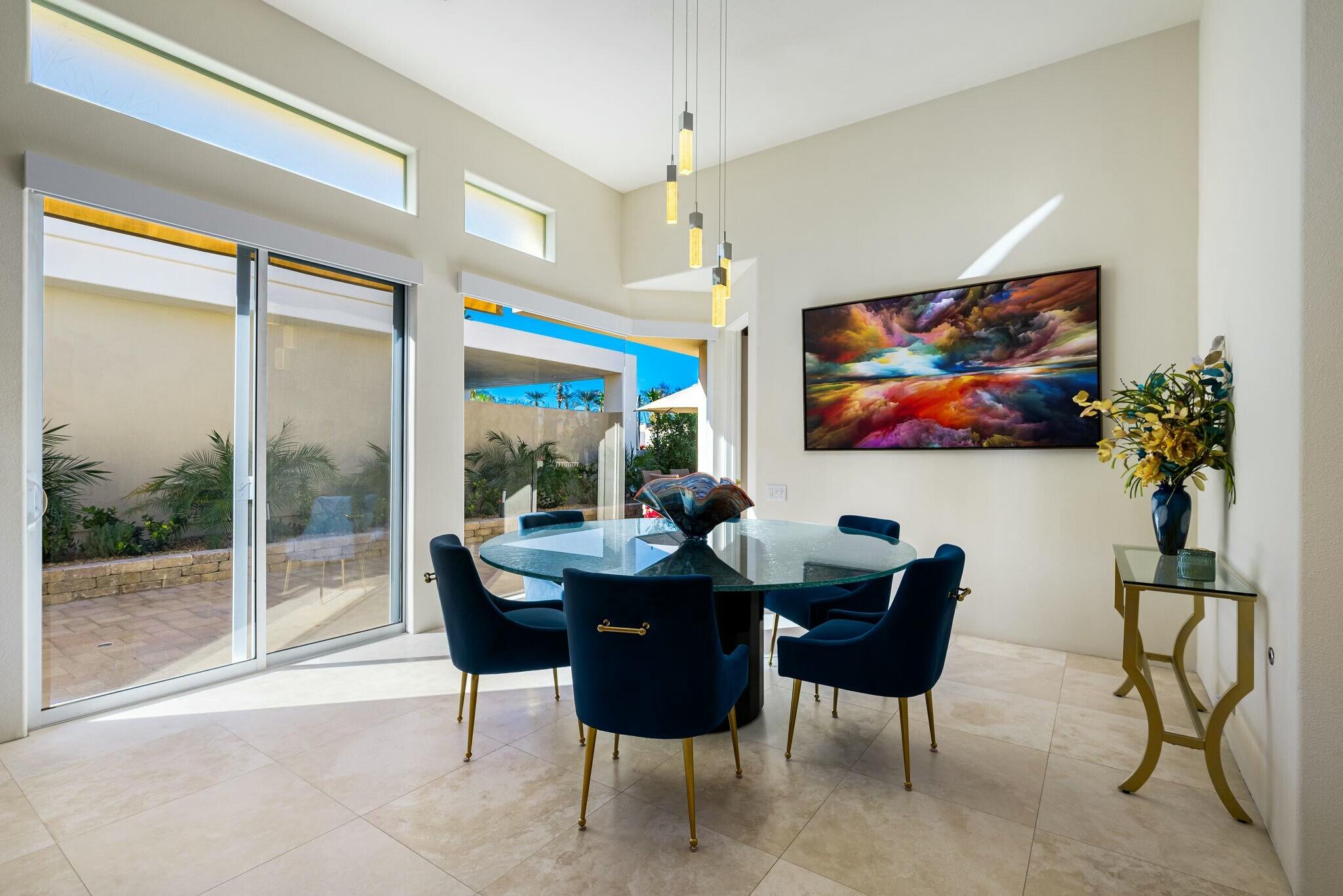 Lease Available for $4500 per month June til October. LEASED Nov- May 2026 This lovely Furnished 3 Bedroom Home is situated in a cul-de-sac within the prestigious community of Desert Horizons Country Club. With only one neighboring home, the peaceful surroundings enhance the allure of this property. Upon entering, you are greeted by a private pavered Courtyard and a beautiful landscaped yard. This custom Doral floor plan has an Open-concept layout, enhanced by a striking double-sided fireplace, which is a focal point for both the Living Room and Family Room. The Family Room offers a large Flat Screen TV and Sofa. For those who work from home, the Office features custom built-in cabinets and a slider that leads out to a 3rd Patio area and large side yard. The Primary Suite boasts a King Bed, spa-style bath with dual vanities and a spacious walk-in closet. The comfortable 2nd Bedroom offers a Queen Bed with an en-suite bath and the versatile 3rd bedroom which serves as a Den has a Flat Screen TV, enhancing the home's functionality. Step outside to the patio with TV, where you will enjoy stunning evening sunsets overlooking the serene pond view, all while listening to the soothing sounds of a waterfall. In addition, there is an impressive 1500 sq ft of enclosed landscaped yard. Completing this exceptional home is a 2-car Garage w/ Golf Cart Garage. Community Pool & Spa are just steps away. Cleaning Service included every 2 weeks. Golf Cart Available with proof of insurance.Interested in this Listing?
