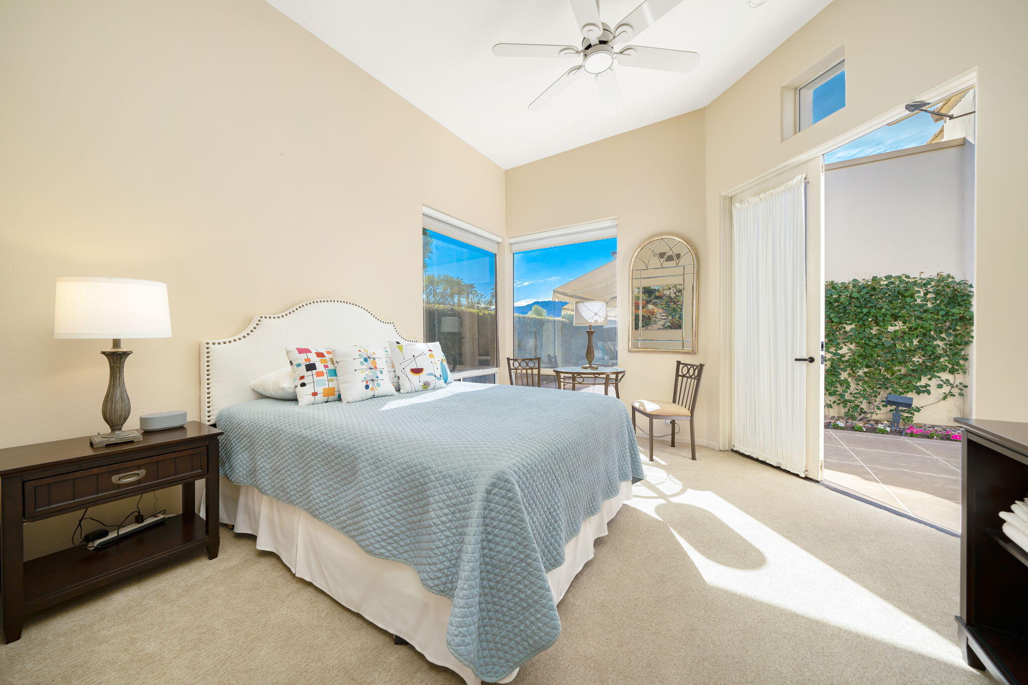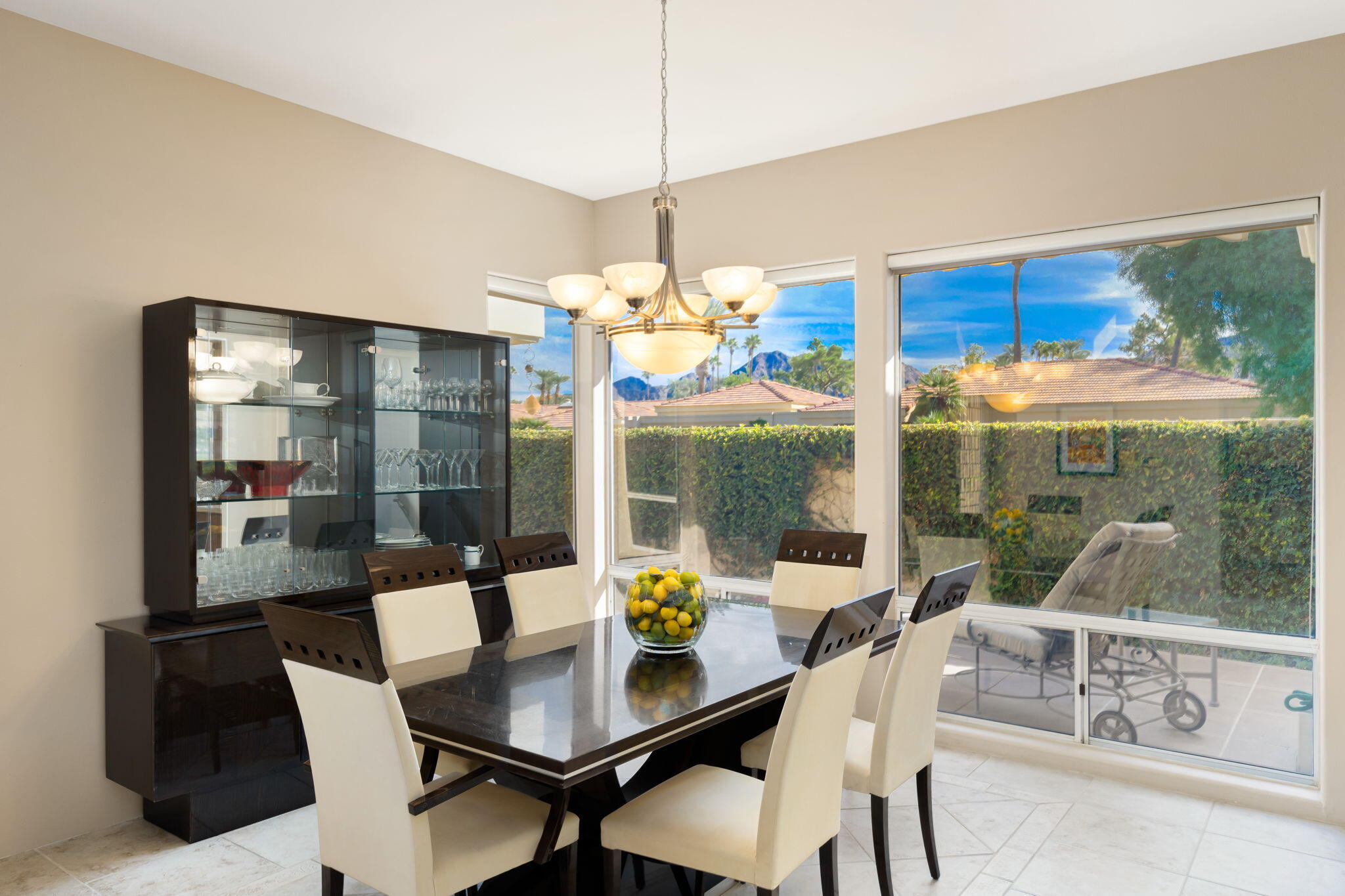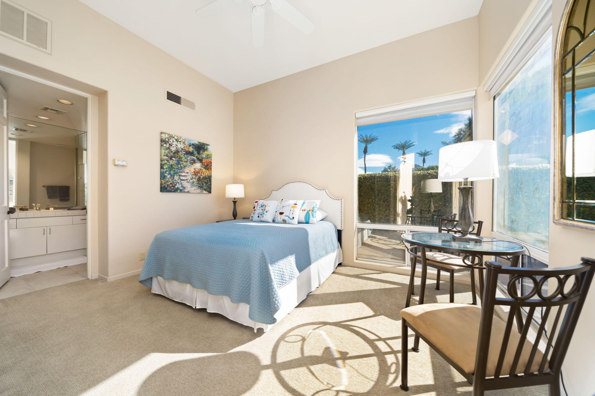 Leased through 2026. Spectacular Mountain, Fairway and Lake Views are yours from this former Turnberry model home. As you enter the private courtyard you're welcomed into this home overlooking the Lake and down the 17th Fairway to the Mountain Vistas. 3 Bedrooms (one is a detached casita), 3 Bathrooms. The Chefs Kitchen has custom cabinets, Granite countertops and newer appliances. There is an adjacent breakfast Nook which opens to the family room. Family Room has a large flat Screen TV. Spacious Master Bedroom Suite with King Bed has a marble shower, spa tub and double vanity. 2nd Guest Room has a Queen bed and adjacent full bath. Casita is the 3rd Guest Room with Queen Bed. Enjoy the Sunsets from the Patio with your own private Spa. Multiple awnings. This corner location has South Views from the Kitchen, Dining Room & breakfast Nook~ all at this premiere Indian Wells Location.Interested in this Listing?