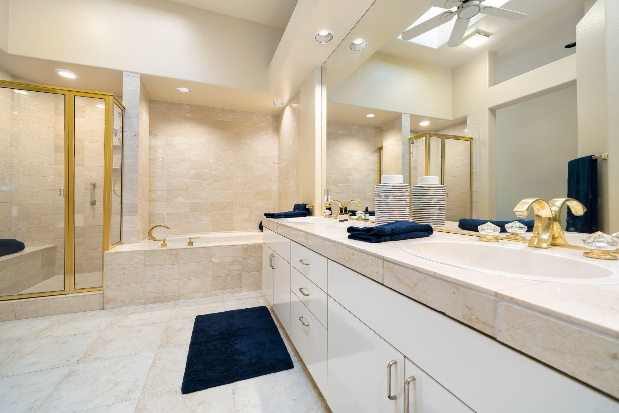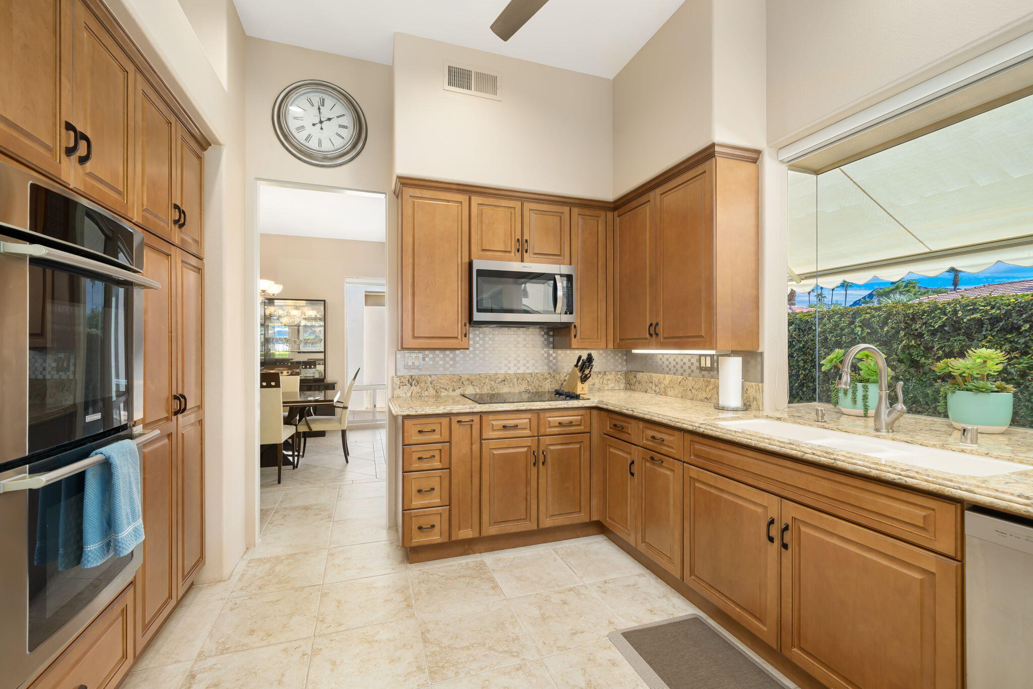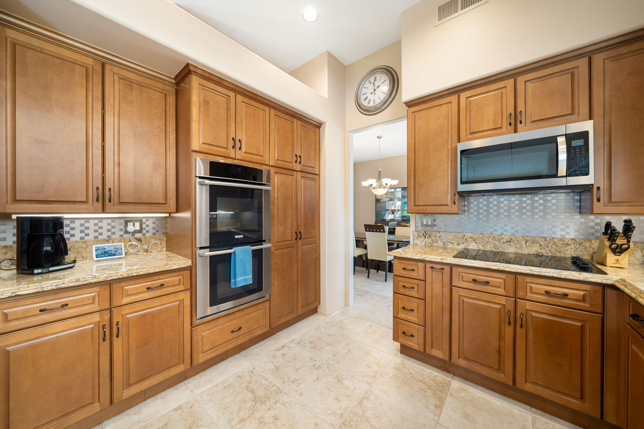 Leased through 2026. Spectacular Mountain, Fairway and Lake Views are yours from this former Turnberry model home. As you enter the private courtyard you're welcomed into this home overlooking the Lake and down the 17th Fairway to the Mountain Vistas. 3 Bedrooms (one is a detached casita), 3 Bathrooms. The Chefs Kitchen has custom cabinets, Granite countertops and newer appliances. There is an adjacent breakfast Nook which opens to the family room. Family Room has a large flat Screen TV. Spacious Master Bedroom Suite with King Bed has a marble shower, spa tub and double vanity. 2nd Guest Room has a Queen bed and adjacent full bath. Casita is the 3rd Guest Room with Queen Bed. Enjoy the Sunsets from the Patio with your own private Spa. Multiple awnings. This corner location has South Views from the Kitchen, Dining Room & breakfast Nook~ all at this premiere Indian Wells Location.Interested in this Listing?