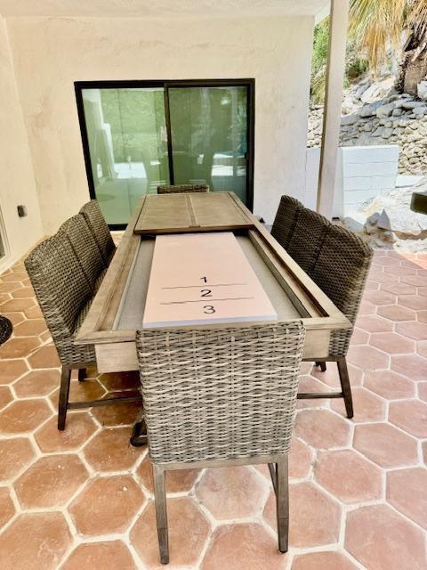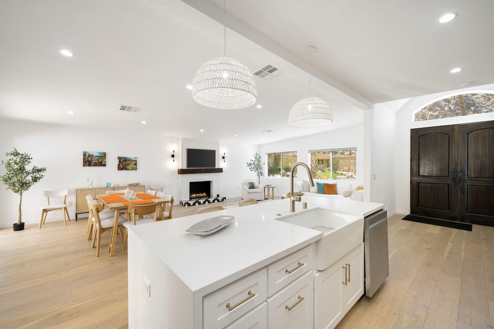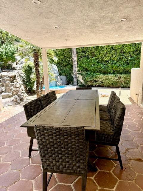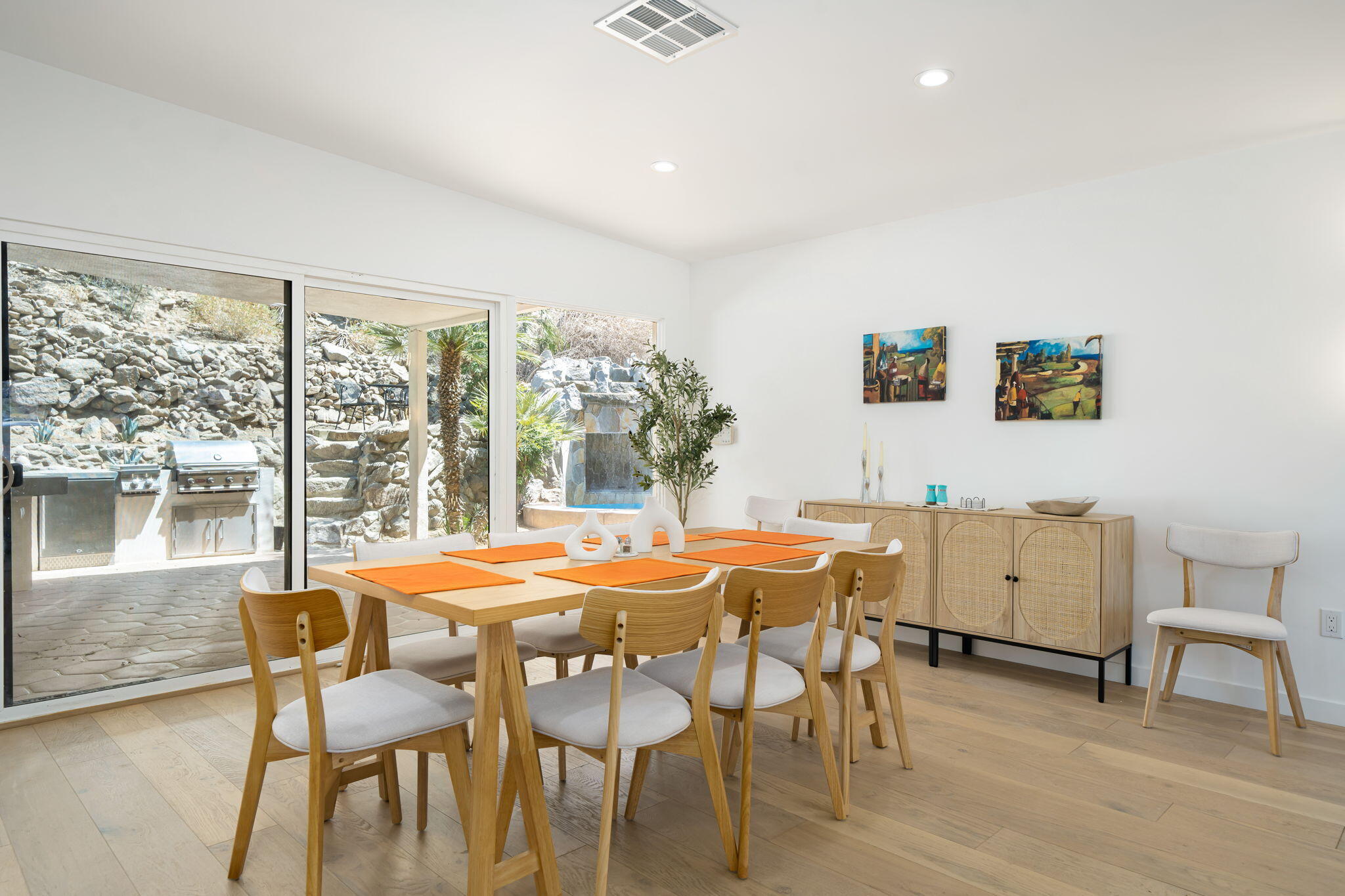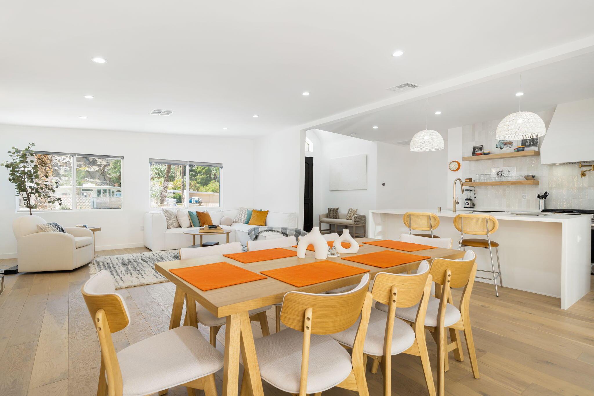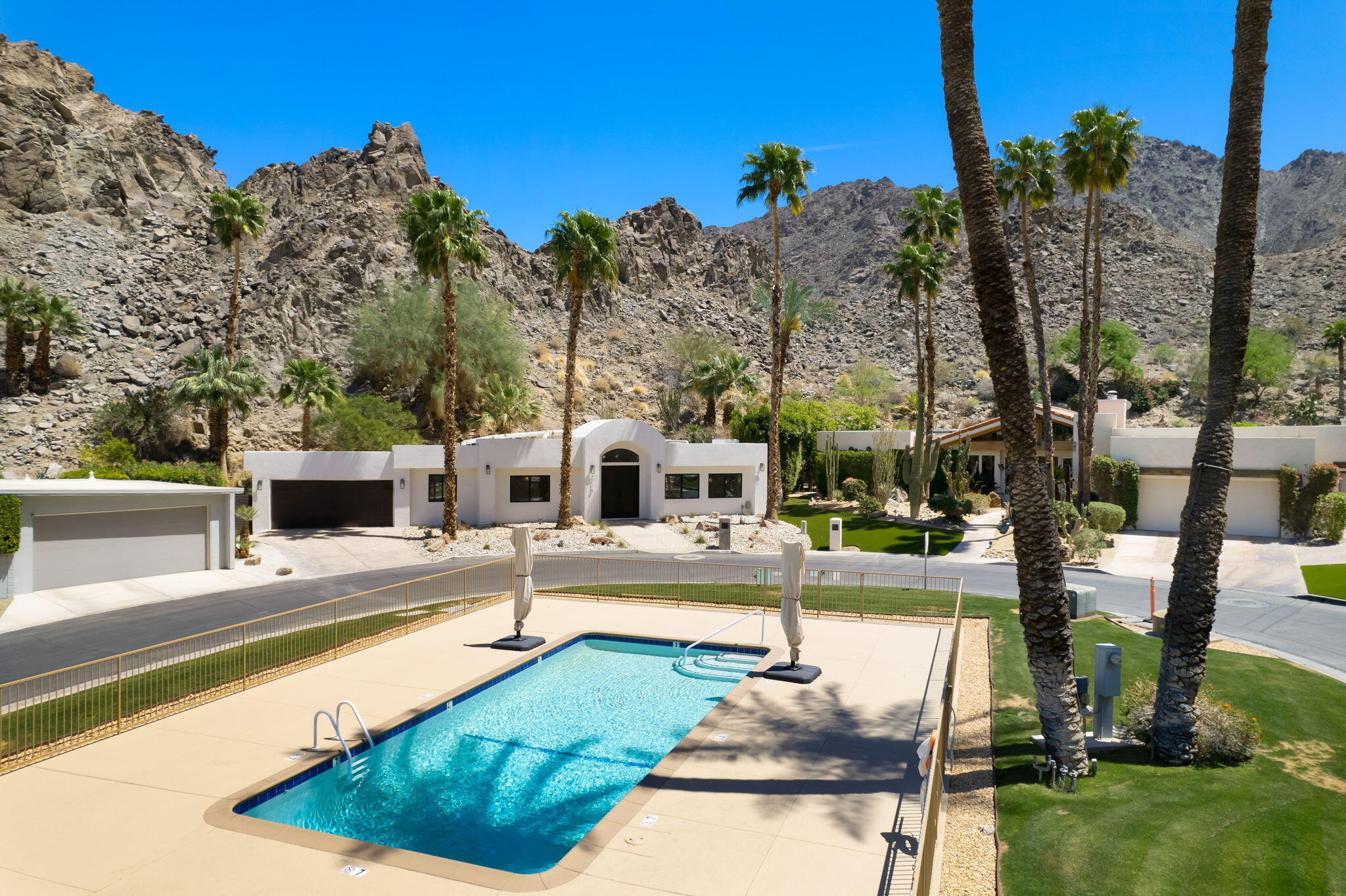 Leased for Feb, March & April 2025. Nestled in Indian Wells Country Club, this fully renovated 3 bedroom- 2 bath Mid-Century modern home combines modern conveniences with its original charm. The interior features beautiful white oak floors, an open fully-stocked Kitchen with Quartz counters and Stainless Steel Appliances, Large Island with 4 bar stools. A light and bright Dining area for seating 6 - 8 with a wall of windows overlooking the Patio. Spacious Living Room offers a wood mantel accentuating the charming smooth finished stucco Fireplace with Flat Screen TV. The Luxurious Primary Suite has a King Bed, Flat Screen TV, Desk and the bath offering dual vanities and large walk-in shower, there is a slider out to Patio & Spa area. Spacious Guest Rooms are beautifully appointed, one with Queen-size & the other Full-size. Escape to a serene oasis with this exceptional patio retreat. As the sun sets, gather around the built in BBQ, Frig and Dinner table for an intimate evening with friends and family, accommodating up to 8 guests with the table transforming into a large shuffleboard game adding an element of fun and excitement to your gatherings. Unwind in style by the private salt-water Spa and rainfall Shower. Just steps to the community Pool. Minutes to El Paseo for Shopping, Dining & short drive to world class Golf & the Paribas Tennis Gardens.