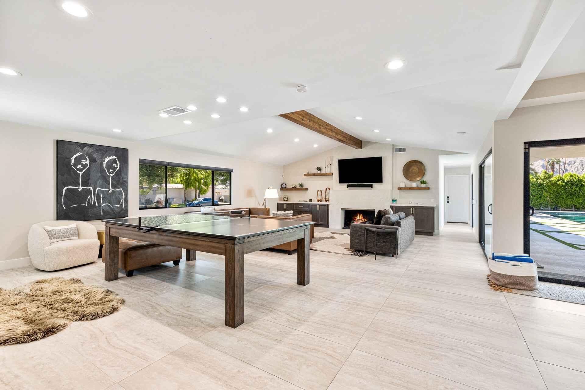 New co-ownership opportunity: Own one-eighth of this turnkey home, professionally managed by Pacaso. With vast spaces inside and out, this 4-bedroom, 4-bath Coachella Valley home is designed for spending quality time with family and friends. The living room sets the home's tone of relaxed sophistication. Contemporary furnishings make it easy to chat or binge watch a favorite show. Sliding glass doors connect to a shaded outdoor seating area. The spacious family room includes a pool table, a fireplace and plenty of couches for gaming or watching TV. The room opens to the gorgeous kitchen with a dramatic waterfall island, wood cabinets and high-end appliances, including a full-size beverage refrigerator. It's easy to grab a snack, serve guests in the elegant dining room or prepare a casual meal on the covered patio. The backyard patio also has loads of comfortable seating surrounding a fire table. A covered outdoor kitchen features a stainless steel gas grill and a ceramic charcoal cooker. This perfect palm-edged oasis offers a large pool and spa, with views of the mountains. The calm and spacious primary suite has a seating area that faces a gas fireplace and TV, and doors that open to the private yard. There's tons of storage in the roomy closet, and the bright en suite bathroom features a long double vanity, a relaxing soaking tub and a tiled shower. This one-level home has a Spanish-style tile roof and mature landscaping.Interested in this Listing?