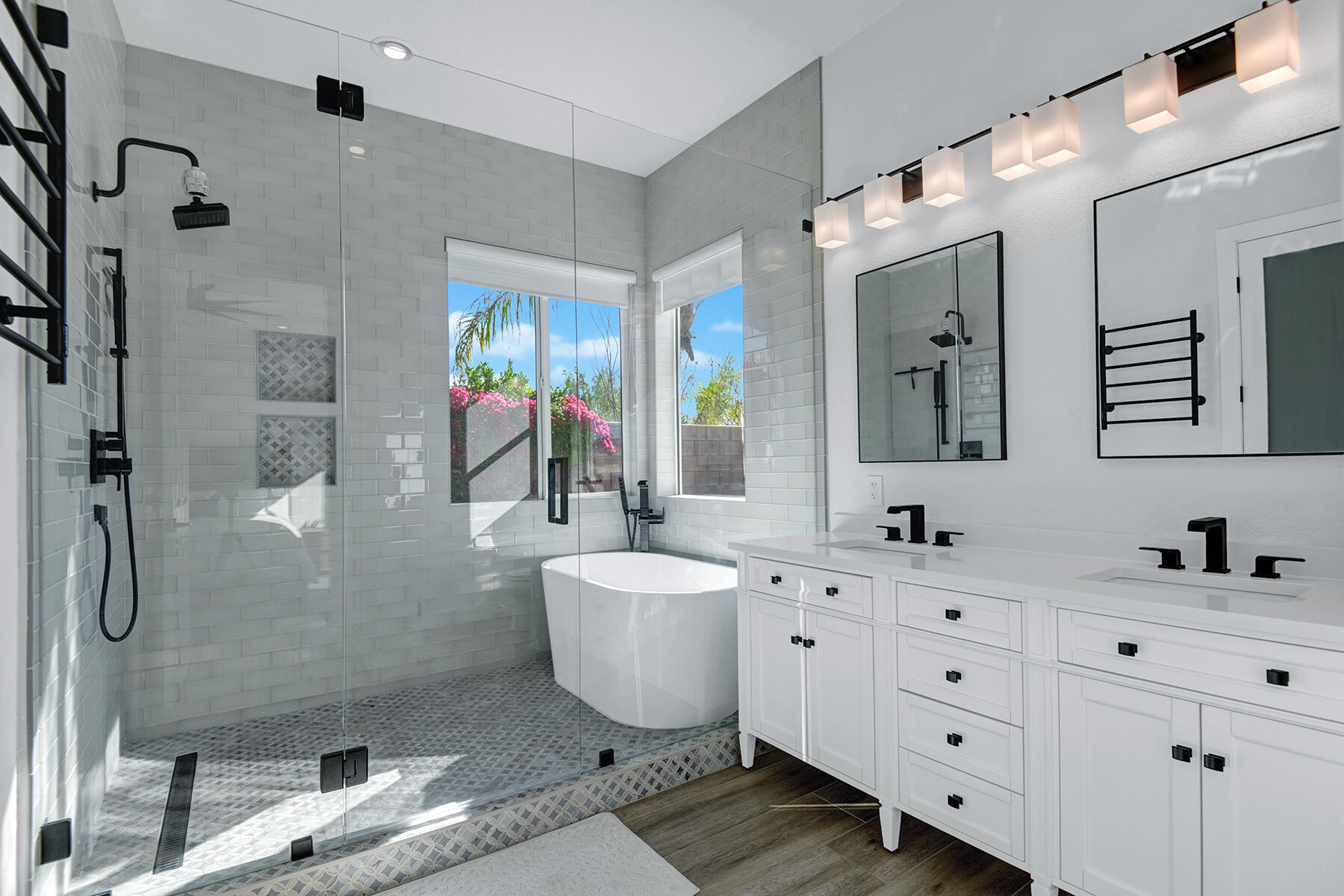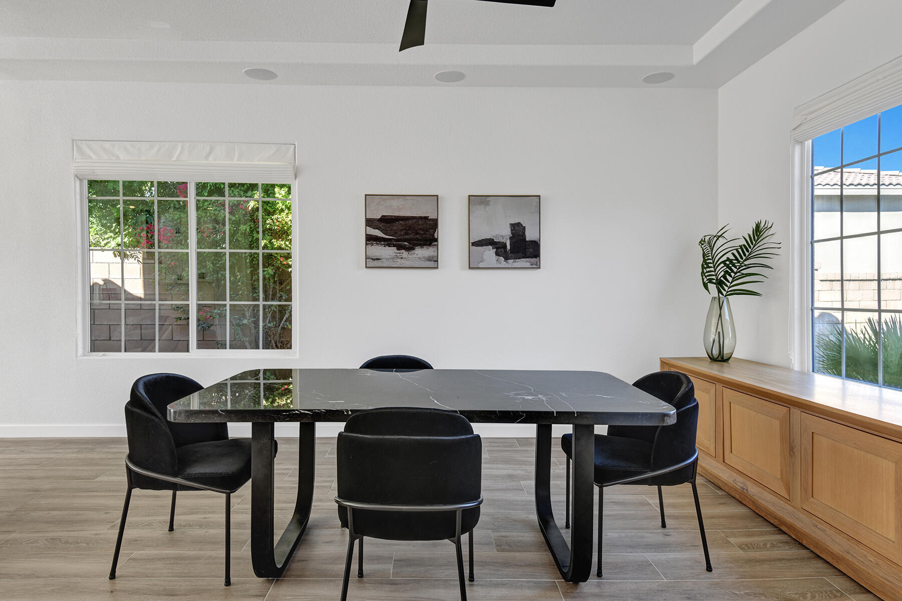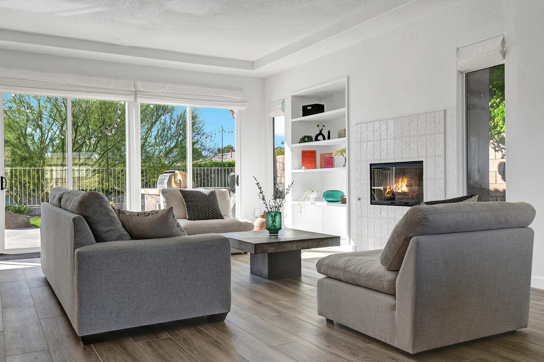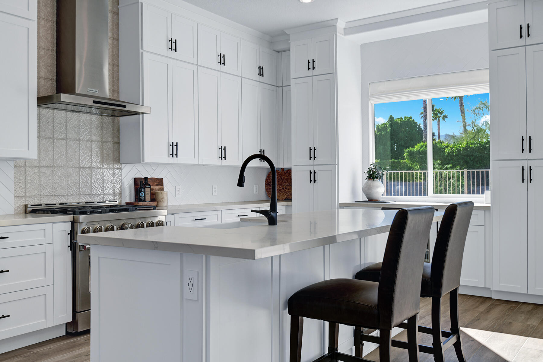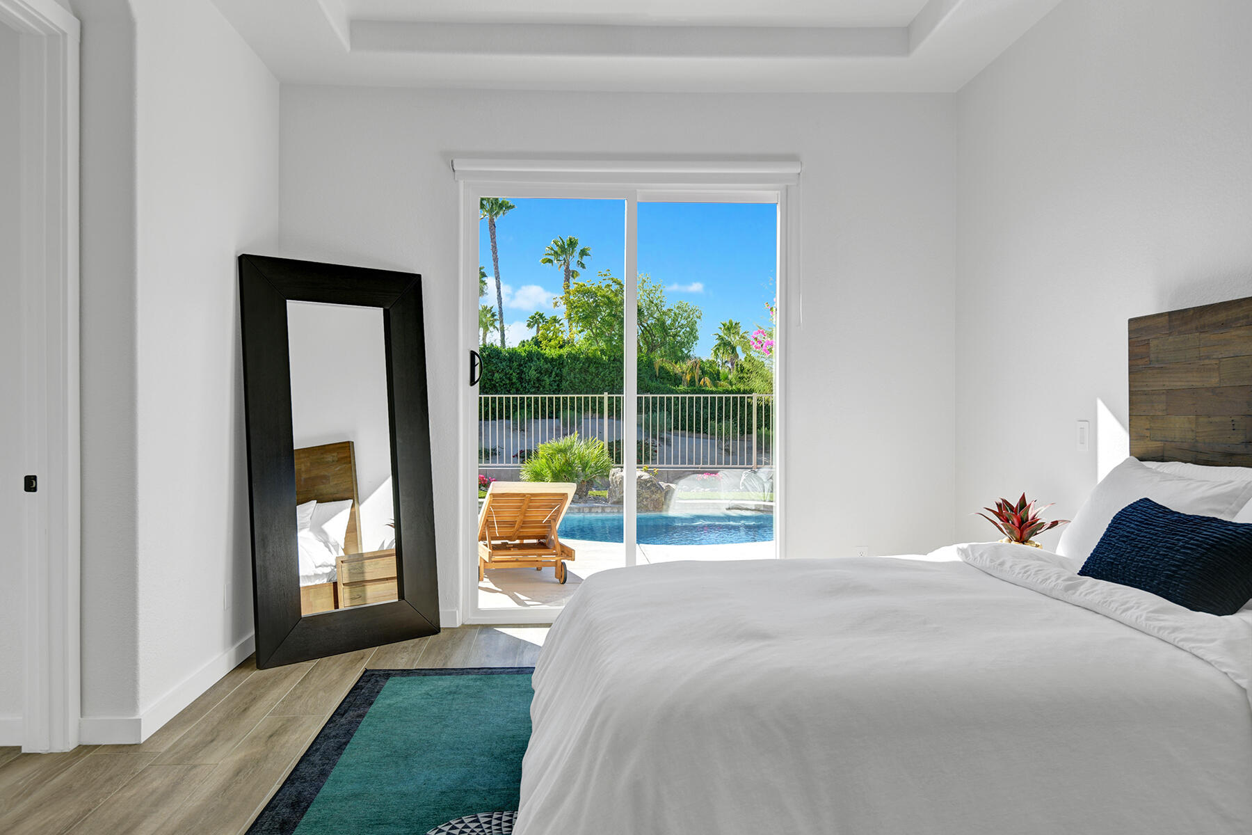 Welcome to 43179 Corte Del Oro, the perfect home for the modern family! Having undergone an extensive renovation, this home has absolutely everything today's families need to feel true comfort through elevated finishes. Step inside to discover Truwood plank ceramic flooring and a chef's kitchen designed for culinary enthusiasts. The kitchen is equipped with a KitchenAid Smart Range, soft close cabinets, quartz countertops, under-cabinet lighting, as well as a coffee bar with a wine refrigerator, and island seating. The open living area flows effortlessly into a private backyard oasis, featuring a salt-water pool, spa, and built-in barbecue. Enjoy stunning mountain views and tranquility from your elevated position to the adjacent park. The artificial turf side yard is perfect for pets, and an integrated sound system enhances your entertainment experience. The primary suite offers a spa-like bathroom with a freestanding tub inside a custom shower and an expanded walk-in closet. A versatile 5th bedroom serves as an ideal home office or additional sleeping space. Smart Home technology includes a washer/dryer, range, garage door, and lighting for ultimate convenience. The home also includes a water-softener system. With great proximity to the Indian Wells Tennis Gardens, and some of the best local dining & entertainment options, it's an incredibly well finished home in a superb, gated community! Please call listing agent for Gate Code to enter community at (949) 939-3095.Interested in this Listing?