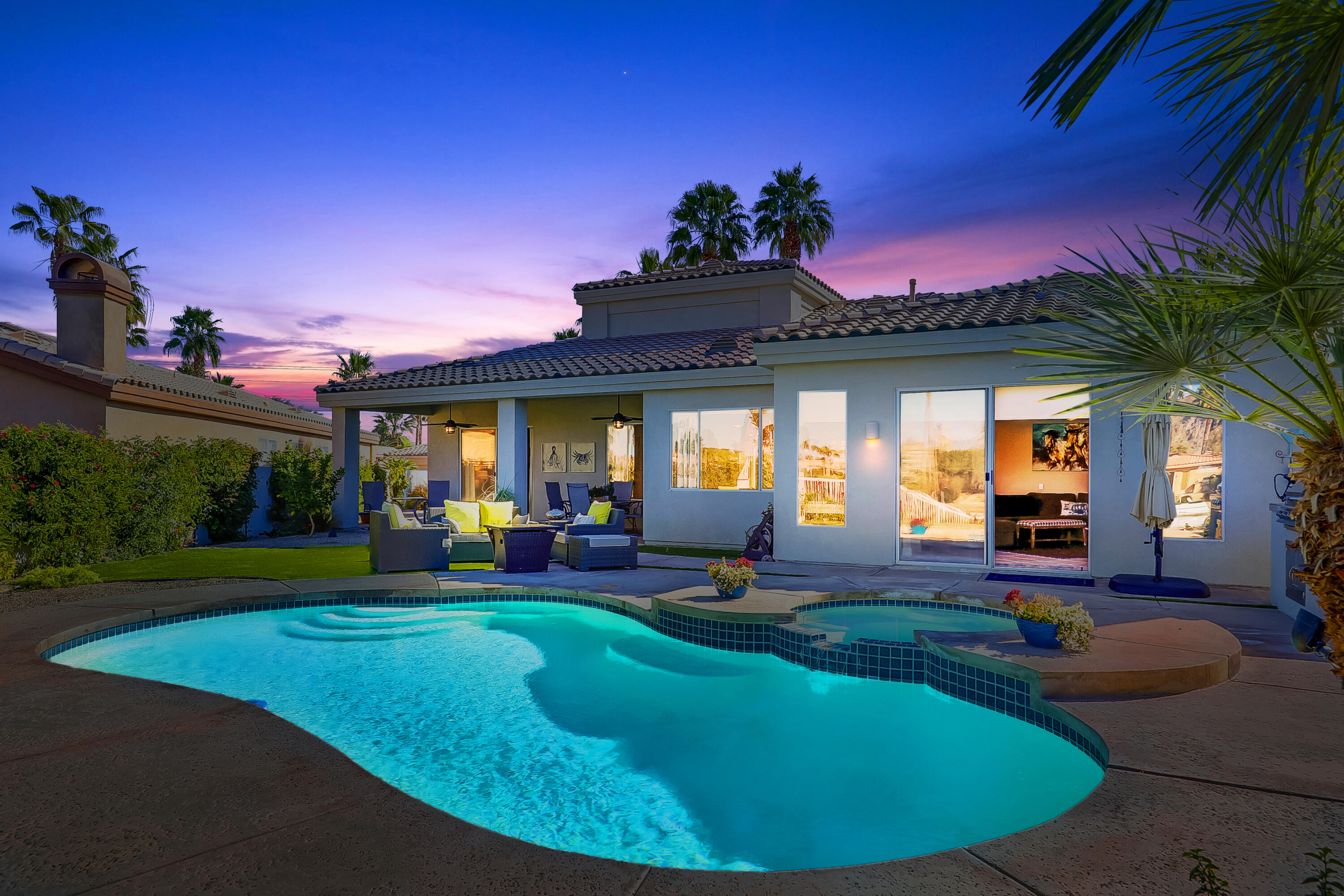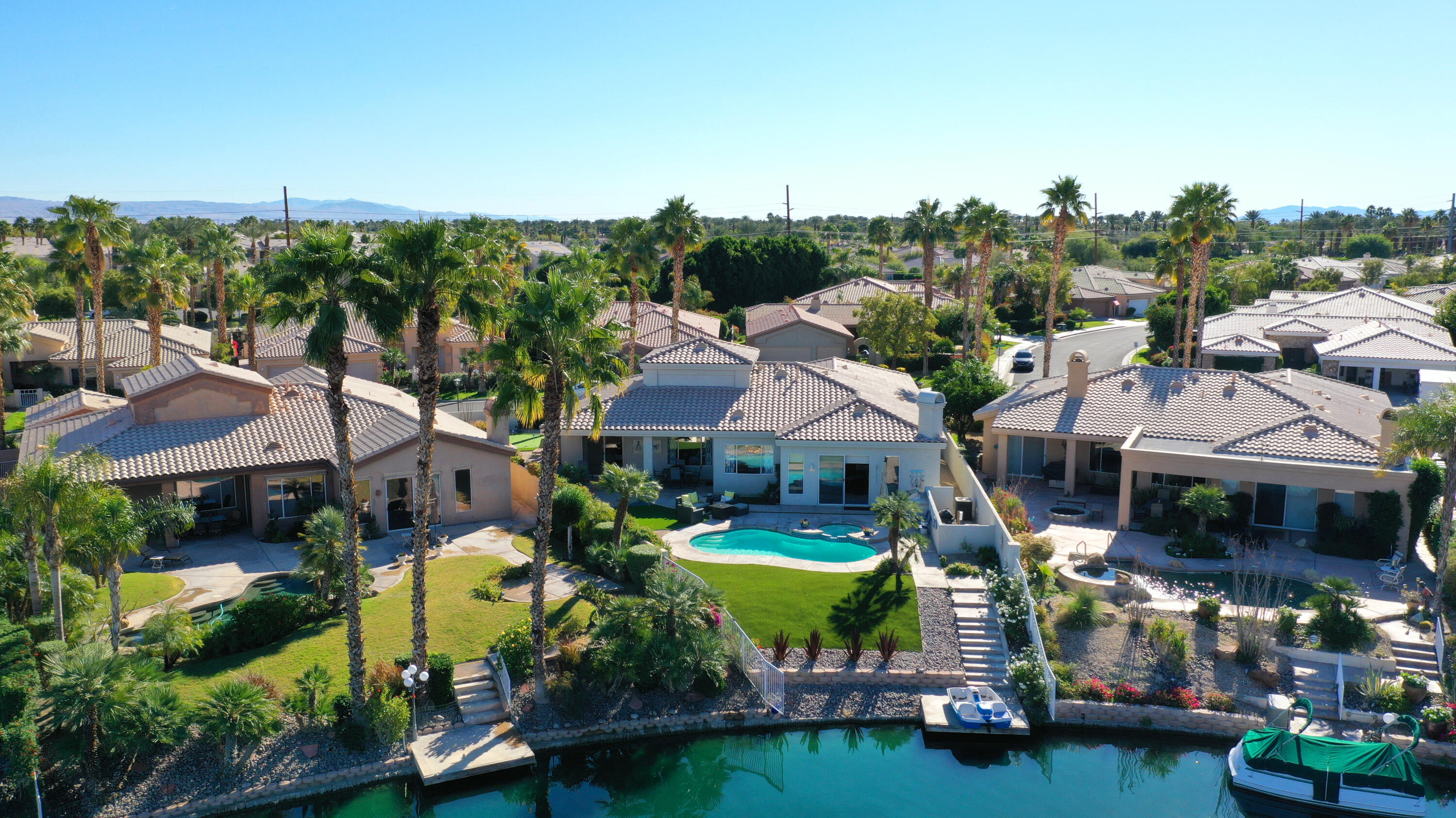 THIS IS IT!!! HUGE PRICE REDUCTION! OVER $50,000! Seller Relocating. THIS WATER FRONT Beauty...Shows like a Model Home! Captivating Panoramic Mountain and Lake Views Abound! Gated Courtyard Features a Classic 3 Hole Putting Green...as well as Artificial Turf throughout the backyard. Once you Enter the Double Glass Doors in your Foyer... You'll realize This is Home! Totally Upgraded and Updated! Boasting 3 Bedrooms, plus a Private office and 3 Baths. Tile Flooring Displayed on a Diagonal, Gourmet Kitchen has Granite Counter Tops, Nice Kitchen Cabinets along with Kitchen-Aide Stainless Steel Appliances set off with a Decorative Back Splash adding a Taste of Elegance! An Entertainer's Delight with two sit down Bars completely Open to the Family Room with Fireplace and Walls of Glass to Enjoy the natural warmth of the sunshine overlooking the Lake, Swimming Pool and Built-in BBQ Area. and Private Boat Dock that sits on a 25 acre lake. Oversized Yard...Plenty of Room for Parties or Special Events...Events! Baths have updated Quartz Counter Tops and glass accents inlaid in the Tile. Indoor Laundry Room, Ceiling Fans & 3 Car Garage to Boot! **Bonus: You have room to add on a Pool House or Casita** (with approval, if so desired). Property comes Furnished!! (move in ready with some seller personal exclusions) as well as Two Paddle Boats for your Pleasure to Relax and Cruise the Water! One of a Kind Amazing Lake Community in the Middle of the Desert! Enjoy Boating, Kayaks, Tennis Court, Pickle Ball, Bocce Ball, Community Park w/ BBQ & Swimming Pool. Perfect Location near Shopping & Restaurants. Polo Grounds and Concerts. Live the Lakefront Lifestyle with Breathtaking Views to wake up to and start your day....Imagine...Believe...You are Here!!Interested in this Listing?
