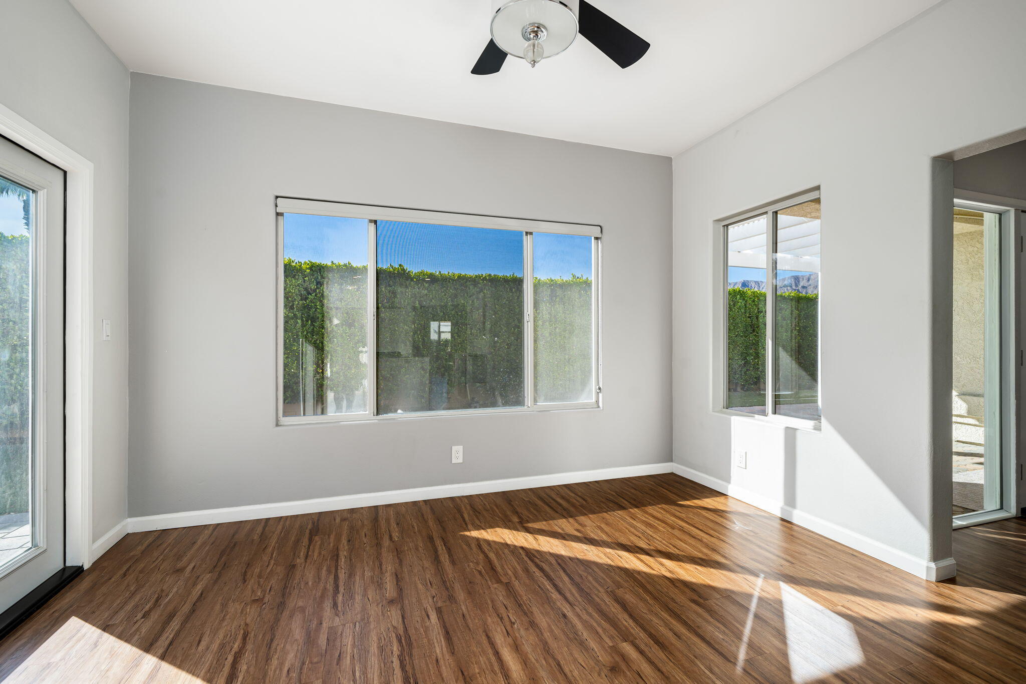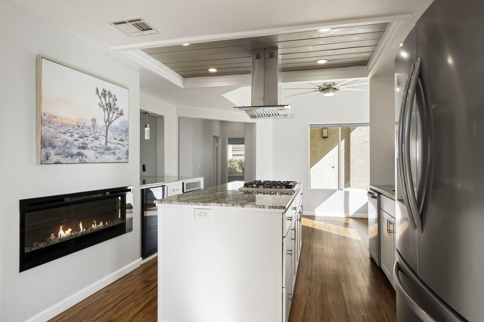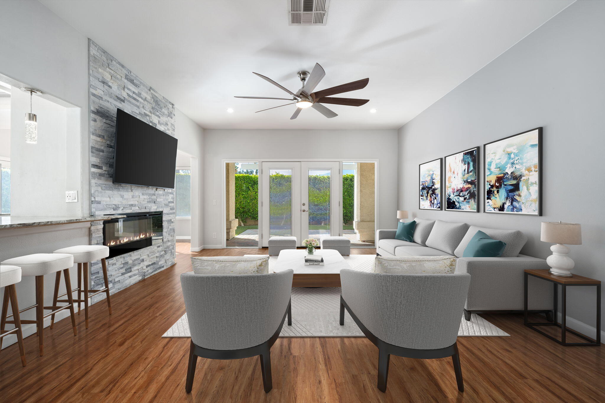 Comfort, Privacy and Security -- You Can Truly Have It All! This beautifully renovated home is move-in ready with all appliances included. Spacious living room featuring a two-sided fireplace with stacked stone surround and mounted television. Stunning kitchen with adjacent dining area and breakfast nook. Primary bedroom suite with a large walk-in closet and spa-like bathroom. Two additional bedrooms and a full bathroom. Wood laminate floors, ceiling fans, recessed lighting and double-pane windows. Indoor laundry room. Direct access two-car garage with new garage door, epoxy flooring and custom storage cabinets. New Toto toilets, newer water heater and HVAC unit. Very private, low maintenance yard with artificial turf. Covered patio and side yard for outdoor entertaining and relaxation. Enjoy the ultimate resort lifestyle in Laguna De La Paz, a guard-gated community offering a private lake, clubhouse with fitness center, multiple pools, tennis and pickleball courts.Interested in this Listing?