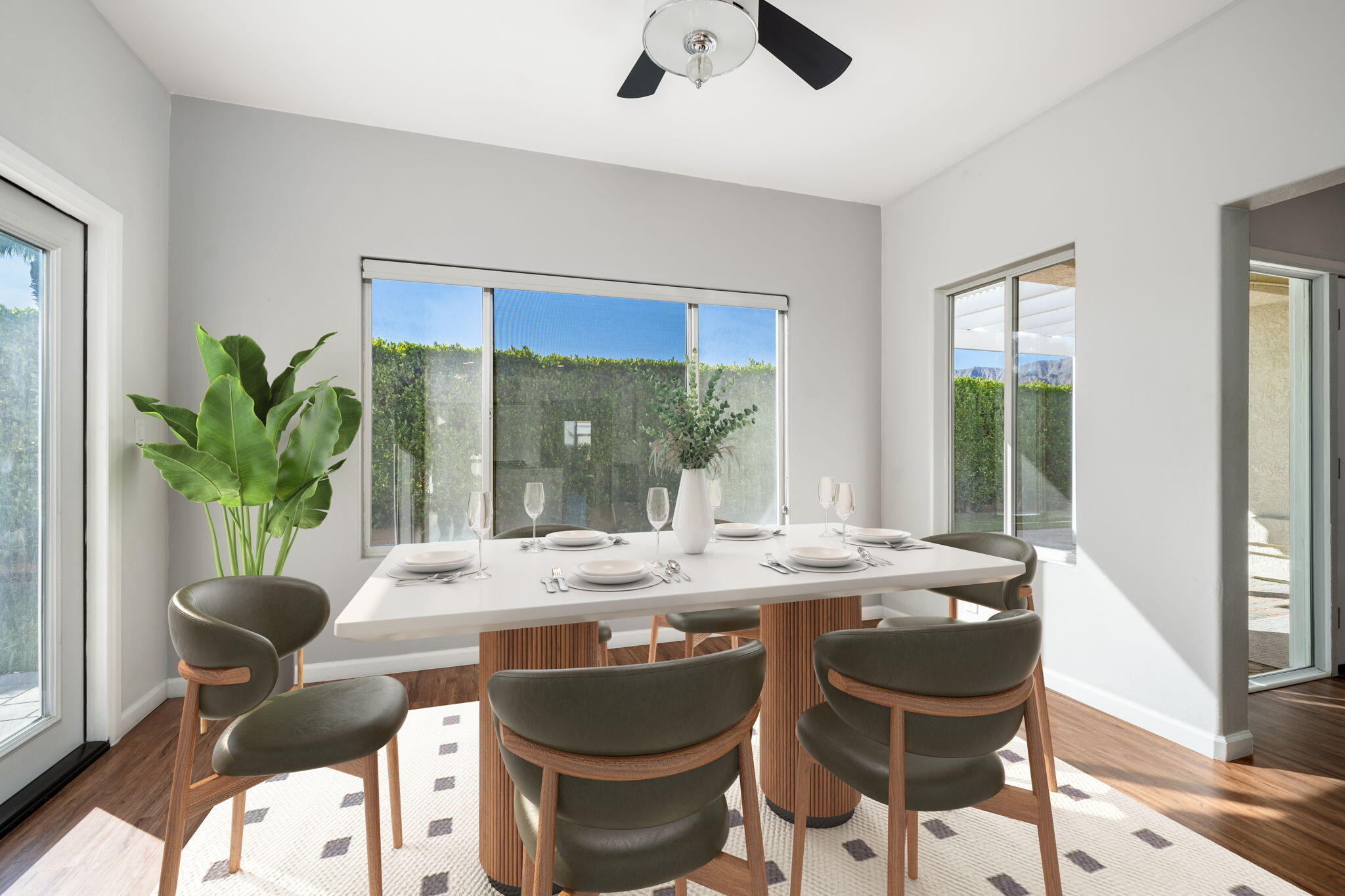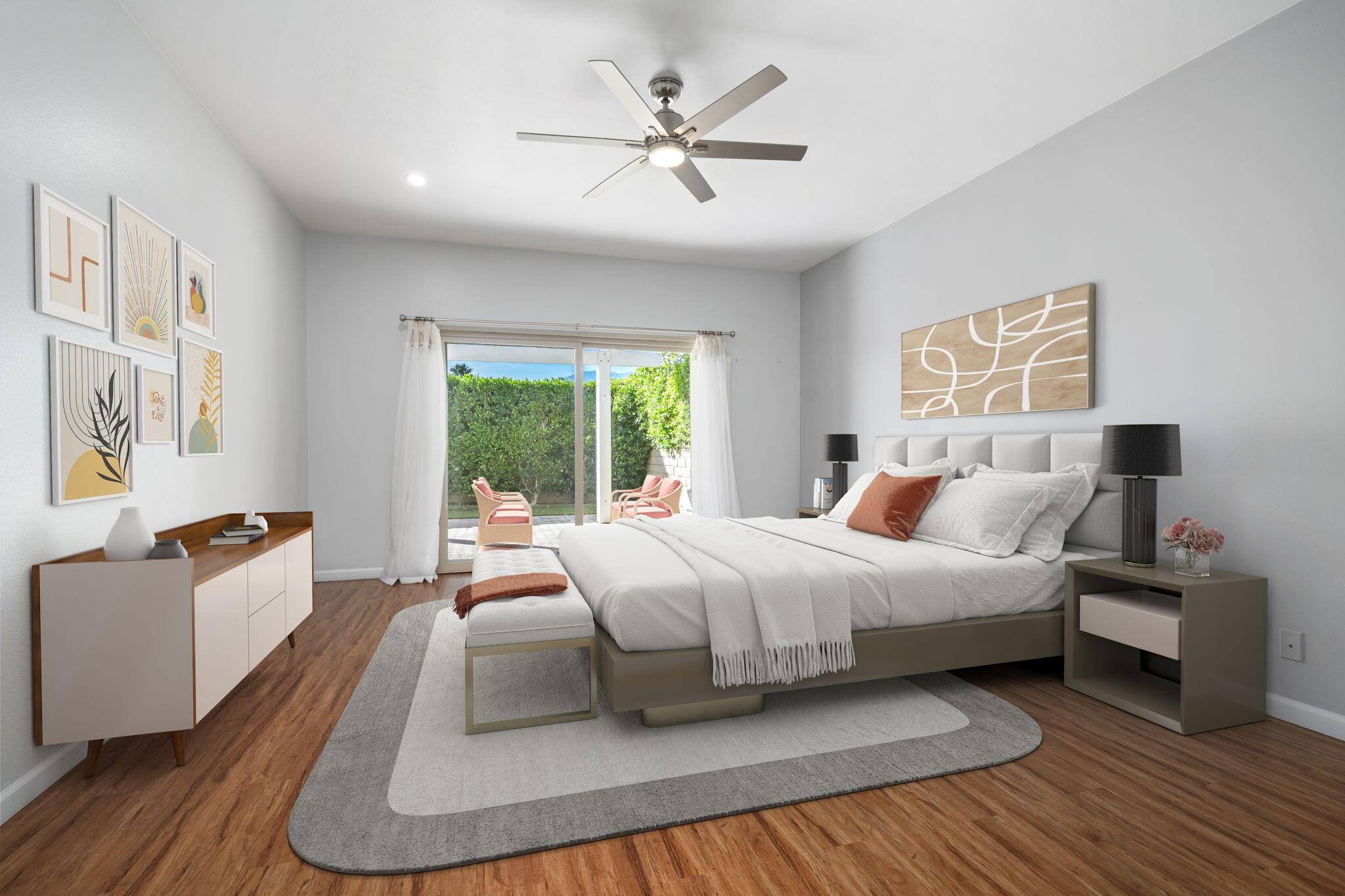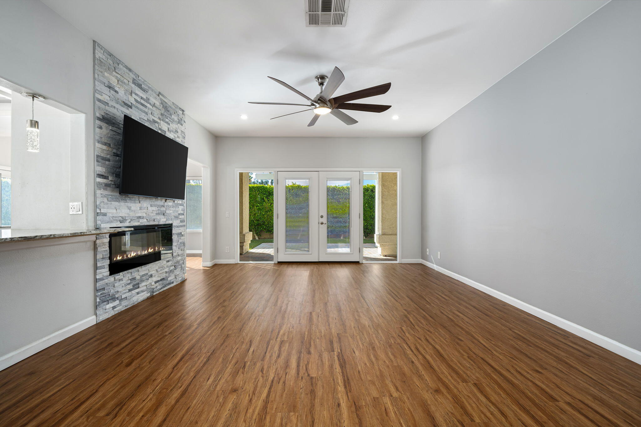 Comfort, Privacy and Security -- You Can Truly Have It All! This beautifully renovated home is move-in ready with all appliances included. Spacious living room featuring a two-sided fireplace with stacked stone surround and mounted television. Stunning kitchen with adjacent dining area and breakfast nook. Primary bedroom suite with a large walk-in closet and spa-like bathroom. Two additional bedrooms and a full bathroom. Wood laminate floors, ceiling fans, recessed lighting and double-pane windows. Indoor laundry room. Direct access two-car garage with new garage door, epoxy flooring and custom storage cabinets. New Toto toilets, newer water heater and HVAC unit. Very private, low maintenance yard with artificial turf. Covered patio and side yard for outdoor entertaining and relaxation. Enjoy the ultimate resort lifestyle in Laguna De La Paz, a guard-gated community offering a private lake, clubhouse with fitness center, multiple pools, tennis and pickleball courts.Interested in this Listing?