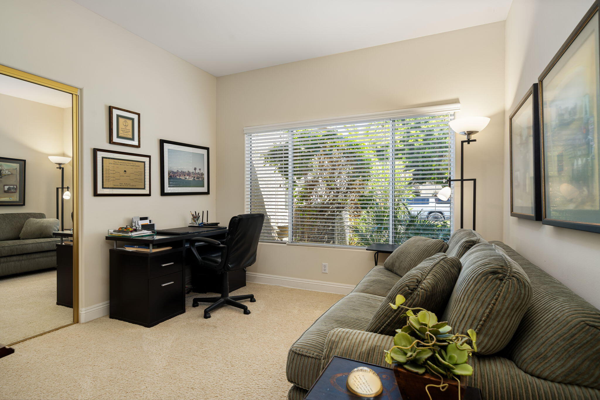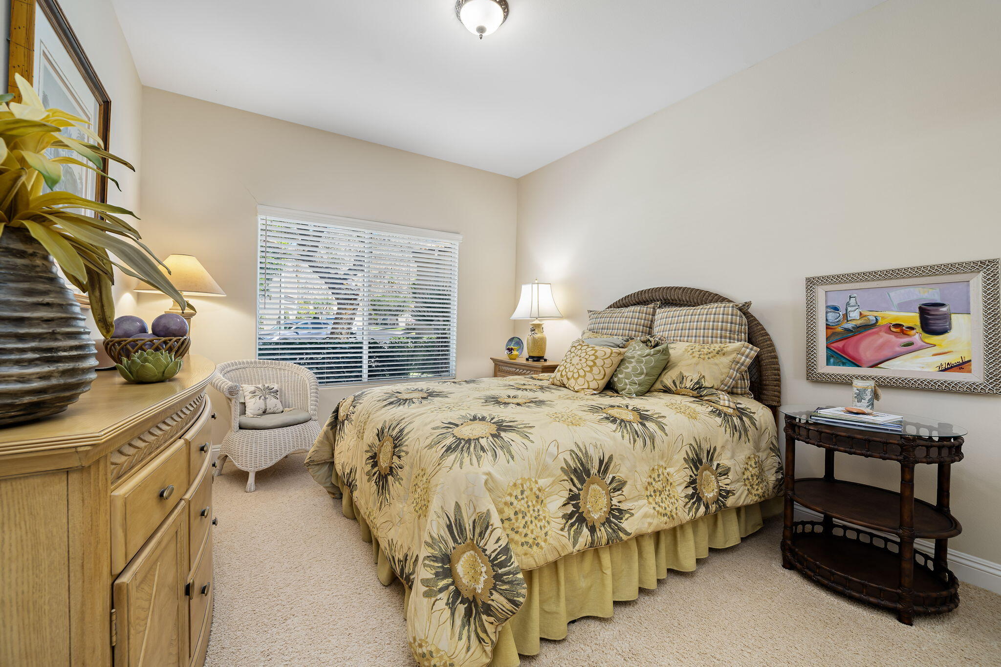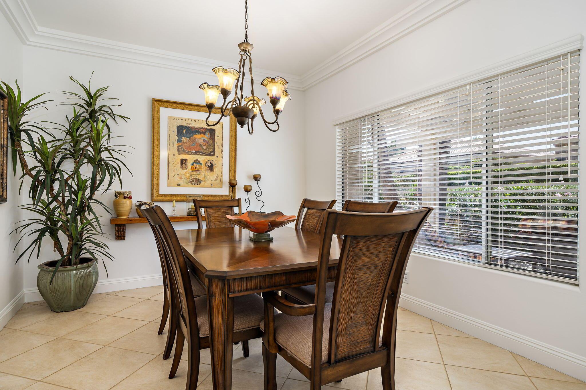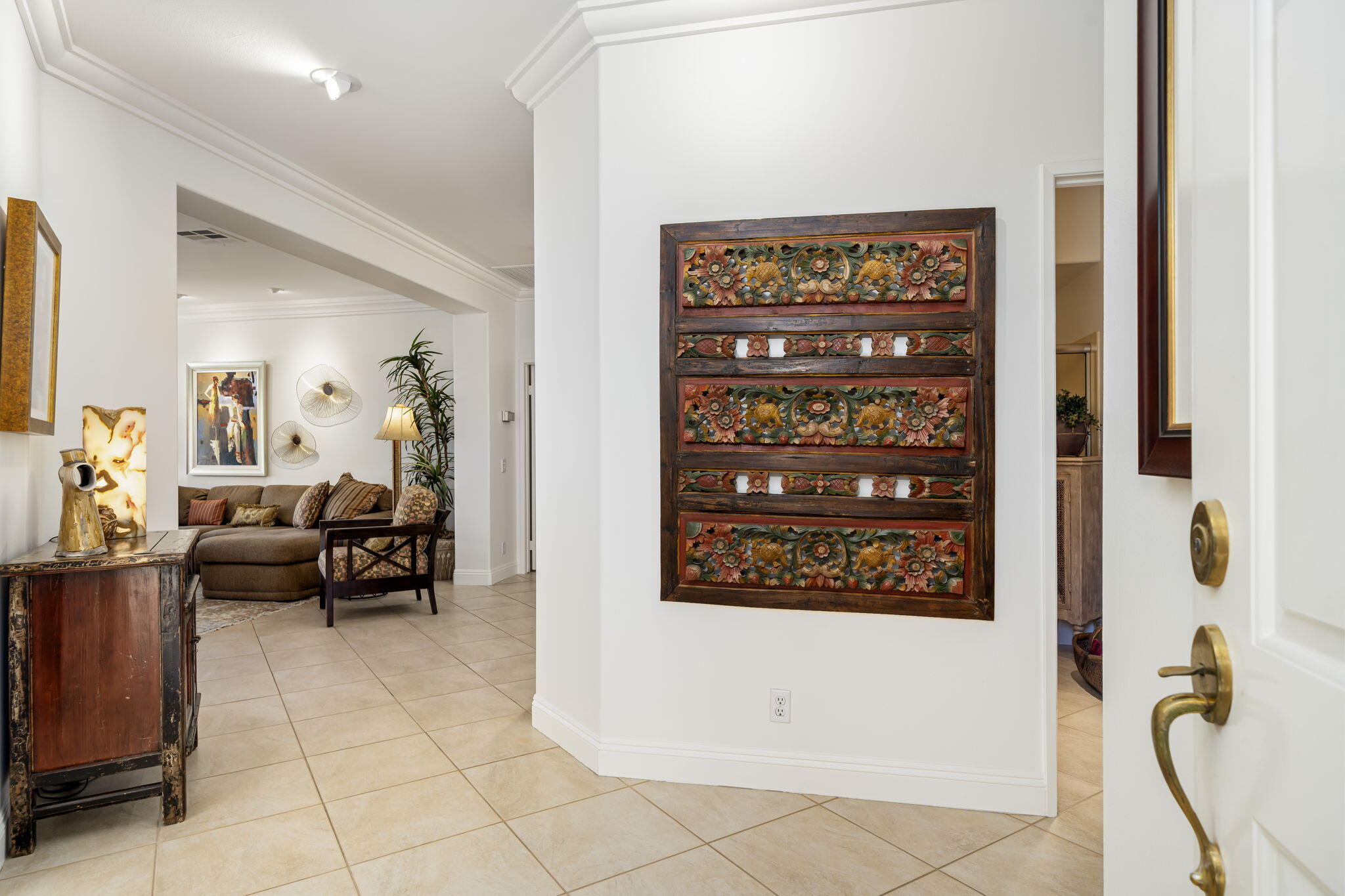 Backing to a beautiful greenbelt and surrounded by up-close views of the Santa Rosa Mountains, this elegantly upgraded La Quinta home presents an outstanding turnkey opportunity. Offering a quiet setting near the back of guard-gated Laguna de la Paz, the single-level residence is a brief stroll from the community pools and spas. Professionally maintained and manicured landscaping elevates grounds that features a gated side entrance and a backyard with large covered patio for the ultimate in outdoor relaxation and socializing. Entertaining indoors is exceptional as well thanks to an open floorplan that measures approximately 1,852 square feet. A formal entry flows directly to three bedrooms, two baths, and a generously proportioned living room that displays an upgraded stacked-stone fireplace, patio access, and a mirrored wet bar with under-cabinet beverage refrigerator. Natural light illuminates an open-concept kitchen with island, white cabinetry including a built-in pantry, granite countertops with full backsplash, upgraded stainless steel KitchenAid appliances, and a casual dining nook with extra-high ceiling and bay window. Custom recessed art lighting, tile flooring, high-end carpet in bedrooms, mirrored wardrobe doors, and custom crown and base molding lend an air of distinction throughout. Opening to the patio, the primary suite is a private sanctuary that reveals a walk-in closet with custom built-in organizers and drawers, two sinks, a soaking tub and separate shower. A convenient laundry room with cabinetry leads to an attached two-car garage. Centered around a shimmering five-acre lake that offers paddle and pontoon boats and catch-and-release fishing, Laguna de la Paz is a true desert oasis. Residents enjoy a luxurious clubhouse, 15 pools, 16 spas, a 24-hour fitness center, scenic trails, and tennis and pickleball courts. Golf courses, shopping centers, restaurants and Old Town La Quinta are minutes away.Interested in this Listing?