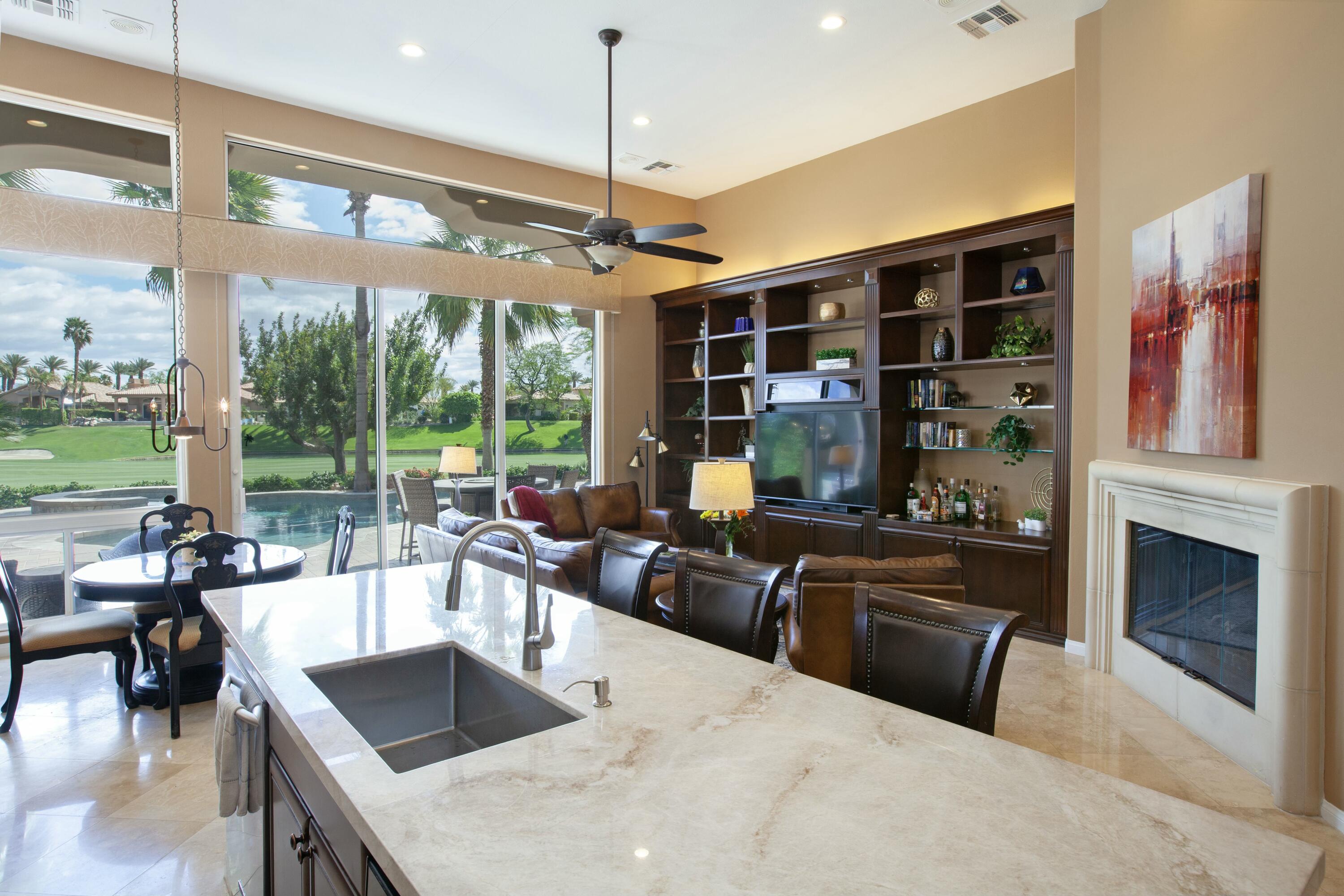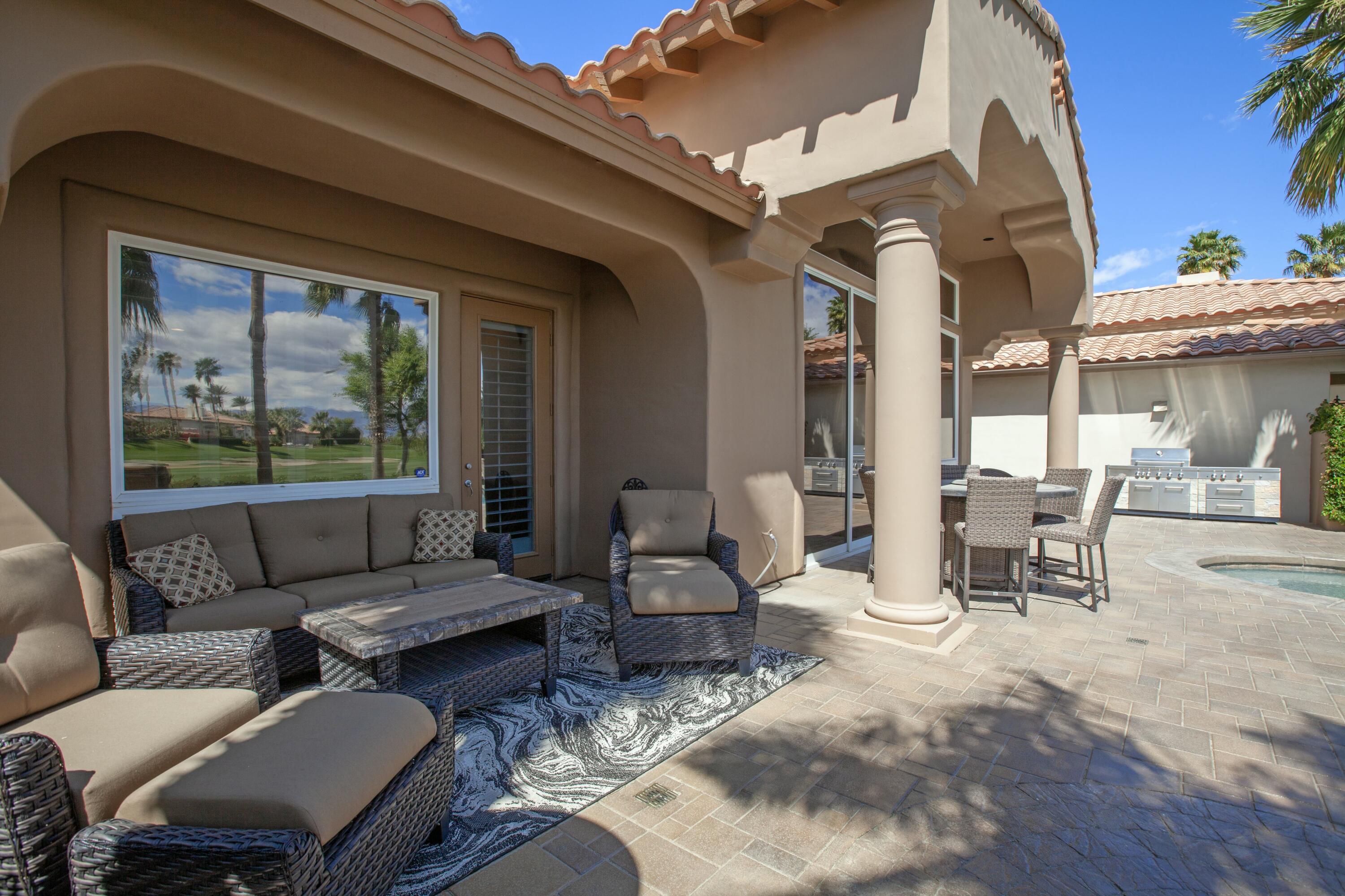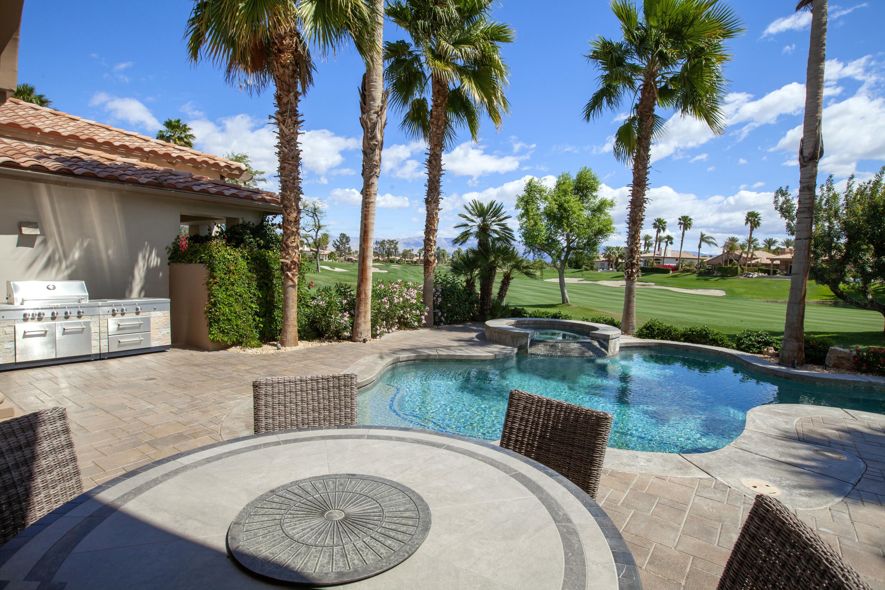Premium fairway sophisticated Encanto 2 with newer pool, custom pavers throughout exterior, newer AC, refinished millwork, upgraded furniture & accents and custom finishes and hard surfaces throughout. Rancho La Quinta Assessment is fully paid off by Seller. After passing through the tranquil pavered entry courtyard, an opaque glass & wood door greets guests and once inside, volume ceilings and large walls of glass offer a spacious feel and the Fleetwood sliders frame views of the newer pool, raised spa and 14th hole of the Jones Course. The chef's kitchen offers stainless steel appliances, refinished cabinets and recently installed Taj Mahal counters with an elegant glass tile backsplash. This area presides over the family room that features a custom and rich entertainment center and impressive fireplace. The main bedroom suite features plantation shutter and opens directly to the custom pool and spa. The main bedroom suite offers a lavish bath with high-finish marble floors, granite counters, tub, two walk-in closets, private commode and dual entry shower with mitered glass. For extended stay guests, there's a 2-room guest house that's currently configured with 3 beds. Property features include a custom stainless steel bbq station poolside; long and spacious driveway; formal living and dining room with shutters; elegant powder room with granite counter and spacious laundry room with granite counter; lake and golf course views; newer water heater and newer AC condensers; pool built from scratch in 2018 with custom pavers that wrap around the property; water softener; location that affords sun during the cooler seasonal months and shade in the Spring and summer; marble flooring in main living areas and plush carpeting in the bedroom suites; What's more---the special assessment of $27,866 for capital improvements of the club house, sports center & new fitness center has been fully paid off. Turn-key furnished.Interested in this Listing?
