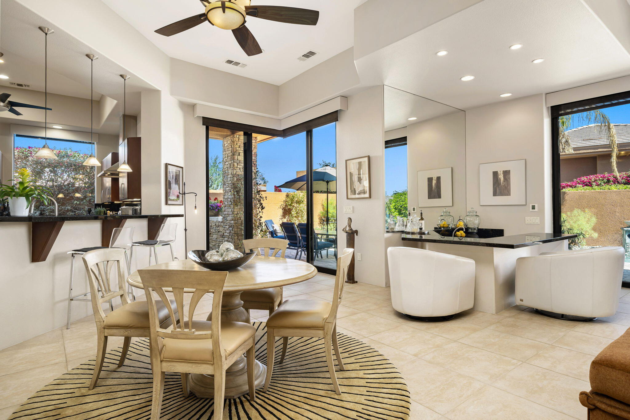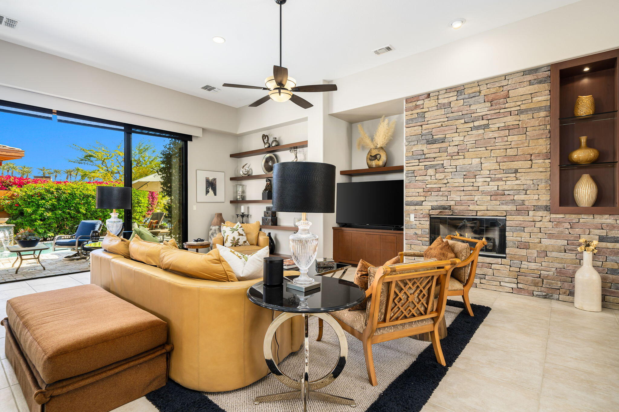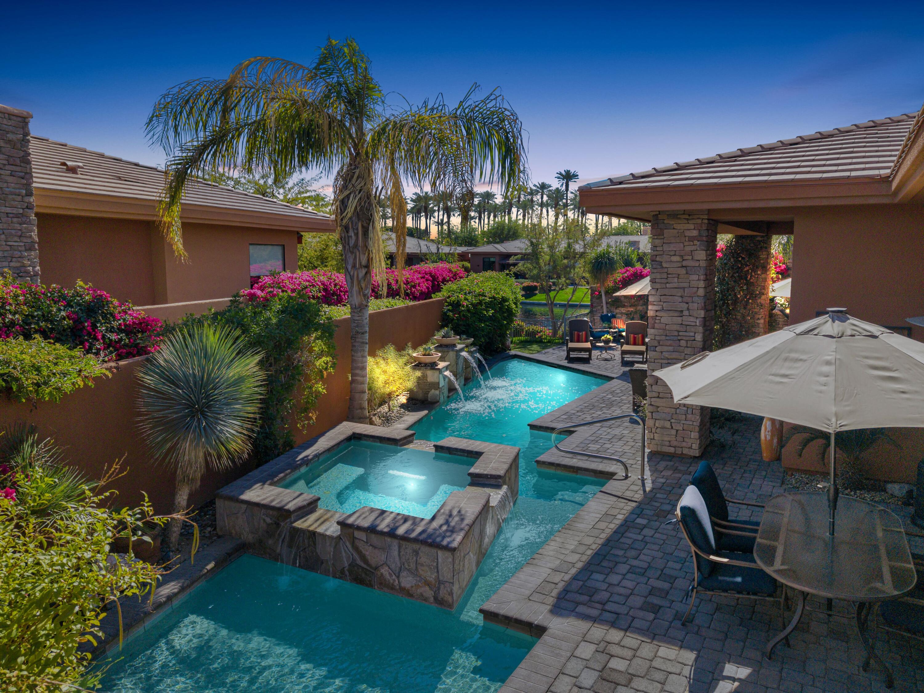 Welcome to Palmilla - A National Award-Winning Desert OasisExperience elevated desert living in Palmilla, one of the Coachella Valley's most prestigious and architecturally celebrated communities. This stunning Ocotillo floor plan offers a rare blend of tranquil partial lake views and total backyard privacy, all within a fully turnkey furnished home designed for both relaxed luxury and effortless entertaining.The heart of the home features an expansive open-concept great room that seamlessly connects to the gourmet kitchen, sit-down bar, and sunlit breakfast nook. Culinary enthusiasts will love the kitchen's Thermador stainless steel double ovens, gas cooktop, built-in microwave, prep island with sink, and walk-in pantry. The space flows gracefully outdoors through massive stacking sliders, blurring the line between indoor and outdoor living.Step into your resort-style backyard, complete with a saltwater pool and elevated spa with powerful turbo jets, misting system that wraps the entire patio, built-in BBQ island, fire pit with lake views, and multiple lounging and dining areas--perfect for morning sun and shaded, cooler afternoons. A newer AC unit for the main living area and an upgraded pool heater ensure year-round comfort and performance.At the center of the home is a charming private courtyard, accessed by the guest suite, detached casita, and formal dining room. Anchored by a rock water fountain with soft uplighting, this space brings the outdoors in, filling the home with the soothing sound of water and fresh desert air--creating a peaceful ambiance throughout the interior.The spacious primary suite offers a luxurious retreat with dual vanities, a soaking tub, walk-in shower, and two custom walk-in closets. The guest suite and casita each have their own en suite bathrooms, offering privacy and comfort for family and guests.Palmilla provides 24-hour manned security, front yard maintenance, and exterior home painting, supporting a carefree, lock-and-leave lifeInterested in this Listing?