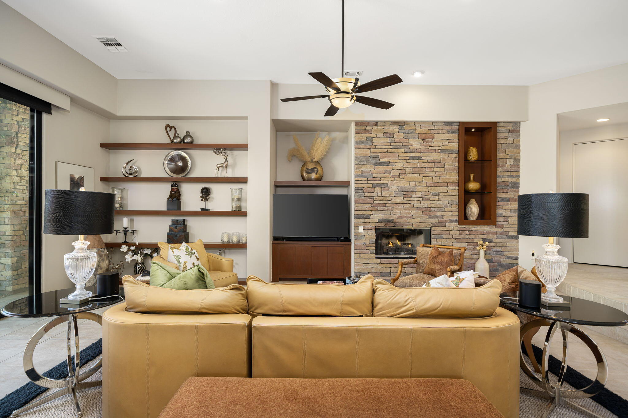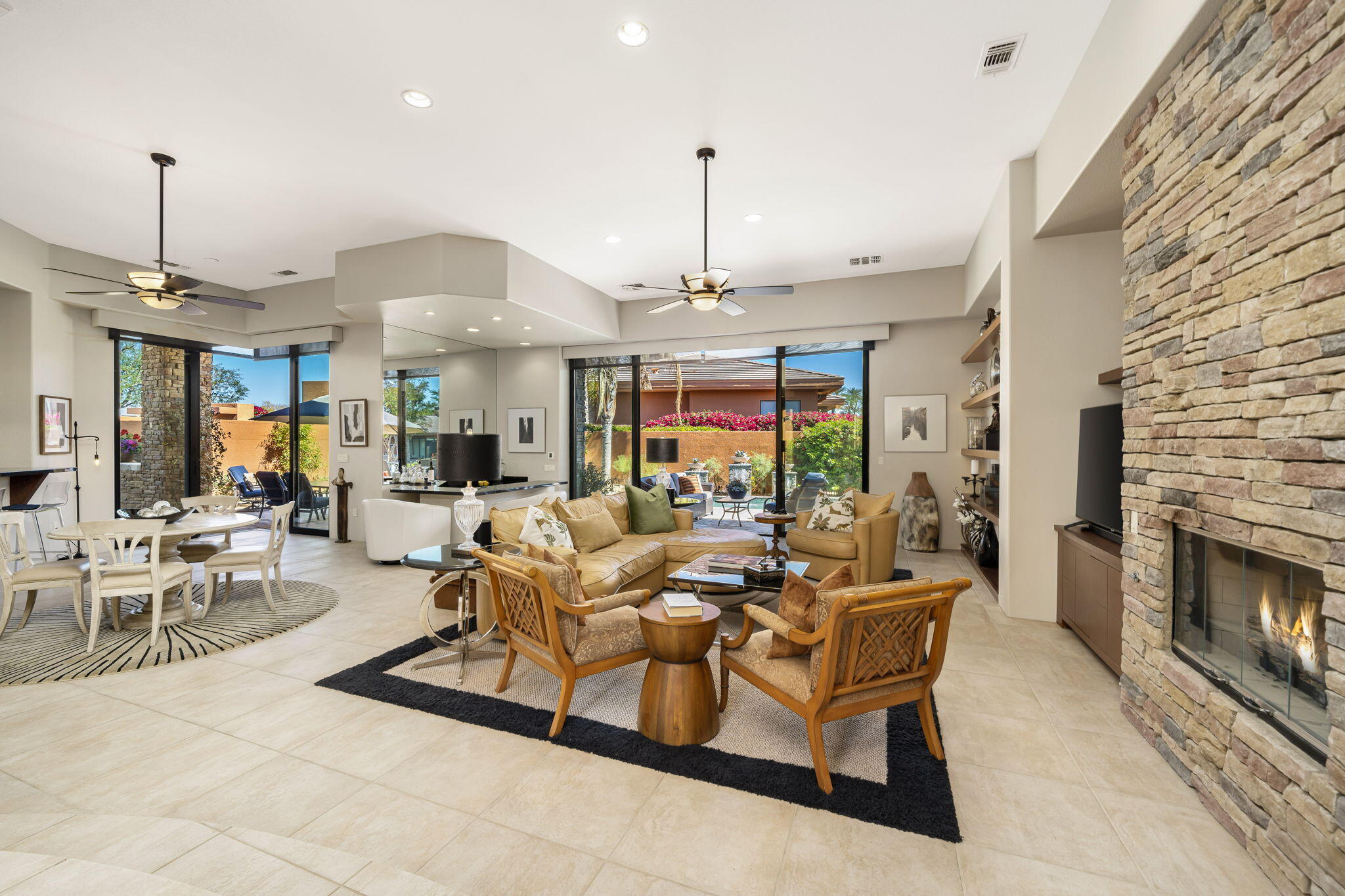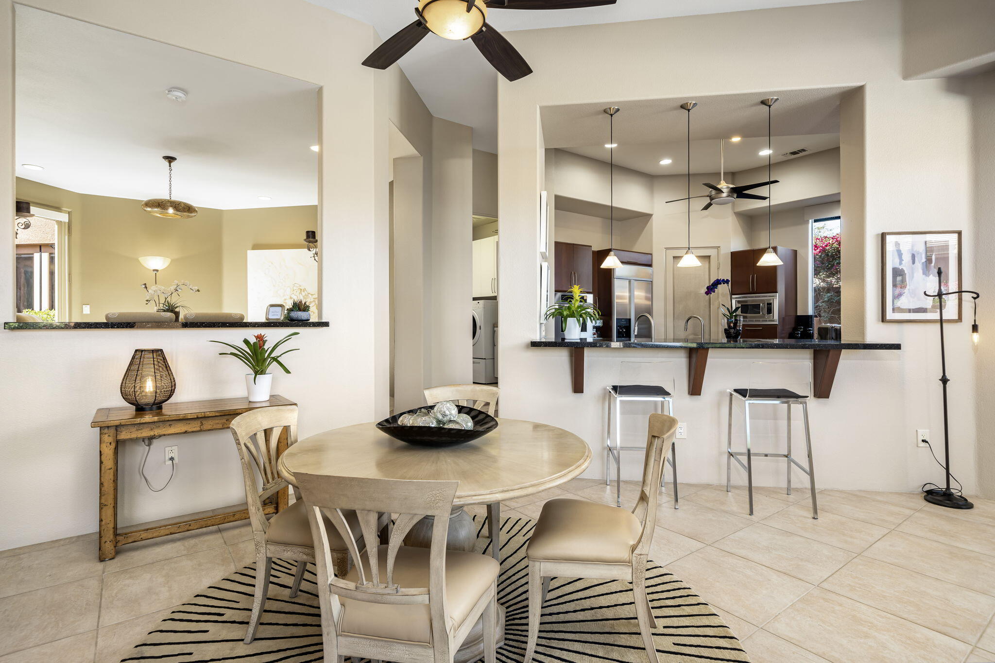 Welcome to Palmilla - A National Award-Winning Desert OasisExperience elevated desert living in Palmilla, one of the Coachella Valley's most prestigious and architecturally celebrated communities. This stunning Ocotillo floor plan offers a rare blend of tranquil partial lake views and total backyard privacy, all within a fully turnkey furnished home designed for both relaxed luxury and effortless entertaining.The heart of the home features an expansive open-concept great room that seamlessly connects to the gourmet kitchen, sit-down bar, and sunlit breakfast nook. Culinary enthusiasts will love the kitchen's Thermador stainless steel double ovens, gas cooktop, built-in microwave, prep island with sink, and walk-in pantry. The space flows gracefully outdoors through massive stacking sliders, blurring the line between indoor and outdoor living.Step into your resort-style backyard, complete with a saltwater pool and elevated spa with powerful turbo jets, misting system that wraps the entire patio, built-in BBQ island, fire pit with lake views, and multiple lounging and dining areas--perfect for morning sun and shaded, cooler afternoons. A newer AC unit for the main living area and an upgraded pool heater ensure year-round comfort and performance.At the center of the home is a charming private courtyard, accessed by the guest suite, detached casita, and formal dining room. Anchored by a rock water fountain with soft uplighting, this space brings the outdoors in, filling the home with the soothing sound of water and fresh desert air--creating a peaceful ambiance throughout the interior.The spacious primary suite offers a luxurious retreat with dual vanities, a soaking tub, walk-in shower, and two custom walk-in closets. The guest suite and casita each have their own en suite bathrooms, offering privacy and comfort for family and guests.Palmilla provides 24-hour manned security, front yard maintenance, and exterior home painting, supporting a carefree, lock-and-leave lifeInterested in this Listing?