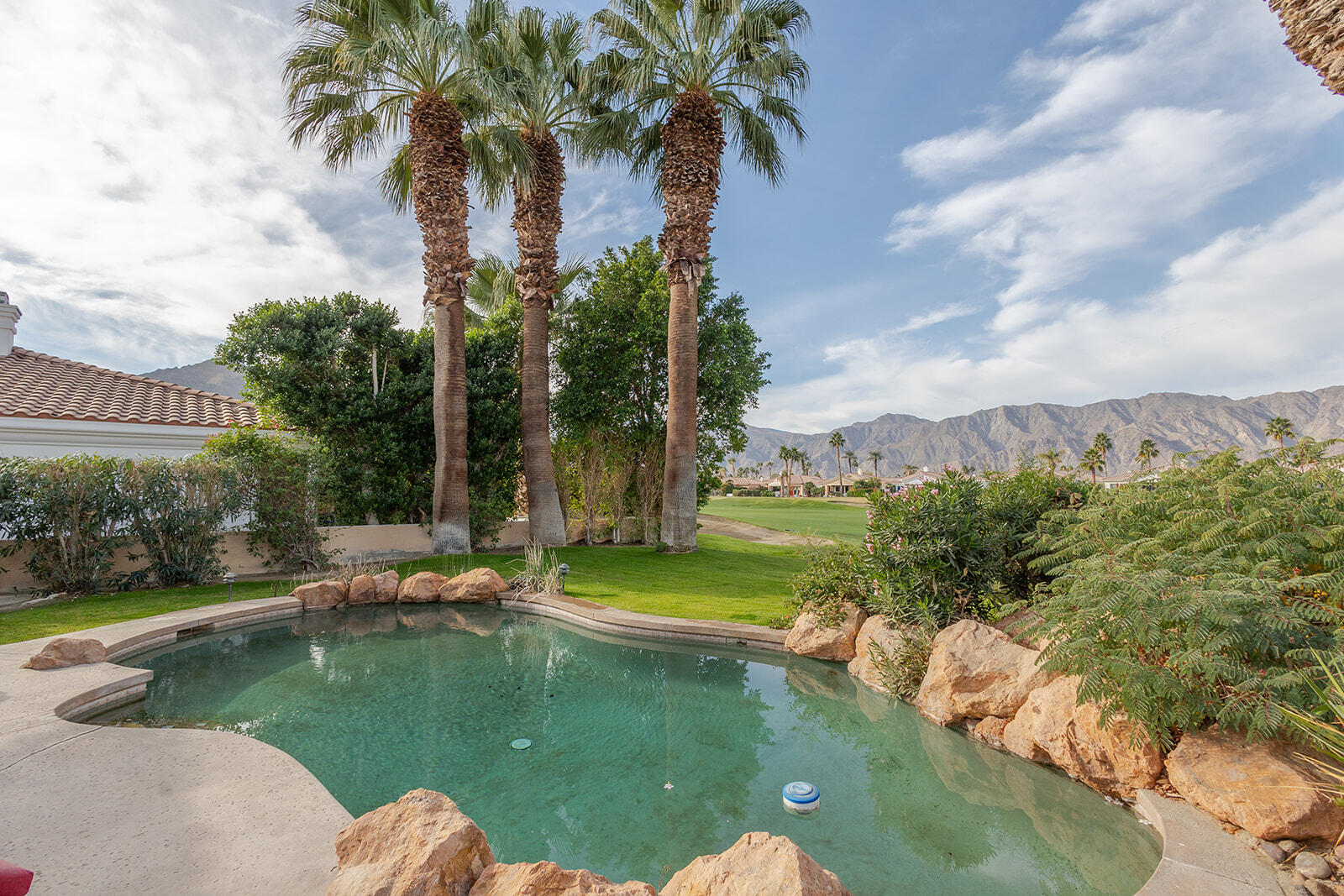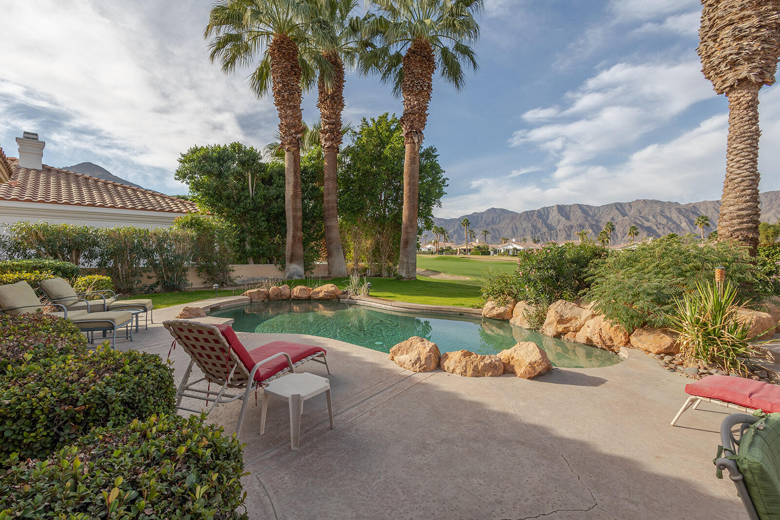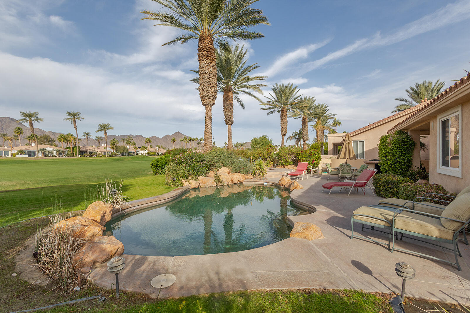 Best price home right on the golf course. The home has an unbelievable view that is priceless of 5th fairway of the Pete Dye designed Dunes Course that is part of the La Quinta Resort and followed by mesmerizing views of the southern and western Santa Rosa Mountain range. Oversized pool and spa in a very large back yard (oversized lot)with outdoor BBQ allows for gatherings, relaxing and watching sunsets or golfers going by. The home features a Great Room with fireplace, a study area for a small den, office or bedroom, dining room, custom wet bar and very open kitchen. The Primary bedroom has those same amazing views mentioned as well as a large en-suite and walk-in closet. Second bedroom has two double beds, french doors to an outside patio and en-suite. Detached casita features queen size bed, large closet and en-suite and a private patio. This home is just that...a home not just a house. Once inside you instantly relax and admire the unbelievable views. Offered furnished subject to seller personal items, but basically fully furnished. La Quinta Fairways is the gem of La Quinta with low HOA fees, warm and friendly neighbors and close proximity to everything - Old Town LQ, Indian Wells Tennis Gardens, Music Festivals, Art Festival and so much more. Come take a look you will be so glad that you came to see this home with such a gorgeous panoramic view of the Santa Rosa Mountains. Furnished per seller inventory. Home is sold as is.Interested in this Listing?