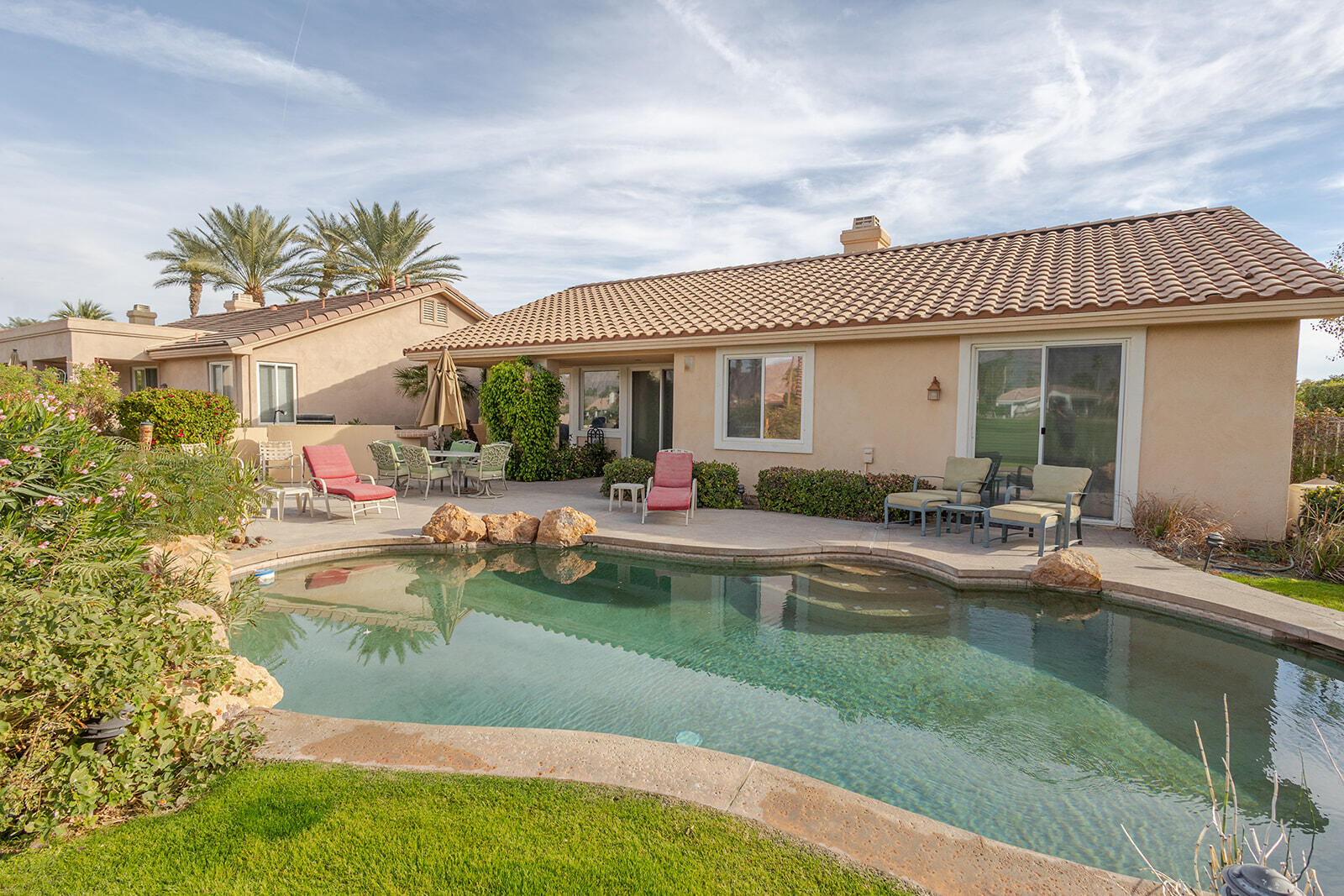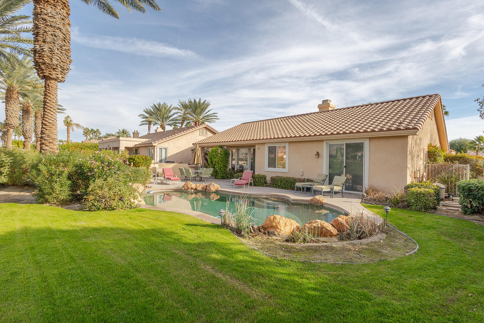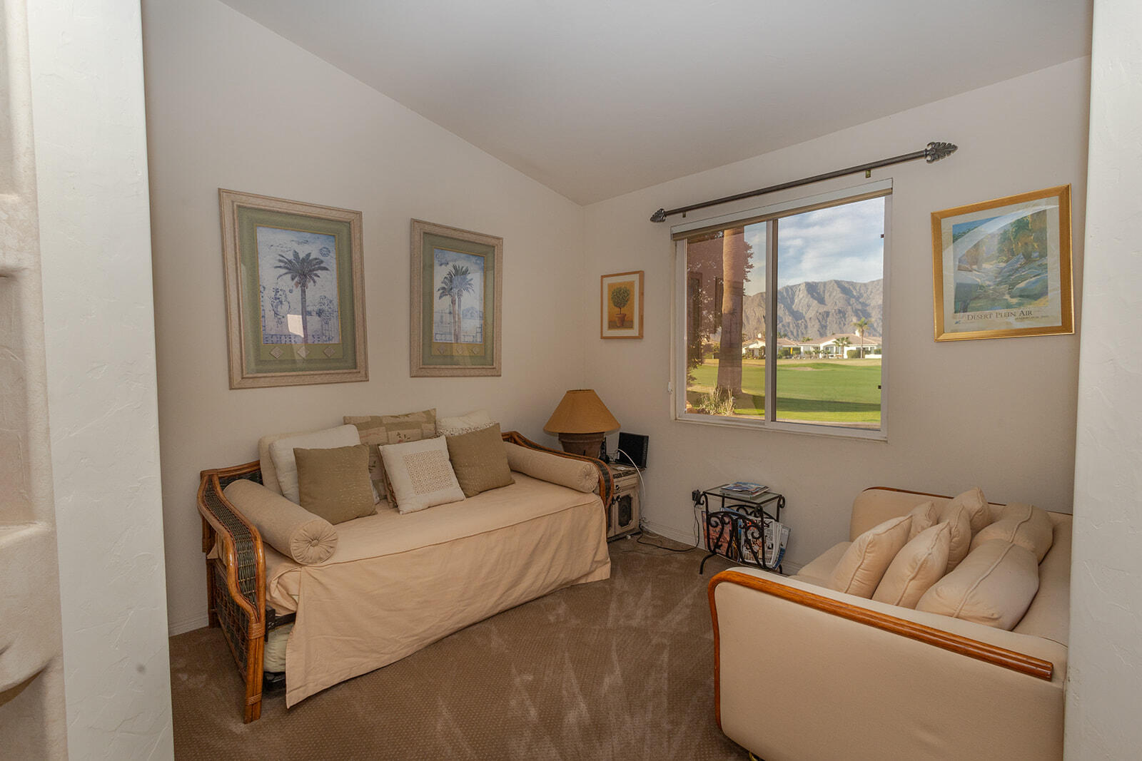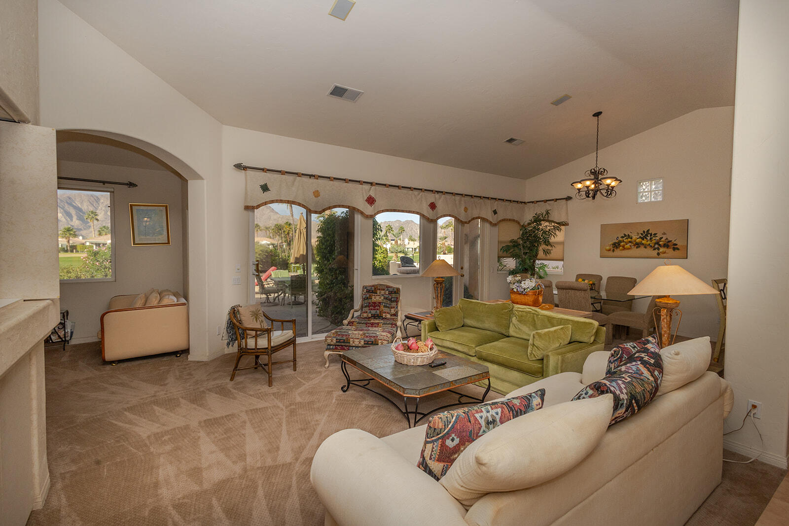 Best price home right on the golf course. The home has an unbelievable view that is priceless of 5th fairway of the Pete Dye designed Dunes Course that is part of the La Quinta Resort and followed by mesmerizing views of the southern and western Santa Rosa Mountain range. Oversized pool and spa in a very large back yard (oversized lot)with outdoor BBQ allows for gatherings, relaxing and watching sunsets or golfers going by. The home features a Great Room with fireplace, a study area for a small den, office or bedroom, dining room, custom wet bar and very open kitchen. The Primary bedroom has those same amazing views mentioned as well as a large en-suite and walk-in closet. Second bedroom has two double beds, french doors to an outside patio and en-suite. Detached casita features queen size bed, large closet and en-suite and a private patio. This home is just that...a home not just a house. Once inside you instantly relax and admire the unbelievable views. Offered furnished subject to seller personal items, but basically fully furnished. La Quinta Fairways is the gem of La Quinta with low HOA fees, warm and friendly neighbors and close proximity to everything - Old Town LQ, Indian Wells Tennis Gardens, Music Festivals, Art Festival and so much more. Come take a look you will be so glad that you came to see this home with such a gorgeous panoramic view of the Santa Rosa Mountains. Furnished per seller inventory. Home is sold as is.Interested in this Listing?