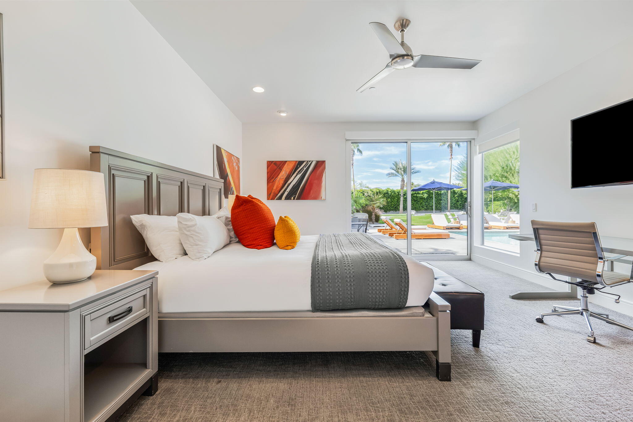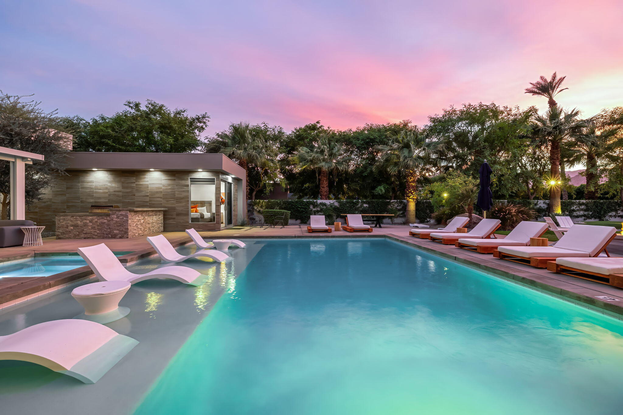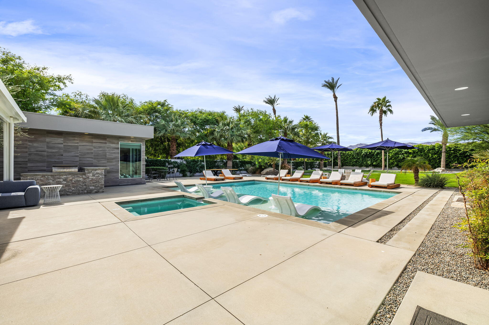 Nestled in the prestigious Polo Villas neighborhood in La Quinta, this striking contemporary estate offers the perfect blend of luxury and comfort. With 6 bedrooms and 6.5 bathrooms, this 3,636 sq ft home is an entertainer's dream. Featuring clean, modern lines and architecture, the home boasts soaring ceilings and a host of high-end amenities. Set on an oversized lot, the home provides plenty of outdoor space, including a luxurious pool and spa area, a 3-hole putting courses, outdoor kitchen and an inviting outdoor firepit--perfect for entertaining or simply unwinding in style. Upon entering, you're immediately drawn to the open-concept living area, which is thoughtfully designed with elevated furnishings, and cozy fireplace creating an ideal space for gatherings. The home offers two master suites, each with en-suite bathrooms and large walk-in closets, ensuring maximum comfort and privacy. The remaining four bedrooms also include their own private bathrooms, making it a perfect setting for family or guests. Additional amenities include a private, gated community, solar energy system, Level 2 EV charger, and most importantly, short-term vacation rental approved in the city of La Quinta, offering flexibility for both personal use and investment. This villa truly delivers the ultimate in modern luxury living, with an emphasis on comfort, privacy, and style. A must see when looking to add to your investment portfolio or for your new desert retreat.Interested in this Listing?
