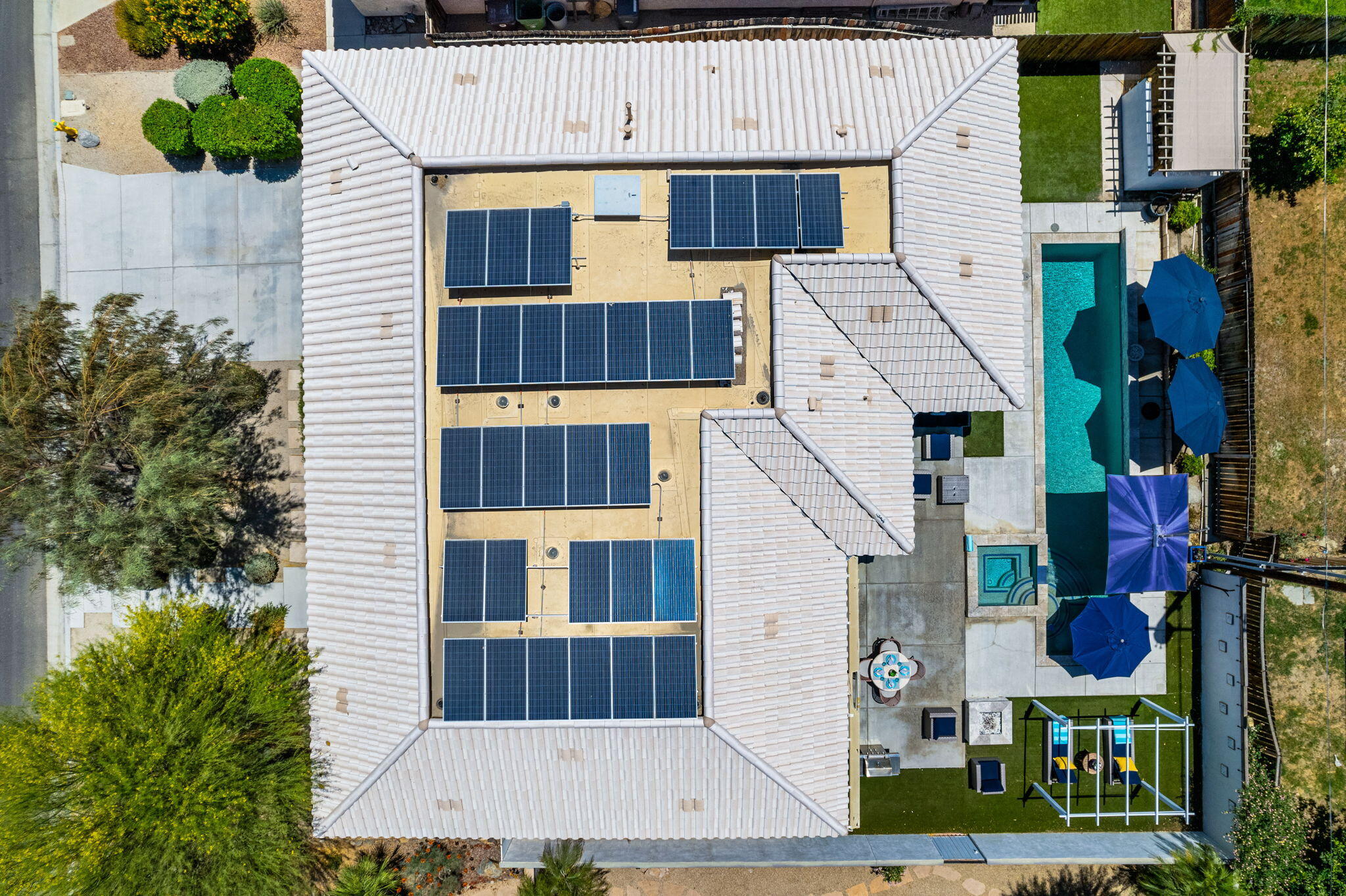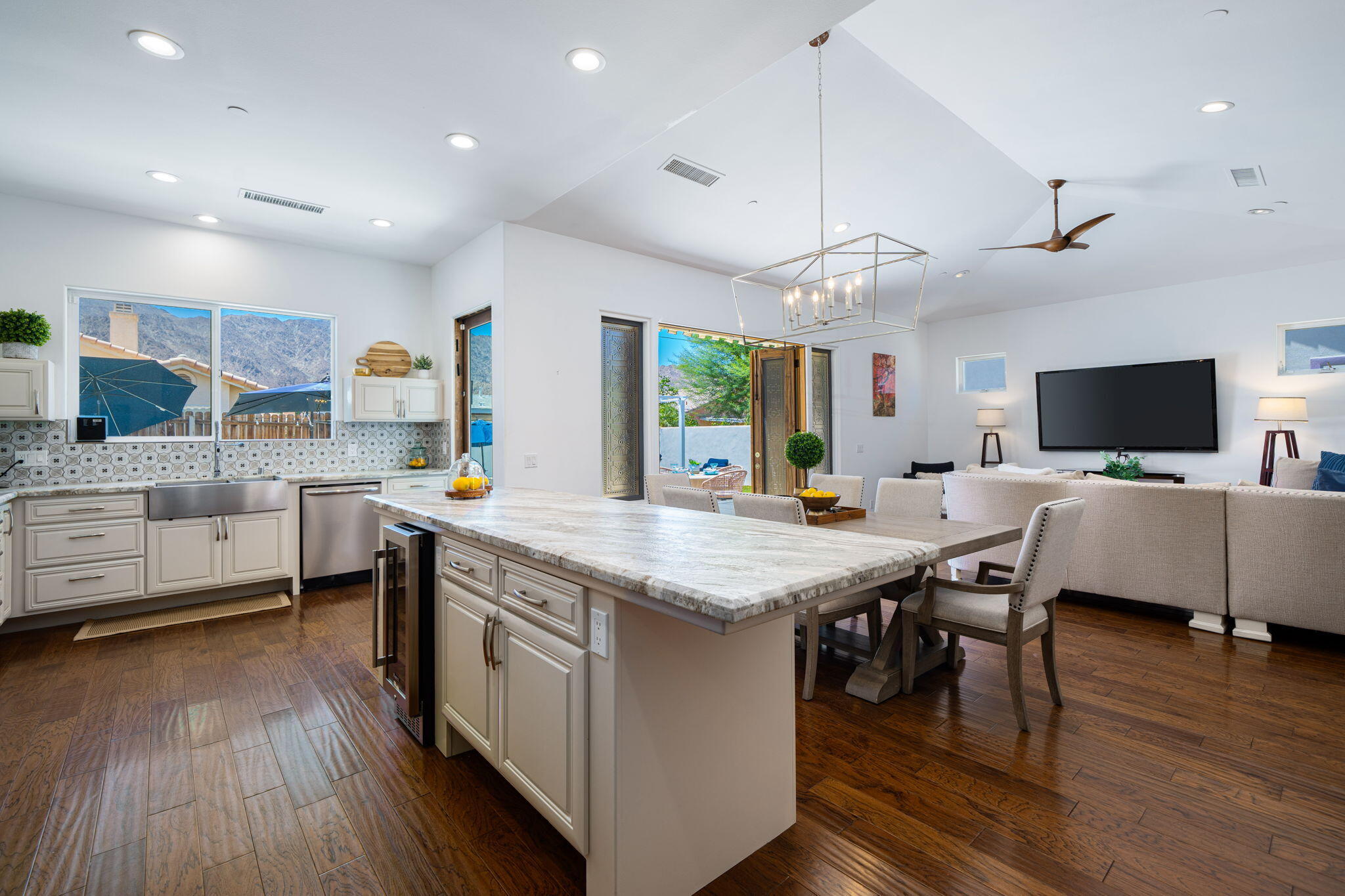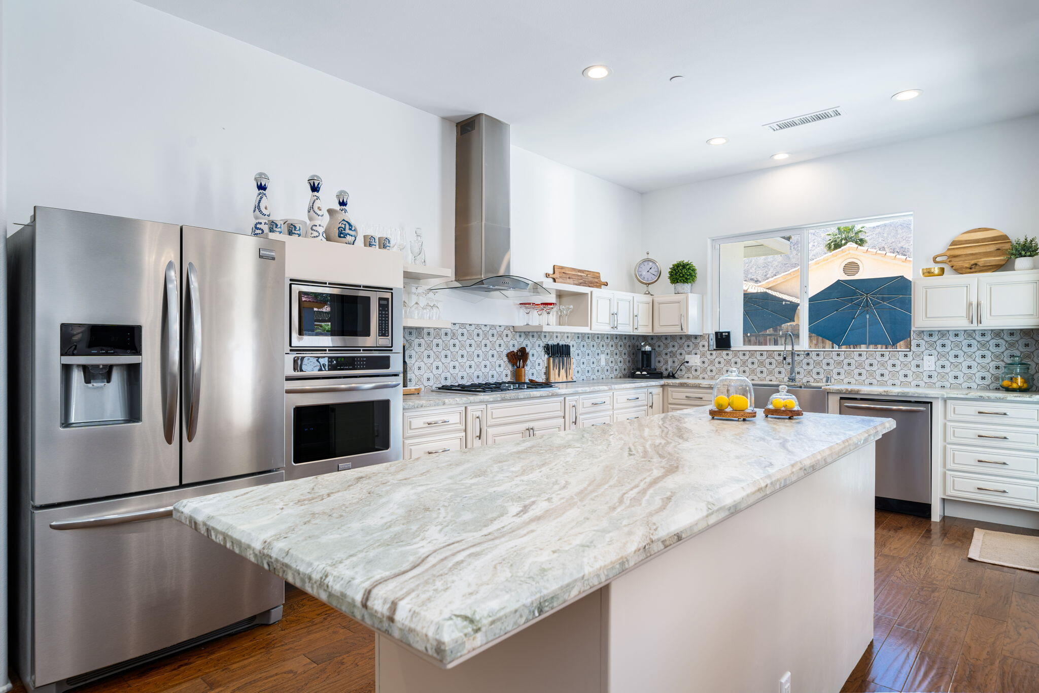 Welcome to your oasis in La Quinta Cove, where luxury seamlessly blends with functionality! This bespoke residence boasts three bedrooms and three bathrooms, offering spacious and comfortable living spaces. Nestled on an expansive lot, this west-facing retreat harmoniously integrates indoor and outdoor living. Step into your paradise featuring a pristine pool and spa--a tranquil haven for relaxation and entertainment. Stay cool during warmer months with the misting system, or cozy under the stars by the inviting gas firepit. The generous main bedroom sanctuary features his and her closets, ensuring ample storage. Indulge in the main bathroom's luxurious amenities, including a soaking tub and a frameless, enclosed marble shower. Unleash your inner chef in the gourmet kitchen, appointed with leathered granite countertops and top-of-the-line appliances. Bi-folding French doors seamlessly connect the indoor and outdoor spaces, inviting in natural light and refreshing breezes. Additional highlights include an oversized garage, abundant storage options, lofty ceilings, a built-in natural gas BBQ grill, and multiple shaded retreats. Enjoy year-round comfort and savings with the paid solar panel system, ensuring energy efficiency and peace of mind. Conveniently situated within walking distance to charming Old Town, this property offers more than just a residence--it presents a lifestyle. Don't let this opportunity slip away--claim your slice of paradise today!Interested in this Listing?