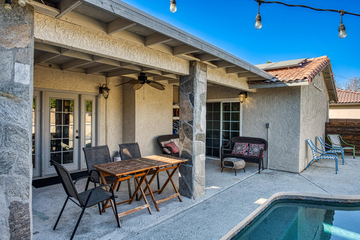 This beautifully maintained 3-bedroom, 2-bath single-level pool home is move-in ready, featuring owned solar panels, stunning mountain views, and no HOA fees.Inside, enjoy vaulted ceilings, tile flooring, recessed lighting, and Smart Home upgrades including a smart thermostat, doorbell, and lock. The spacious living room offers a cozy fireplace, wet bar with sink and glass shelving, and direct access to the backyard.The kitchen boasts white cabinetry, granite tile countertops, stainless steel appliances, and opens to a bright dining area with bay windows. All bedrooms are generously sized, with the primary suite featuring private backyard access and an updated en-suite with a walk-in shower. The secondary bedrooms share an updated full bath with a tub/shower combo.Step outside to your private entertainer's backyard with an in-ground pool and spa, powered by a newly installed Pentair smart system with ScreenLogic remote. A covered patio provides the perfect spot to unwind, and the home includes an attached 2-car garage.Conveniently located near shopping, dining, and more, this turn-key home also offers great vacation rental potential. Don't miss out!Interested in this Listing?