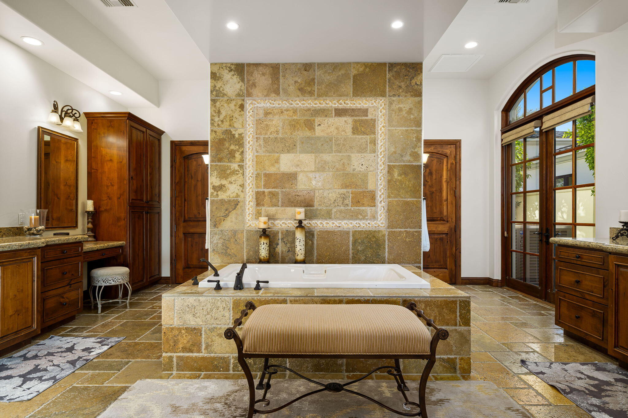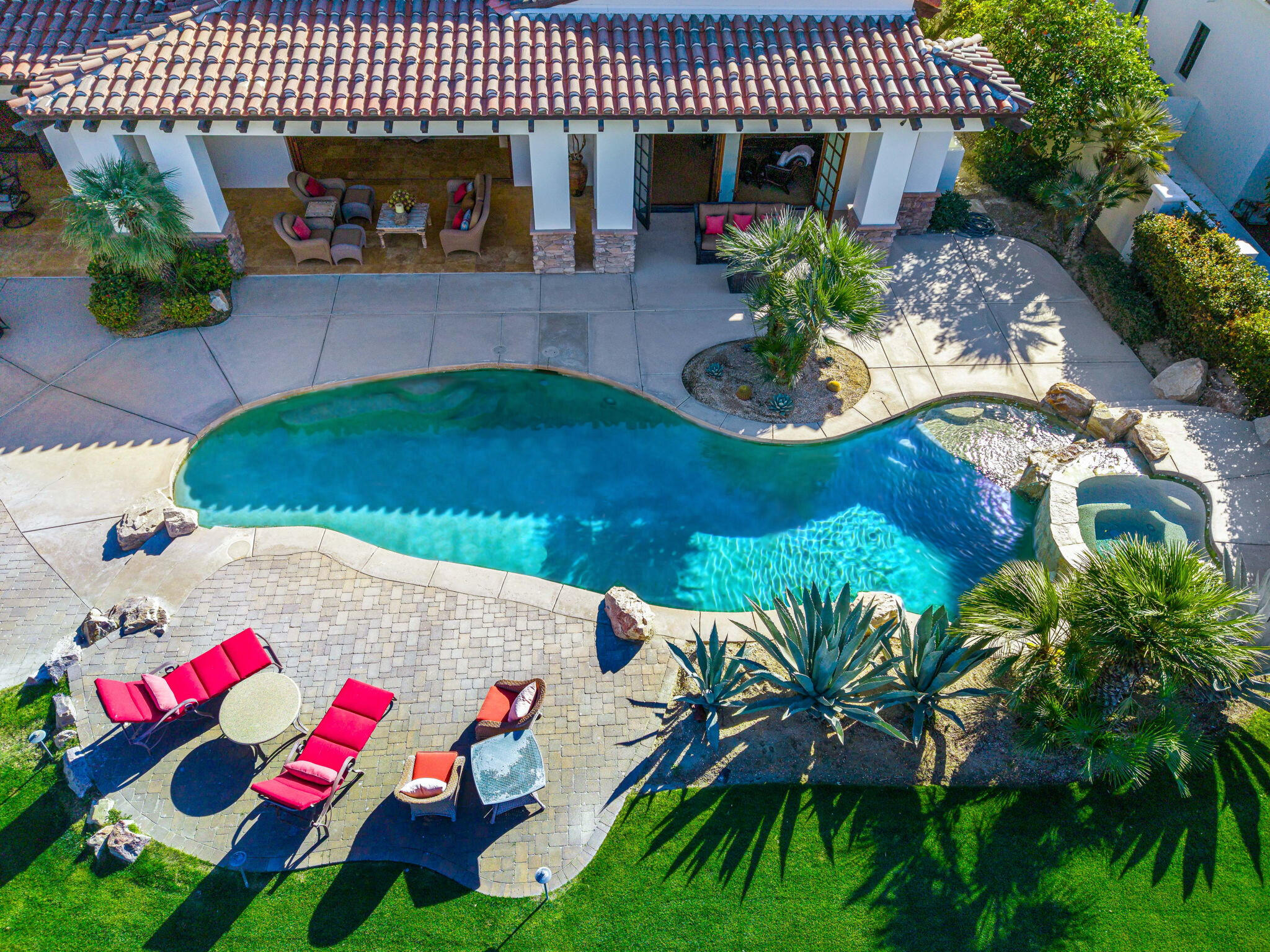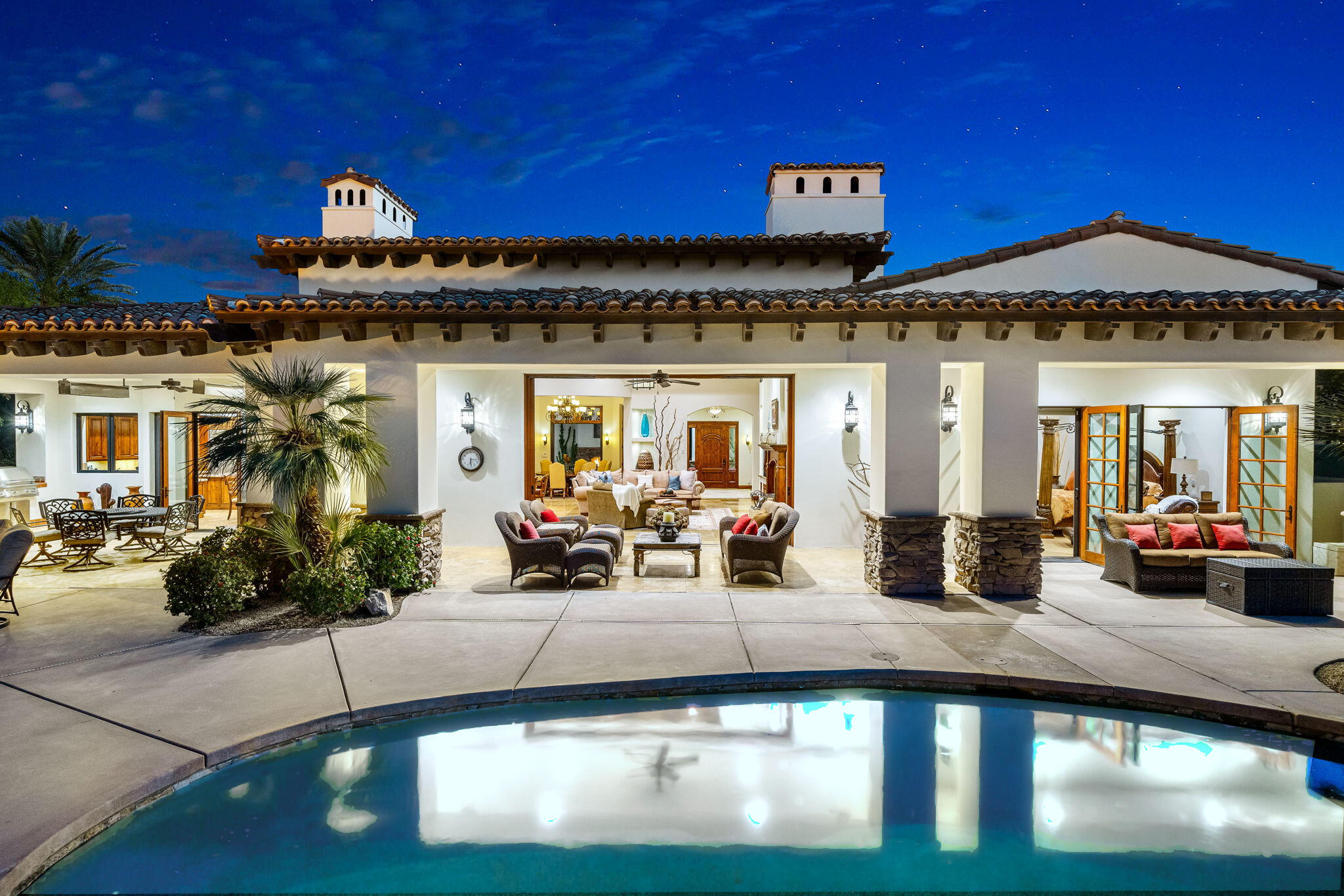 Nestled in a serene setting on a spacious corner homesite, this magnificent 4 Bed, 4+2 Bath custom home offers an unparalleled blend of luxury, comfort, & privacy. As you step through the gates, you're warmly welcomed by a stunning private courtyard with a cozy fireplace, perfect for those crisp desert evenings. The great room is a highlight of the home, featuring expansive pocket windows that frame gorgeous waterfall & lake views, creating a seamless connection between indoor & outdoor living. For wine enthusiasts, the temperature-controlled wine room, adjacent to the elegant dining room, ensures your collection is stored in optimal conditions. The spacious primary retreat is a sanctuary, offering a peaceful escape from the everyday hustle. In addition to the 3 spacious guest bedrooms, this home features a beautifully appointed office or an inviting den, designed with a blend of comfort & style, providing ample room for productivity or relaxation, & rest. The backyard offers privacy & tranquility, with a gorgeous waterfall & an expansive grassy area, perfect for outdoor activities & gatherings. The entertainment area, complete with a fire pit, is ideal for hosting, while the outdoor dining room, equipped with a BBQ & heaters, allows for stylish al fresco dining year-round. This home is a true masterpiece, offering luxurious living with exceptional amenities. Don't miss the opportunity to make this extraordinary property your own - contact us today!Interested in this Listing?