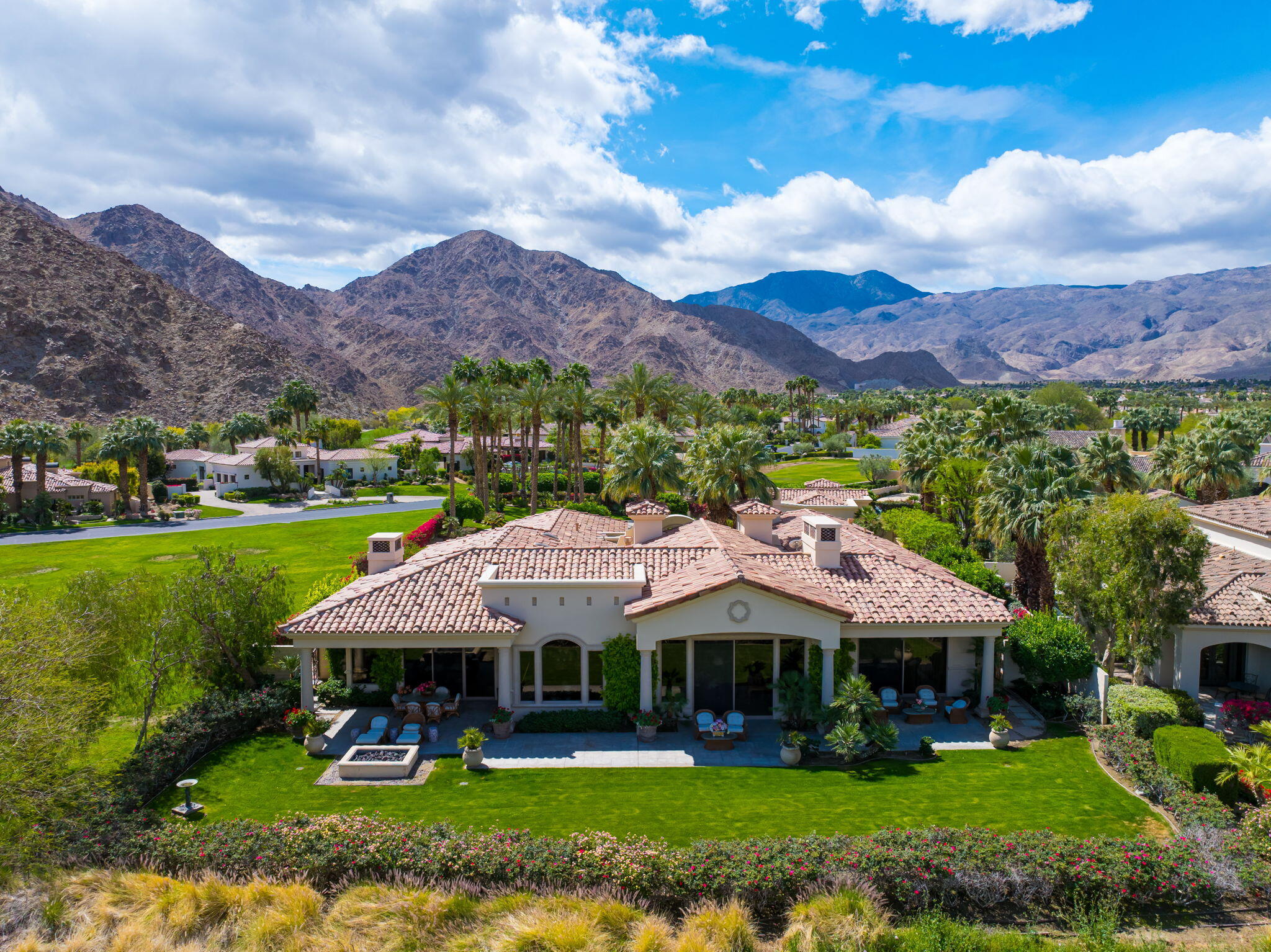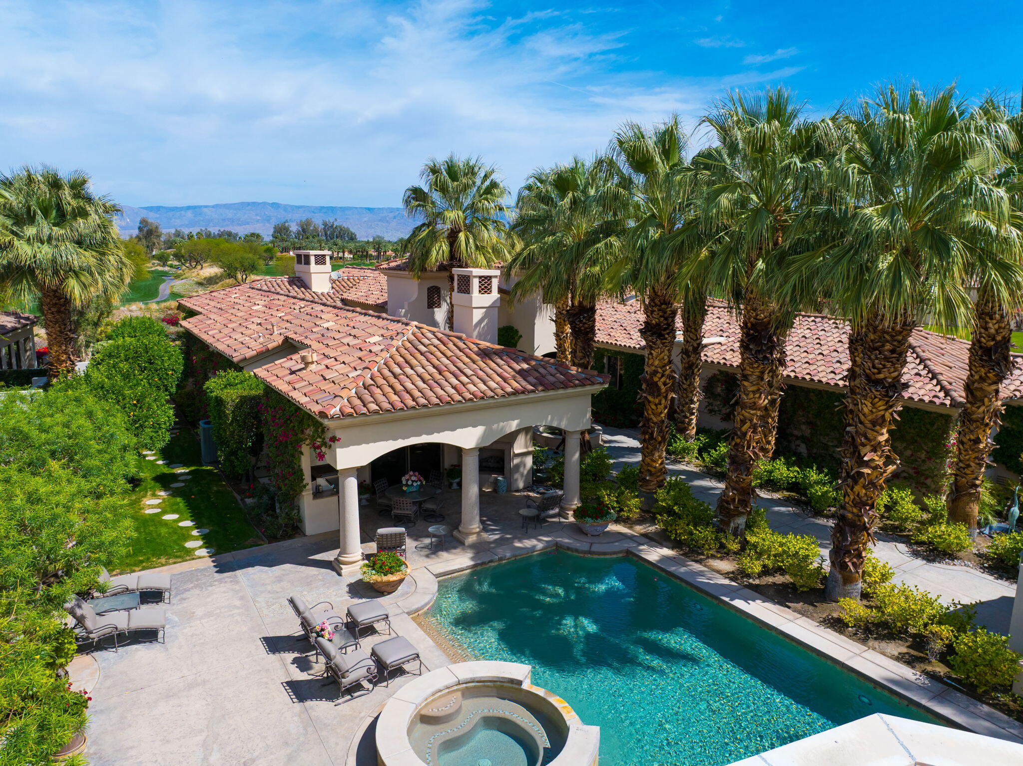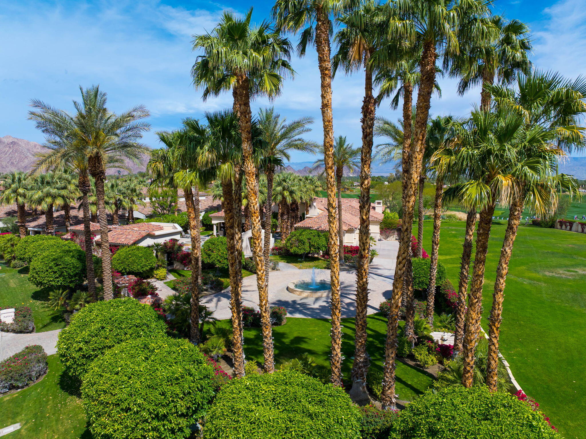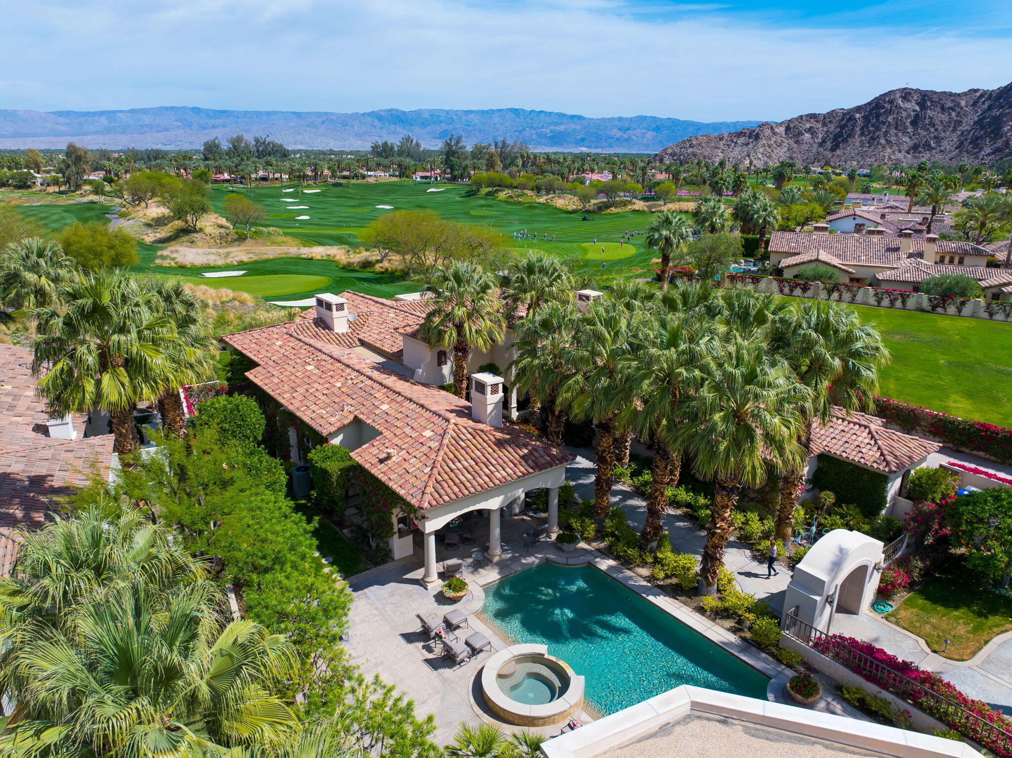 Nestled on an impressive 0.88-acre lot, this magnificent estate offers unparalleled privacy and luxury, with a motorized gate and circular drive leading to a stunning fountain courtyard. Positioned on the 6th hole of the prestigious Tradition Golf Club, the property enjoys prime views of the course, along with convenient access to the driving range and a short cart ride to the clubhouse and Coyote Cafe. This thoughtfully designed home features four spacious bedrooms, each with its own ensuite bath. The primary suite is a true retreat, offering breathtaking views of the golf course, a dedicated office, and an opulent bathroom with dual vanities, a soaking tub, a large shower, and a huge walk-in closet. The vaulted wood ceilings in the living room exude warmth and elegance, complemented by a wet bar perfect for entertaining. A gourmet kitchen opens into a cozy family room, complete with built-in cabinetry and a TV for relaxed living. The dining room provides a serene setting with gorgeous views of the courtyard, making every meal feel special. The third bedroom has been creatively transformed into an art studio, featuring beautiful built-ins that enhance the space's functionality. Additionally, the private casita offers a separate retreat, with its own living room, kitchenette, and an en-suite bath. The casita can be accessed through both the bedroom and the living area, ensuring ultimate privacy for guests or family. The property boasts a true outdoor oasis, with a sparkling pool and south-facing sun, ideal for relaxing and enjoying the beautiful desert weather. The yard is further enhanced by large palm trees, citrus trees, and a generous side yard with a large, attached dog house, making this the perfect home for pet lovers. Offered furnished per inventory.Interested in this Listing?