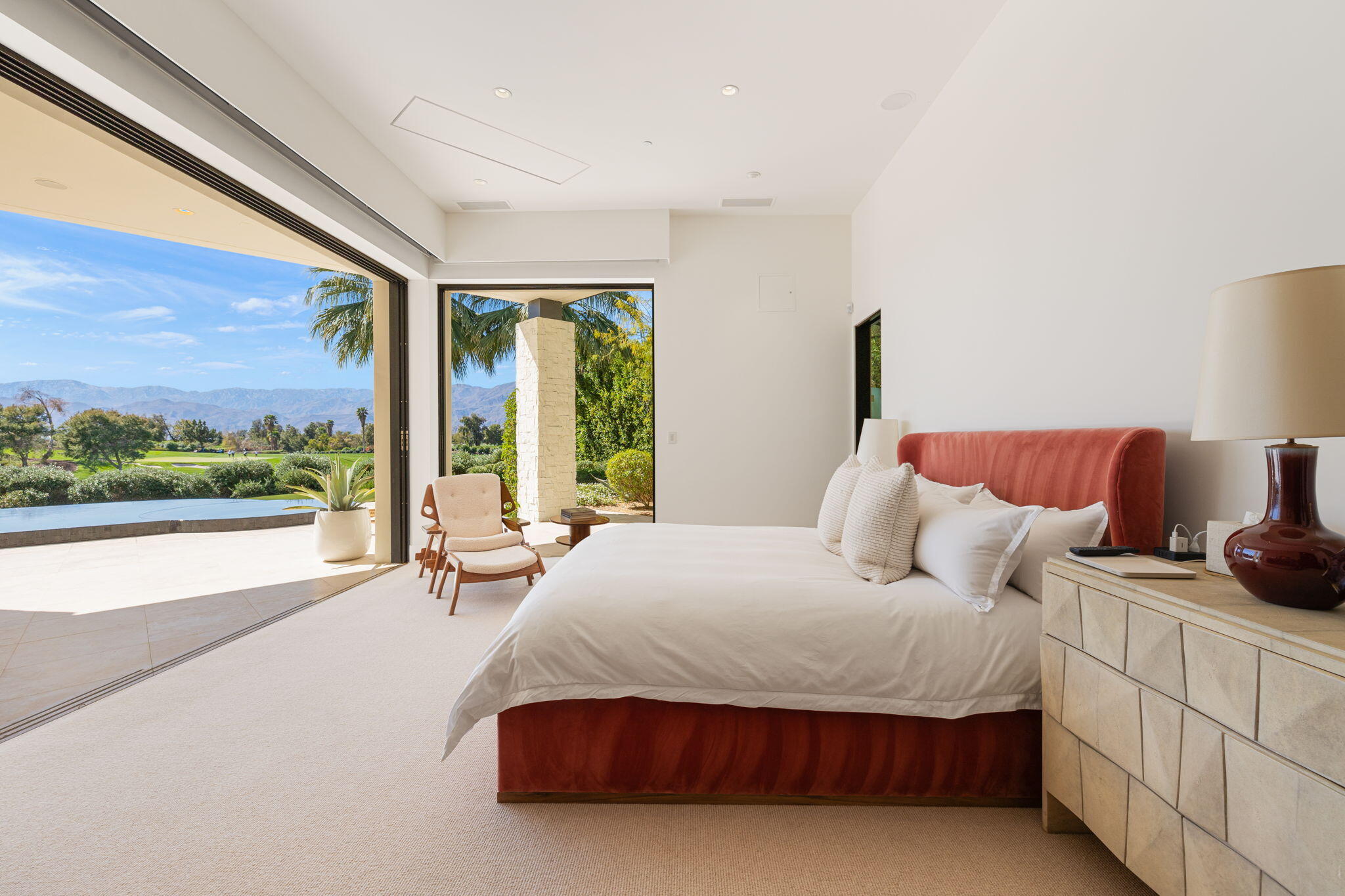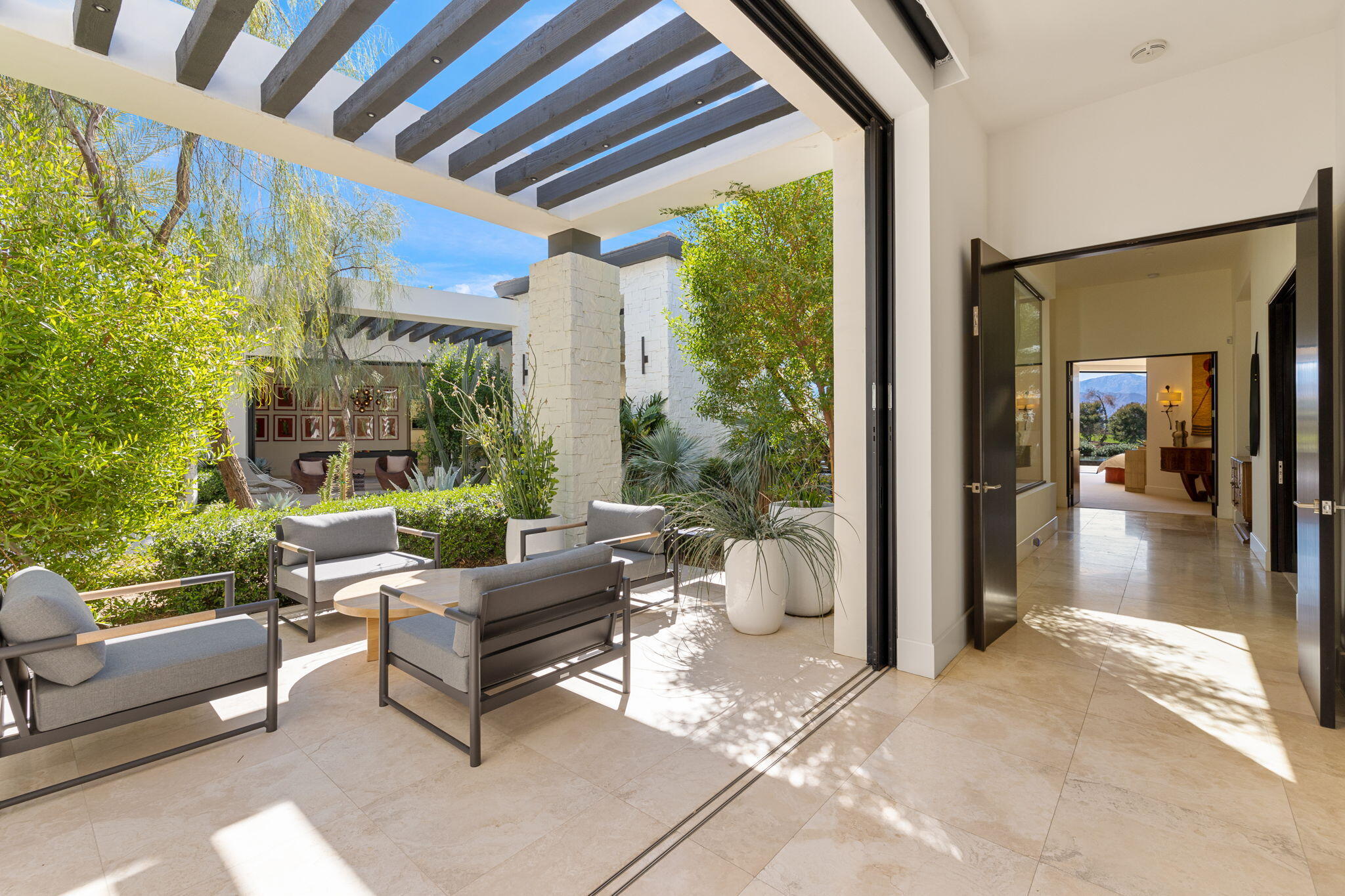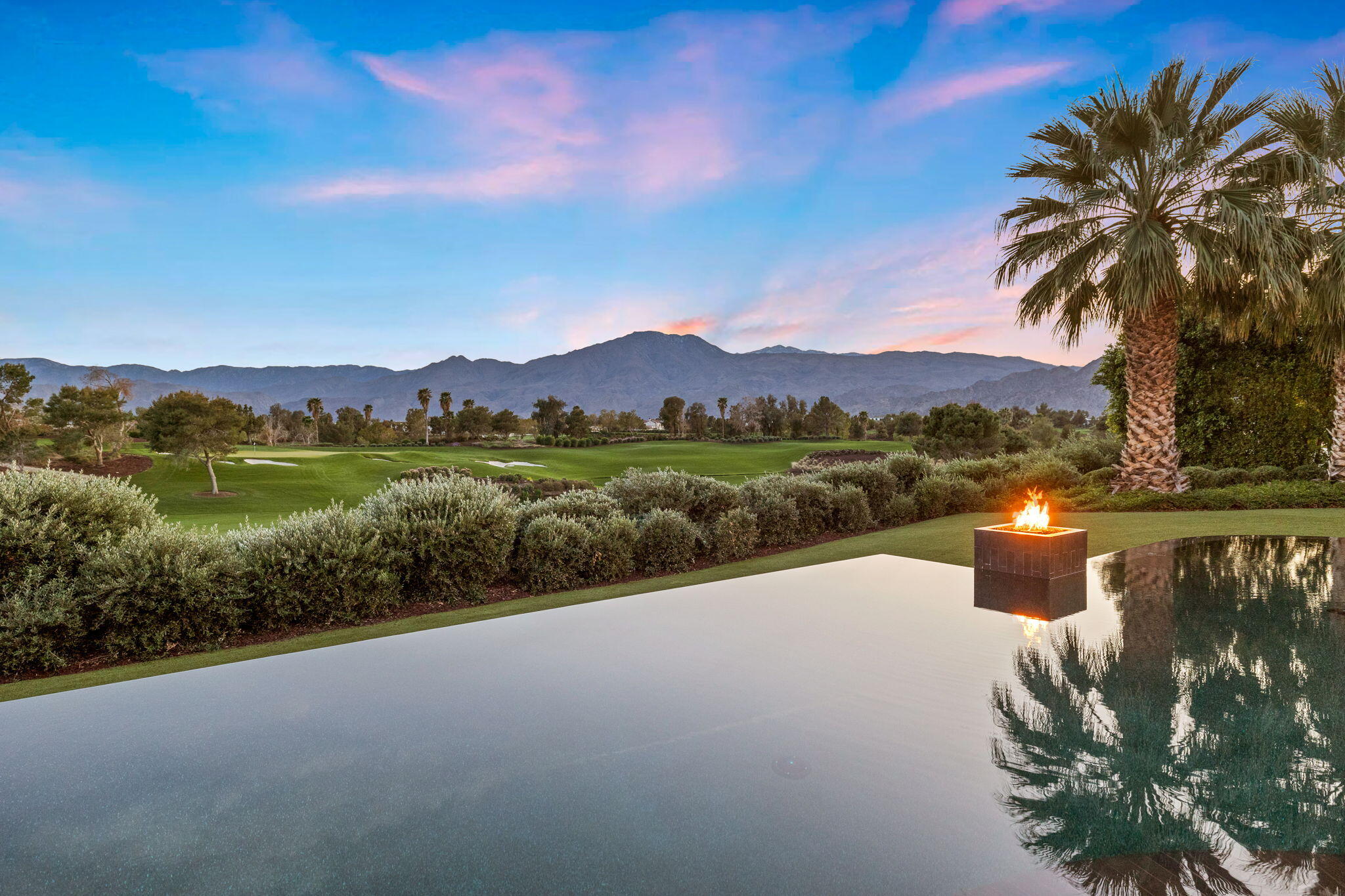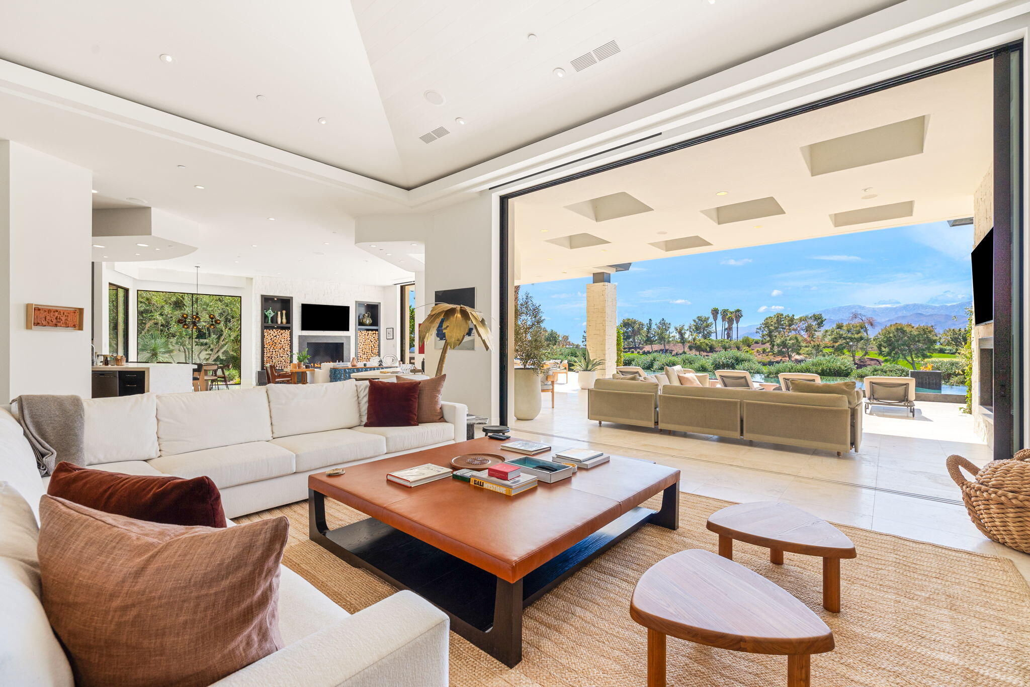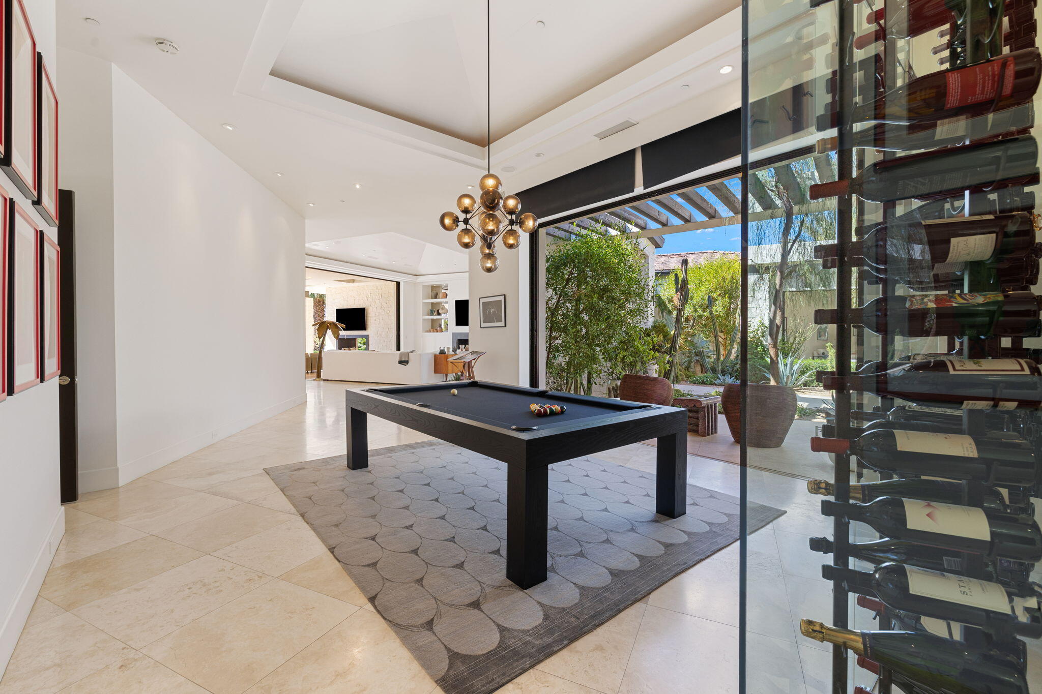 Casual Contemporary Sophistication Amidst Ultra-Exclusive Desert Private Golf Club!Experience the epitome of luxury living at the exclusive Madison Club, the Desert's crown jewel of Private Golf Club Communities. This sophisticated, yet casual, contemporary residence is perched on a premier elevated custom homesite that offers a front-row seat to the renowned Tom Fazio-designed course, overlooking holes 16 and 17 with beautifully contoured lush immaculate fairways and slick pure greens. Southern orientation captures the desert's winter sun and brilliant blue skies and the magnificence of the Santa Rosa Mountains. Floor-to-ceiling glass pocket doors in the living room, family room and primary bedroom that seamlessly blend indoor luxury with breathtaking outdoor panoramic vistas and sparkling infinity pool/spa. Comprising 5,978', this residence features 4 BD/5 BA, formal dining with glass wine-wall, casual dining options, office/media refuge and serene, mature landscapes. The home's interior is a testament to refined taste, with travertine floors, limestone counters and multiple fire features including 5 generous interior and exterior fireplaces and poolside fire pots to capture the essence of warmth and comfort. The elegant primary on-view suite offers ultimate privacy. Three ensuite guest bedrooms, plus shared lounge and multiple tranquil patios, ensure comfort for family and guests. The heart of the home seamlessly joins spacious living areas, epicurean kitchen with butler's pantry and central bar for family enjoyment and intimate gatherings. The Madison Club provides an ultra-exclusive lifestyle with unsurpassed community security. Additionally, Madison Club Members enjoy access to world-class amenities beyond golf and include premium clubhouse concierge services and home care, unparalleled staffing, multiple gourmet dining opportunities, a majestic Club pool, state of the art fitness and spa and a variety of popular racquet sports. Madison Club has establishInterested in this Listing?
