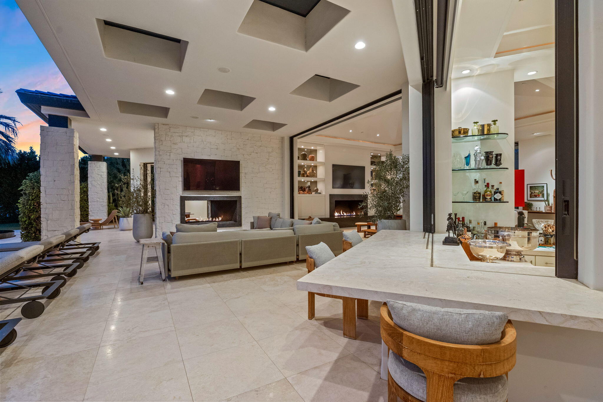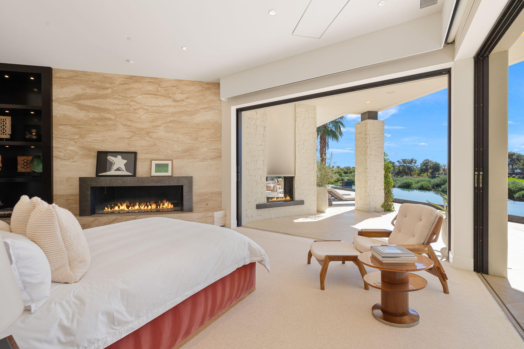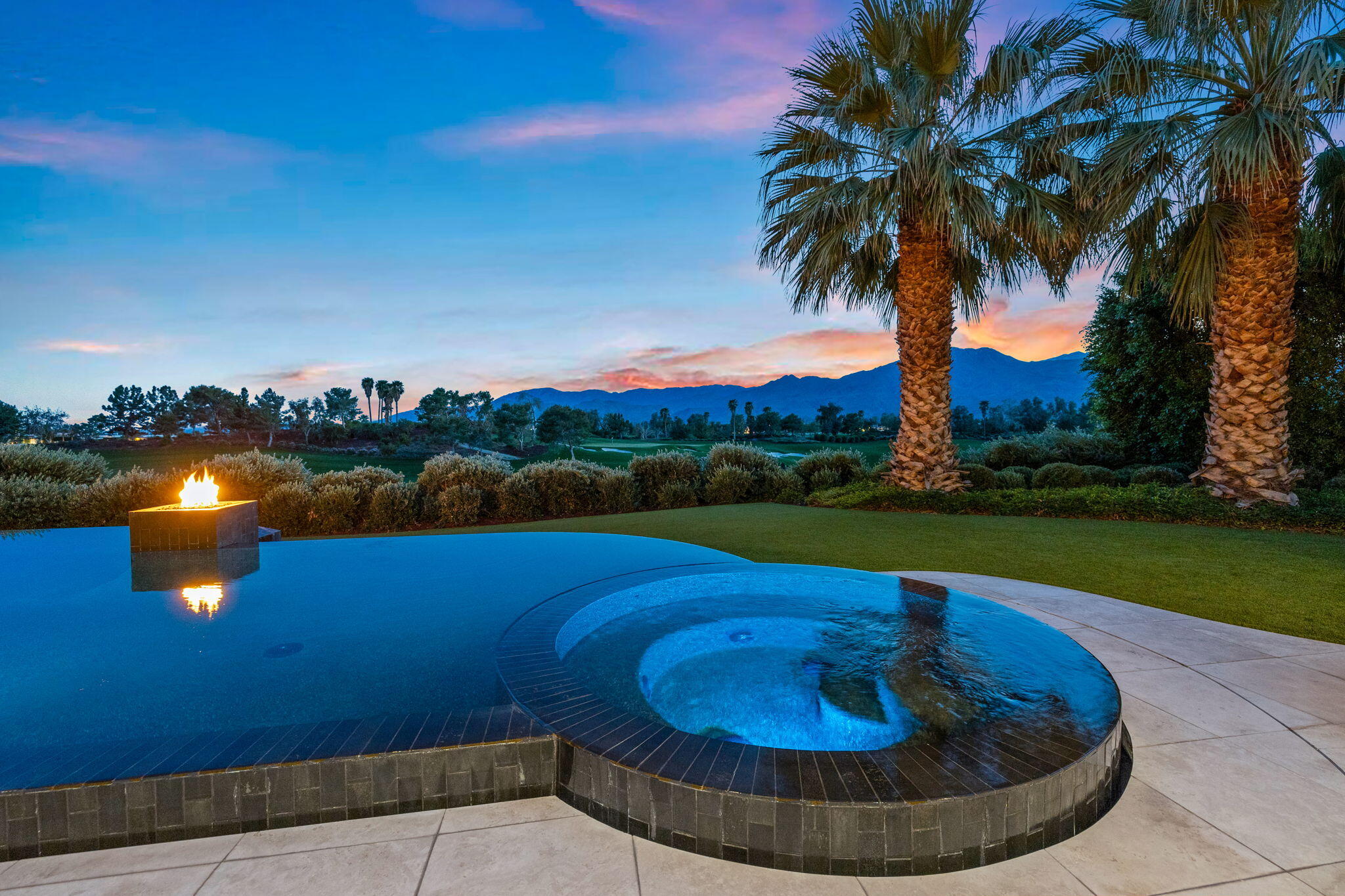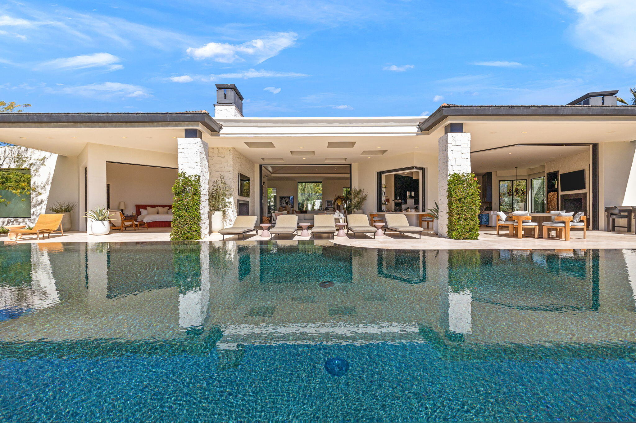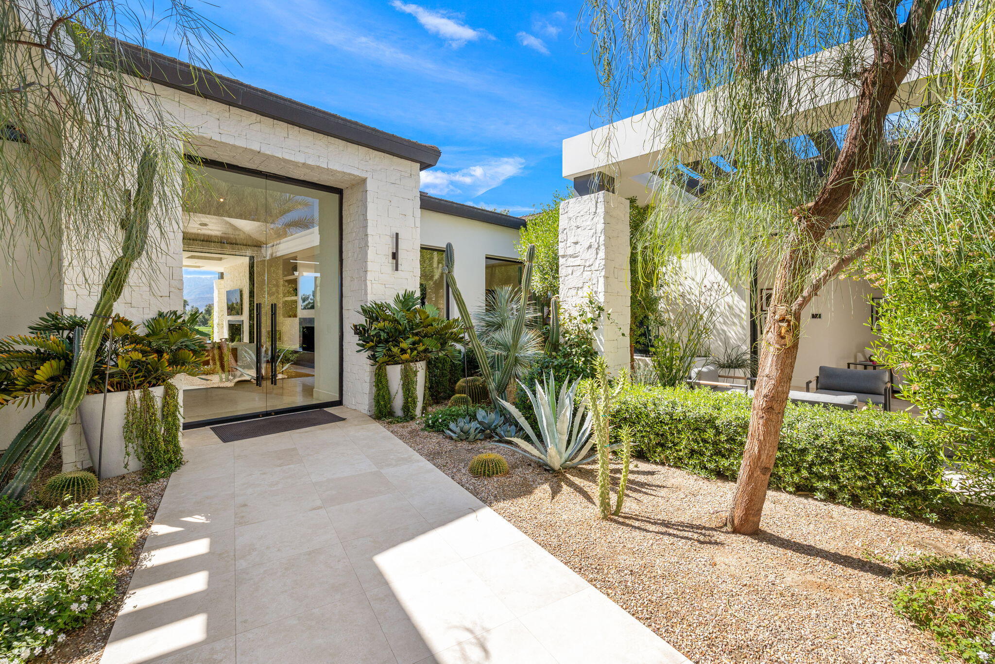Casual Contemporary Sophistication Amidst Ultra-Exclusive Desert Private Golf Club!Experience the epitome of luxury living at the exclusive Madison Club, the Desert's crown jewel of Private Golf Club Communities. This sophisticated, yet casual, contemporary residence is perched on a premier elevated custom homesite that offers a front-row seat to the renowned Tom Fazio-designed course, overlooking holes 16 and 17 with beautifully contoured lush immaculate fairways and slick pure greens. Southern orientation captures the desert's winter sun and brilliant blue skies and the magnificence of the Santa Rosa Mountains. Floor-to-ceiling glass pocket doors in the living room, family room and primary bedroom that seamlessly blend indoor luxury with breathtaking outdoor panoramic vistas and sparkling infinity pool/spa. Comprising 5,978', this residence features 4 BD/5 BA, formal dining with glass wine-wall, casual dining options, office/media refuge and serene, mature landscapes. The home's interior is a testament to refined taste, with travertine floors, limestone counters and multiple fire features including 5 generous interior and exterior fireplaces and poolside fire pots to capture the essence of warmth and comfort. The elegant primary on-view suite offers ultimate privacy. Three ensuite guest bedrooms, plus shared lounge and multiple tranquil patios, ensure comfort for family and guests. The heart of the home seamlessly joins spacious living areas, epicurean kitchen with butler's pantry and central bar for family enjoyment and intimate gatherings. The Madison Club provides an ultra-exclusive lifestyle with unsurpassed community security. Additionally, Madison Club Members enjoy access to world-class amenities beyond golf and include premium clubhouse concierge services and home care, unparalleled staffing, multiple gourmet dining opportunities, a majestic Club pool, state of the art fitness and spa and a variety of popular racquet sports. Madison Club has establishInterested in this Listing?