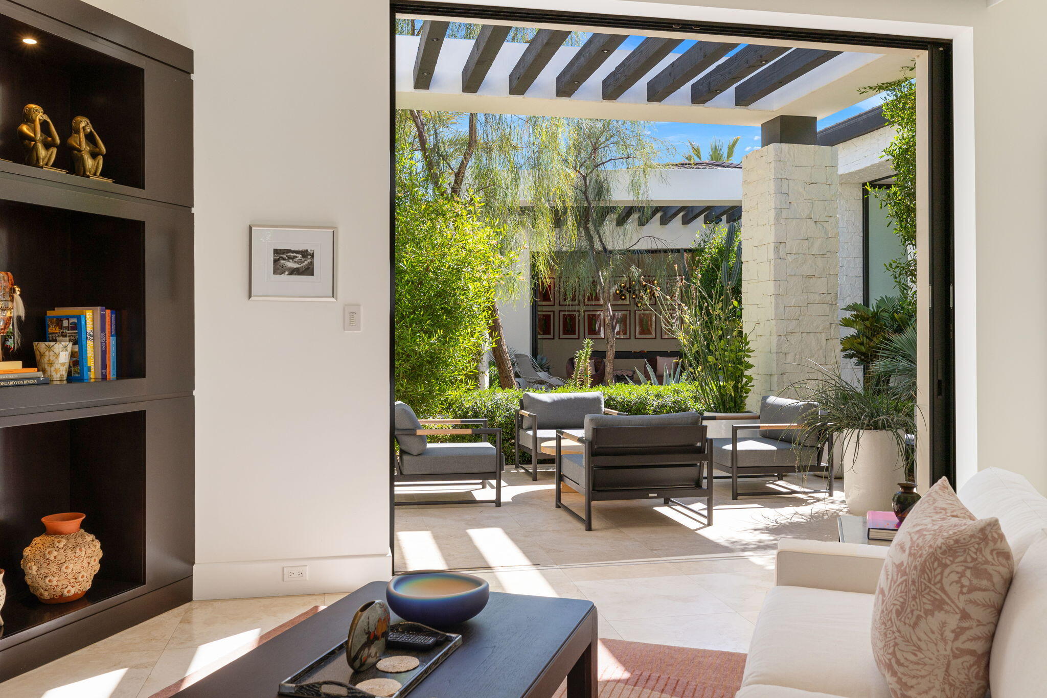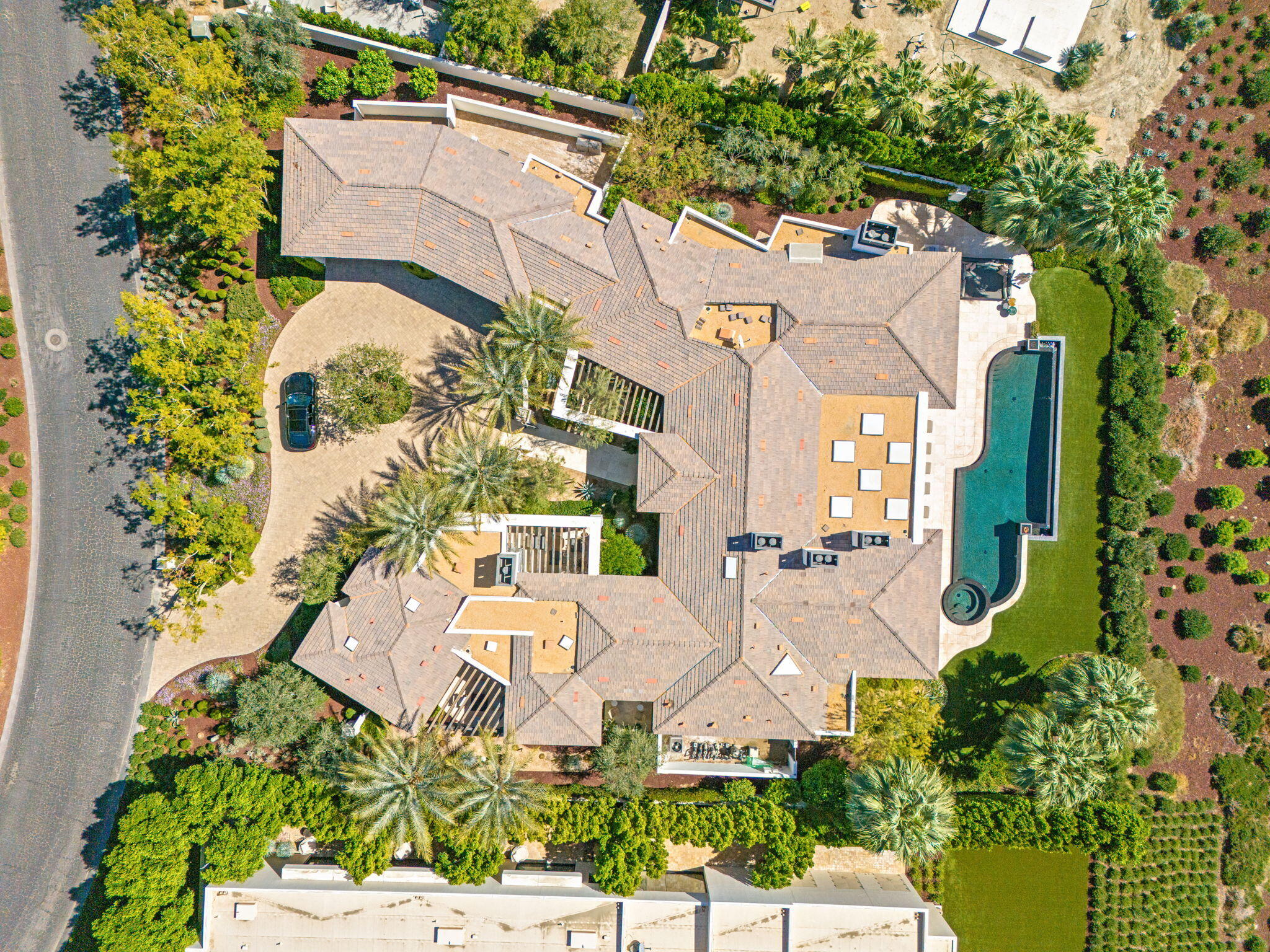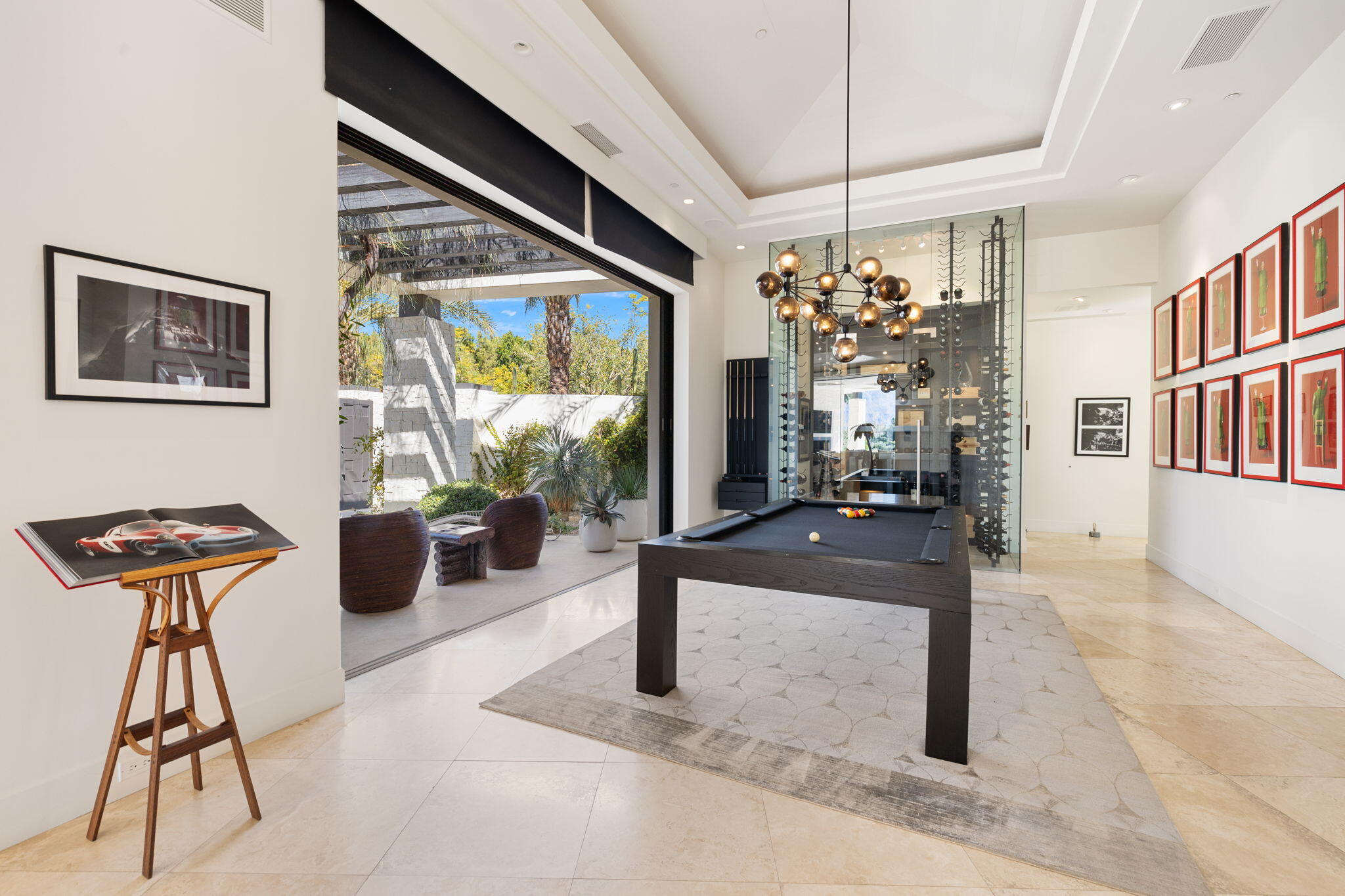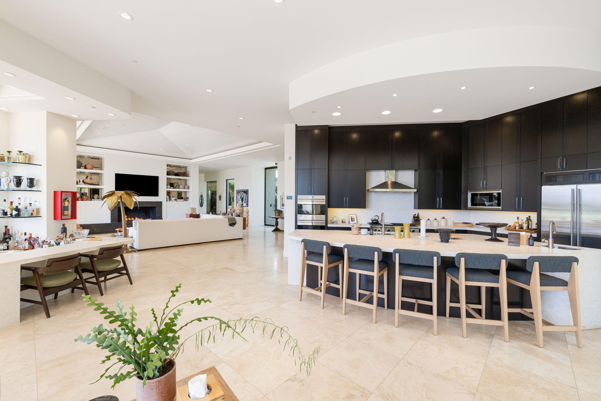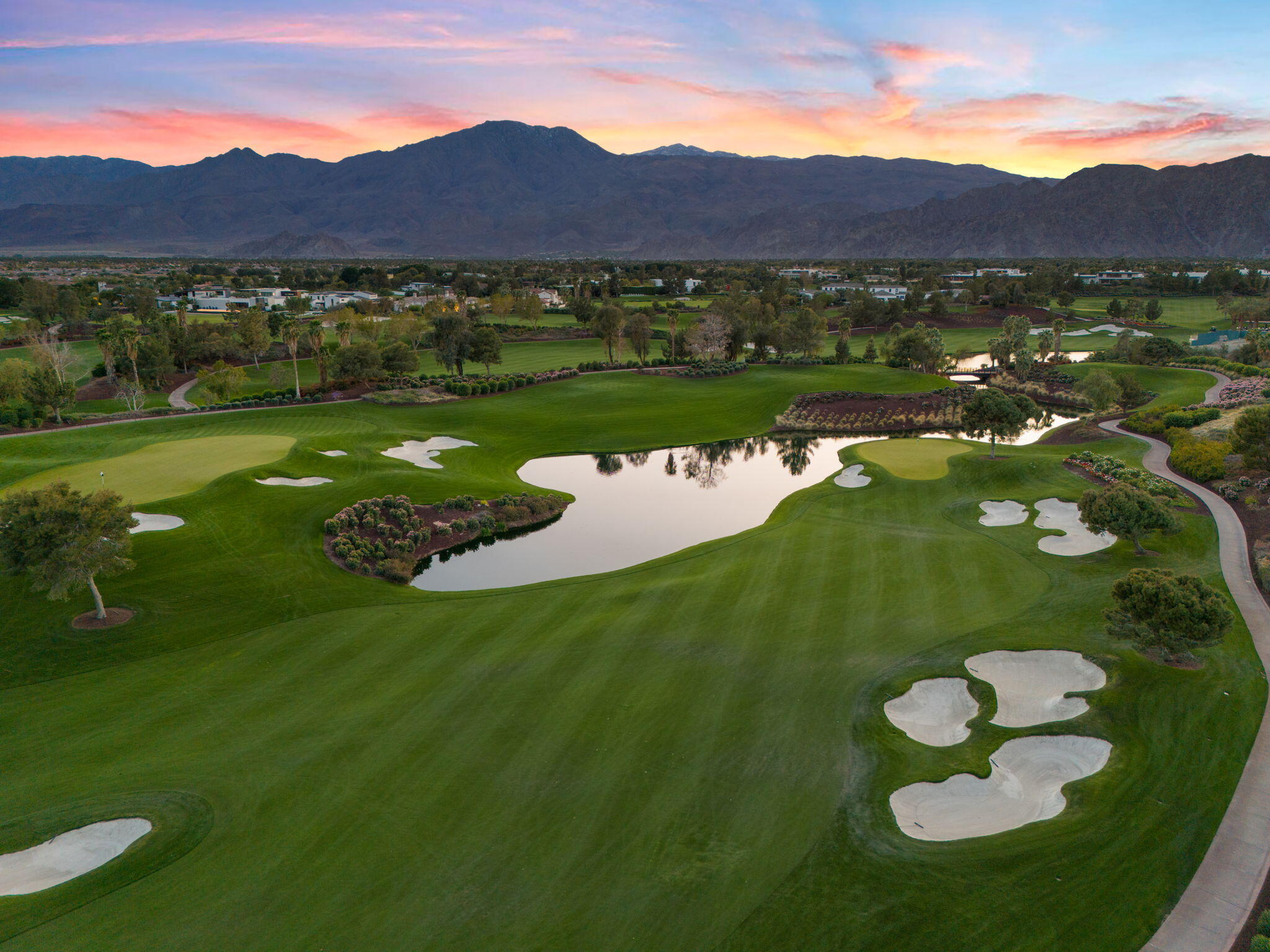 Casual Contemporary Sophistication Amidst Ultra-Exclusive Desert Private Golf Club!Experience the epitome of luxury living at the exclusive Madison Club, the Desert's crown jewel of Private Golf Club Communities. This sophisticated, yet casual, contemporary residence is perched on a premier elevated custom homesite that offers a front-row seat to the renowned Tom Fazio-designed course, overlooking holes 16 and 17 with beautifully contoured lush immaculate fairways and slick pure greens. Southern orientation captures the desert's winter sun and brilliant blue skies and the magnificence of the Santa Rosa Mountains. Floor-to-ceiling glass pocket doors in the living room, family room and primary bedroom that seamlessly blend indoor luxury with breathtaking outdoor panoramic vistas and sparkling infinity pool/spa. Comprising 5,978', this residence features 4 BD/5 BA, formal dining with glass wine-wall, casual dining options, office/media refuge and serene, mature landscapes. The home's interior is a testament to refined taste, with travertine floors, limestone counters and multiple fire features including 5 generous interior and exterior fireplaces and poolside fire pots to capture the essence of warmth and comfort. The elegant primary on-view suite offers ultimate privacy. Three ensuite guest bedrooms, plus shared lounge and multiple tranquil patios, ensure comfort for family and guests. The heart of the home seamlessly joins spacious living areas, epicurean kitchen with butler's pantry and central bar for family enjoyment and intimate gatherings. The Madison Club provides an ultra-exclusive lifestyle with unsurpassed community security. Additionally, Madison Club Members enjoy access to world-class amenities beyond golf and include premium clubhouse concierge services and home care, unparalleled staffing, multiple gourmet dining opportunities, a majestic Club pool, state of the art fitness and spa and a variety of popular racquet sports. Madison Club has establishInterested in this Listing?