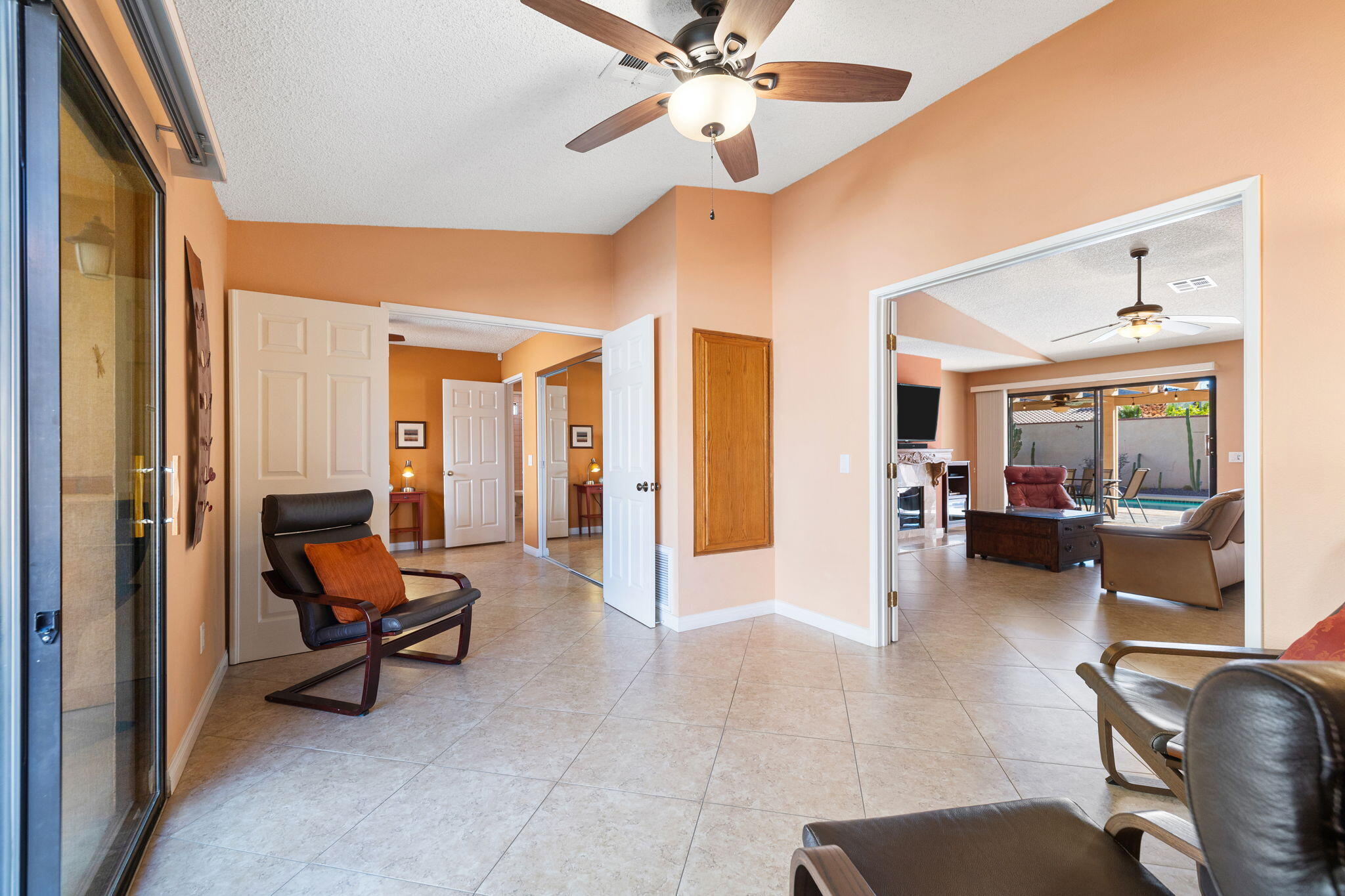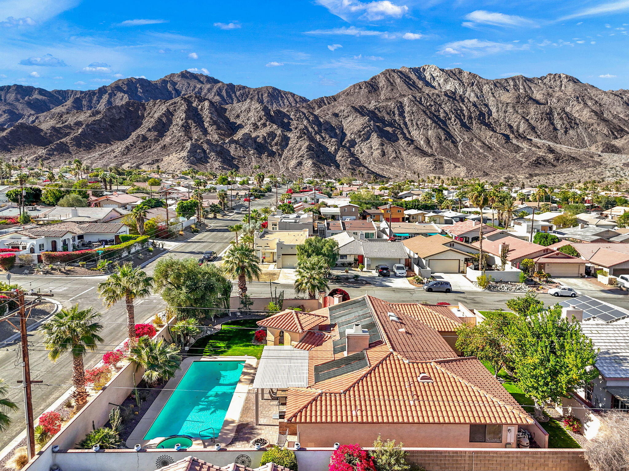 Where else will you find a double, corner, South facing lot with a 40x15ft pool in the La Quinta Cove with a 3 car garage??? Welcome to a one of a kind location in the La Quinta Cove! This unique home located on an oversized, double corner lot was well planned. This 3 bedroom 3 bath home with 1870 sq ft features a south facing backyard, a 40ft x 15ft pool with paid solar heating and a 3 car garage! Upon entering the residence, you are welcomed by a comfortable family room with a fireplace. Of the 3 bedrooms, there are 2 primary size bedrooms. The breakfast nook is always more enjoyable to wake up to with your bright south facing light. Also, the home has a very well maintained and rare 3 car garage! With lush landscaping, close mountain views and curb appeal, this home has an ideal setting surrounded by 400 ft of block wall for security. The yard boasts a lemon, orange and lime tree surrounded by lush green grass. You also have remote operation for the pool equipment, thermostat, front door lock, water heater and heat pump. Other features include a misting system, a new aluma-wood patio cover, a cost saving heat pump HVAC system and underground Fibre Optic Internet hardwired to the home! Your sunny south facing retreat awaits!Interested in this Listing?