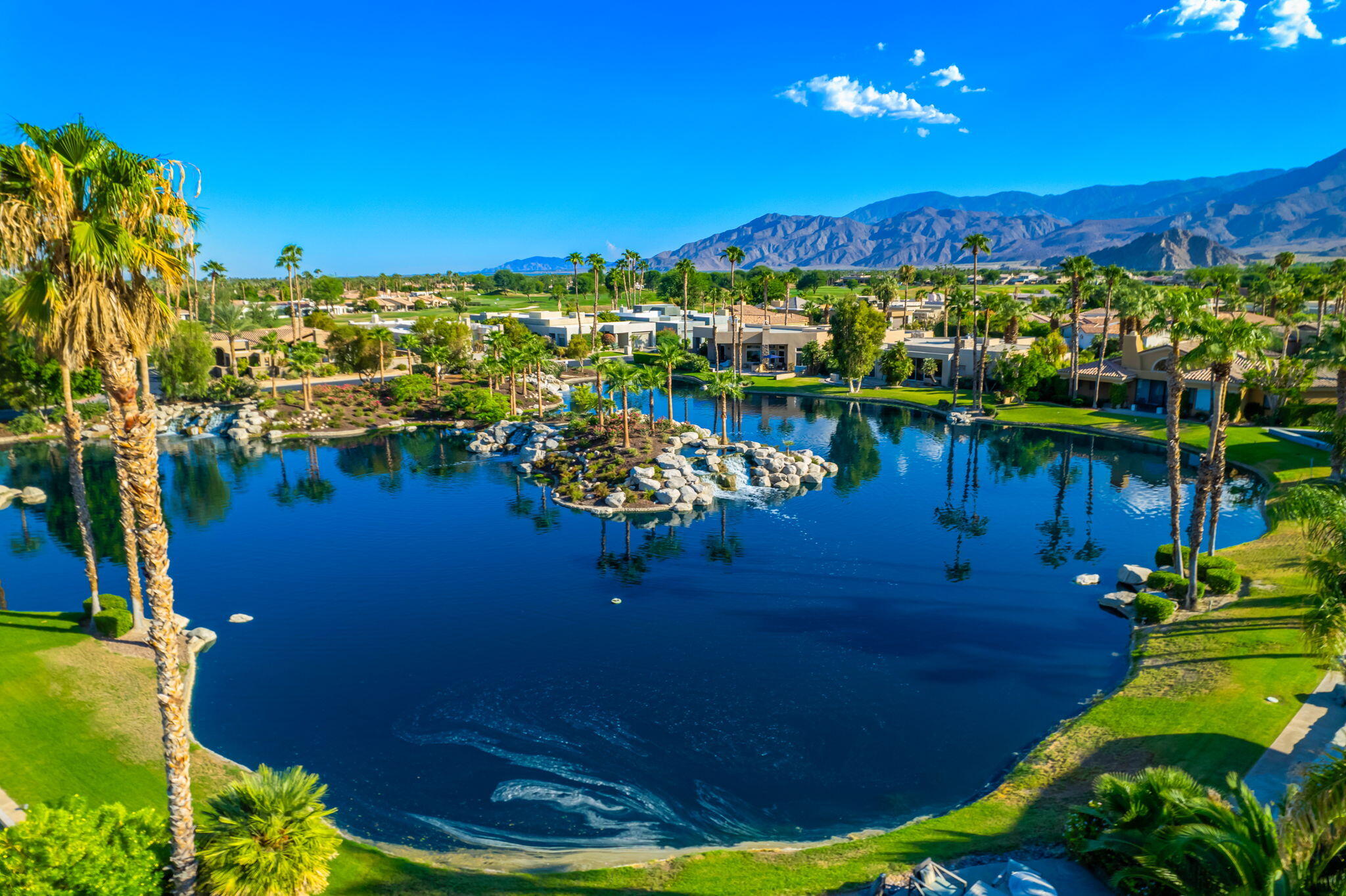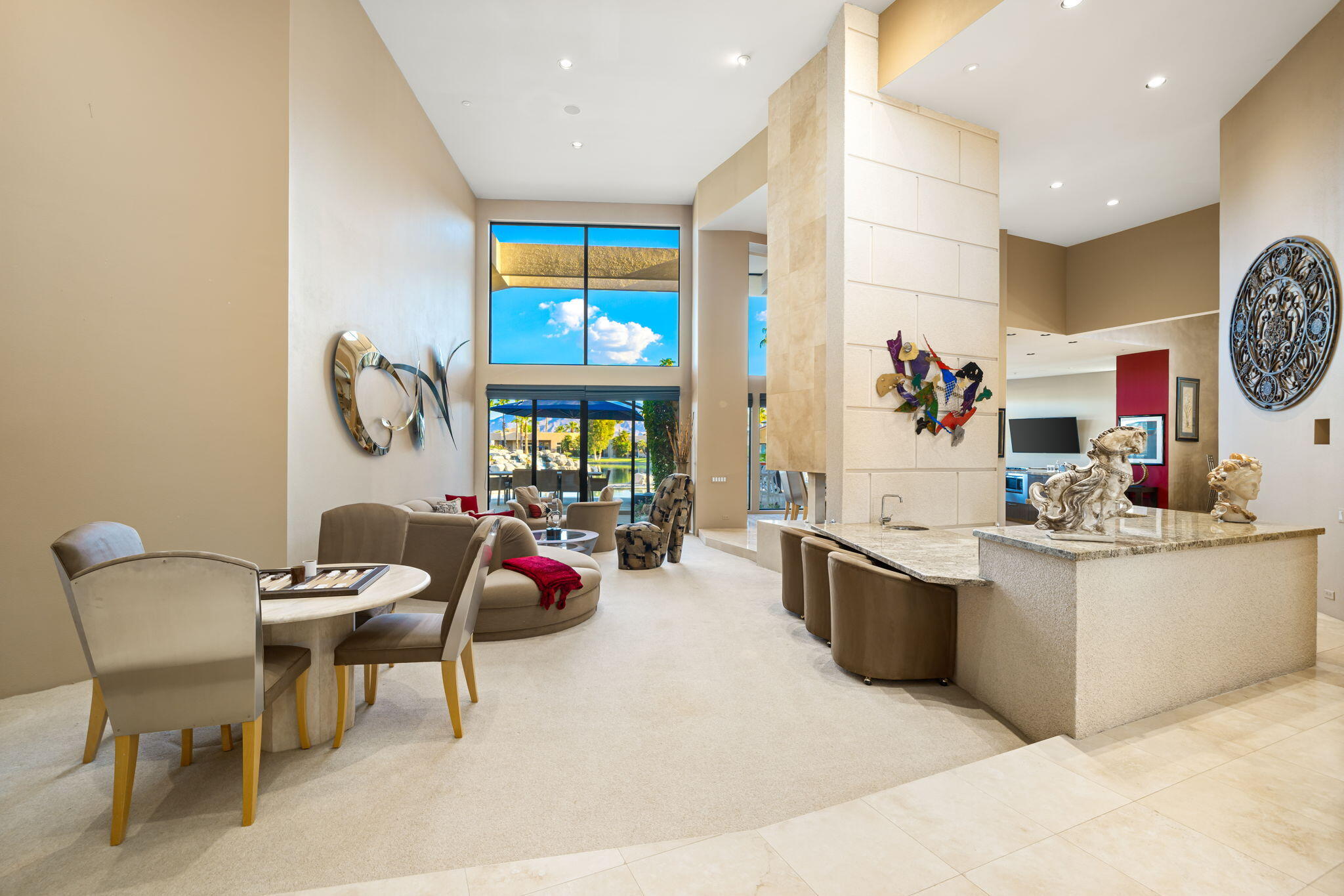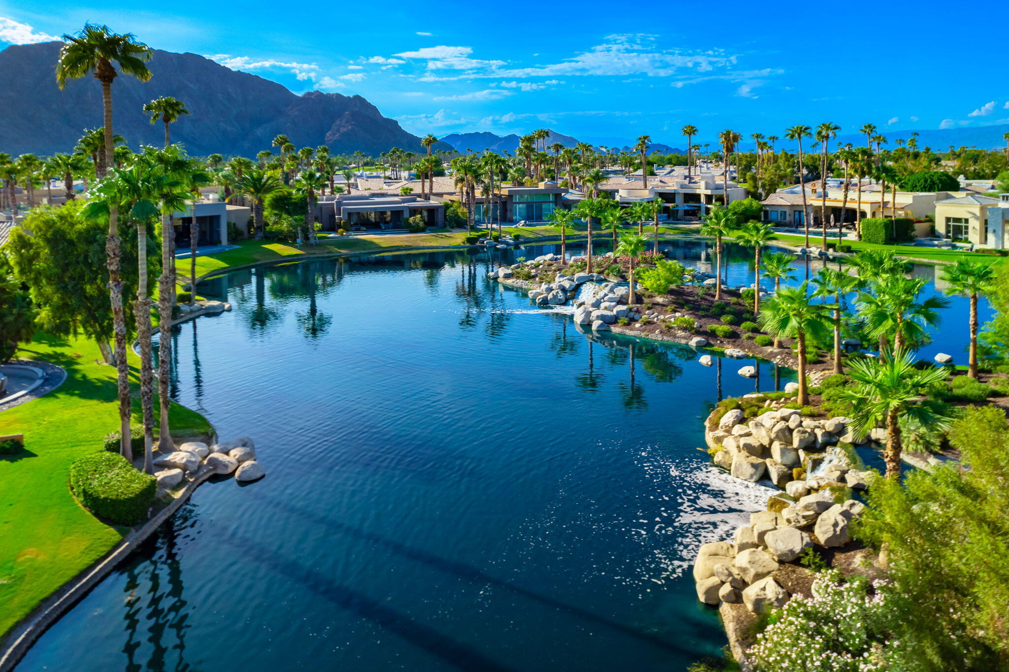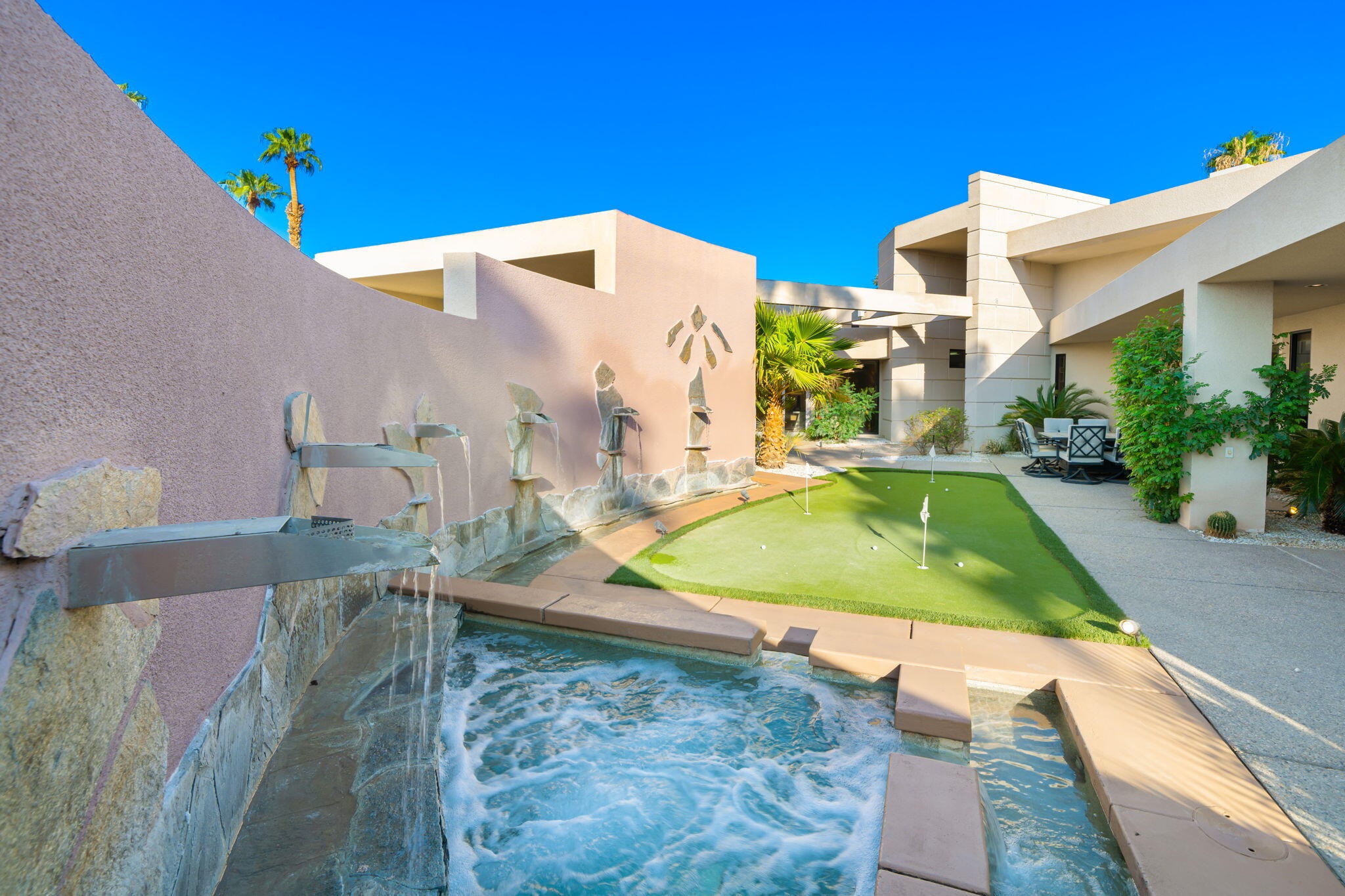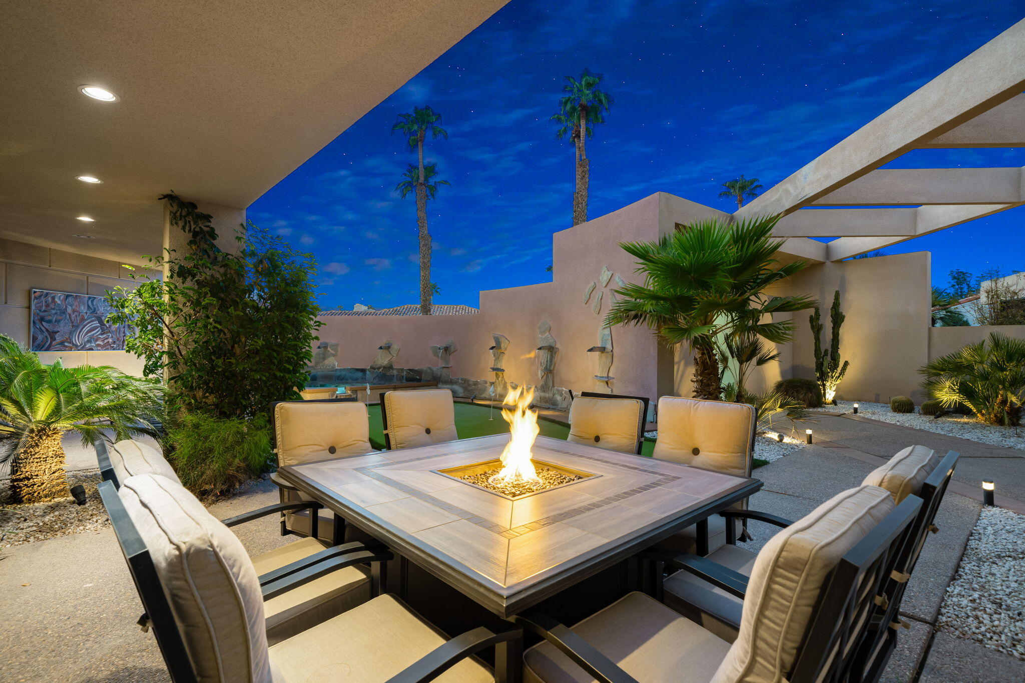 Nestled against the majestic Santa Rosa Mountains, PGA West Paradise offers an extraordinary escape that perfectly blends serenity and elegance. Designed by renowned architect Guy Dreier, this architectural masterpiece features sleek modern glass walls and a signature fireplace, framing breathtaking panoramic views from every room.The primary suite is a private sanctuary, boasting a cozy fireplace, dual-head shower, and a luxurious steam room, offering the ultimate space to unwind and recharge. The expansive living areas showcase picturesque lake and waterfall views, complemented by a seamless indoor-outdoor flow that epitomizes the desert lifestyle.Accommodations include two spacious guest bedrooms with a shared living area, ideal for hosting family or friends, and an office that overlooks a grand courtyard entrance, combining functionality with sophistication.Outside, the property elevates outdoor living with a private putting green, sparkling pool, relaxing spa, and built-in grill, making it perfect for entertaining or enjoying quiet evenings under the desert sky.Situated near world-class golf courses, fine dining, and endless recreational opportunities, PGA West Paradise is more than a home--it's a lifestyle. Don't miss the chance to own this sophisticated oasis. Schedule your private tour today and make this desert dream yours!Interested in this Listing?