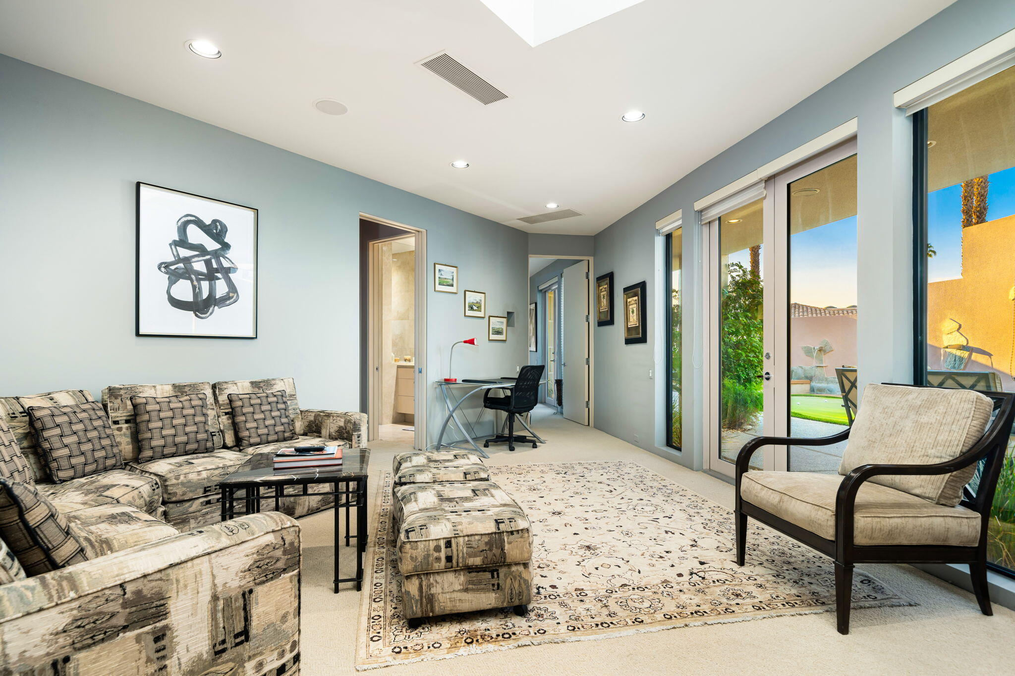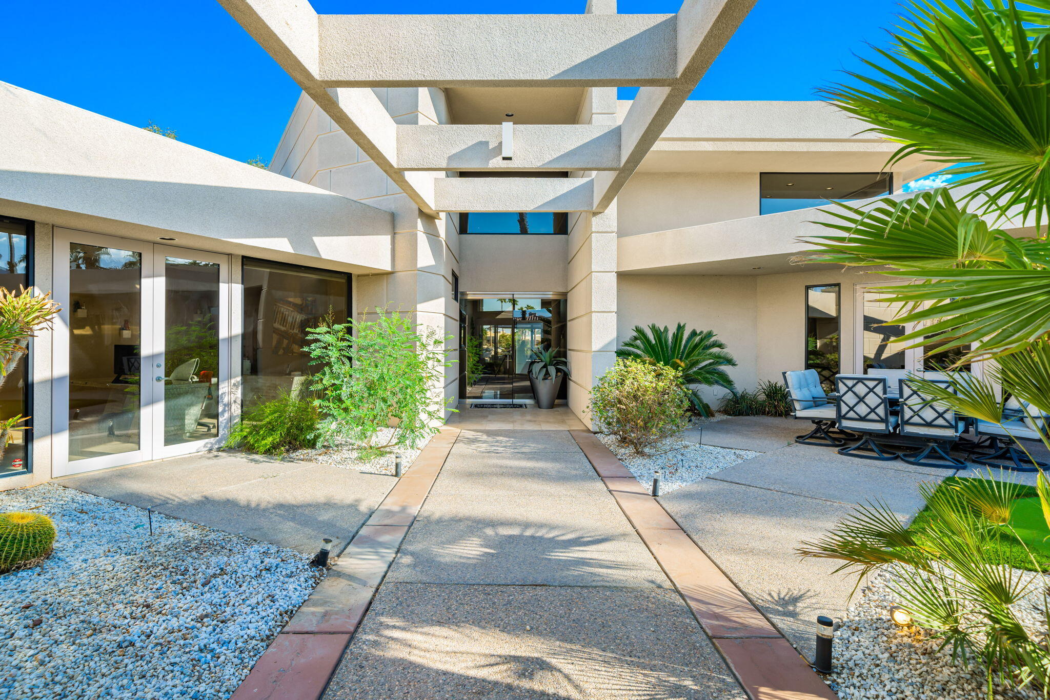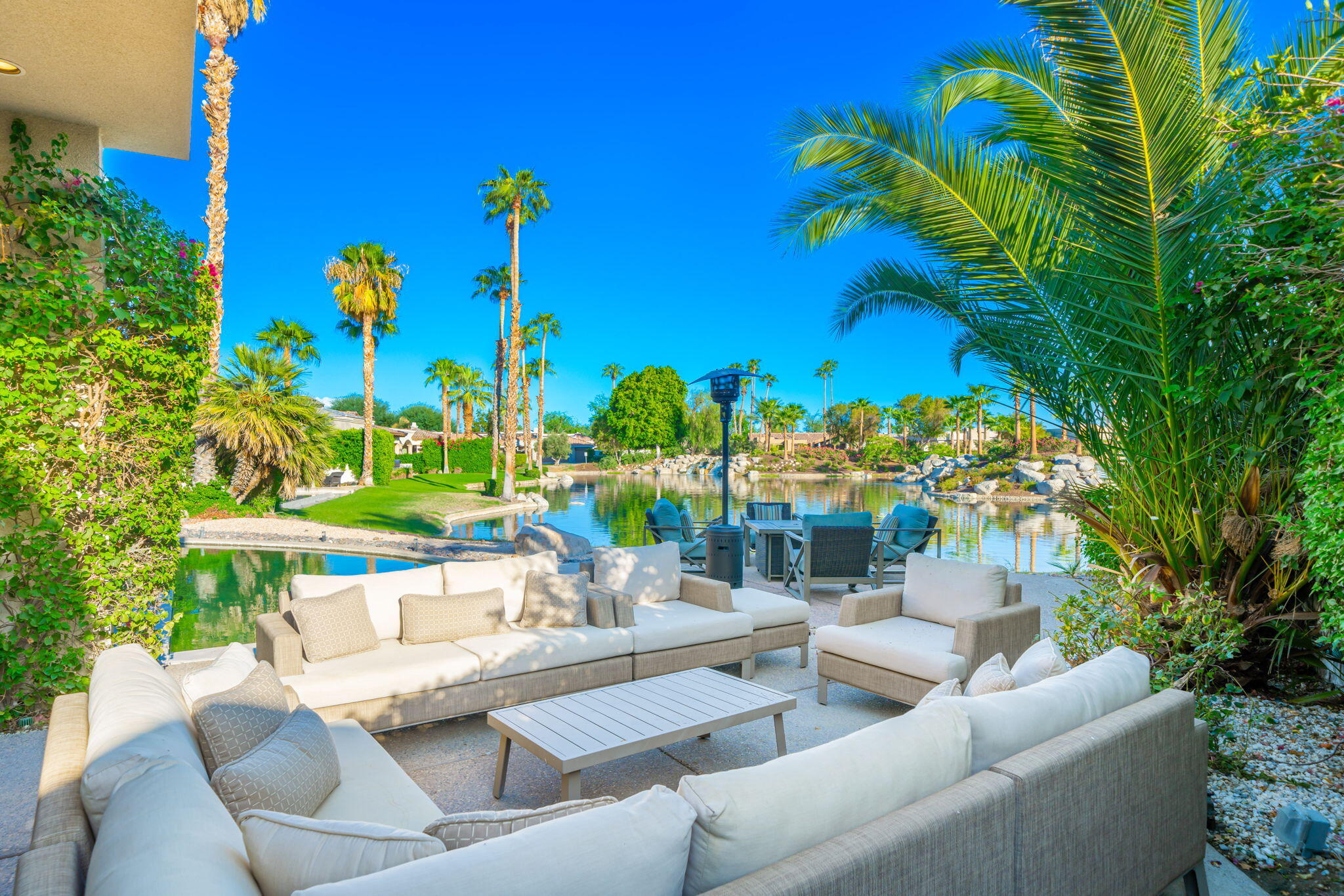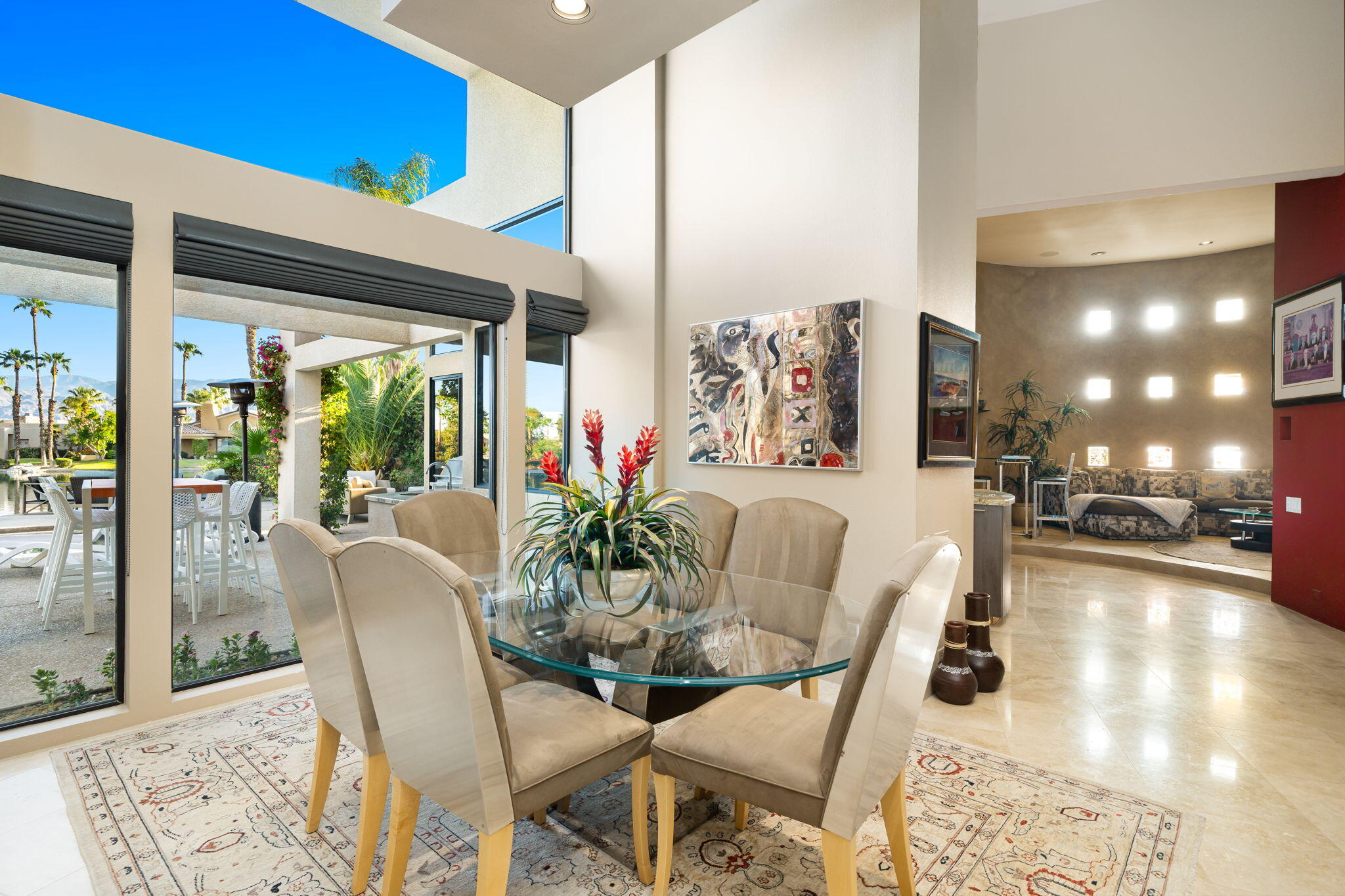 Nestled against the majestic Santa Rosa Mountains, PGA West Paradise offers an extraordinary escape that perfectly blends serenity and elegance. Designed by renowned architect Guy Dreier, this architectural masterpiece features sleek modern glass walls and a signature fireplace, framing breathtaking panoramic views from every room.The primary suite is a private sanctuary, boasting a cozy fireplace, dual-head shower, and a luxurious steam room, offering the ultimate space to unwind and recharge. The expansive living areas showcase picturesque lake and waterfall views, complemented by a seamless indoor-outdoor flow that epitomizes the desert lifestyle.Accommodations include two spacious guest bedrooms with a shared living area, ideal for hosting family or friends, and an office that overlooks a grand courtyard entrance, combining functionality with sophistication.Outside, the property elevates outdoor living with a private putting green, sparkling pool, relaxing spa, and built-in grill, making it perfect for entertaining or enjoying quiet evenings under the desert sky.Situated near world-class golf courses, fine dining, and endless recreational opportunities, PGA West Paradise is more than a home--it's a lifestyle. Don't miss the chance to own this sophisticated oasis. Schedule your private tour today and make this desert dream yours!Interested in this Listing?