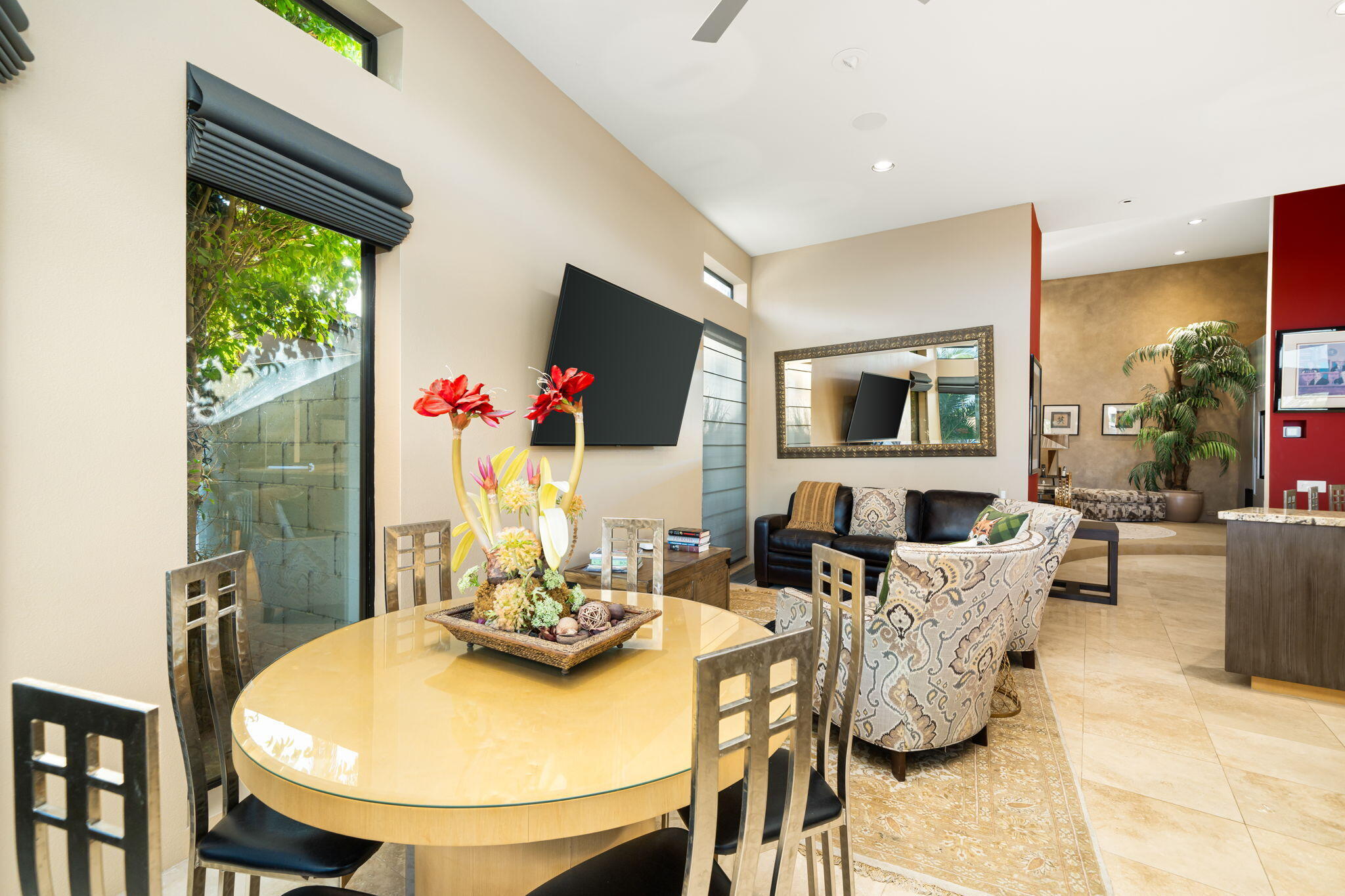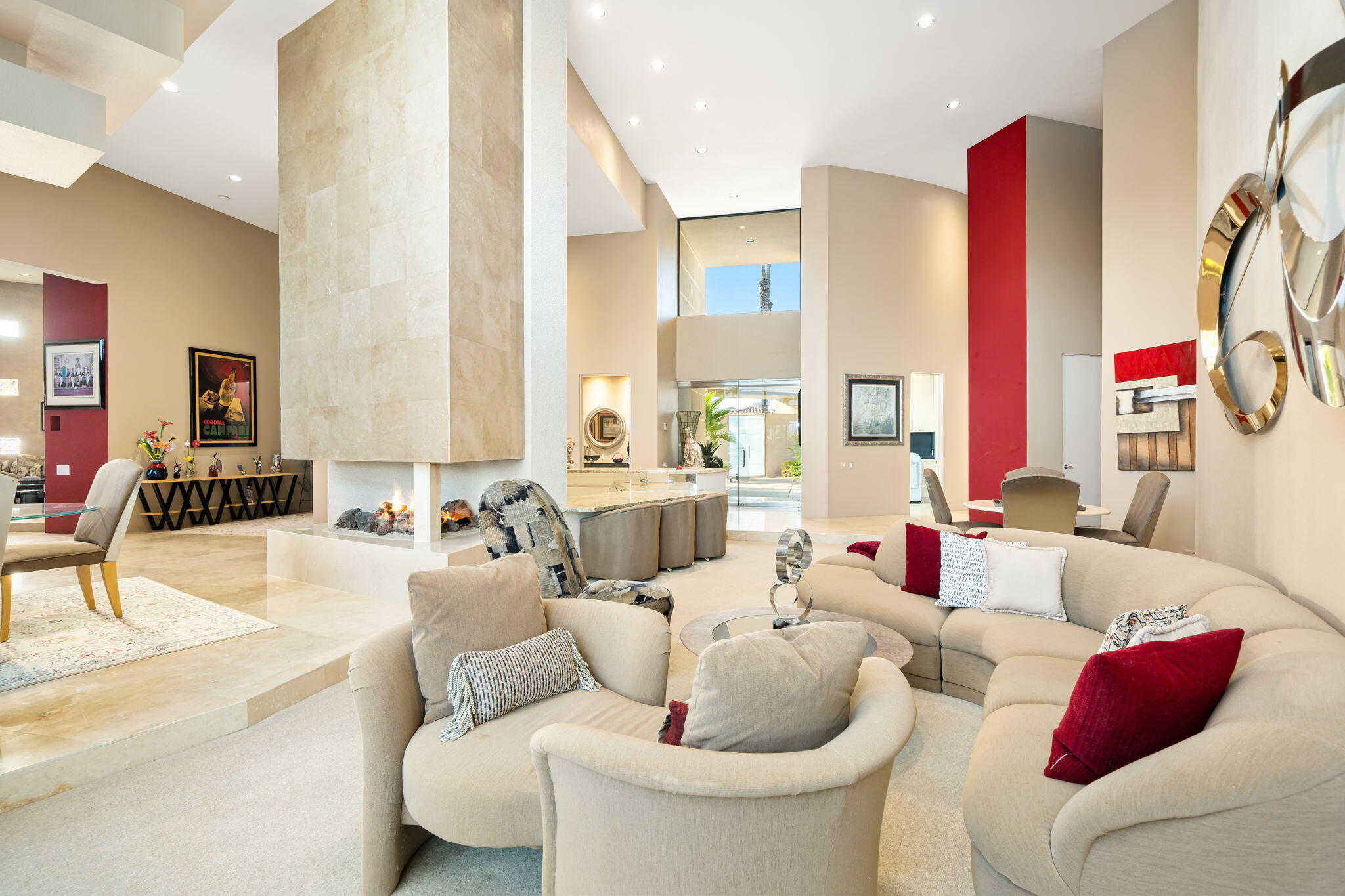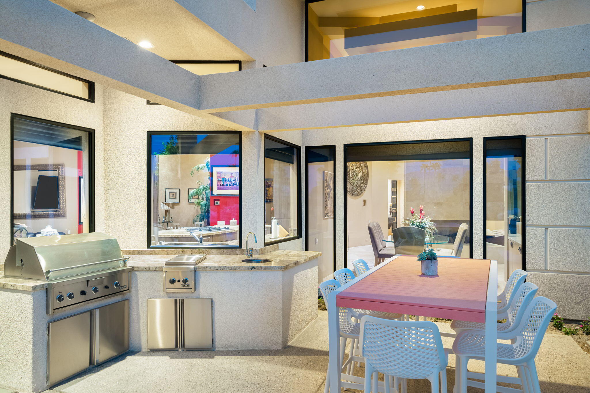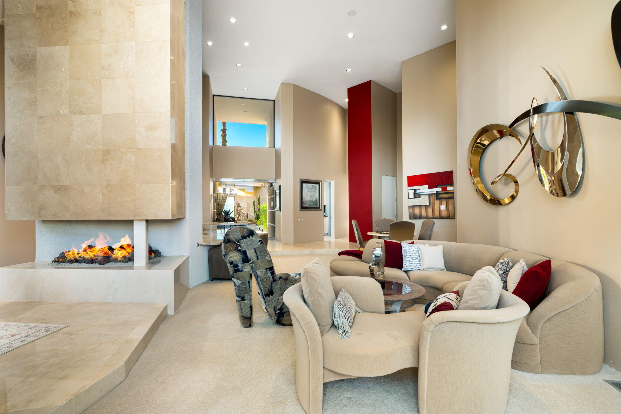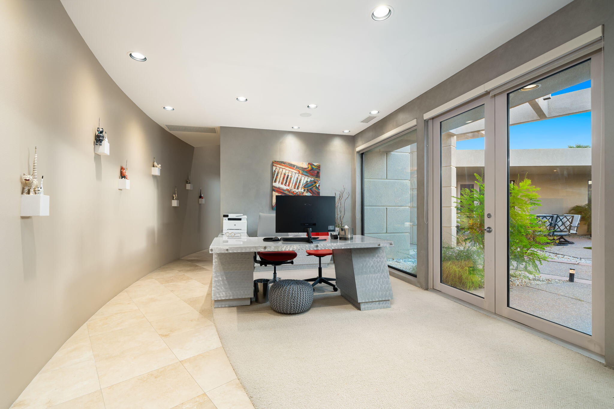 Nestled against the majestic Santa Rosa Mountains, PGA West Paradise offers an extraordinary escape that perfectly blends serenity and elegance. Designed by renowned architect Guy Dreier, this architectural masterpiece features sleek modern glass walls and a signature fireplace, framing breathtaking panoramic views from every room.The primary suite is a private sanctuary, boasting a cozy fireplace, dual-head shower, and a luxurious steam room, offering the ultimate space to unwind and recharge. The expansive living areas showcase picturesque lake and waterfall views, complemented by a seamless indoor-outdoor flow that epitomizes the desert lifestyle.Accommodations include two spacious guest bedrooms with a shared living area, ideal for hosting family or friends, and an office that overlooks a grand courtyard entrance, combining functionality with sophistication.Outside, the property elevates outdoor living with a private putting green, sparkling pool, relaxing spa, and built-in grill, making it perfect for entertaining or enjoying quiet evenings under the desert sky.Situated near world-class golf courses, fine dining, and endless recreational opportunities, PGA West Paradise is more than a home--it's a lifestyle. Don't miss the chance to own this sophisticated oasis. Schedule your private tour today and make this desert dream yours!Interested in this Listing?