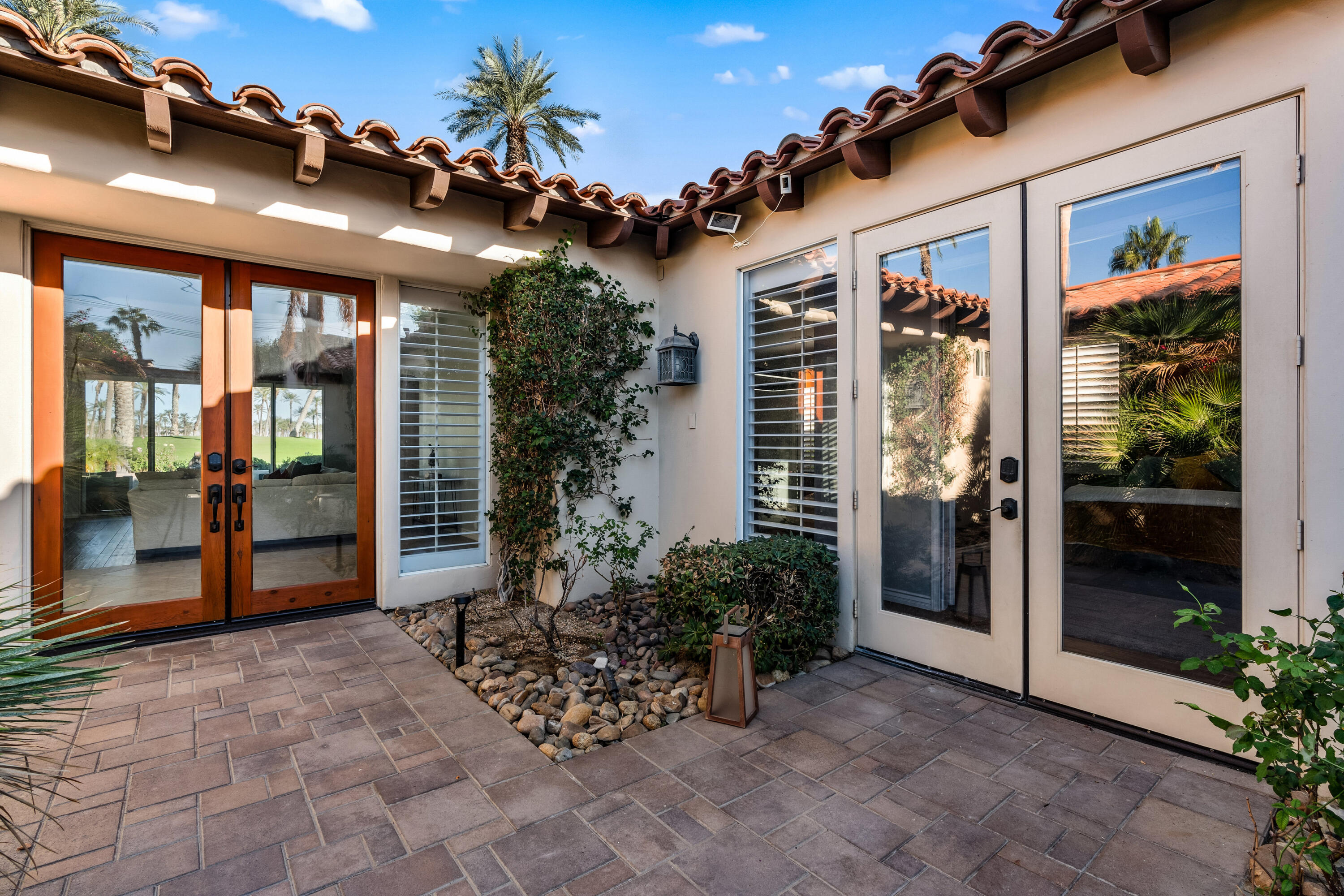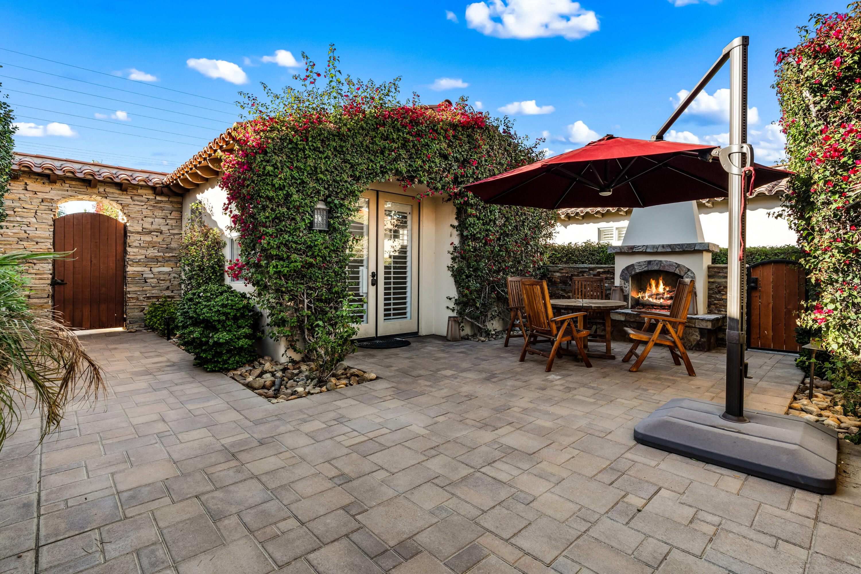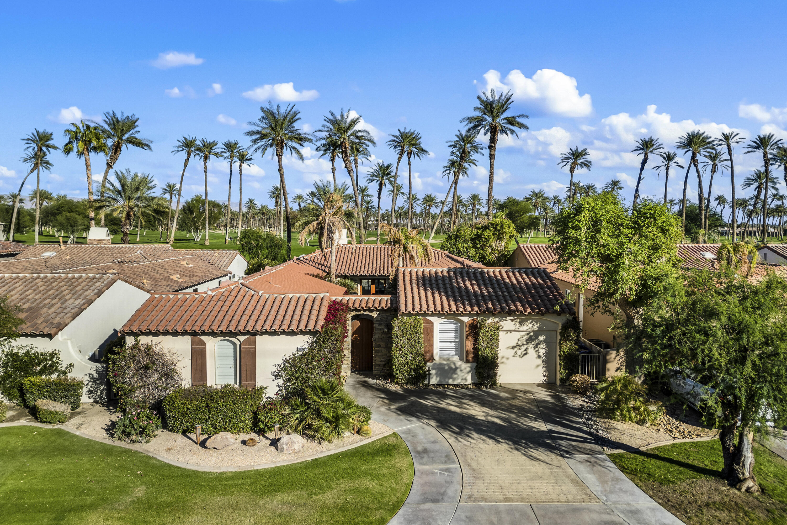 Set on the 10th fairway of the Fred Couples-designed Palms Golf Course, this Mediterranean-inspired masterpiece offers over 3,100 sq. ft. of luxurious living space. With 4 bedrooms and 3.5 baths, the main home includes 3 bedrooms (with an office that can double as a 3rd bedroom), while the detached casita provides a private 4th bedroom--ideal for guests. A private gated courtyard with an outdoor fireplace and fountain welcomes you to this stunning home. Dual glass doors open to reveal breathtaking views of the fairway, framed by towering palms and offering spectacular sunrises and sunsets. Inside, custom wood tile inlay flooring, a dramatic stone fireplace, and high-end finishes create an inviting and sophisticated atmosphere. The expansive chef's kitchen features two granite islands, Jenn Air appliances, and ample storage, perfect for entertaining. The master suite, located for privacy, offers a luxurious bath with a custom walk-in shower, spa tub, and designer finishes. Two additional guest rooms provide comfort and seclusion. The outdoor space is an entertainer's dream, complete with a built-in BBQ, pool, heated spa, surround sound, and sweeping golf course views. Located in the renowned Palms Golf Club, known for its exceptional value and no tee time policy, with low HOA fees and access to golf, tennis, dining, and outdoor activities.Interested in this Listing?