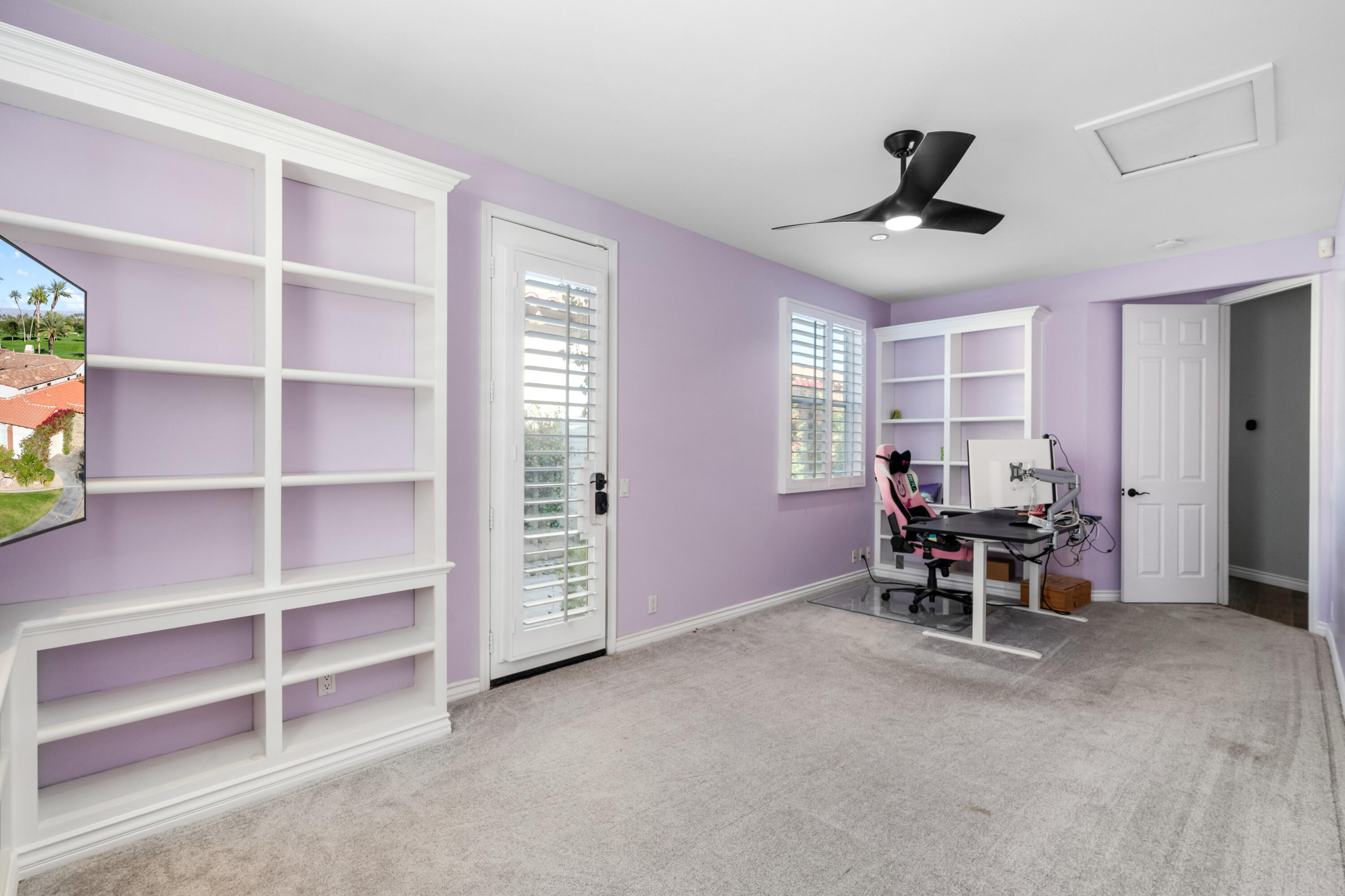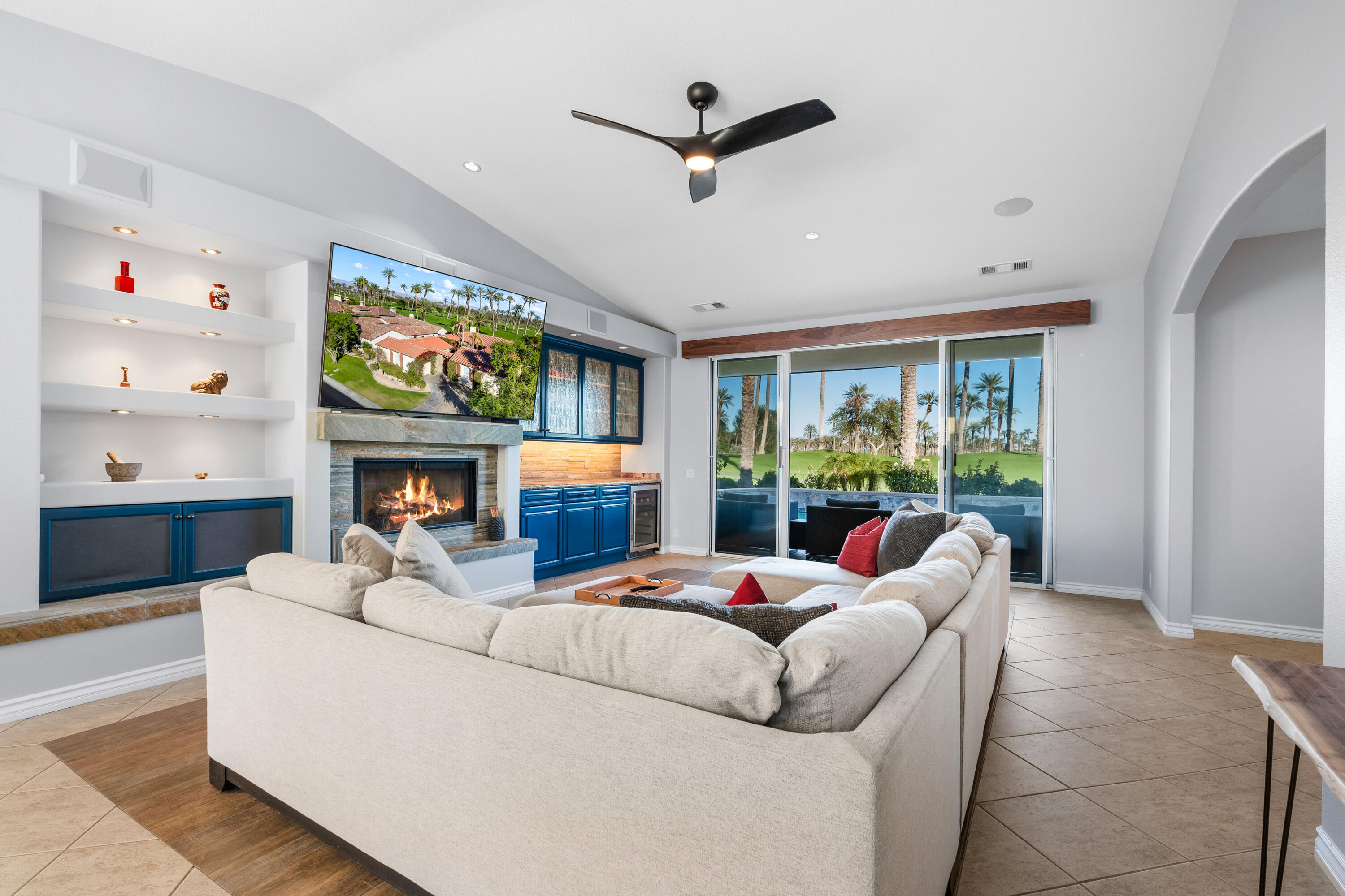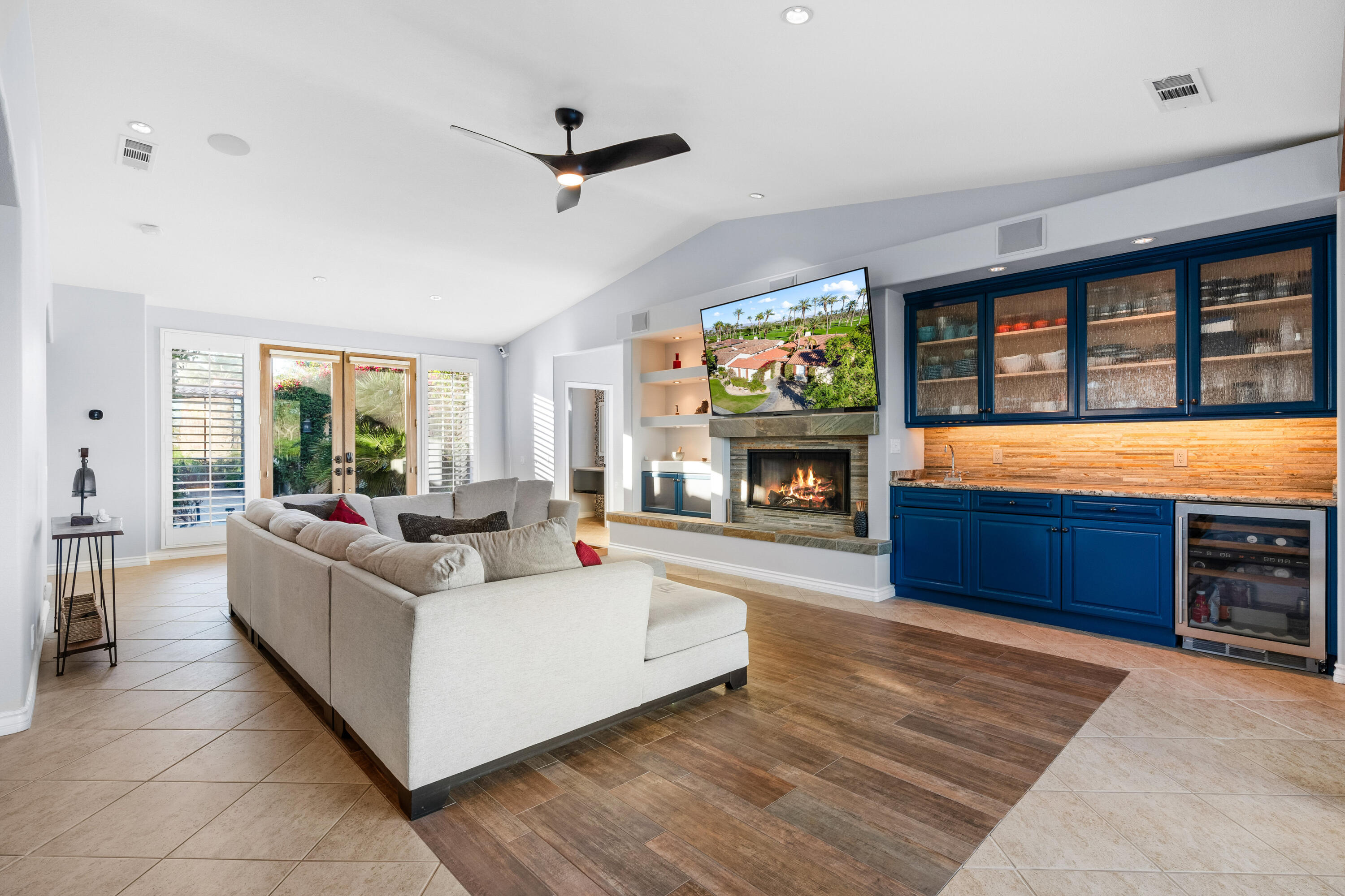 Set on the 10th fairway of the Fred Couples-designed Palms Golf Course, this Mediterranean-inspired masterpiece offers over 3,100 sq. ft. of luxurious living space. With 4 bedrooms and 3.5 baths, the main home includes 3 bedrooms (with an office that can double as a 3rd bedroom), while the detached casita provides a private 4th bedroom--ideal for guests. A private gated courtyard with an outdoor fireplace and fountain welcomes you to this stunning home. Dual glass doors open to reveal breathtaking views of the fairway, framed by towering palms and offering spectacular sunrises and sunsets. Inside, custom wood tile inlay flooring, a dramatic stone fireplace, and high-end finishes create an inviting and sophisticated atmosphere. The expansive chef's kitchen features two granite islands, Jenn Air appliances, and ample storage, perfect for entertaining. The master suite, located for privacy, offers a luxurious bath with a custom walk-in shower, spa tub, and designer finishes. Two additional guest rooms provide comfort and seclusion. The outdoor space is an entertainer's dream, complete with a built-in BBQ, pool, heated spa, surround sound, and sweeping golf course views. Located in the renowned Palms Golf Club, known for its exceptional value and no tee time policy, with low HOA fees and access to golf, tennis, dining, and outdoor activities.Interested in this Listing?