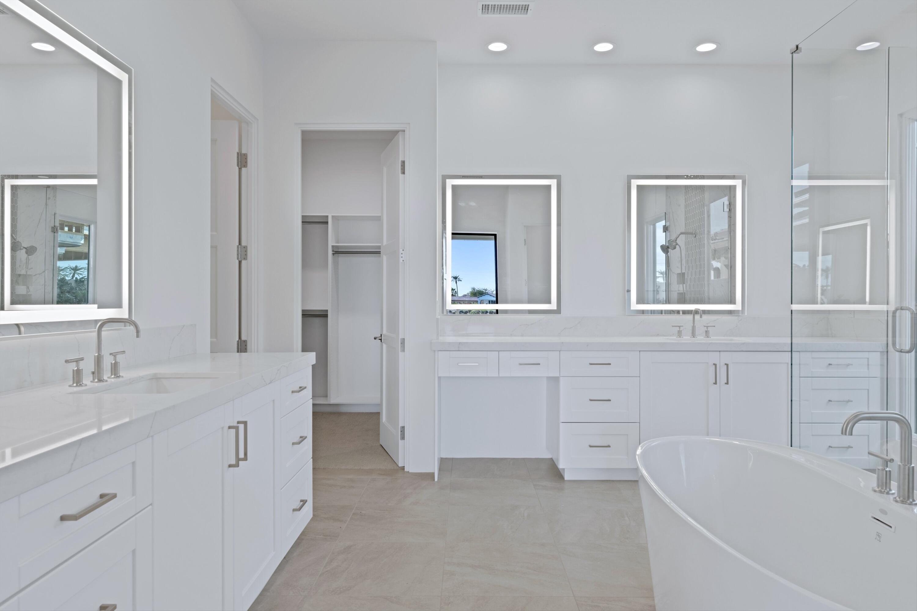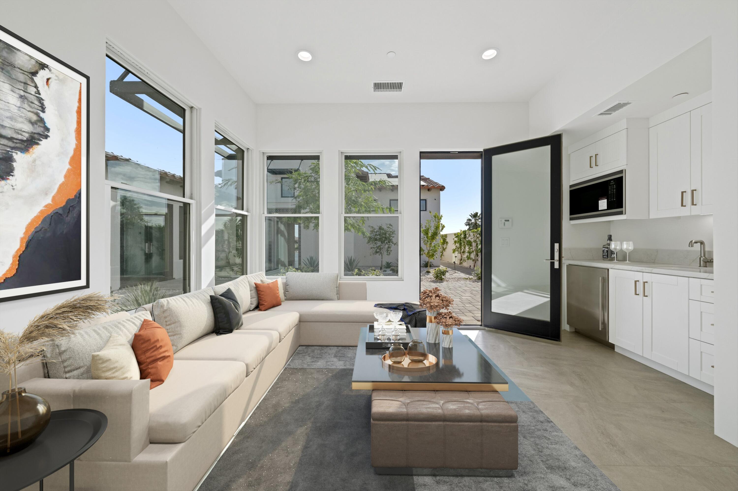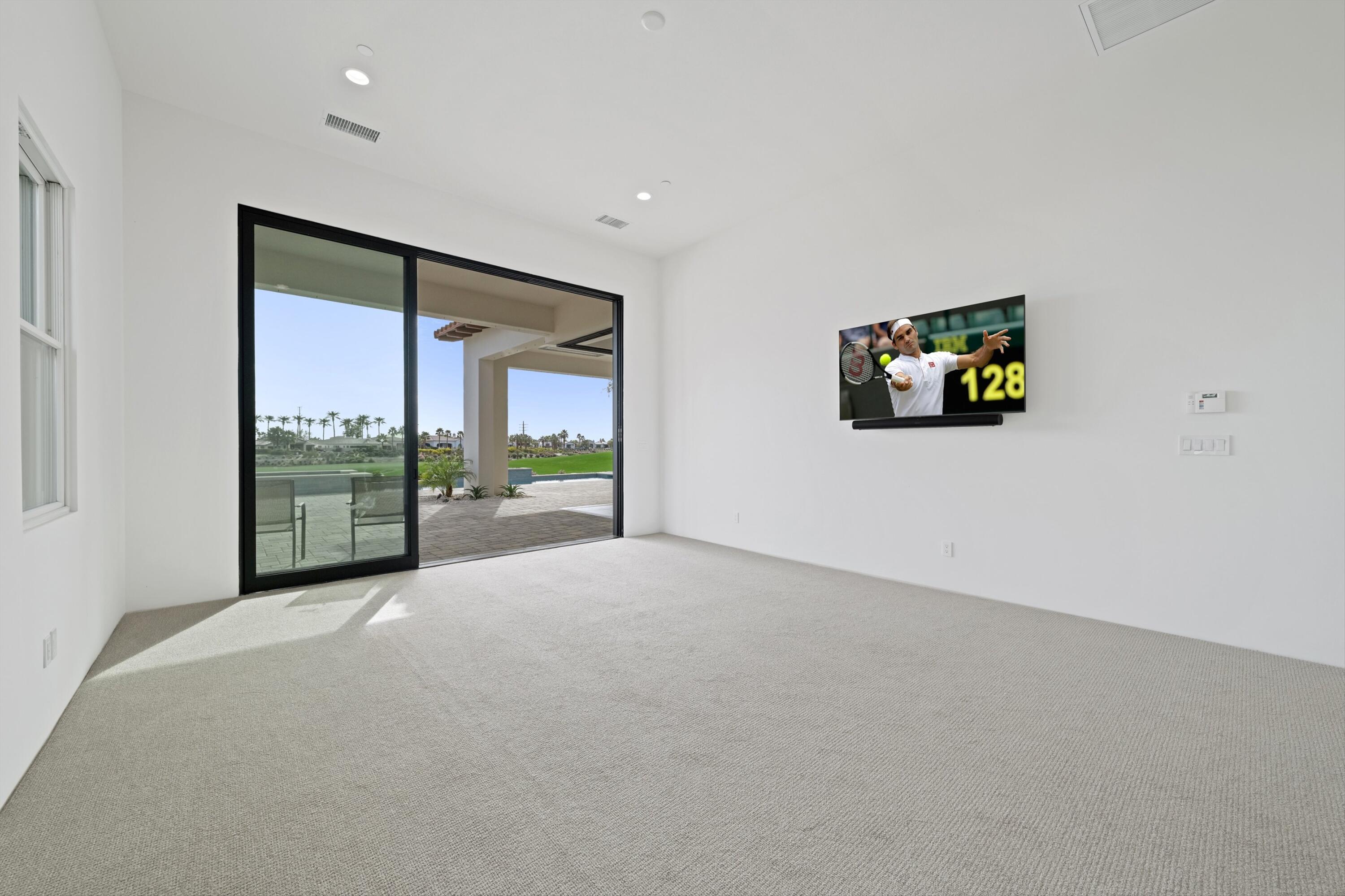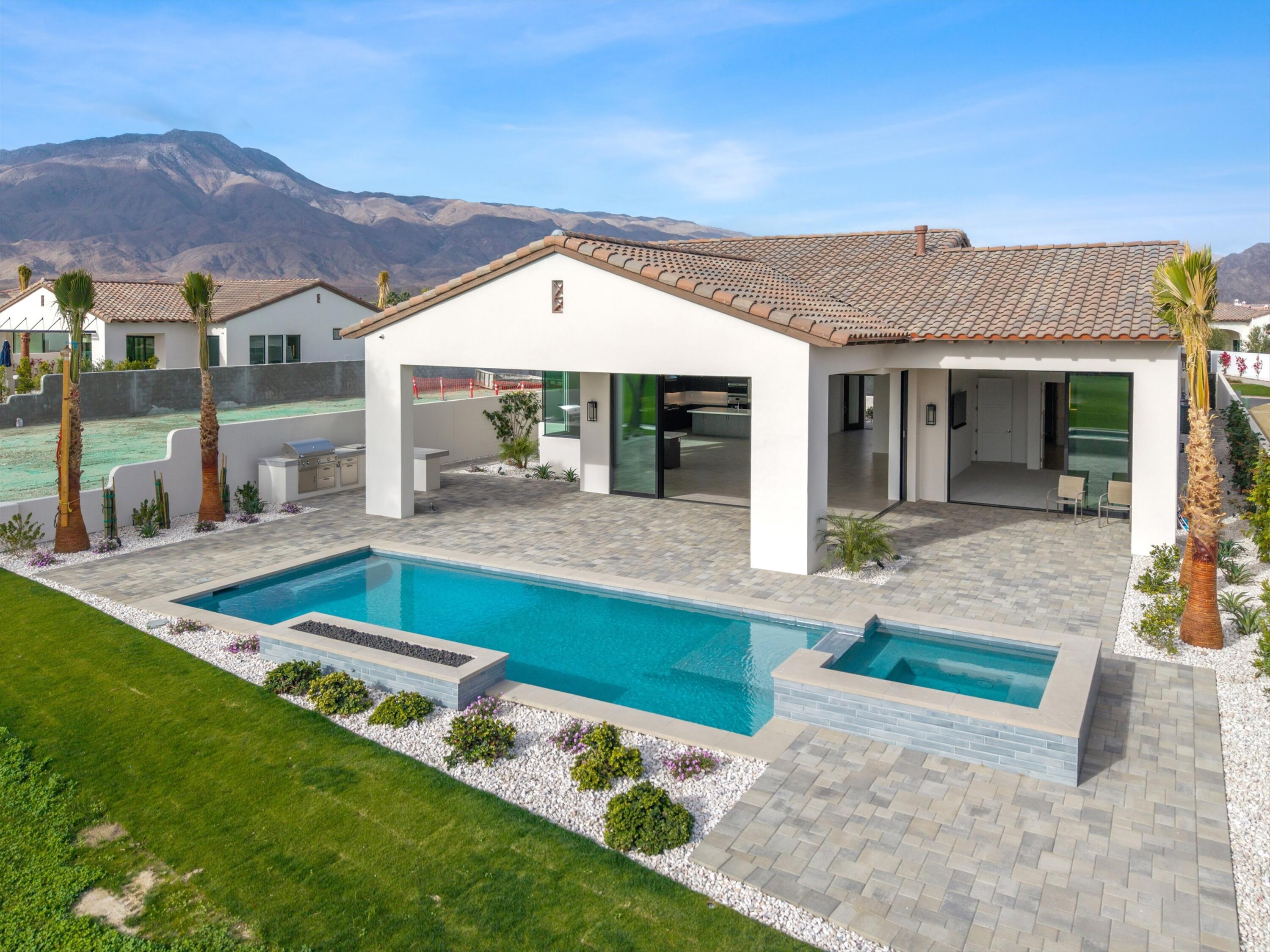 New Construction! Be the first to experience luxury living in this stunning 4,032 sq. ft., 4-bedroom, 4.5-bathroom home, perfectly positioned along the 15th fairway of the renowned Rees Jones-designed golf course in the prestigious Andalusia Country Club. This brand-new residence seamlessly blends contemporary elegance with desert beauty, offering the finest in upscale living. From the moment you enter, you're welcomed by a flood of natural light pouring through the walls of glass, drawing your gaze to gorgeous views of the golf course, sparkling lake, and the majestic Santa Rosa Mountains. This unique location offers the rare opportunity to enjoy both sunrises and sunsets, painting the sky with dazzling colors. Great room is designed for seamless entertaining, featuring a wet bar, a beautifully crafted custom fireplace wall, and flawless porcelain tile flooring throughout. For the culinary enthusiast, the gourmet kitchen is a dream come true. Outfitted with state-of-the-art appliances, a convenient pot filler above the stove, and upgraded quartz countertops, this kitchen combines style and functionality to inspire your inner chef. Escape to the primary suite, a sanctuary of luxury complete with a soaking tub, dual sinks, and expansive custom closets. Guests will enjoy ultimate comfort and privacy in the detached two-room casita, offering an ideal retreat. The backyard oasis is nothing short of spectacular, designed for those who love to entertain or simply relax in style. Enjoy the custom pool with a raised spa, a built-in BBQ island, and a sleek modern fire pit that borders the back of the poola"perfect for evening gatherings and watching picturesque sunsets. The loggia is enhanced with outdoor heaters and misters, ensuring year-round comfort. This exceptional home is loaded with high-end upgrades, including solar panels for energy efficiency, premium AV equipment for a modern lifestyle, and epoxy-coated garage floors for a polished finish. This is more than justInterested in this Listing?