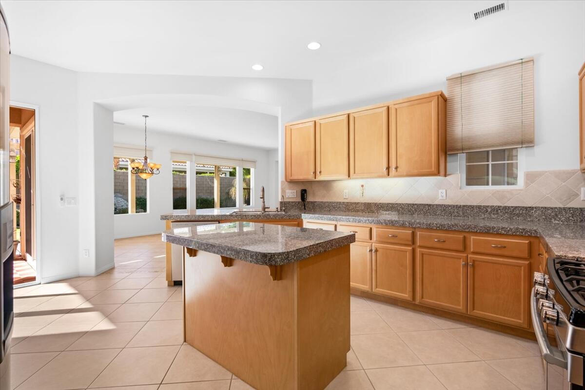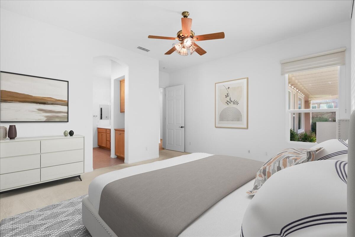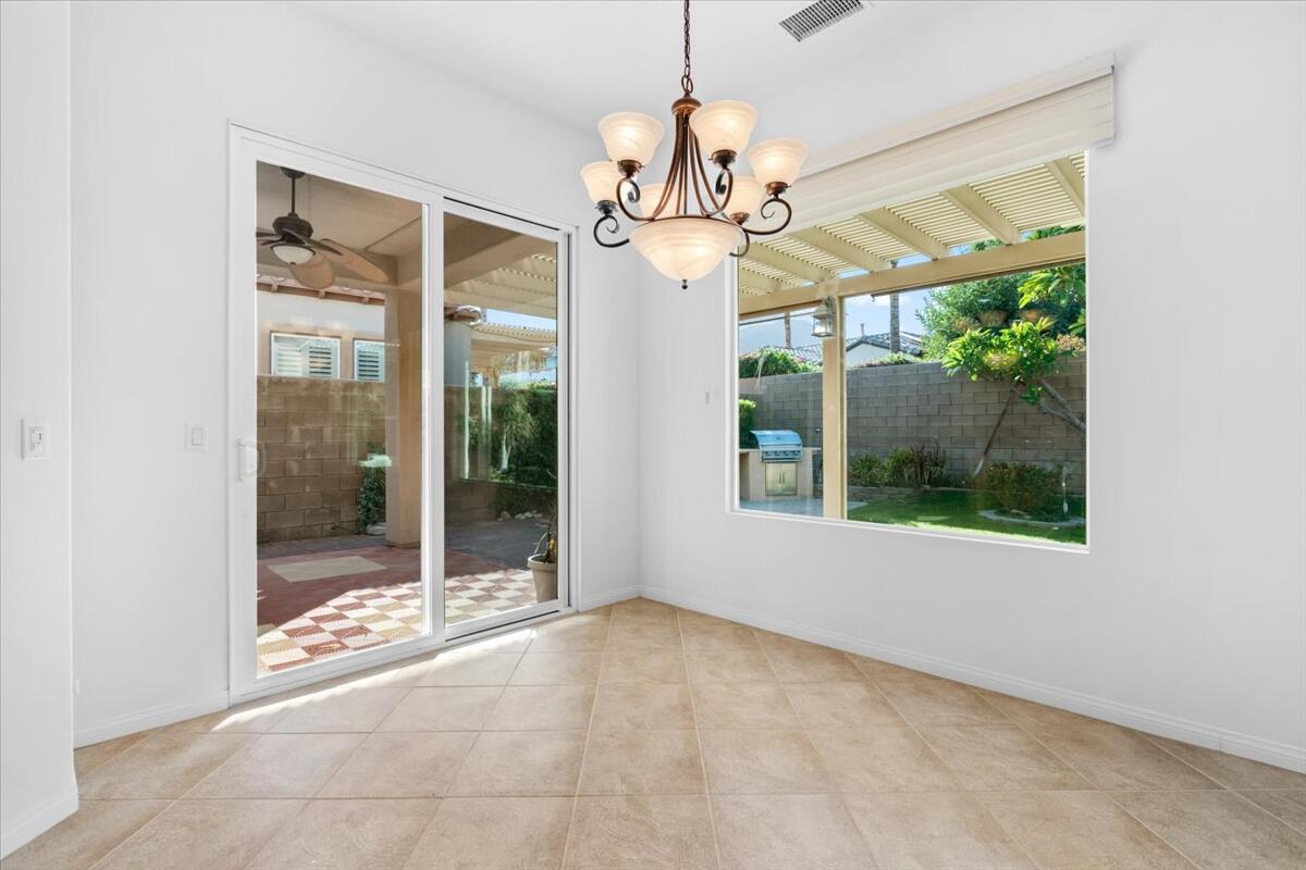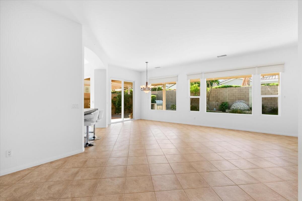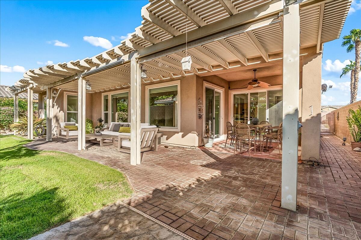 Incredible price on one of the larger models! Meticulously maintained home is located in the very desirable 55+ resort community of Trilogy La Quinta with new multi-million dollar golf course renovation. Spacious Monarch floor plan on large lot...you enter this inviting home through the courtyard and step into the living area with walls of glass and flooded with natural light. Expansive great room and dining space opens to a thoughtfully designed chef's kitchen with gas stove and granite countertops, center island, bar seating, breakfast area and even an office nook. Primary retreat is well separated from the guest room and den for privacy and features an ensuite bathroom with dual vanities, soaking tub and walk in shower plus a huge walk-in closet. Guest room and den can be easily combined to create a huge bedroom suite with sitting room. There is also a laundry room and the water softener is included. Step out to the covered patio and lushly landscaped backyard from the living and dining areas. Perfect for outdoor dining, entertaining or relaxing... and with a peak of mountain views. Just a golf cart ride away to the Clubhouse with all the amenities including two heated pools, lighted tennis courts, pickleball, bocceball and fitness center with indoor track, Cafe Solaz, and so many activities like concerts, dances, comedy night and much more. Low HOA dues include 24-hour guard gate, internet and cable, front yard landscaping and use of all the amenities...plus ''pay as you play'' golf. Truly resort living. Take a look and make this one yours!Interested in this Listing?