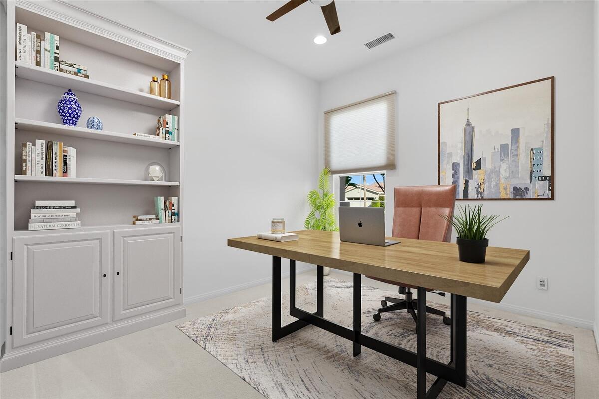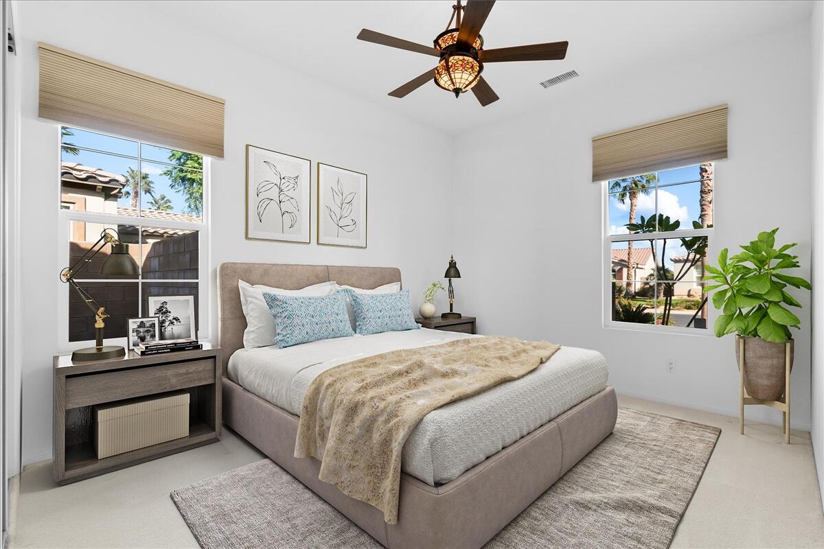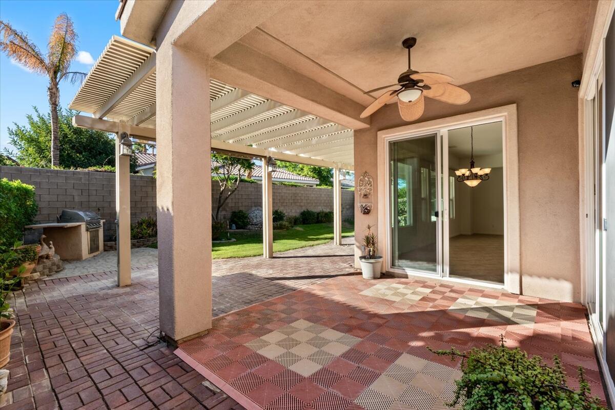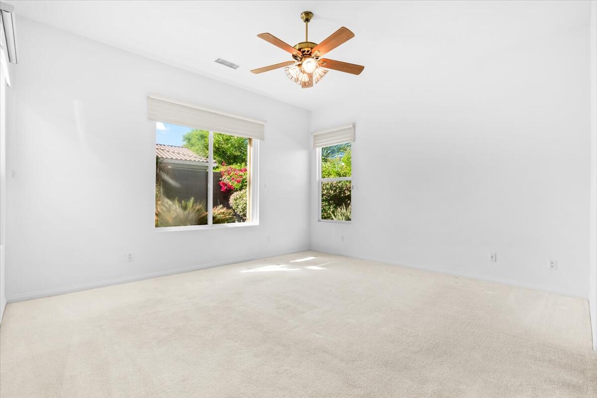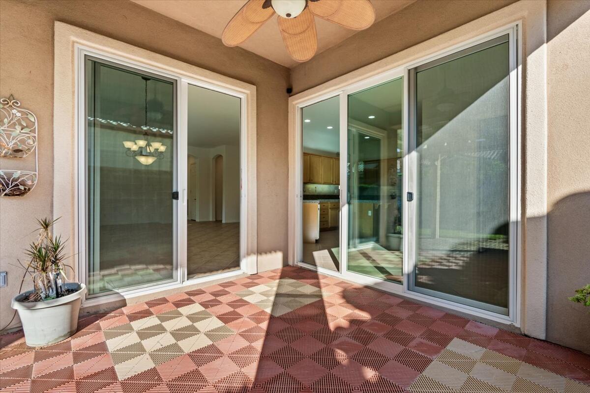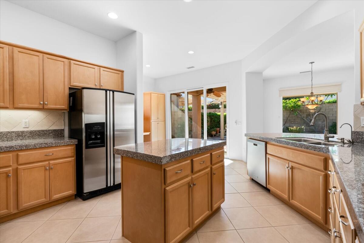 Incredible price on one of the larger models! Meticulously maintained home is located in the very desirable 55+ resort community of Trilogy La Quinta with new multi-million dollar golf course renovation. Spacious Monarch floor plan on large lot...you enter this inviting home through the courtyard and step into the living area with walls of glass and flooded with natural light. Expansive great room and dining space opens to a thoughtfully designed chef's kitchen with gas stove and granite countertops, center island, bar seating, breakfast area and even an office nook. Primary retreat is well separated from the guest room and den for privacy and features an ensuite bathroom with dual vanities, soaking tub and walk in shower plus a huge walk-in closet. Guest room and den can be easily combined to create a huge bedroom suite with sitting room. There is also a laundry room and the water softener is included. Step out to the covered patio and lushly landscaped backyard from the living and dining areas. Perfect for outdoor dining, entertaining or relaxing... and with a peak of mountain views. Just a golf cart ride away to the Clubhouse with all the amenities including two heated pools, lighted tennis courts, pickleball, bocceball and fitness center with indoor track, Cafe Solaz, and so many activities like concerts, dances, comedy night and much more. Low HOA dues include 24-hour guard gate, internet and cable, front yard landscaping and use of all the amenities...plus ''pay as you play'' golf. Truly resort living. Take a look and make this one yours!Interested in this Listing?