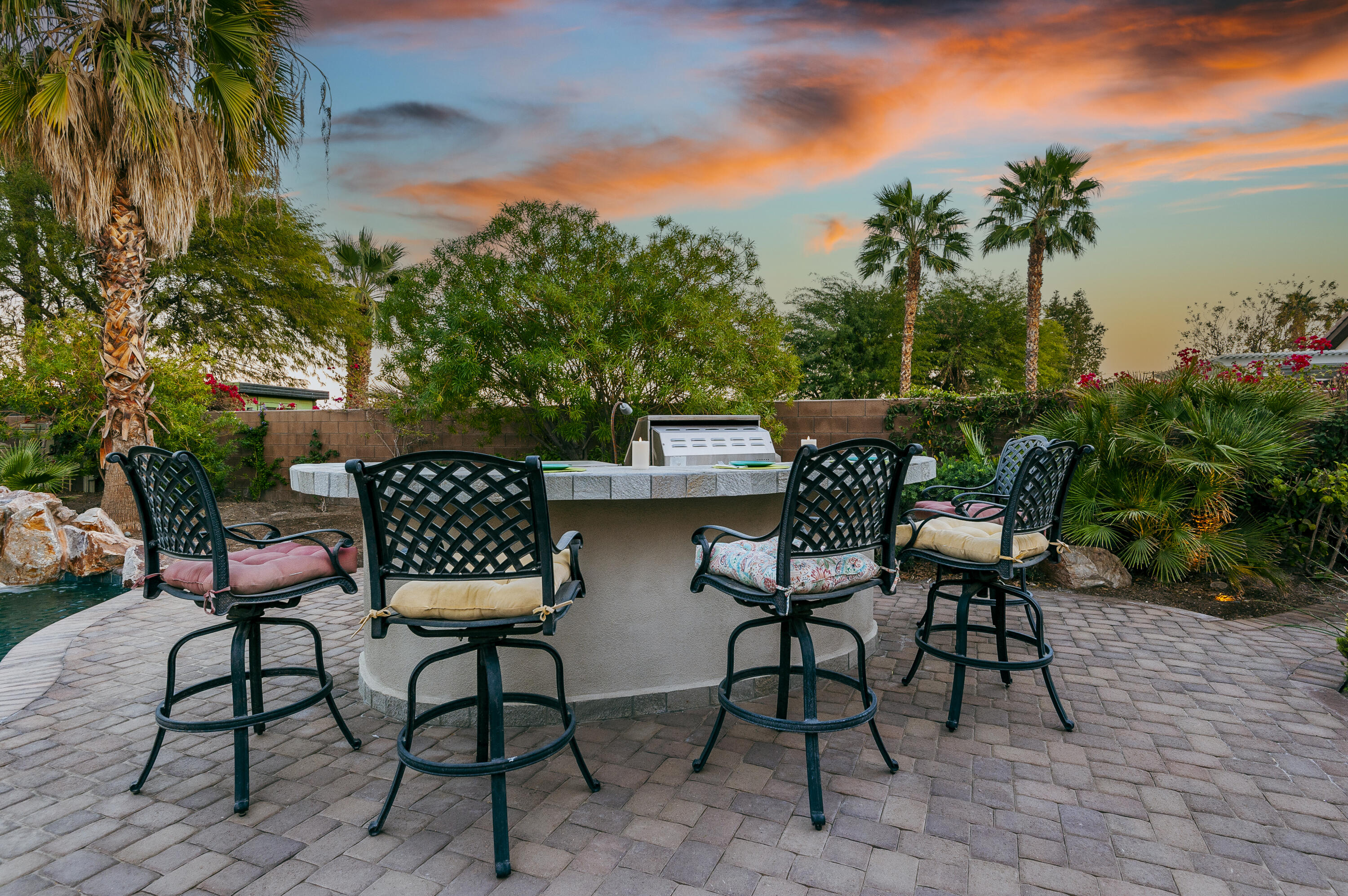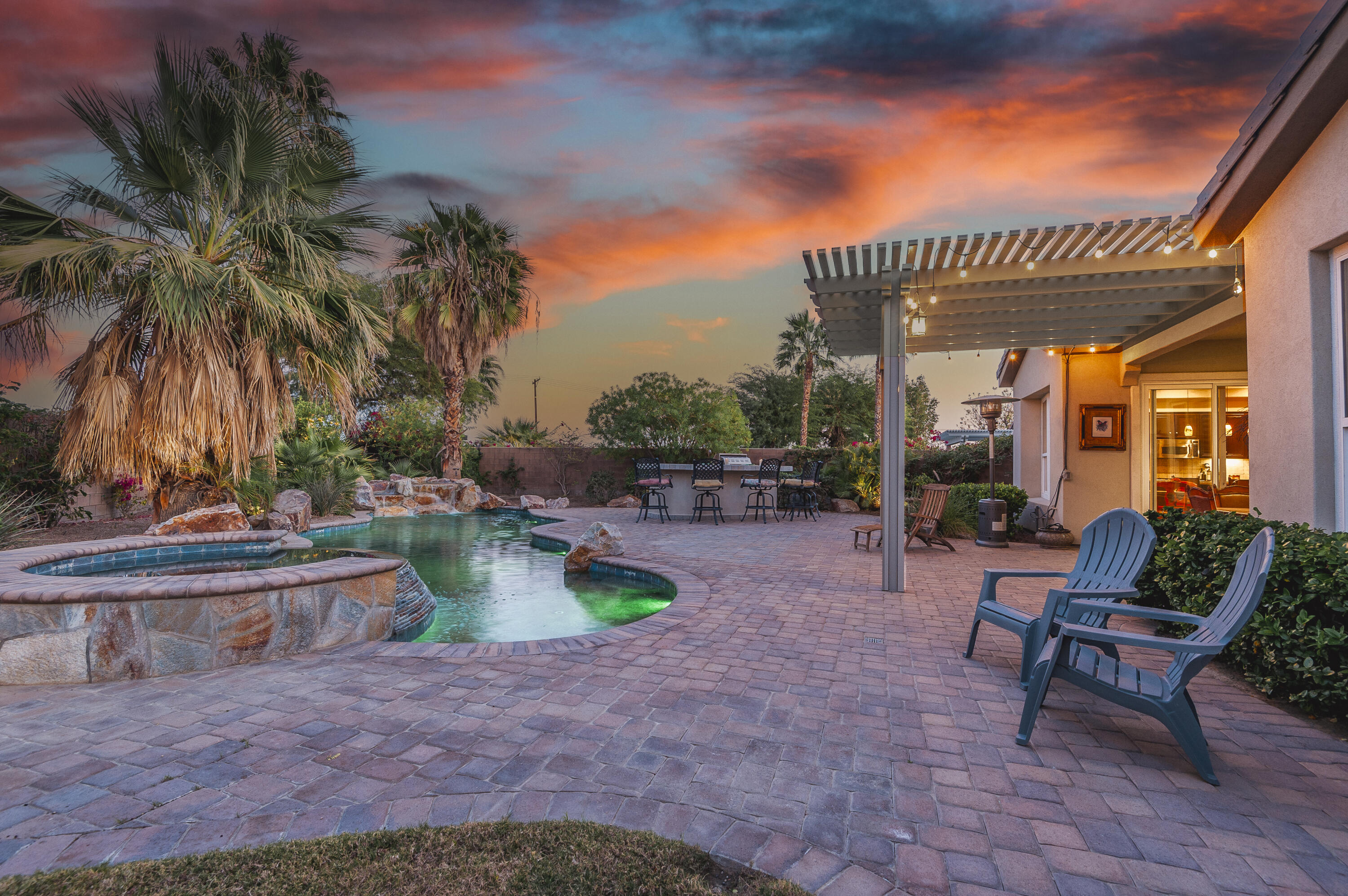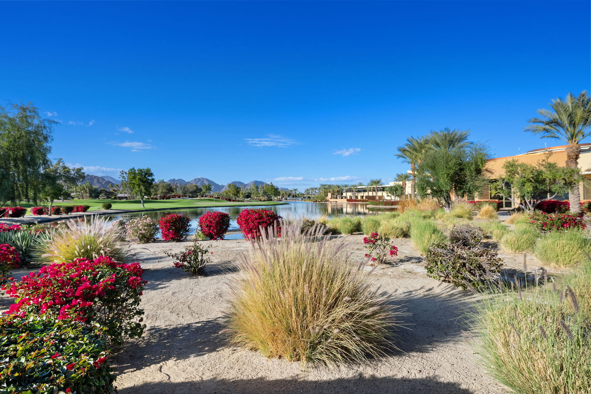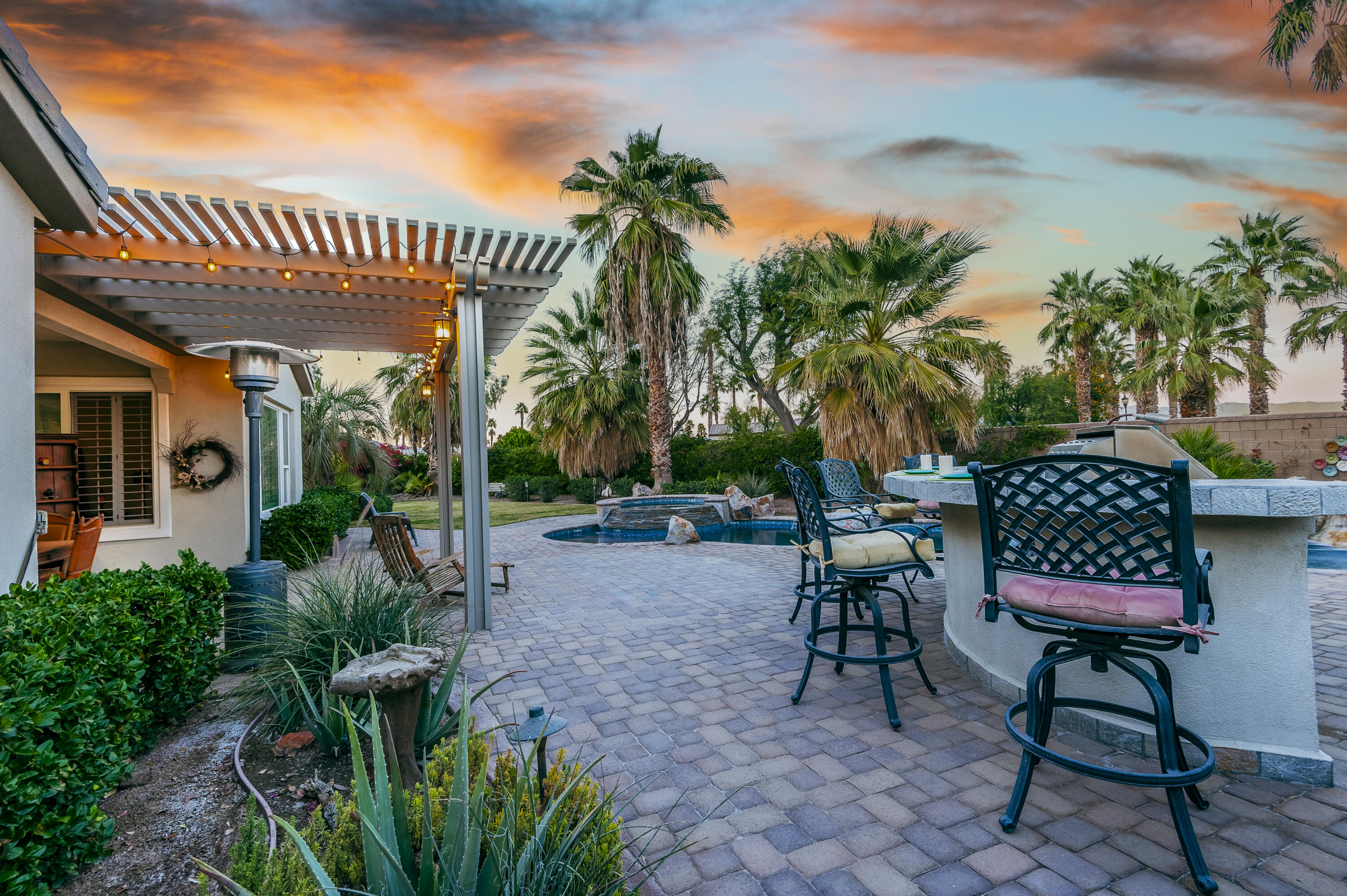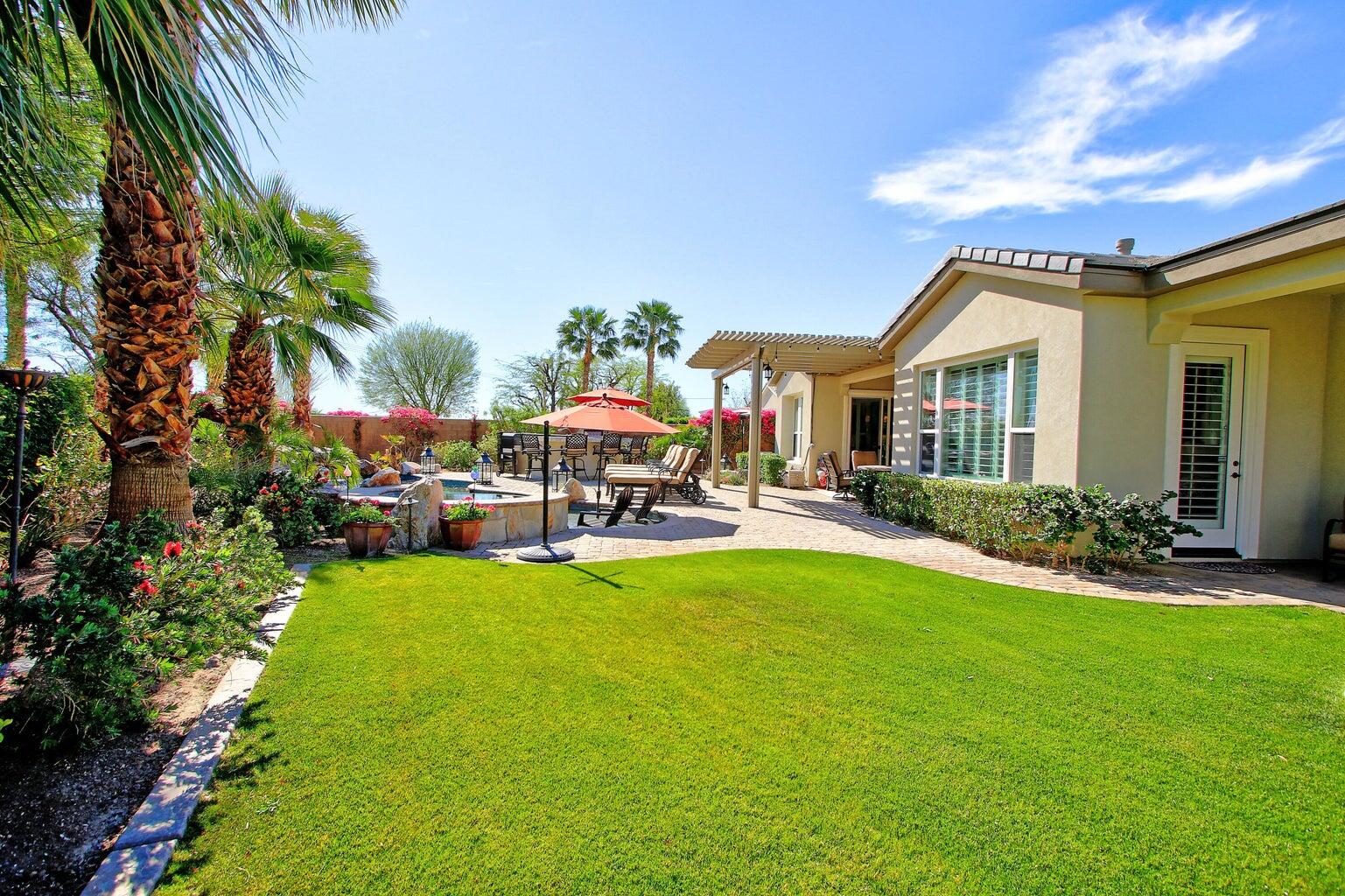 Enjoy your own private retreat with separate Casita, in the acclaimed Trilogy at La Quinta. A rare find, this spacious and open luxury home rests on a private estate-sized lot. A Mesquite model 2,784 SF, 4 bedrooms, 4 bathrooms. The property features an extraordinary backyard retreat, with covered patio, custom pavers, an oasis styled-pool and spa, and built-in BBQ station all wrapped in a park-like setting of brightly colored and textured desert flowers and trees. Behind the tall solid-wood entry door, is a stone and stucco foyer, and an expansive open-air courtyard with a Pergola cover that extends between the detached Casita and main home for comfy year-round outdoor living. Step into a home that is open, spacious, and bright with lofty 10-foot ceilings, arched doorways, tile on-point, crown molding, and picture windows with plantation shutters open to the gorgeous park-like views. The elegant great room features handsome wood-crafted built-ins with a gas-log fireplace and surround sound for a movie theater experience. A spacious gourmet kitchen showcases quality stainless appliances, including a double-oven, an abundance of cabinet and countertop space with slab granite and a custom tile backsplash, a center-island with seating and pendant lighting, and a bright breakfast area. The formal dining room features a built-in breakfront with lots of storage. A separate office off the great room can also double as a 5th bedroom.Interested in this Listing?