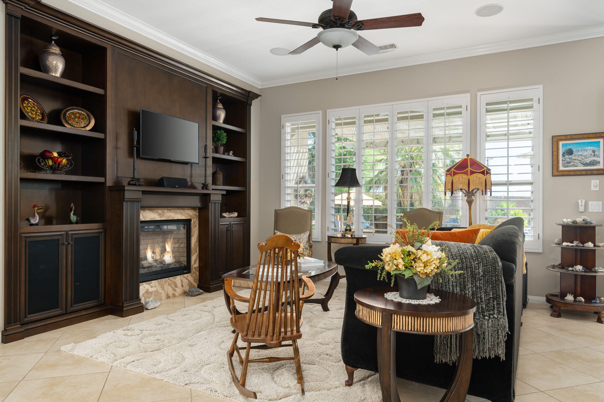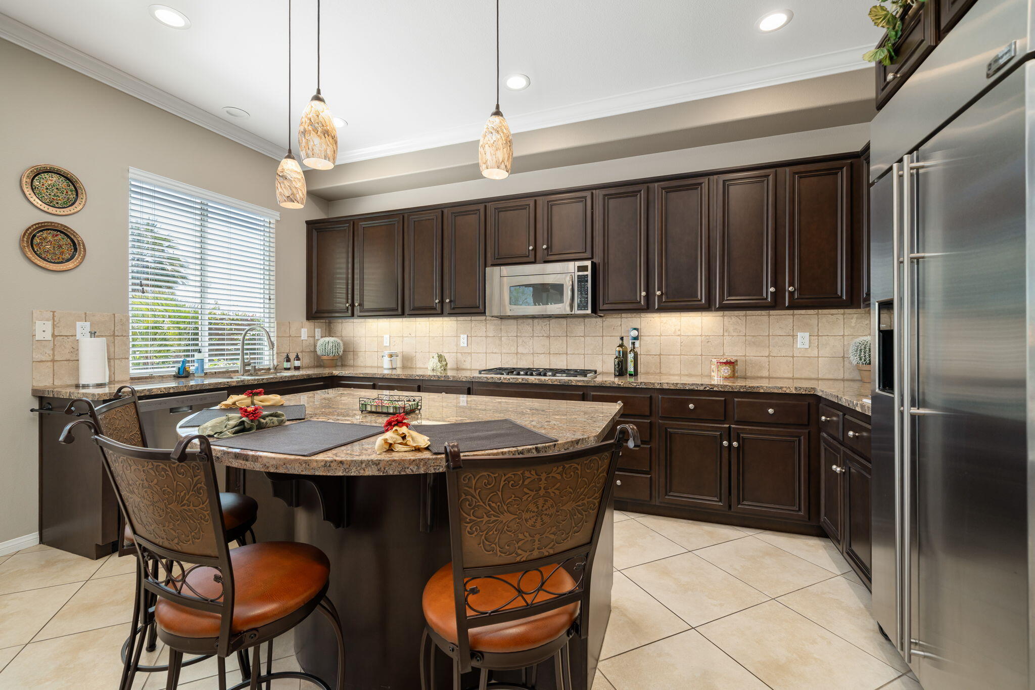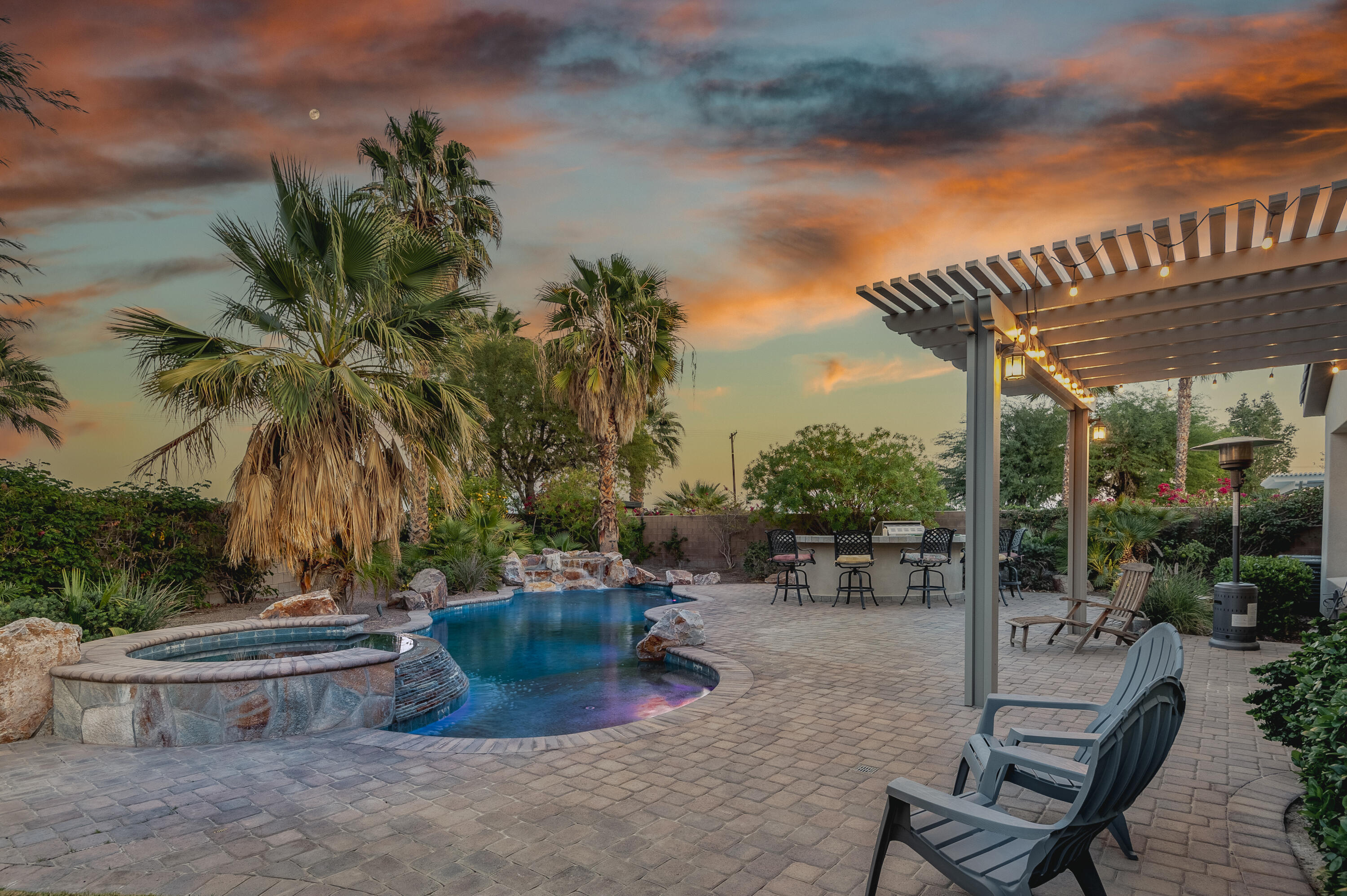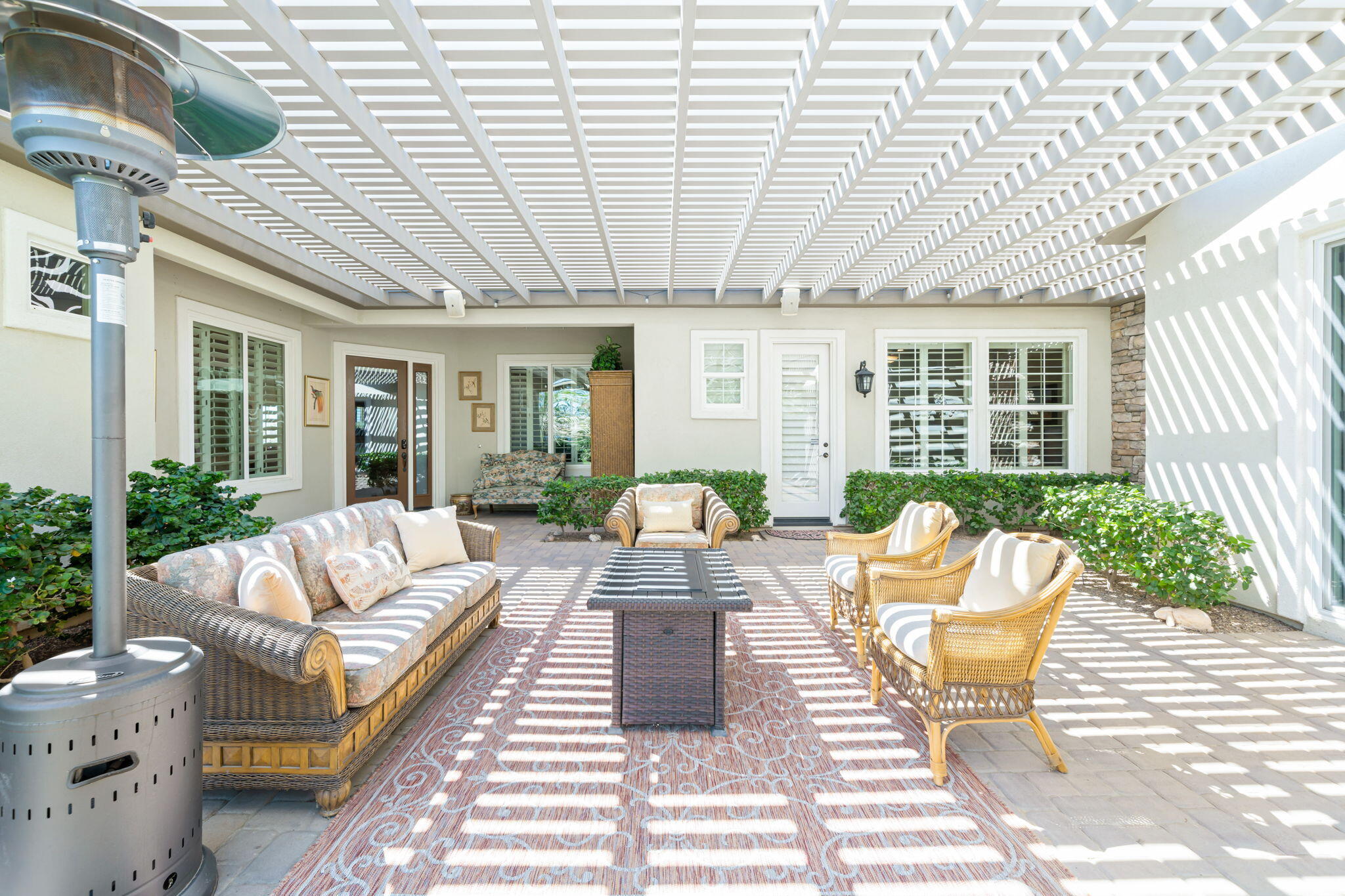 Enjoy your own private retreat with separate Casita, in the acclaimed Trilogy at La Quinta. A rare find, this spacious and open luxury home rests on a private estate-sized lot. A Mesquite model 2,784 SF, 4 bedrooms, 4 bathrooms. The property features an extraordinary backyard retreat, with covered patio, custom pavers, an oasis styled-pool and spa, and built-in BBQ station all wrapped in a park-like setting of brightly colored and textured desert flowers and trees. Behind the tall solid-wood entry door, is a stone and stucco foyer, and an expansive open-air courtyard with a Pergola cover that extends between the detached Casita and main home for comfy year-round outdoor living. Step into a home that is open, spacious, and bright with lofty 10-foot ceilings, arched doorways, tile on-point, crown molding, and picture windows with plantation shutters open to the gorgeous park-like views. The elegant great room features handsome wood-crafted built-ins with a gas-log fireplace and surround sound for a movie theater experience. A spacious gourmet kitchen showcases quality stainless appliances, including a double-oven, an abundance of cabinet and countertop space with slab granite and a custom tile backsplash, a center-island with seating and pendant lighting, and a bright breakfast area. The formal dining room features a built-in breakfront with lots of storage. A separate office off the great room can also double as a 5th bedroom.Interested in this Listing?