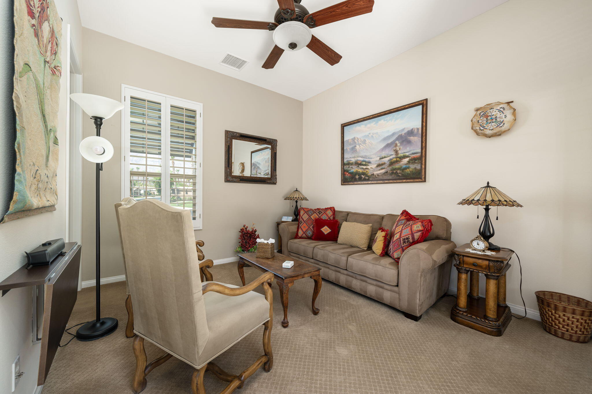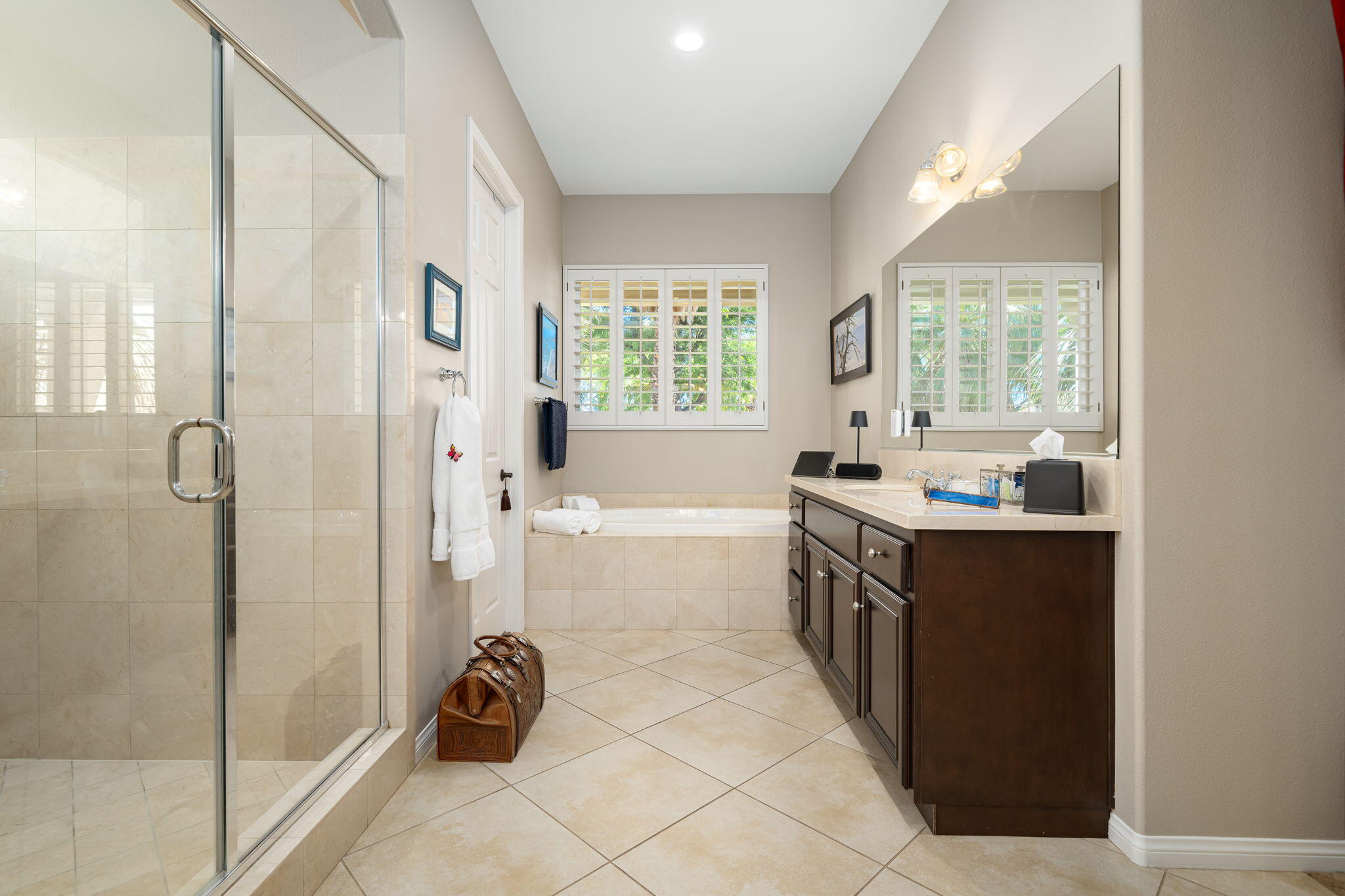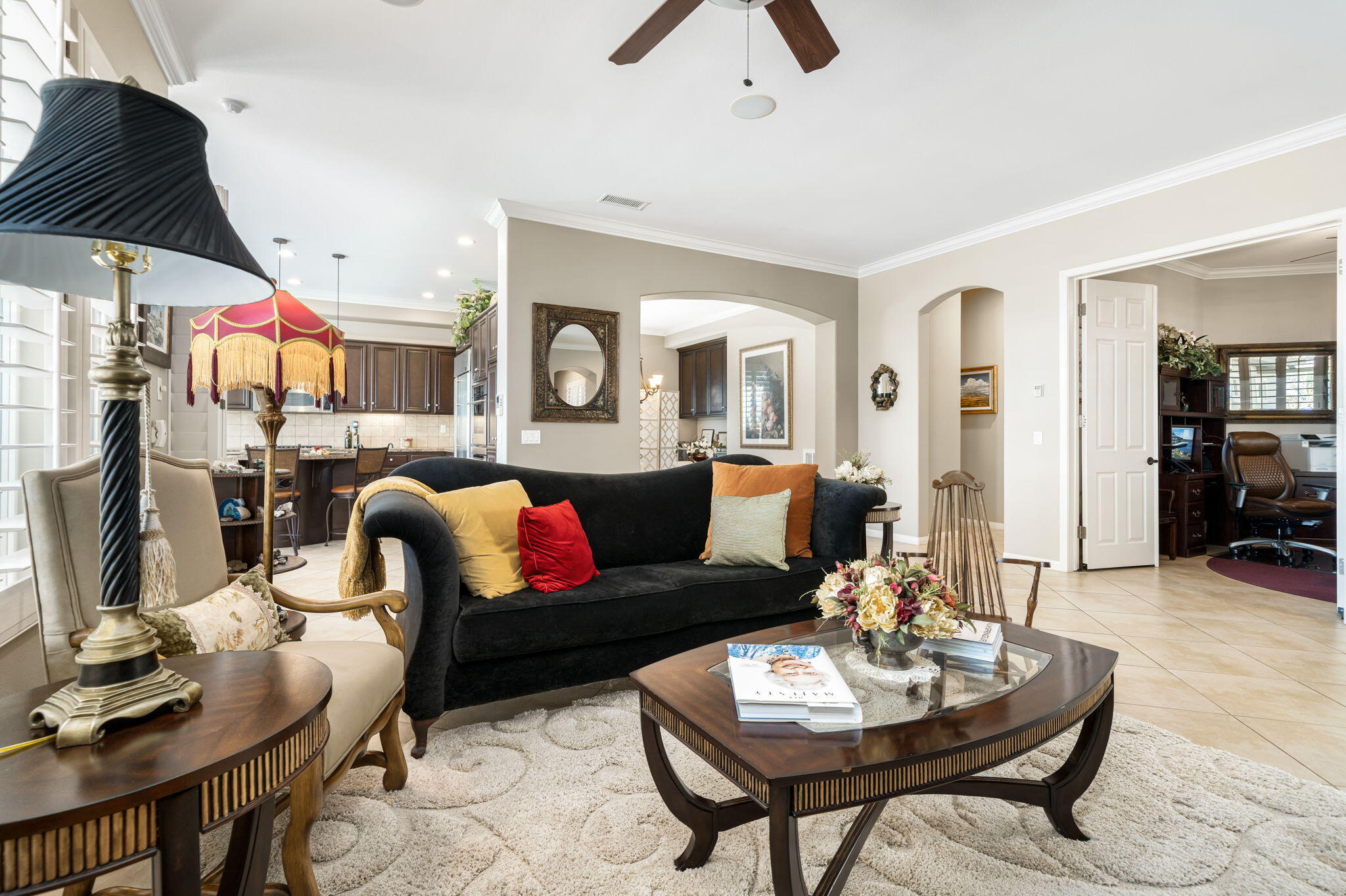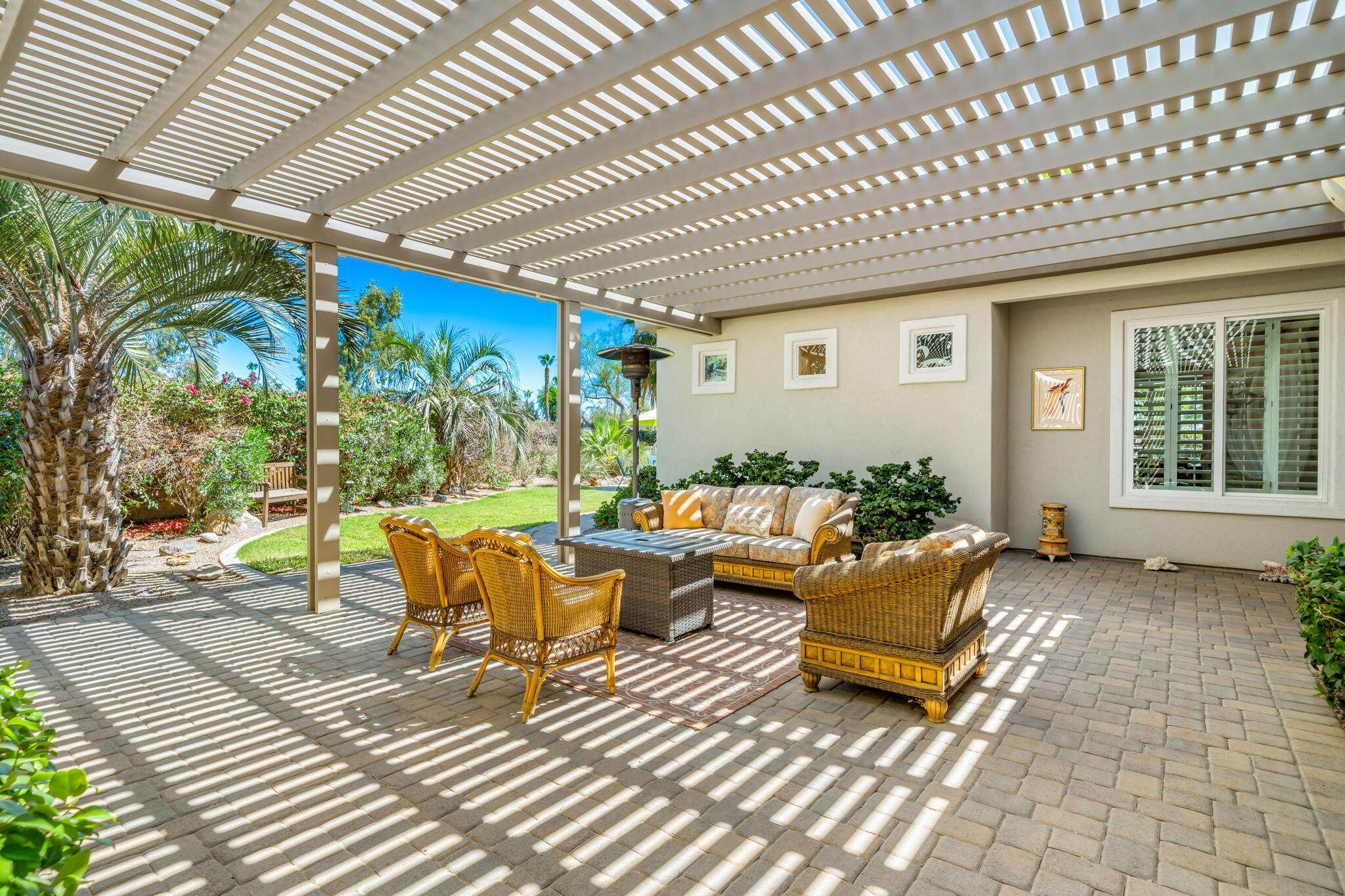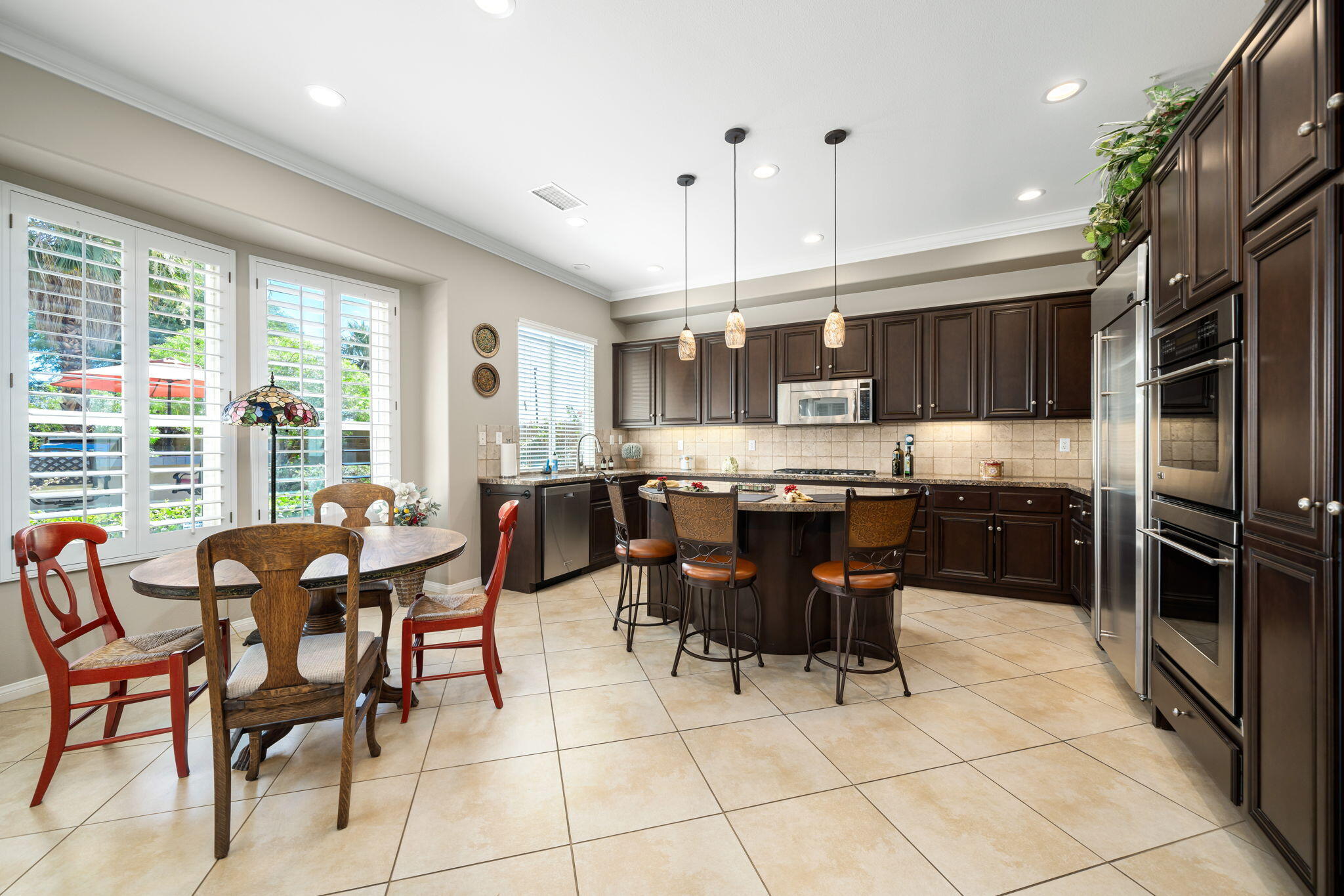 Enjoy your own private retreat with separate Casita, in the acclaimed Trilogy at La Quinta. A rare find, this spacious and open luxury home rests on a private estate-sized lot. A Mesquite model 2,784 SF, 4 bedrooms, 4 bathrooms. The property features an extraordinary backyard retreat, with covered patio, custom pavers, an oasis styled-pool and spa, and built-in BBQ station all wrapped in a park-like setting of brightly colored and textured desert flowers and trees. Behind the tall solid-wood entry door, is a stone and stucco foyer, and an expansive open-air courtyard with a Pergola cover that extends between the detached Casita and main home for comfy year-round outdoor living. Step into a home that is open, spacious, and bright with lofty 10-foot ceilings, arched doorways, tile on-point, crown molding, and picture windows with plantation shutters open to the gorgeous park-like views. The elegant great room features handsome wood-crafted built-ins with a gas-log fireplace and surround sound for a movie theater experience. A spacious gourmet kitchen showcases quality stainless appliances, including a double-oven, an abundance of cabinet and countertop space with slab granite and a custom tile backsplash, a center-island with seating and pendant lighting, and a bright breakfast area. The formal dining room features a built-in breakfront with lots of storage. A separate office off the great room can also double as a 5th bedroom.Interested in this Listing?