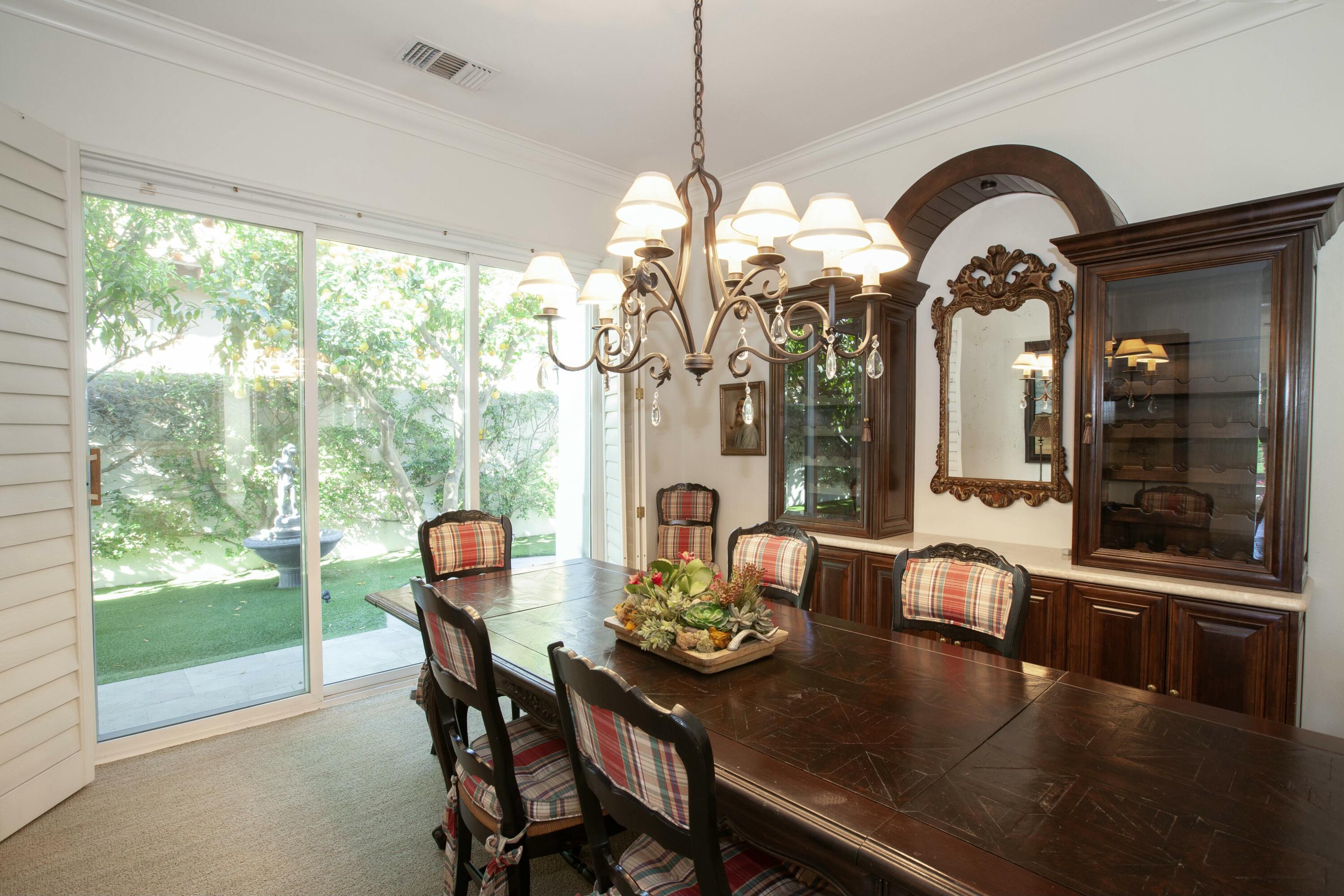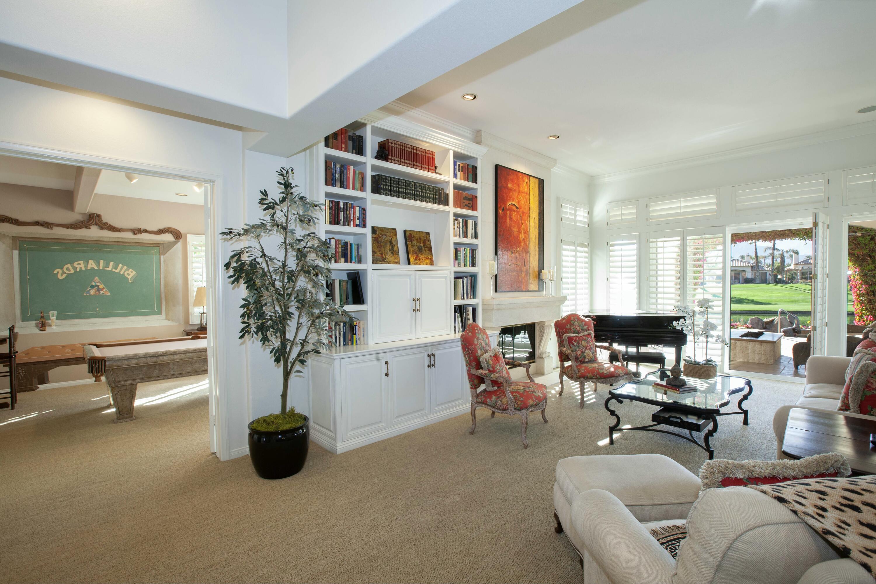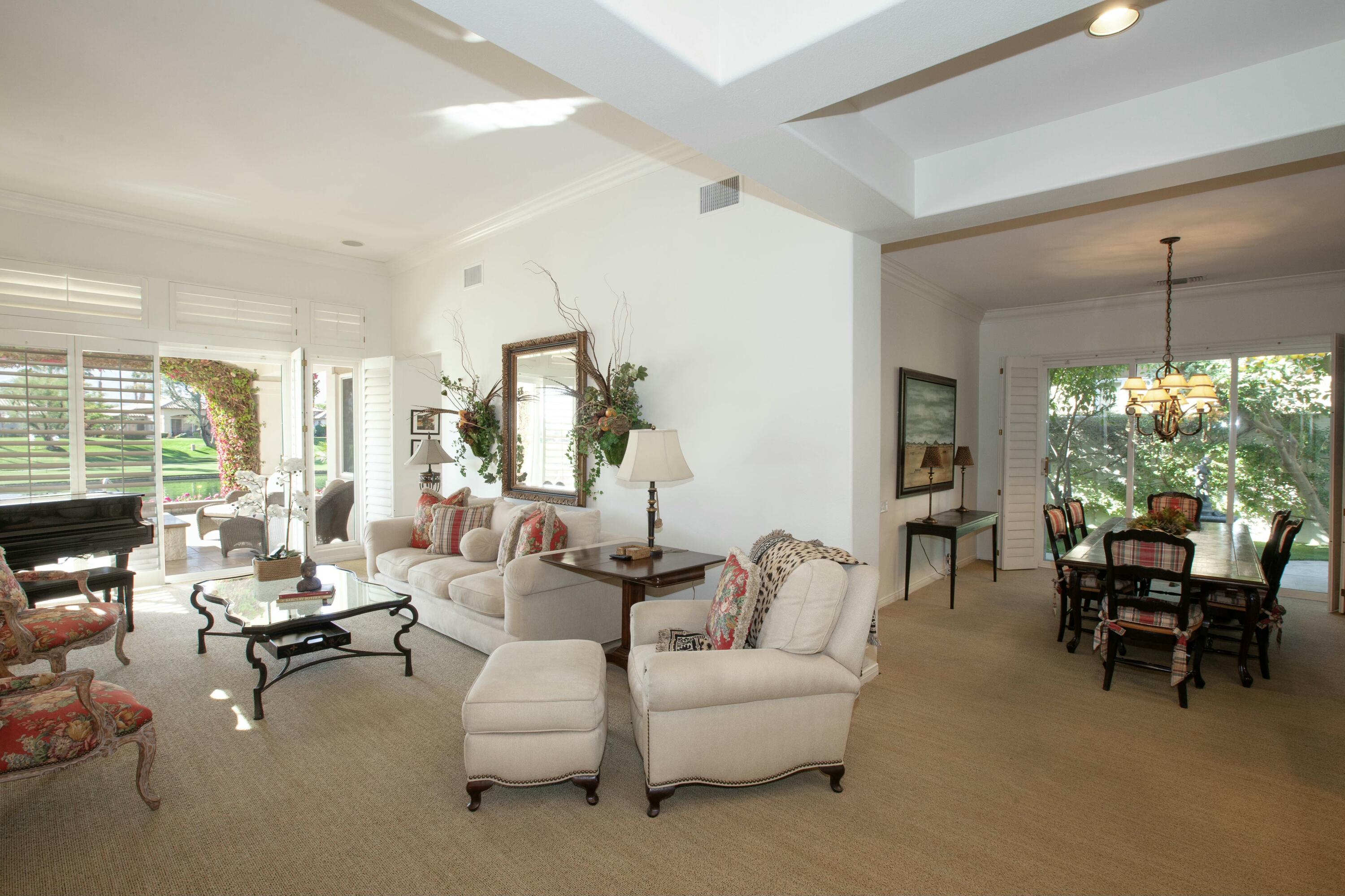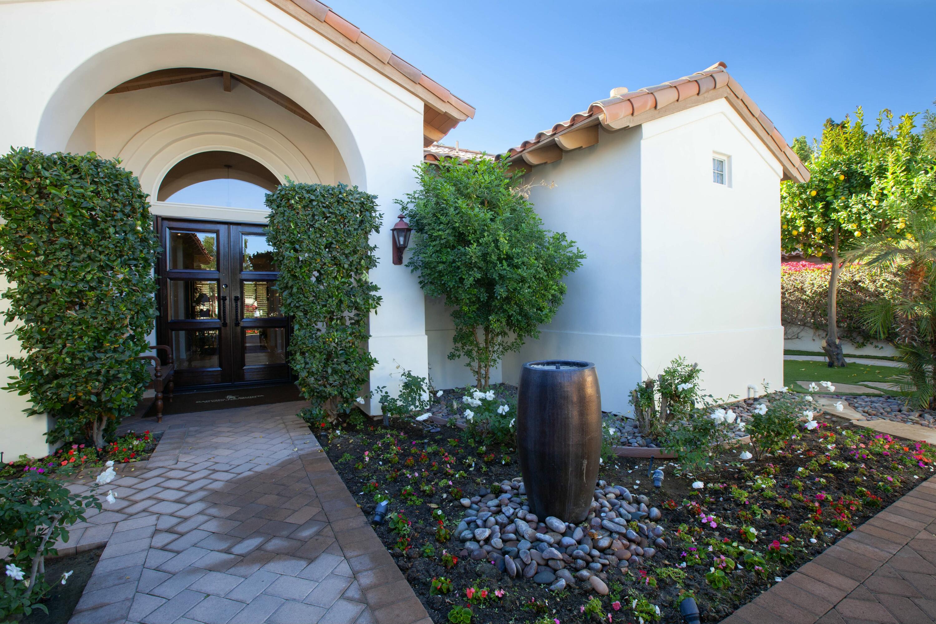 Set before a lake with panoramic South-facing Santa Rosa Mountain views, this incredible Hacienda 2 Plan is the idyllic lakeside setting for seasonal or year-round residents. Set well back from the street and accessed through a private courtyard entry with custom pavers, the home features numerous entertaining and living atmospheres that all take advantage of the incredible lake, golf course and mountain views. Features such as marble flooring, shutters, crown moulding and rich wood millwork create a tone of quality while volume ceilings and large walls of glass invite the outdoors and deliver an open and airy feel. An entertainer will appreciate the custom wetbar and adjacent formal dining room while steps away, one room has been converted into a billiard parlor that overlooks the lake and opens directly to a custom putting green. The chef's kitchen features a large center island, extensive use of granite, lake views and updated appliances - It's here you also find a waterfront morning room that's great for small meals or reading the paper. The main bedroom suite is ultra private and offers shutters, moulding and an incredible media area - steps away the main bath has a jetted tub, dual sinks, private commode and a massive walk-in closet. Additional features include a covered outdoor living area with fireplace and extensive nocce decking; freeform waterfront pool and spa with spectacular mountain views, bbq; detached guest house. New concrete garage floor & epoxy finish. Back on the Market, no fault of the sellers,Interested in this Listing?