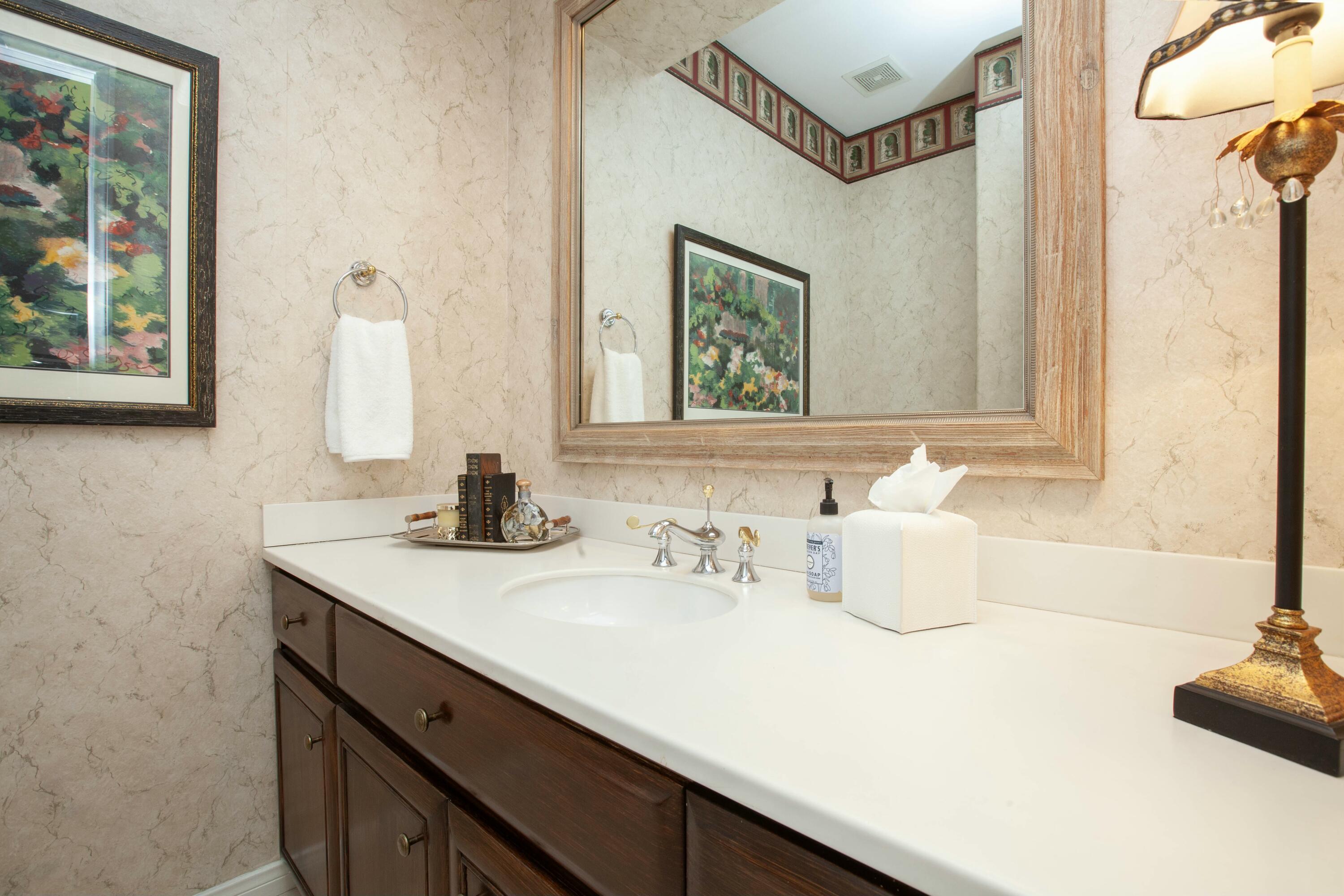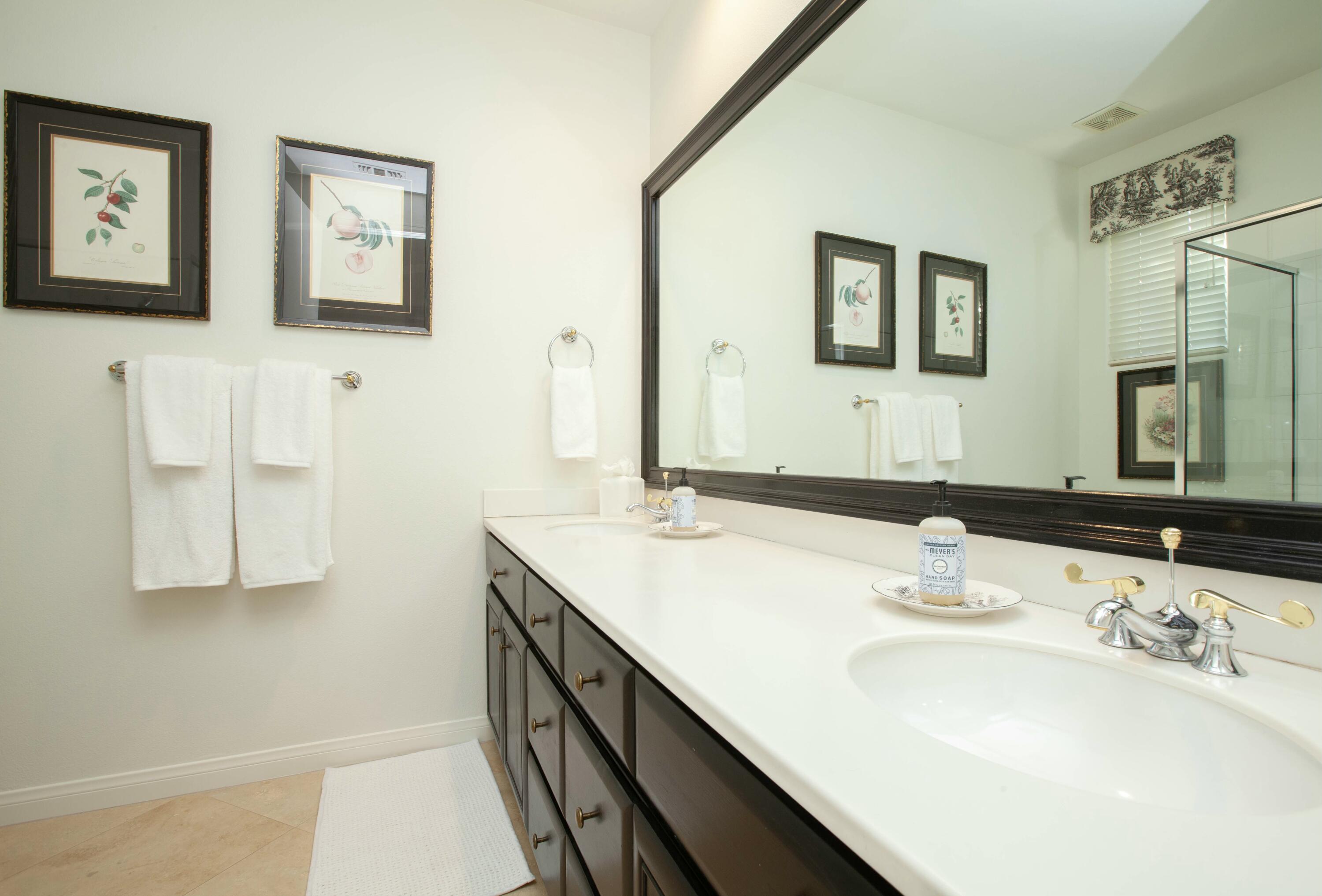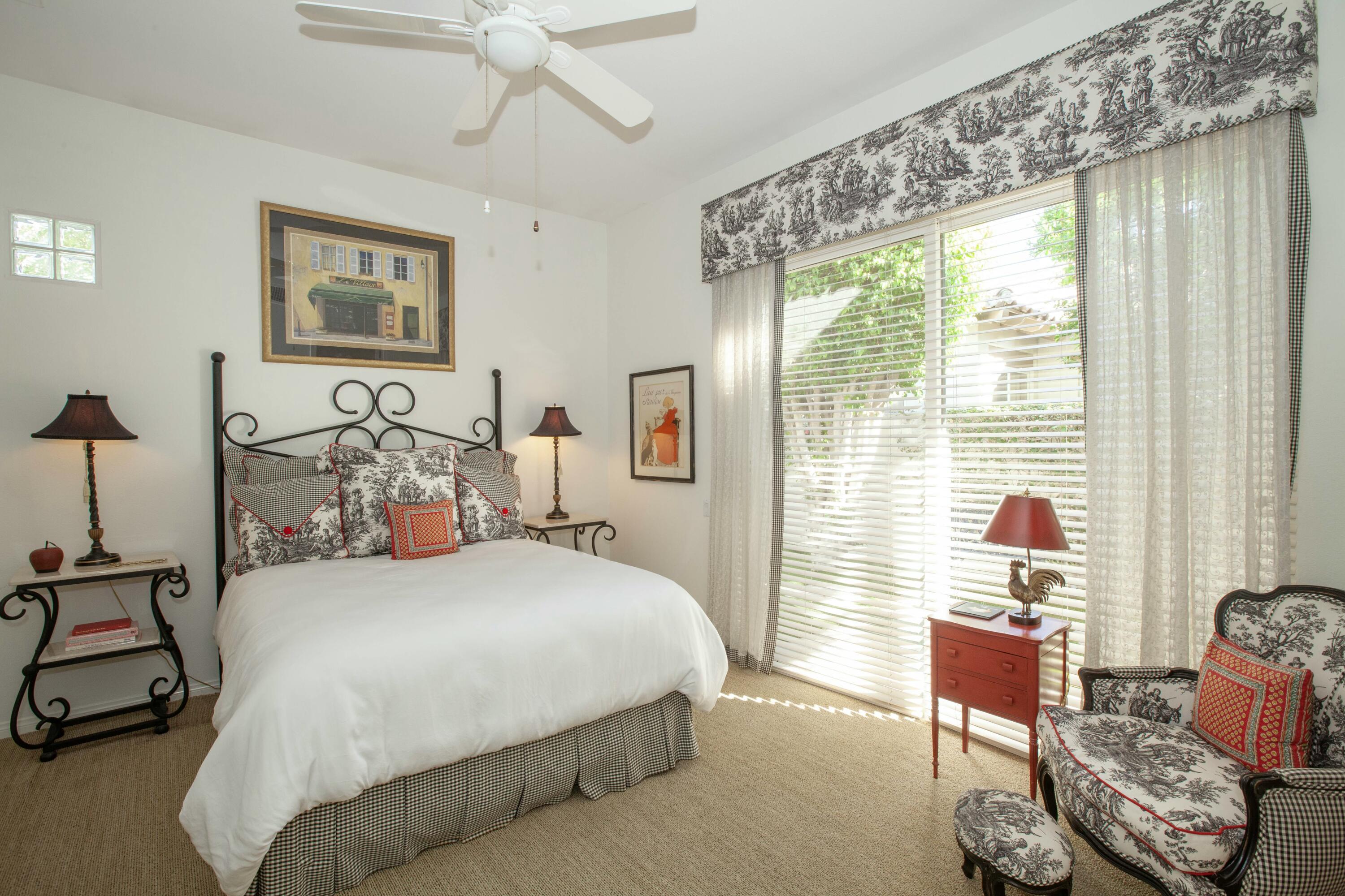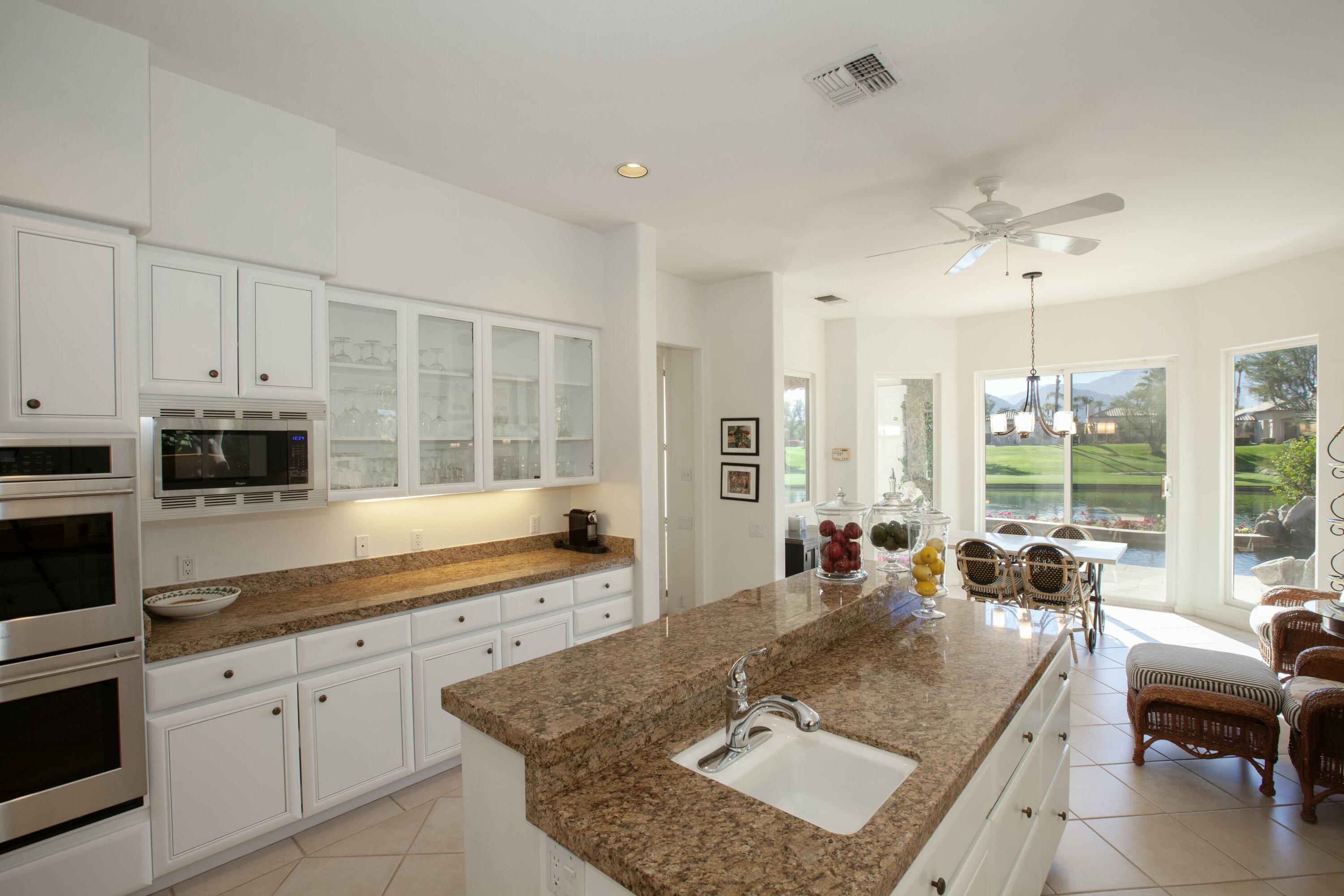 Set before a lake with panoramic South-facing Santa Rosa Mountain views, this incredible Hacienda 2 Plan is the idyllic lakeside setting for seasonal or year-round residents. Set well back from the street and accessed through a private courtyard entry with custom pavers, the home features numerous entertaining and living atmospheres that all take advantage of the incredible lake, golf course and mountain views. Features such as marble flooring, shutters, crown moulding and rich wood millwork create a tone of quality while volume ceilings and large walls of glass invite the outdoors and deliver an open and airy feel. An entertainer will appreciate the custom wetbar and adjacent formal dining room while steps away, one room has been converted into a billiard parlor that overlooks the lake and opens directly to a custom putting green. The chef's kitchen features a large center island, extensive use of granite, lake views and updated appliances - It's here you also find a waterfront morning room that's great for small meals or reading the paper. The main bedroom suite is ultra private and offers shutters, moulding and an incredible media area - steps away the main bath has a jetted tub, dual sinks, private commode and a massive walk-in closet. Additional features include a covered outdoor living area with fireplace and extensive nocce decking; freeform waterfront pool and spa with spectacular mountain views, bbq; detached guest house. New concrete garage floor & epoxy finish. Back on the Market, no fault of the sellers,Interested in this Listing?