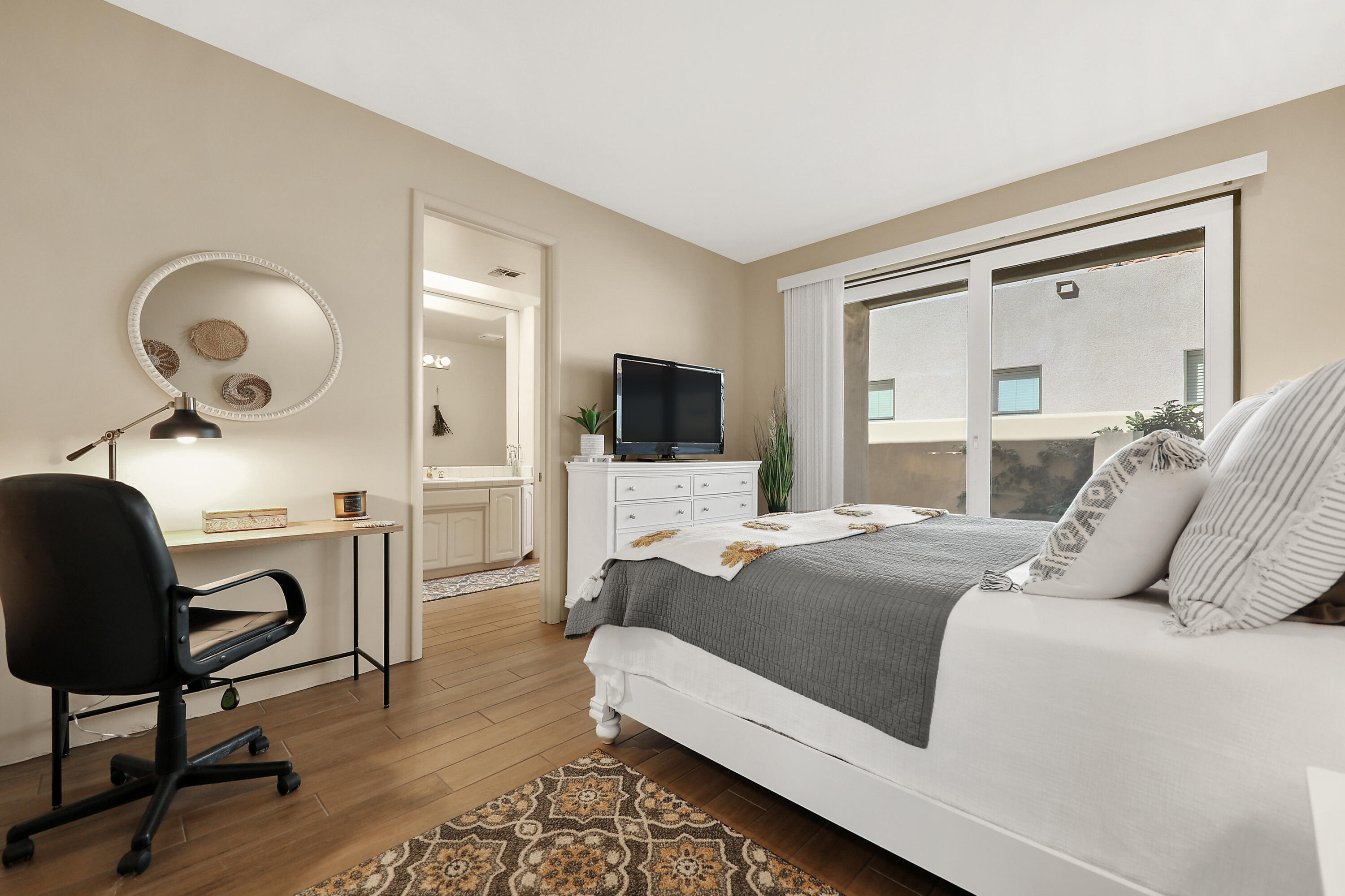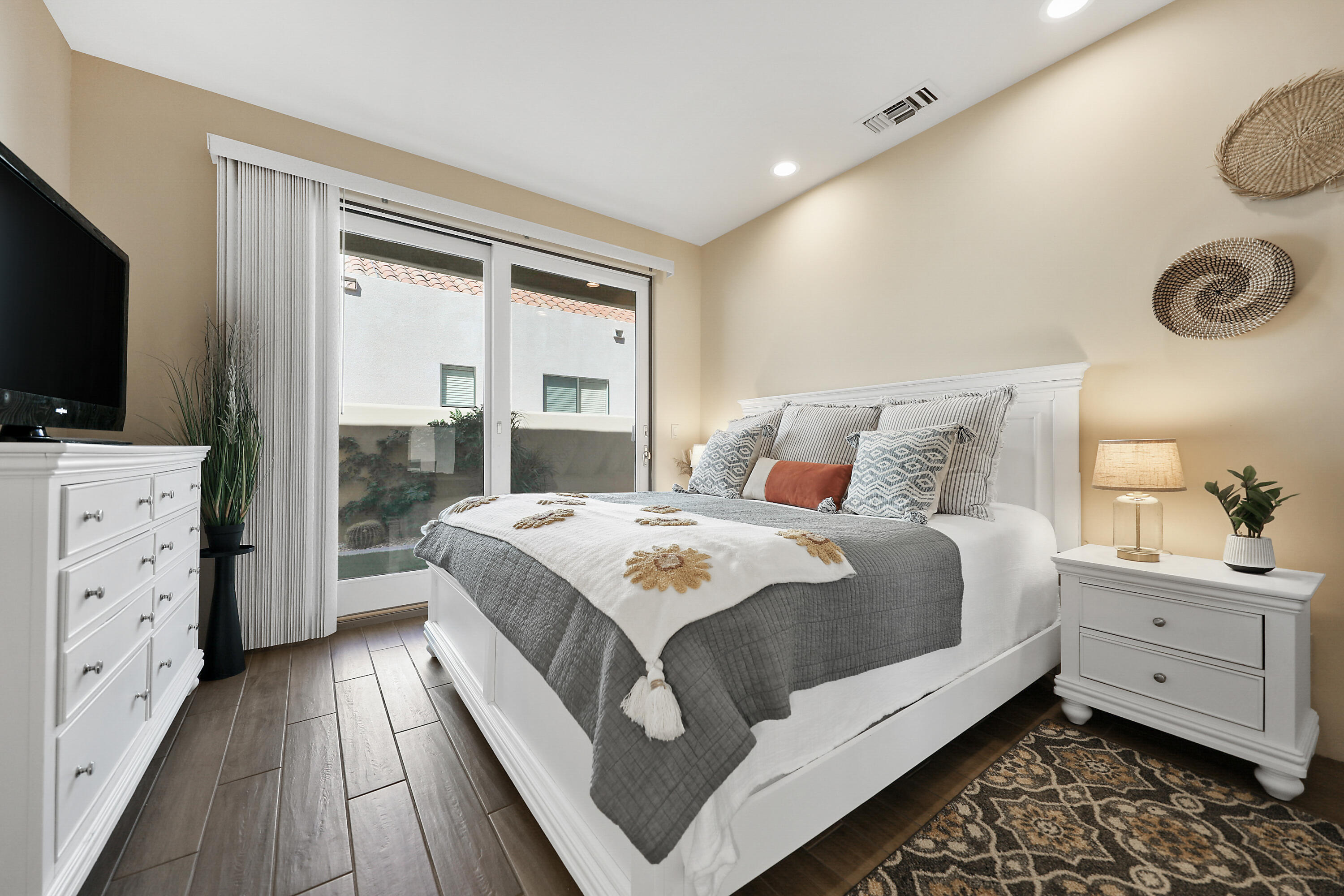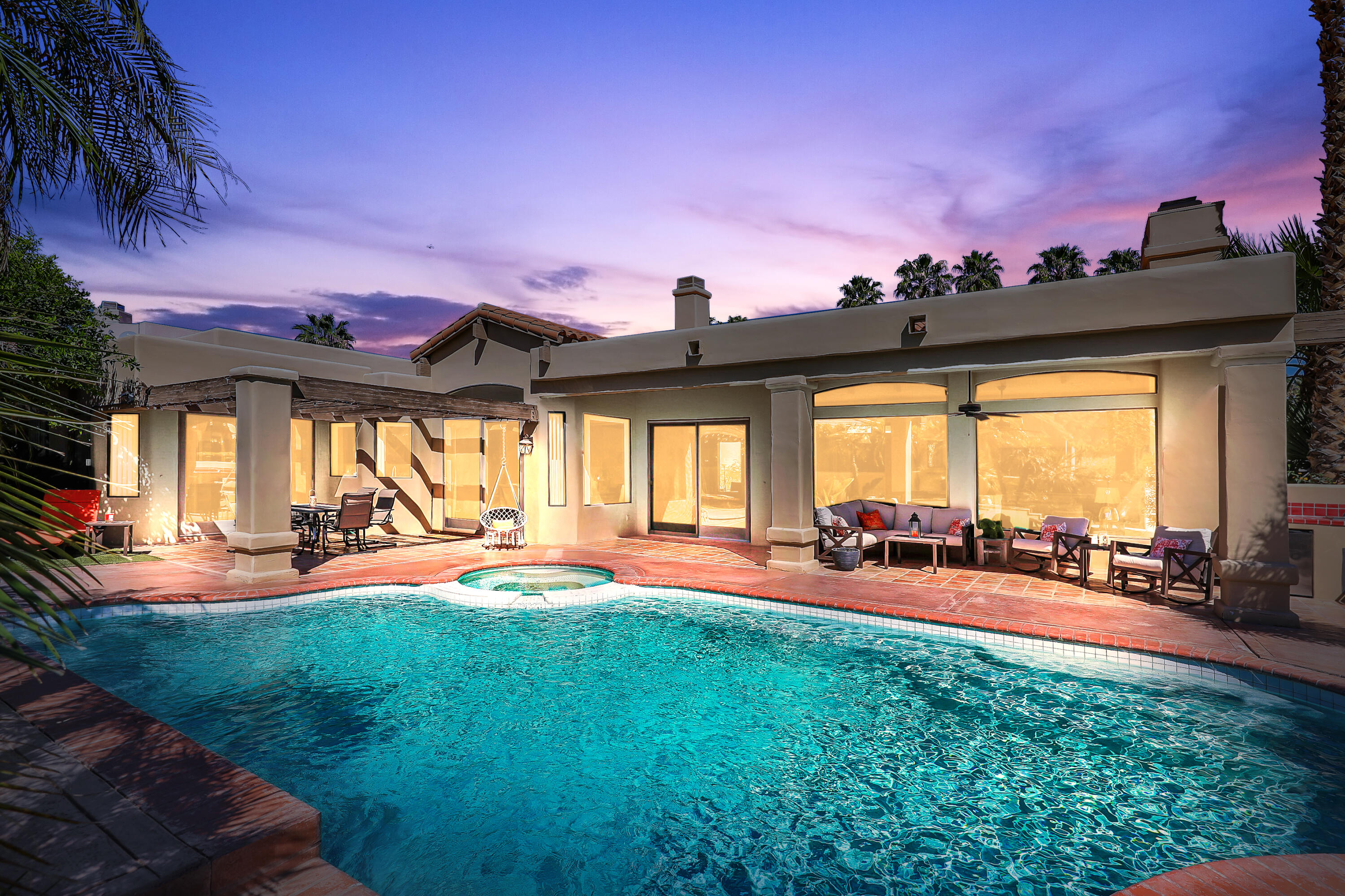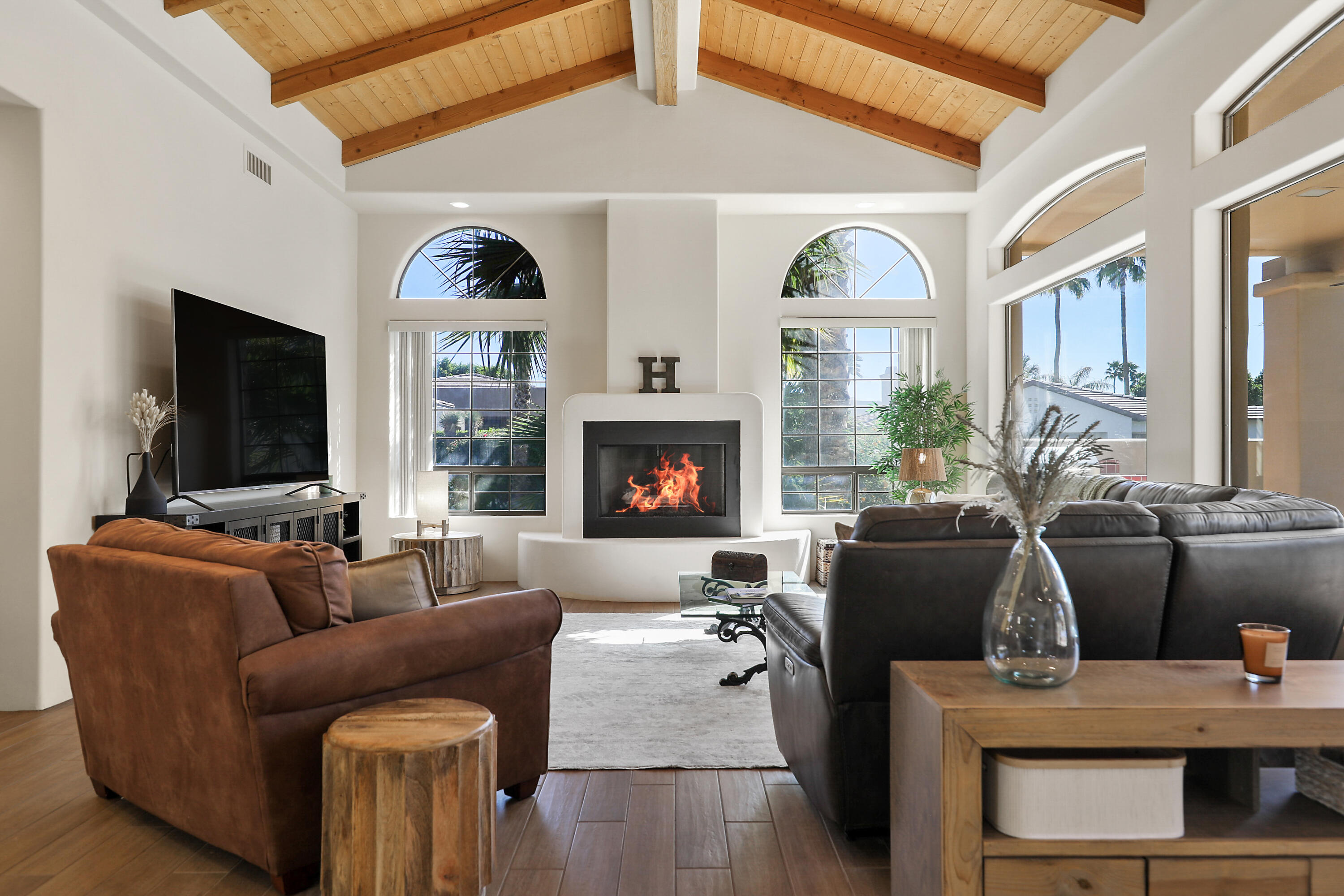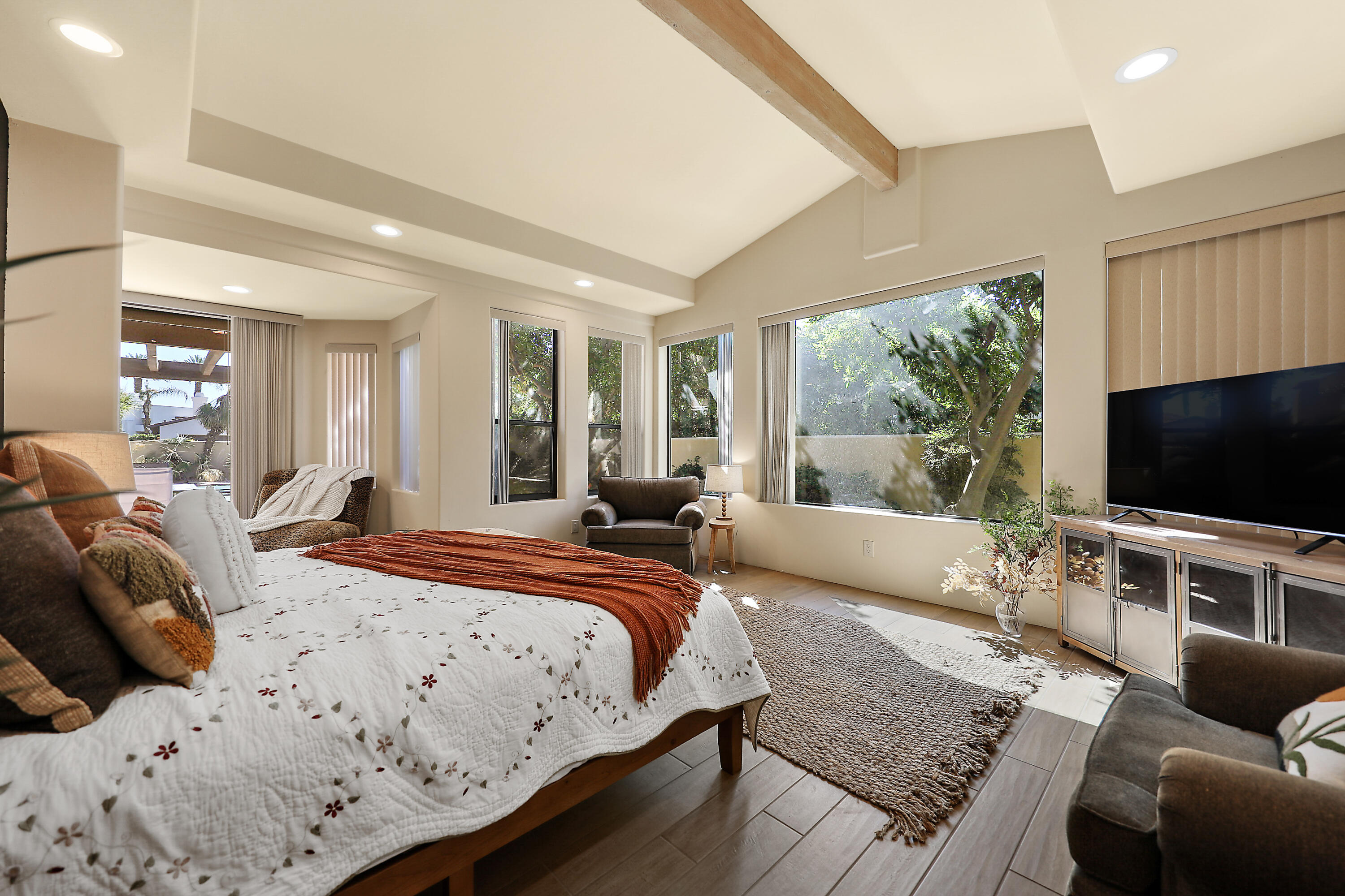 Welcome to a beautifully designed 3-bedroom + bonus space/office, 5-bathroom home in the highly sought-after Painted Cove neighborhood. This Ministrelli-built Spanish-style residence sits on a large corner lot, offering a private and serene setting surrounded by mature citrus trees.Step through the grand double-door entrance into a home defined by vaulted ceilings with striking wood beams, an abundance of natural light, and expansive backyard and pool views. The well-thought-out floor plan features a luxurious primary suite with 2 walk-in closets and dual bathrooms, connected by a spacious shower. Two additional guest ensuites provide privacy and comfort for family and visitors. A versatile bonus space offers the flexibility to create a home office, den, or additional guest room.The private courtyard sets the tone for this exceptional home, while the stunning backyard is the perfect retreat for relaxation and entertaining. Enjoy low HOA fees and an amazing community green space where the neighborhood comes together in a pet friendly environment. Painted Cove is an exclusive, gated community with 78 homes in the heart of La Quinta, offering privacy, tranquility, and stunning mountain views. With wide streets and beautifully landscaped lots, the neighborhood exudes a sense of sophistication and charm.Located just minutes from Old Town La Quinta, world-class golf courses, hiking trails, and fine dining, Painted Cove offers the perfect blend of desert serenity and convenient access to top-tier amenities. For those seeking elegance, comfort, and a premier La Quinta lifestyle, Ministrelli-built homes in Painted Cove represent a rare and desirable opportunity. Don't miss this rare opportunity to own a timeless desert retreat in one of La Quinta's most desirable neighborhoods.Interested in this Listing?