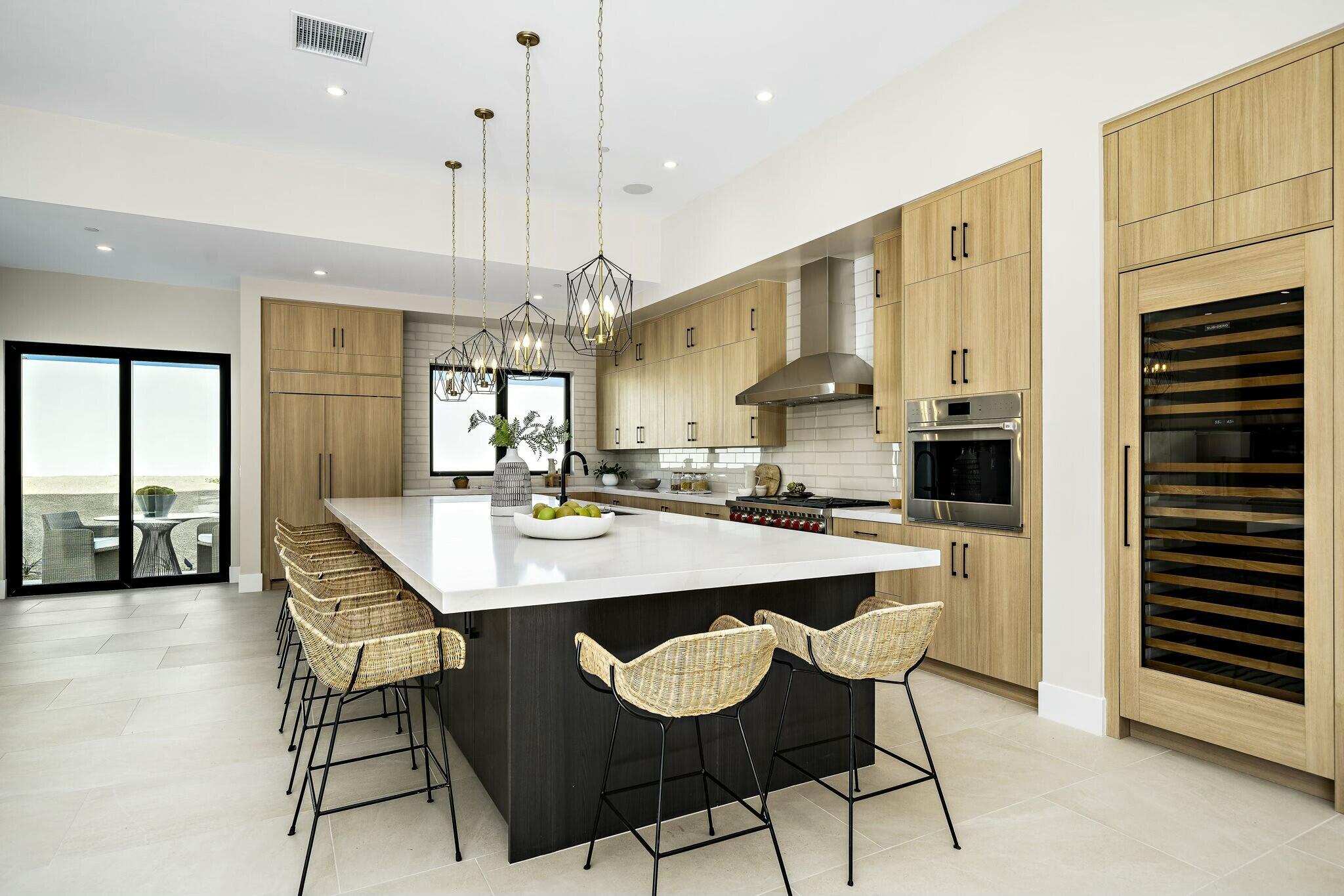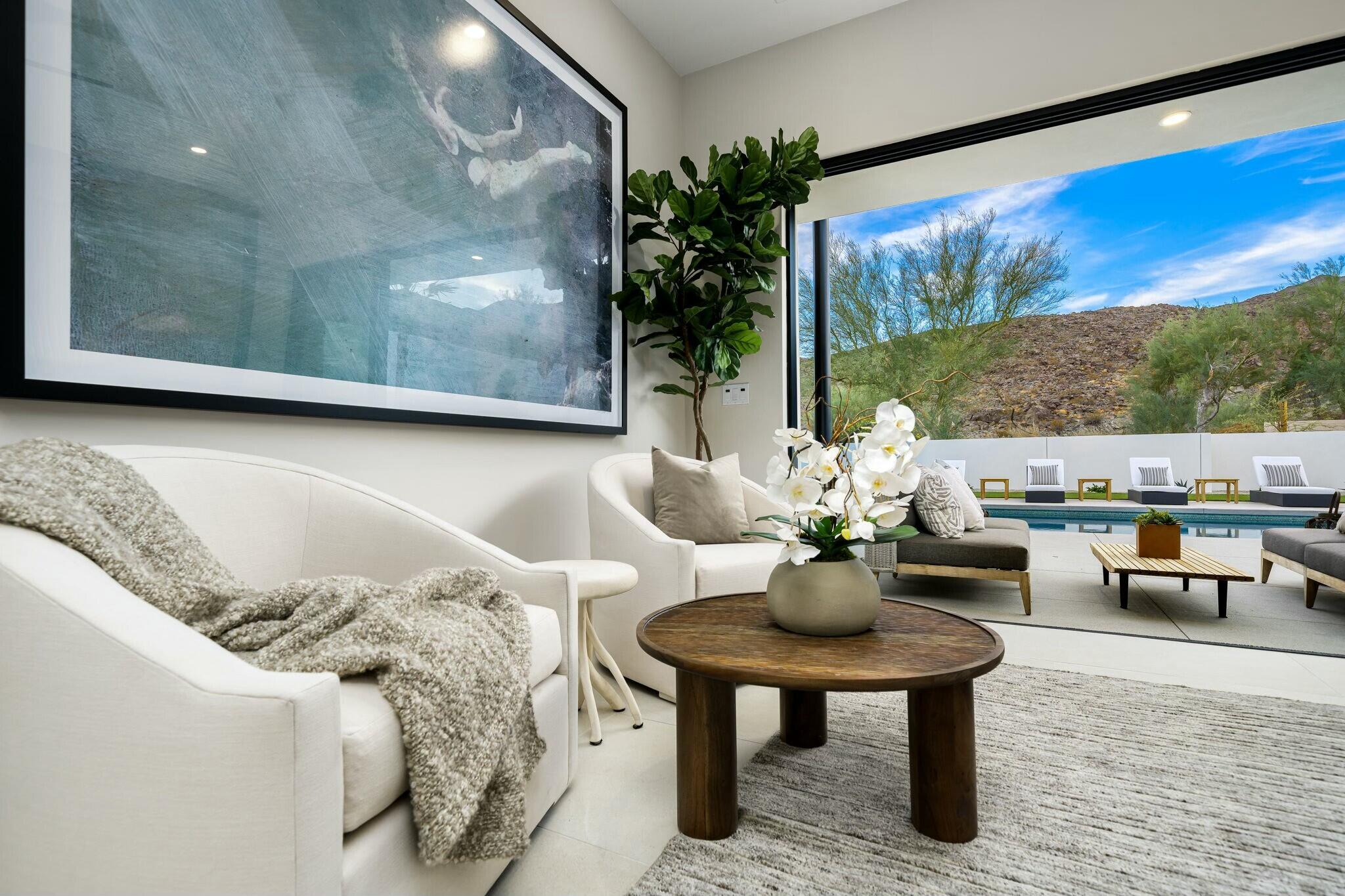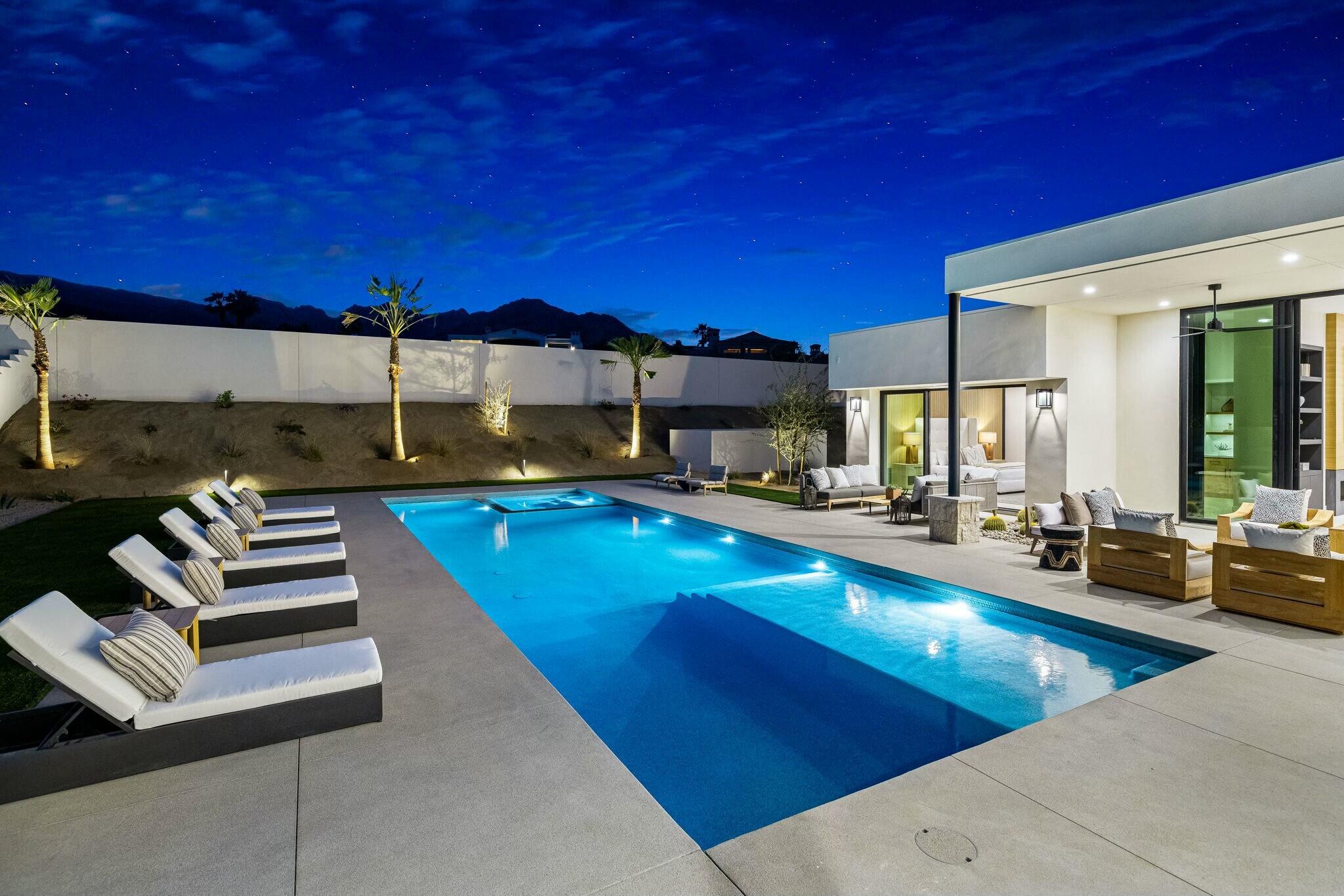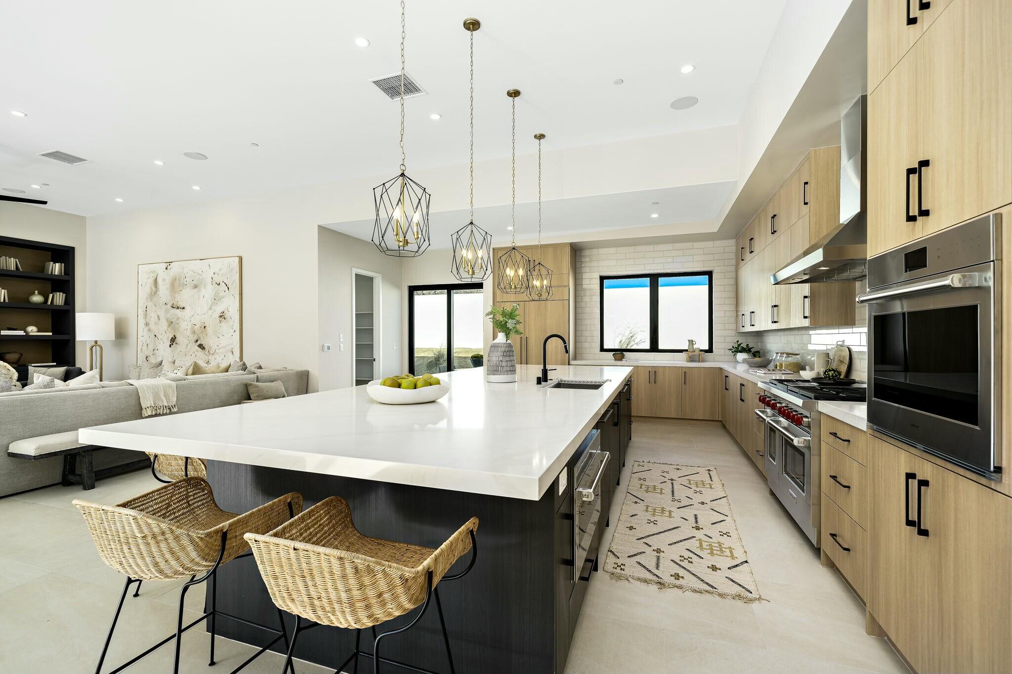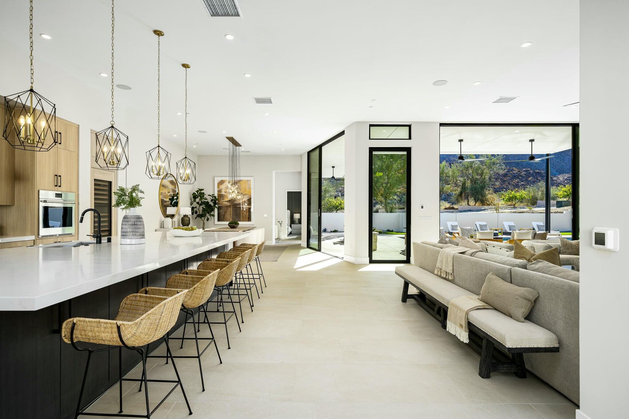 Discover modern elegance and desert beauty at 79242 Tom Fazio South, La Quinta, CA. Situated on just over a half-acre corner lot in The Quarry, this newly built desert contemporary home offers seamless indoor-outdoor living with breathtaking views. Featuring four bedrooms and four and a half baths, the home is thoughtfully designed for comfort and style. Front-facing entertainment spaces showcase unobstructed south-facing views of the majestic Santa Rosa Mountains, while stacking sliding doors in the living room, dining area, and primary suite create a seamless connection to the outdoors. Large-format tile enhances the modern aesthetic throughout. At the heart of the home, the kitchen boasts an oversized island, perfect for entertaining. Outfitted with premium appliances, including a Wolf(r) 48'' gas range, Subzero(r) refrigerator, and wine fridge, it's designed for unforgettable gatherings. Sleek European cabinetry and a walk-in pantry combine style and practicality. The primary suite offers tranquil pool and mountain views, with a spa-like bath featuring dual vanities, an oversized shower, a soaking tub, and a spacious walk-in closet. A three-car garage with epoxy-coated floors and an EV charging station adds convenience. Located in The Quarry, home to a nationally ranked top-100 golf course designed by Tom Fazio, the community also features a 10-hole short course and an 18-hole putting course. Schedule a tour today to experience this exceptional home.Interested in this Listing?