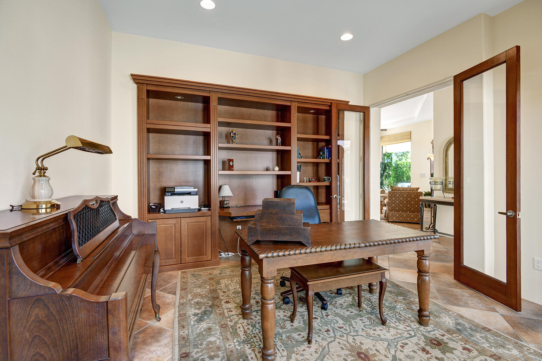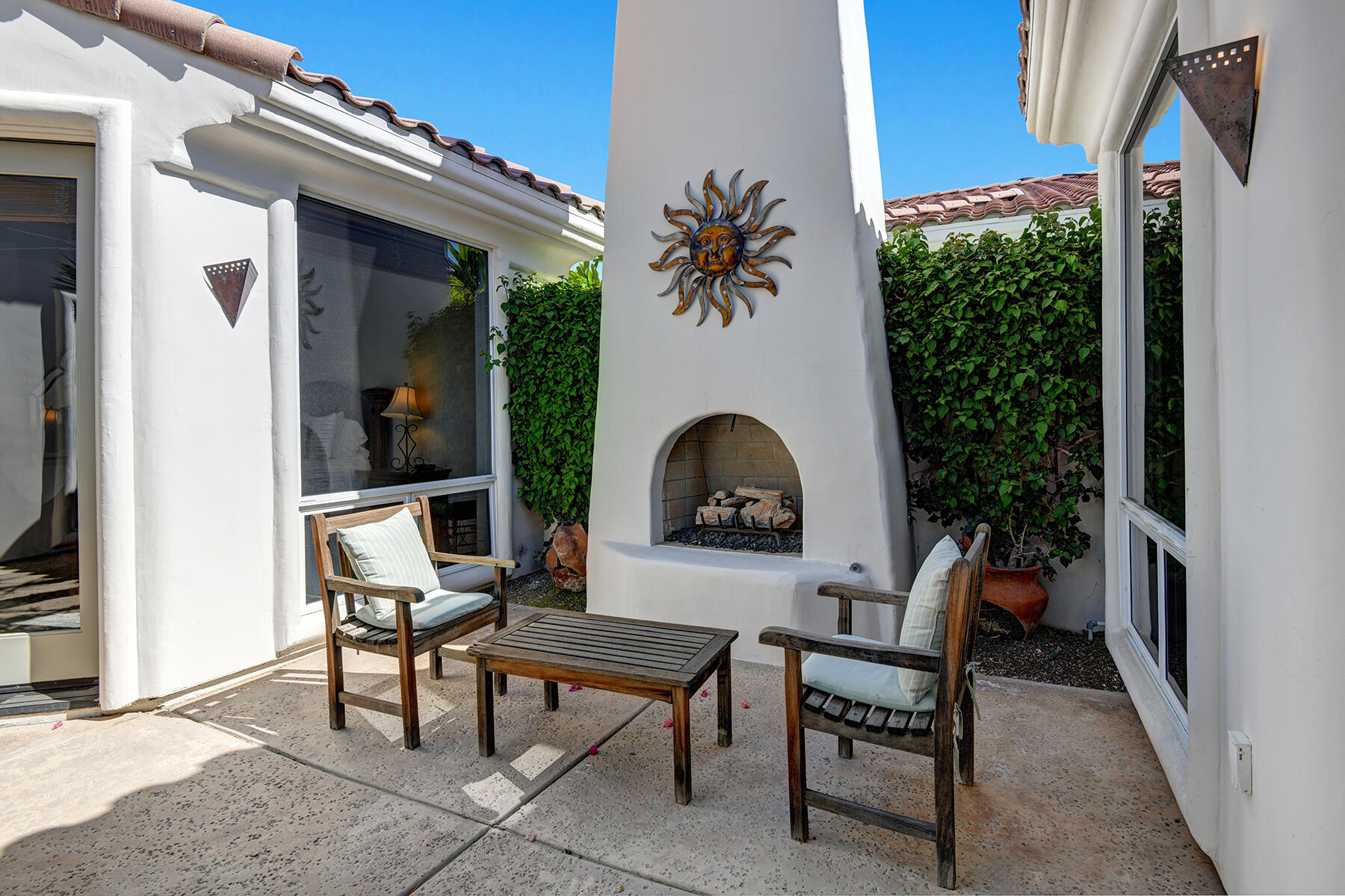 Stunning south-facing Valencia Plan 2 home in The Citrus community, perfectly situated on the 8th fairway with breathtaking mountain views. This beautifully remodeled home, offered fully furnished, blends elegance with modern updates and a highly desirable layout.Featuring 3 bedrooms plus a den/office and 3.5 bathrooms, this home includes a detached casita, perfect for guests. The inviting center courtyard with a built-in fireplace creates a warm and welcoming ambiance. The outdoor backyard space is ideal for relaxing and enjoying the picturesque golf course and mountain views, complete with retractable awnings for added shade and comfort.A major renovation in 2022 enhanced the home's style and functionality, including new kitchen countertops, sink, faucet, garbage disposal, backsplash, a new microwave oven, and a new refrigerator. The powder room was updated with a new countertop, sink, and faucet, while the bar area also received a new countertop, sink, and faucet.Located in the private, guard-gated Citrus community, this move-in-ready home offers the perfect blend of luxury, comfort, and breathtaking surroundings. Don't miss this incredible opportunity to own in one of La Quinta's premier communities!Interested in this Listing?
