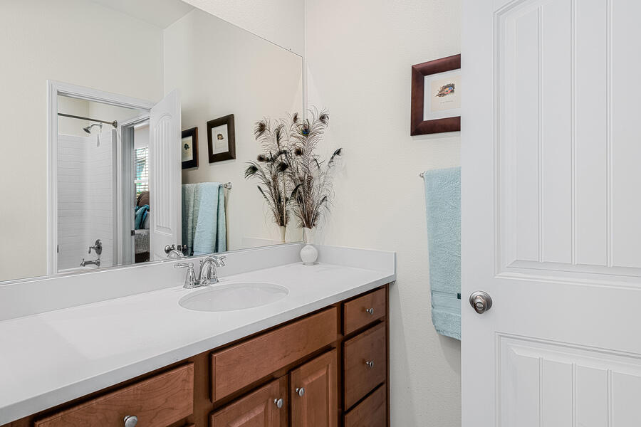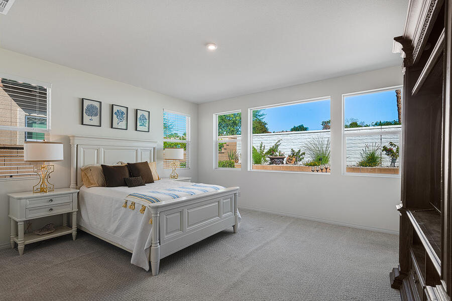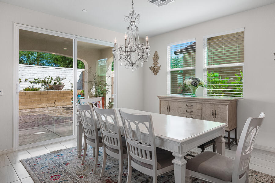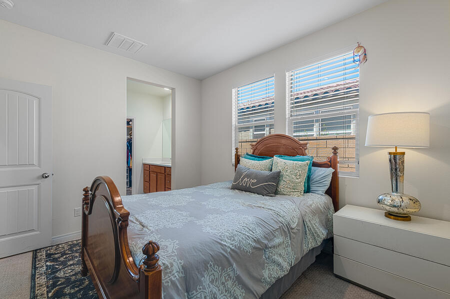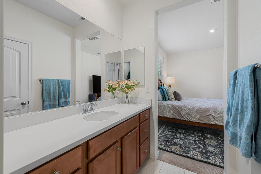 Welcome to this inviting three-bedroom, two-and-a-half-bath home, nestled in the tranquil, private enclave of Floresta, just across from SilverRock Golf Course. Designed with an open-concept layout, the kitchen flows seamlessly into the dining area and living room, creating a comfortable space for everyday living. The kitchen features a butler's pantry, stainless steel appliances, and a spacious island with granite countertops, making meal prep and entertaining a breeze. Tile flooring runs throughout the home, with cozy carpeting in the bedrooms. Retreat to the primary suite, where a spa-like bath awaits with a standalone soaking tub, separate shower, and dual vanities. Two guest bedrooms share a Jack-and-Jill bathroom, providing both convenience and privacy. Step outside to your secluded backyard oasis, offering mountain views and no rear neighbors. Thoughtfully designed with pavers, a tranquil fountain, raised flower beds, and lush greenery, this serene space is perfect for relaxing or entertaining. As part of the Floresta community, enjoy access to resort-style amenities, including a sparkling pool and spa with cabanas, a clubhouse, scenic walking trails, and panoramic mountain vistas. Don't miss your chance to make this charming home your own. Schedule a showing today and experience all that this peaceful Floresta community has to offer!Interested in this Listing?