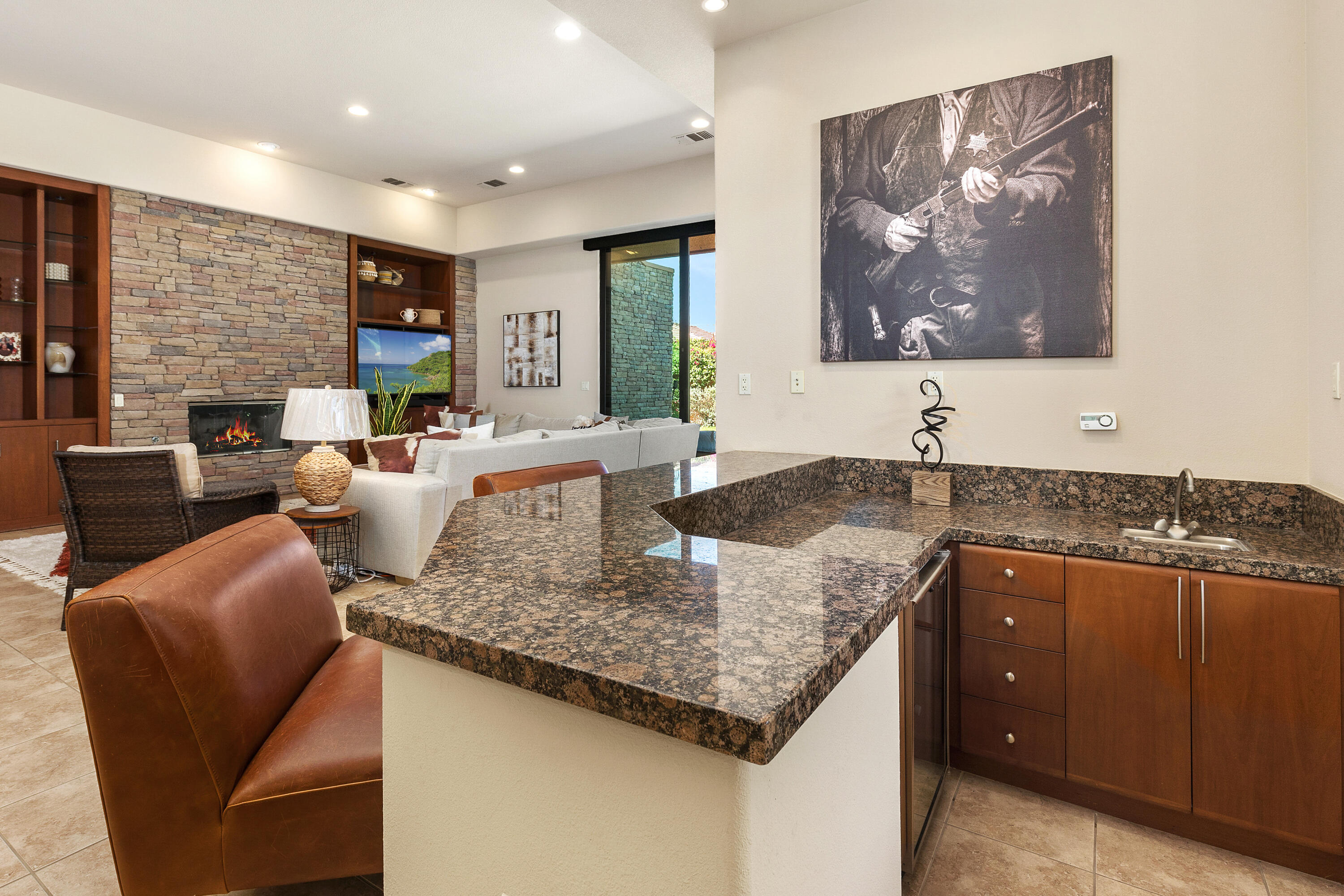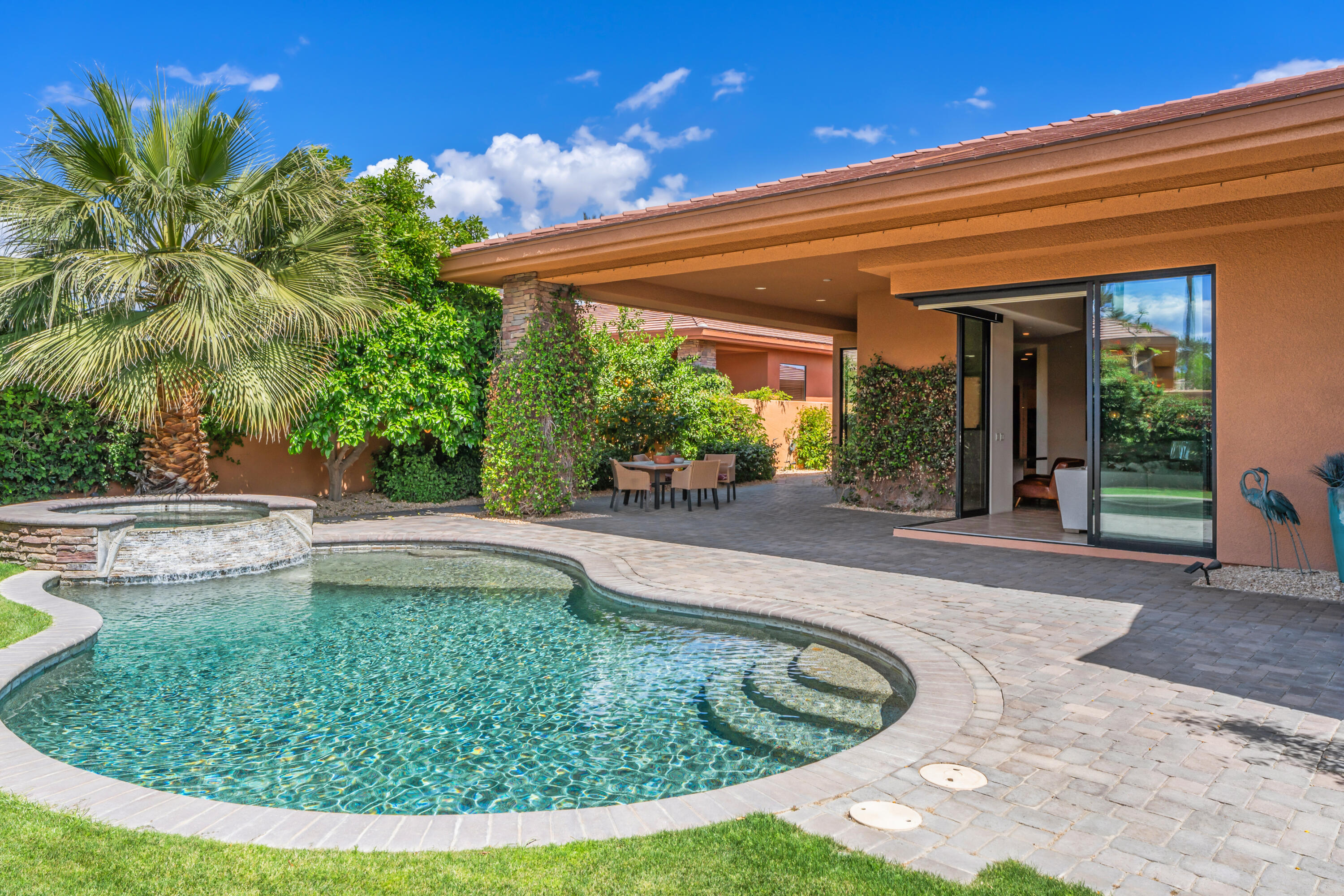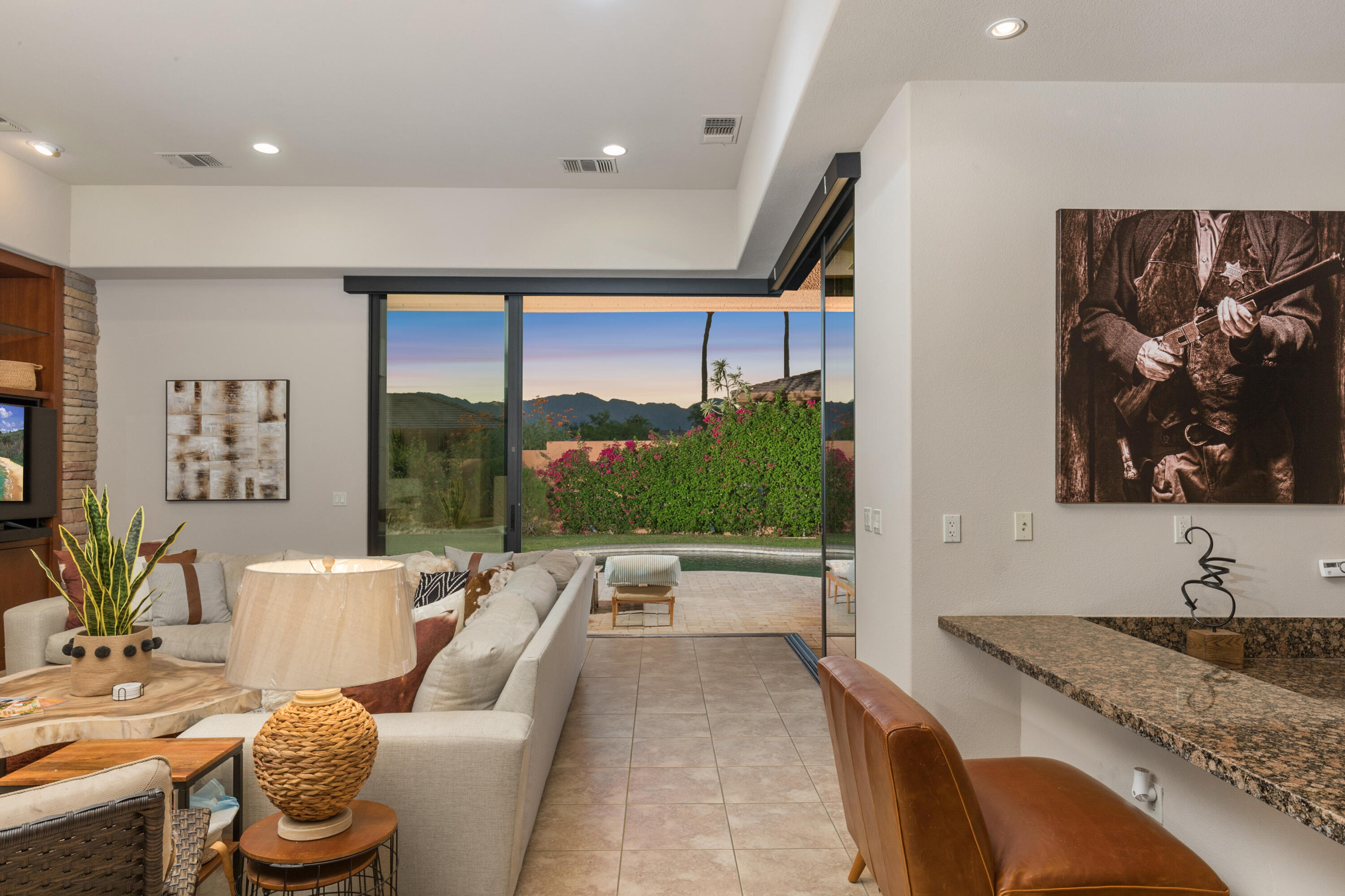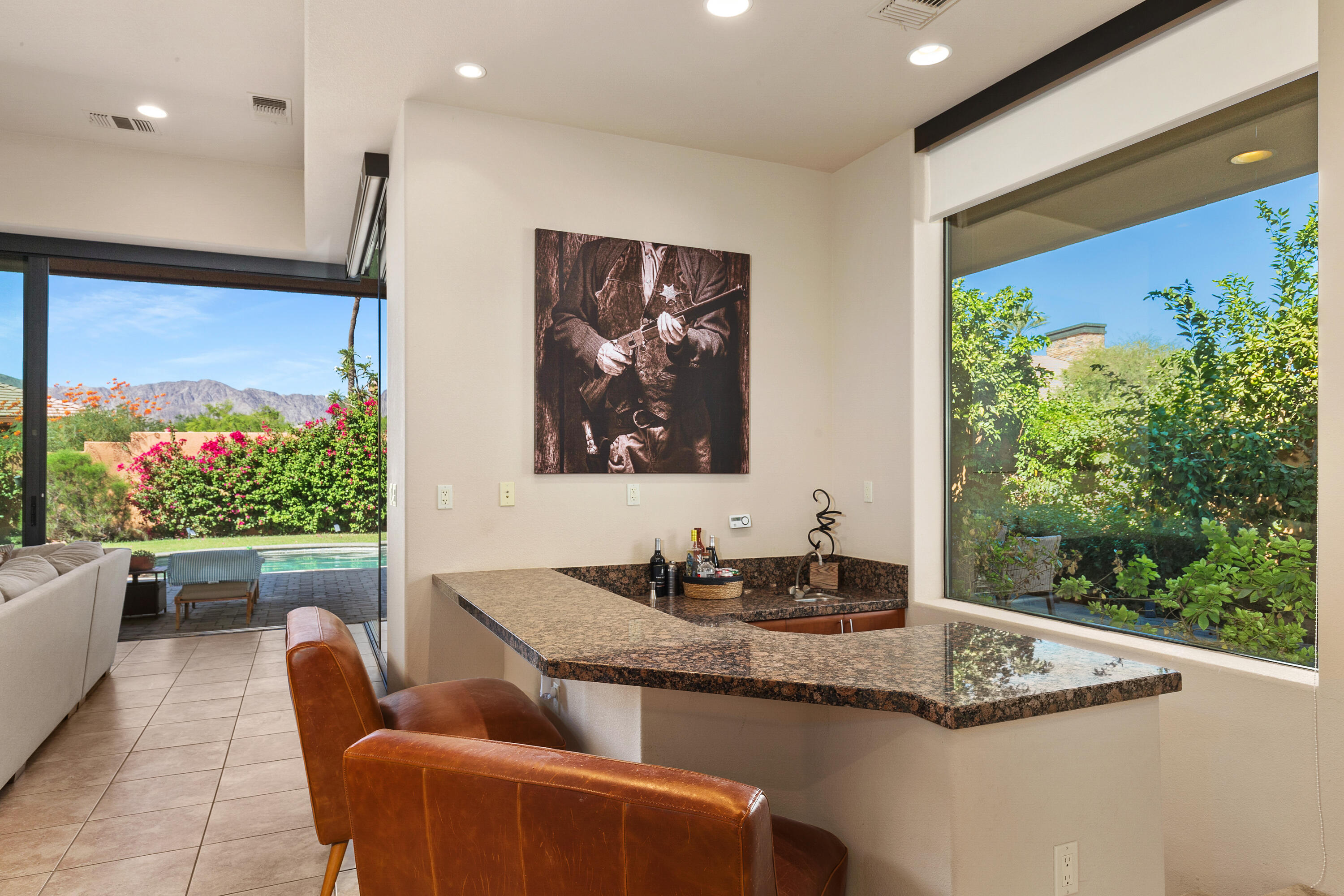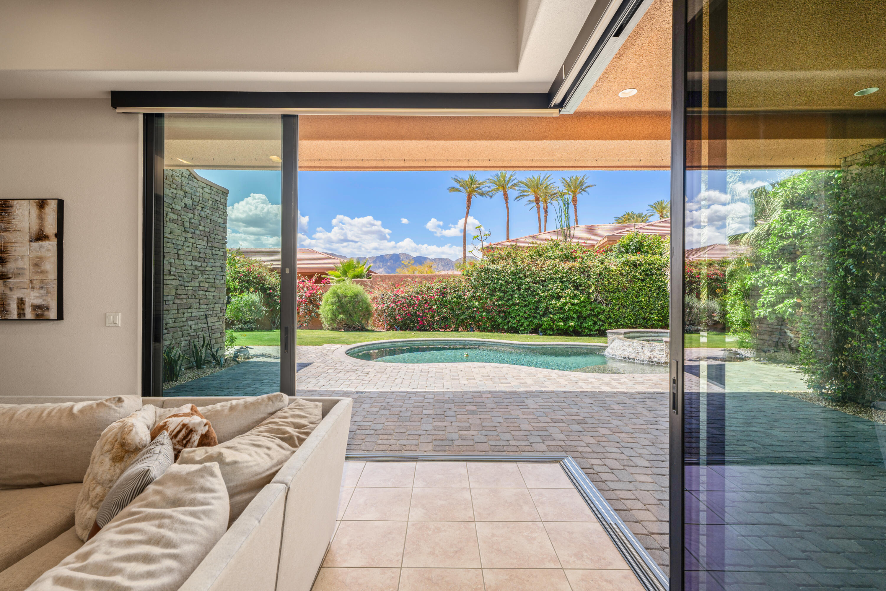 Welcome to Palmilla, an exclusive guard-gated community where sophistication meets serenity. Now available at a newly reduced price! This stunning residence features 3 bedrooms, 3 bathrooms, and a private patio, offering a seamless blend of elegance and comfort. Step into your own oasis, complete with a charming courtyard and a spacious living area adorned with stylish tile flooring. The gourmet kitchen, equipped with premium stainless steel appliances, dual sinks, large prep areas, was designed with a chef in mind. Unwind in the tranquility of your west-facing backyard, where breathtaking mountain views and dazzling sunsets create the perfect backdrop for relaxation by the pool or spa. The expansive patio enhances outdoor living, while a cozy fireplace adds warmth and charm to the interior. Stacking sliding doors in the living room and breakfast area effortlessly merge indoor and outdoor spaces.This rare home is one of only six detached Palo Brea models in Palmilla! The entryway welcomes you with a paver driveway leading to a two-car garage plus a dedicated golf cart space and a private courtyard. Enjoy the convenience of a large air-conditioned 'Costco' storage room, trash concierge service, and a peaceful interior location. The HOA maintains the front yard and has recently refreshed the landscaping for added curb appeal. The back yard is large, enclosed, private, and perfect for your pets!Palmilla is a picturesque lakefront community featuring 159 homes and award-winning contemporary architecture. Its prime location offers easy access to shopping, dining, and world-class golf. With its newly reduced price, this is an exceptional opportunity to experience luxurious desert living at incredible value!Interested in this Listing?