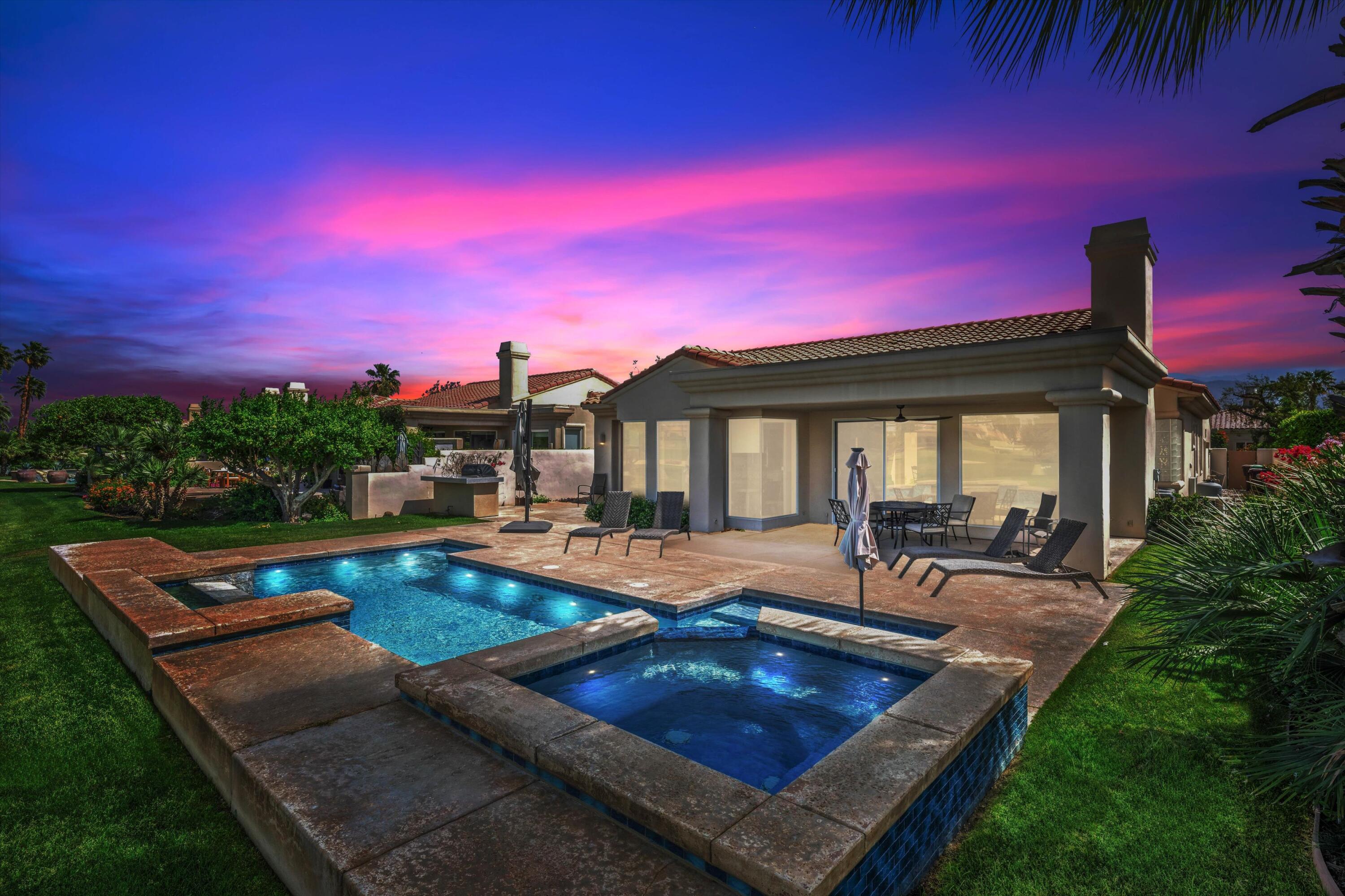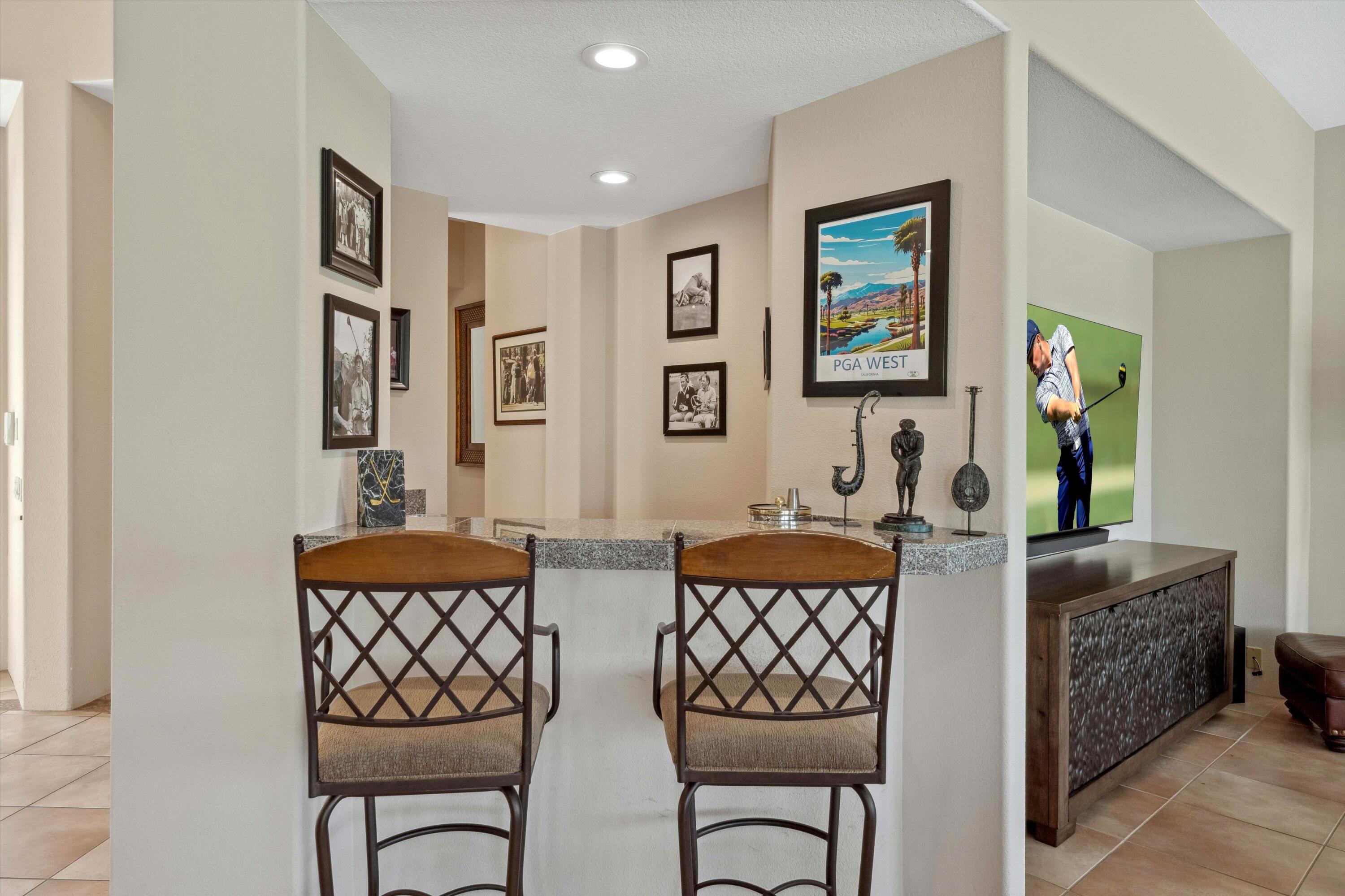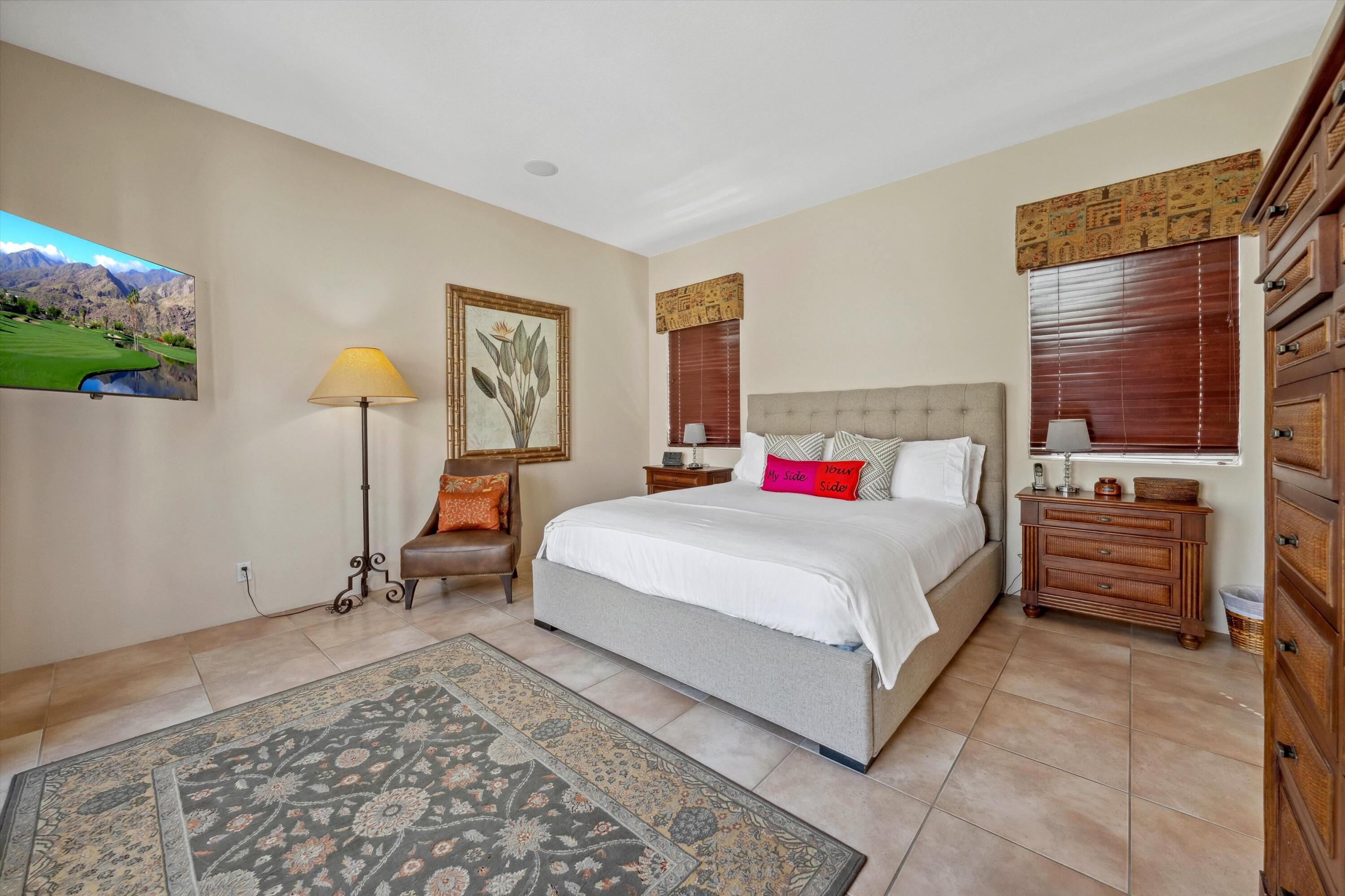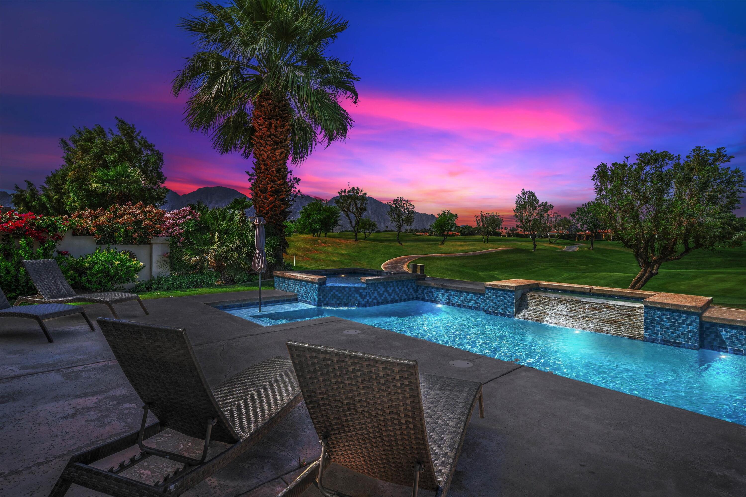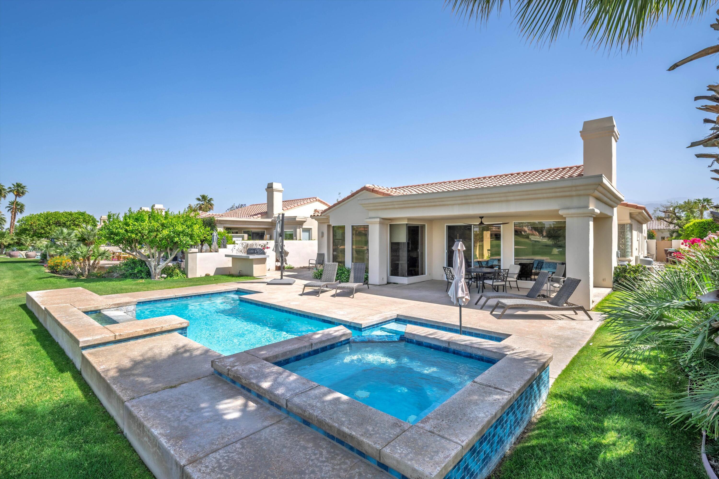 Located on the 14th green of the prestigious Private Tom Weiskopf Course at PGA West, this sought-after Ryder II home offers breathtaking views of the golf course and the stunning Santa Rosa Mountains. With 2,379 sq. ft. of open-concept living space, this beautifully maintained home features 3 bedrooms and 3 bathrooms, including a detached casita. Enjoy tile flooring throughout and an abundance of natural light. The kitchen is outfitted with new stainless steel appliances, and the backyard is made for entertaining with a built-in BBQ and a re-tiled pool and spa--all set against a spectacular mountain and fairway backdrop. A 2-car plus golf cart garage provides plenty of room for desert toys.Offered turnkey furnished and move-in ready, this home is ideal for full-time living, seasonal getaways, or as a fantastic rental opportunity ready to generate revenue. Close to the clubhouse, hiking and biking trails, world-class dining, golf, equestrian facilities, and the renowned Coachella and Stagecoach Festivals. Come see it for yourself--this is the perfect opportunity to own a beautiful home in PGA West!Interested in this Listing?