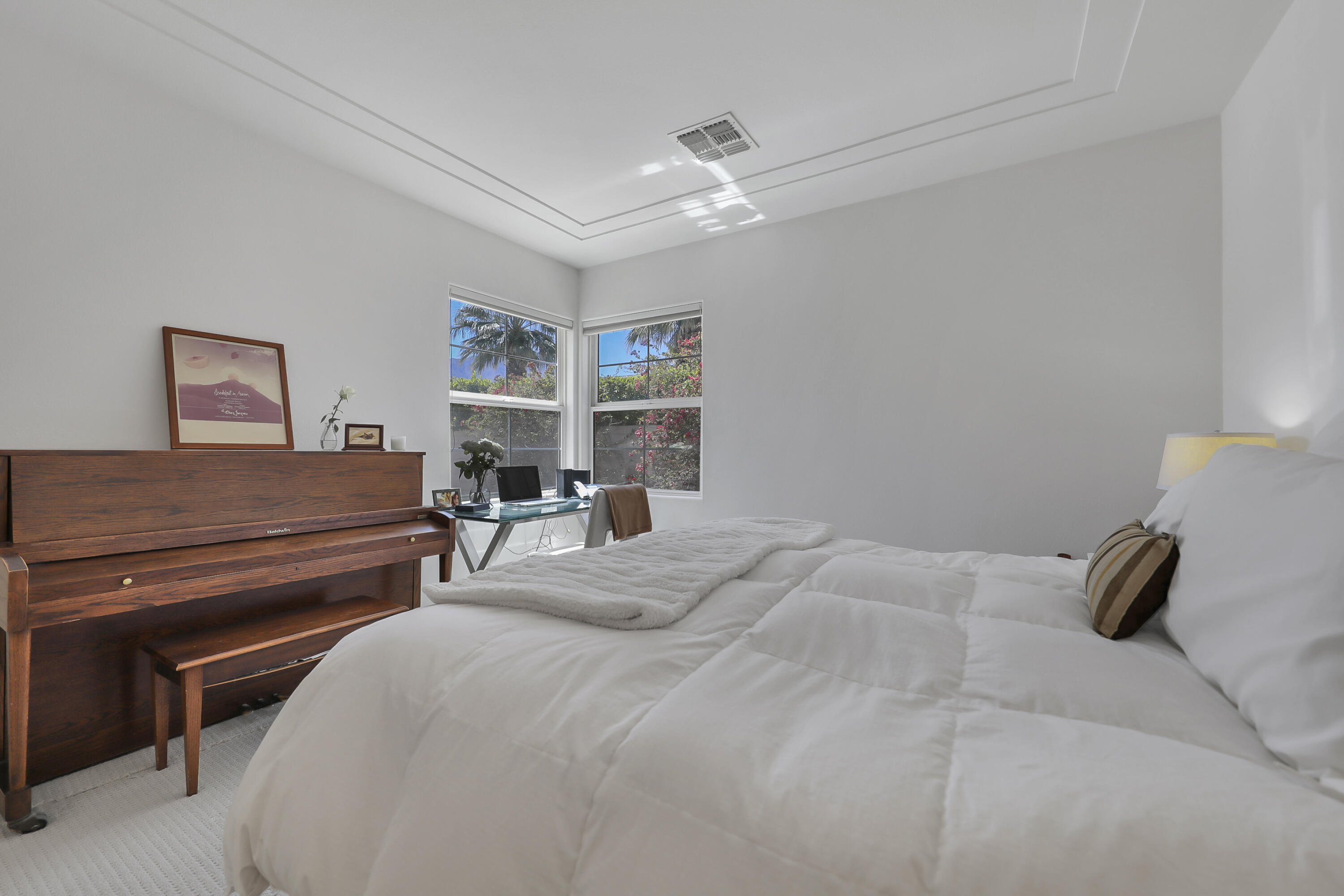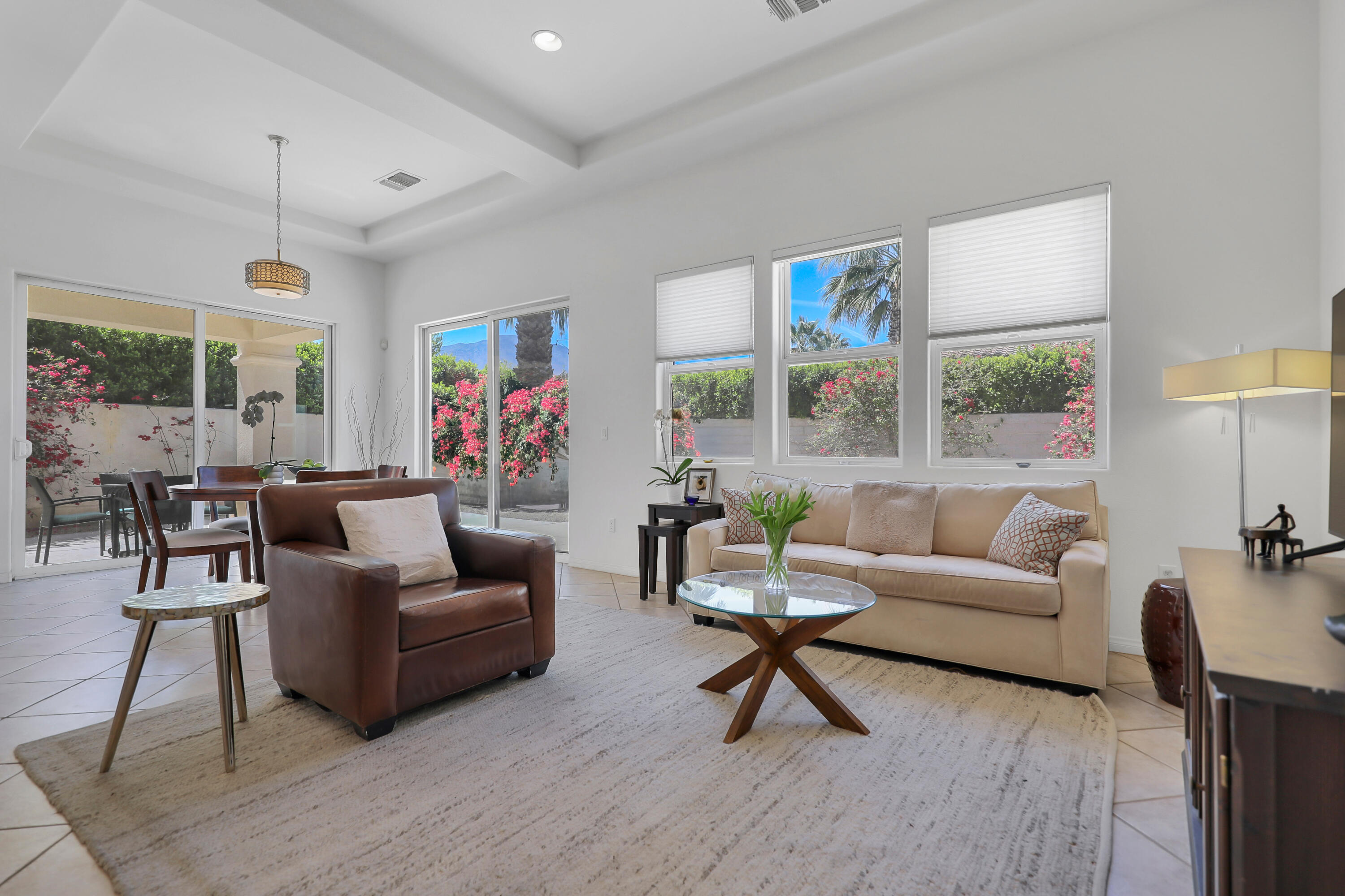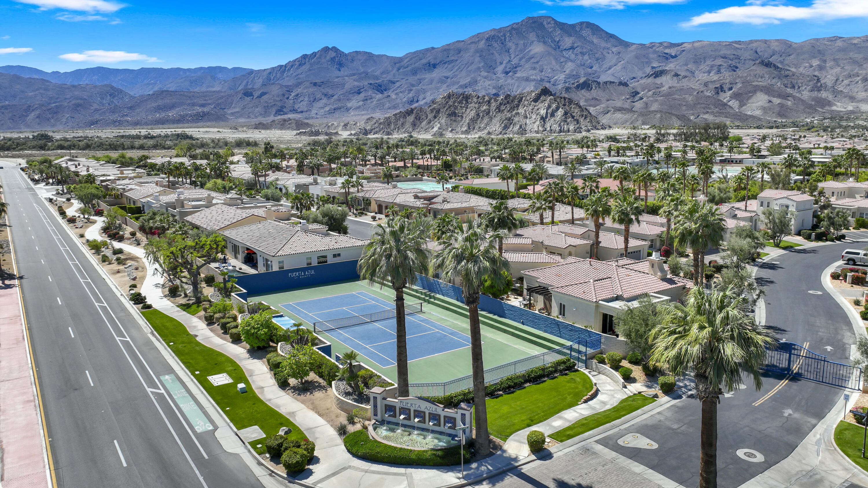 BIG PRICE adjustment! Open House this Saturday May 3rd, 11-2pm. Welcome to Puerta Azul, a premier gated community in the heart of La Quinta, where luxury meets convenience. Situated on one of the larger, more private lots, this stunning home offers an exceptional blend of comfort and elegance. It is also a prime location with rare southwest mountain views--one of only a handful of homes in the community with this incredible backdrop. Step inside to a light, bright living space enhanced by high 12-foot ceilings and an open-concept design. The home features two spacious primary suites: a private retreat with en-suite bathrooms, walk-in closets, soaking tubs, and dual sinks. The well-appointed kitchen boasts granite countertops, a breakfast bar, and a dining area, seamlessly flowing into the family room, complete with a cozy fireplace for cool desert evenings. Sliding glass doors lead to your expansive backyard oasis, featuring approximately 800 sq. ft. of hardscape, perfect for entertaining or relaxing. The unique lot size offers plenty of potential, including adding a private pool to create your desert retreat. Puerta Azul offers resort-style amenities, including two pools and spas, a fitness center, sports courts, a bocce ball court, and a clubhouse with billiards. With a low HOA of $405/month--still one of the best values in the area--landscaping and pools are maintained for you, ensuring a low-maintenance lifestyle. One of Puerta Azul's standout features is its exemption from short-term rental restrictions, making this home a fantastic investment opportunity. With its proximity to PGA West Golf, Coachella, Stagecoach, BNP Paribas Tennis, and The Shops at El Paseo, this home provides unparalleled access to the best of the desert. With only 128 homes and four distinct models, Puerta Azul is a sought-after community, and this property is one of its finest. Some furnishings can stay, making your move-in even easier. Don't miss this rare opportunity to own a luxury desInterested in this Listing?
