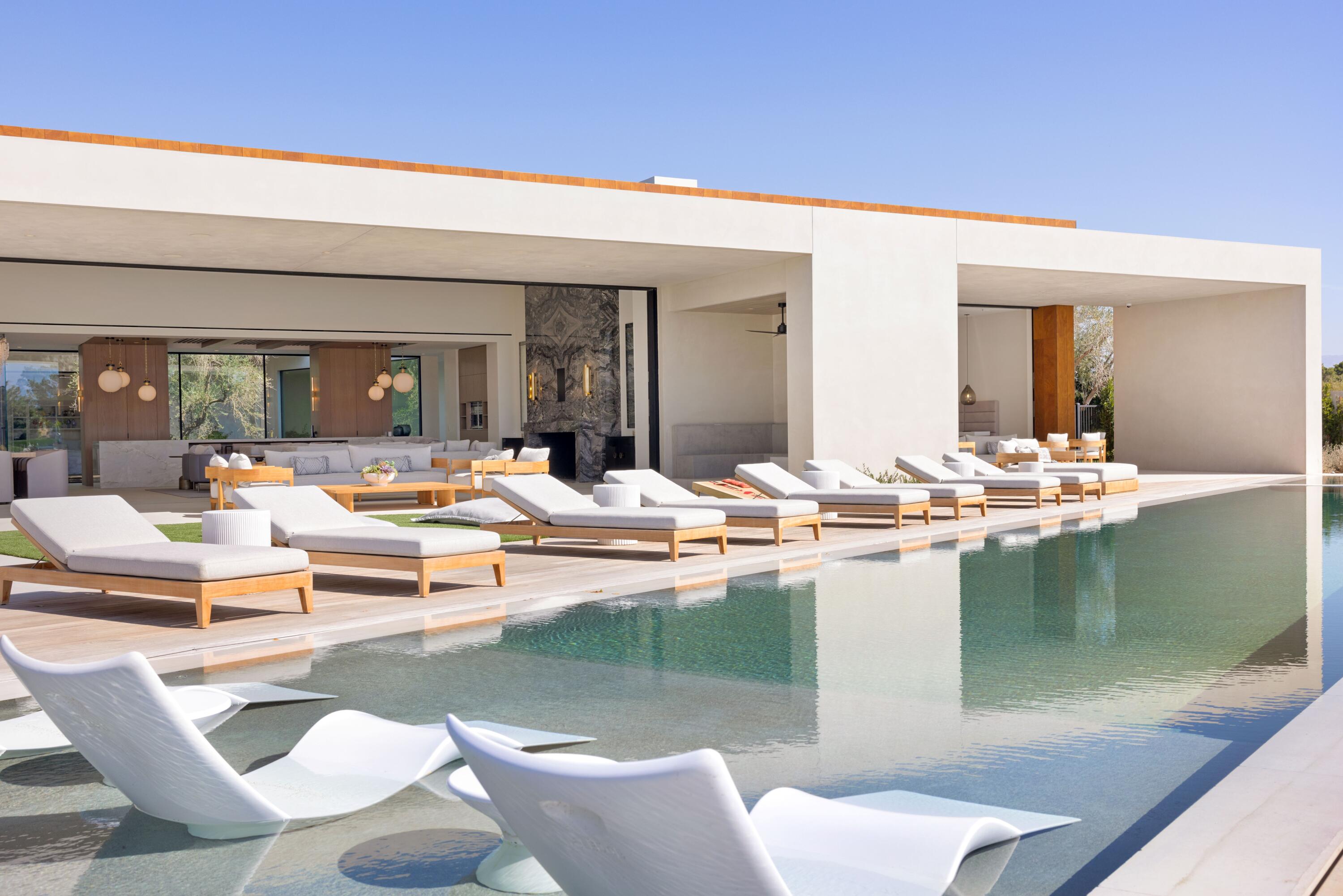 Experience the ultimate in luxury living at this stunning estate in the prestigious Madison Club. This exquisite property offers 7 bedrooms, 7.5 baths, and 10,046 square feet of living space, with panoramic views of the Santa Rosa Mountains and the 4th hole of the renowned Tom Fazio-designed golf course. This home is a masterpiece of design and craftsmanship, featuring top-of-the line finishes and amenities, such as a golf-simulator room, an office/home gym, art hallways, and a well-appointed bar and wine cellar. Enjoy breathtaking panoramic views by the cozy fireplace in the spacious great room or unwind in the opulent primary bedroom suite, complete with fireplace, sauna and steam room. The gourmet kitchen is a chef's dream, equipped with a prep kitchen and a large pantry. The floor to ceiling glass doors pocket away to create a seamless transition from indoor to outdoor living areas, where you can enjoy the outdoor fire features, the infinity edge pool, the spa, and the built-in barbecue. The separate living upstairs offers privacy and comfort, with two bedrooms, two baths, a living area, a kitchen, and an outdoor lounge area with a fireplace and endless 360-degree views of the desert. This home is a rare opportunity to own a piece of paradise in one of the most exclusive communities in the desert. Don't miss this chance to live your dream at the Madison Club.Interested in this Listing?
