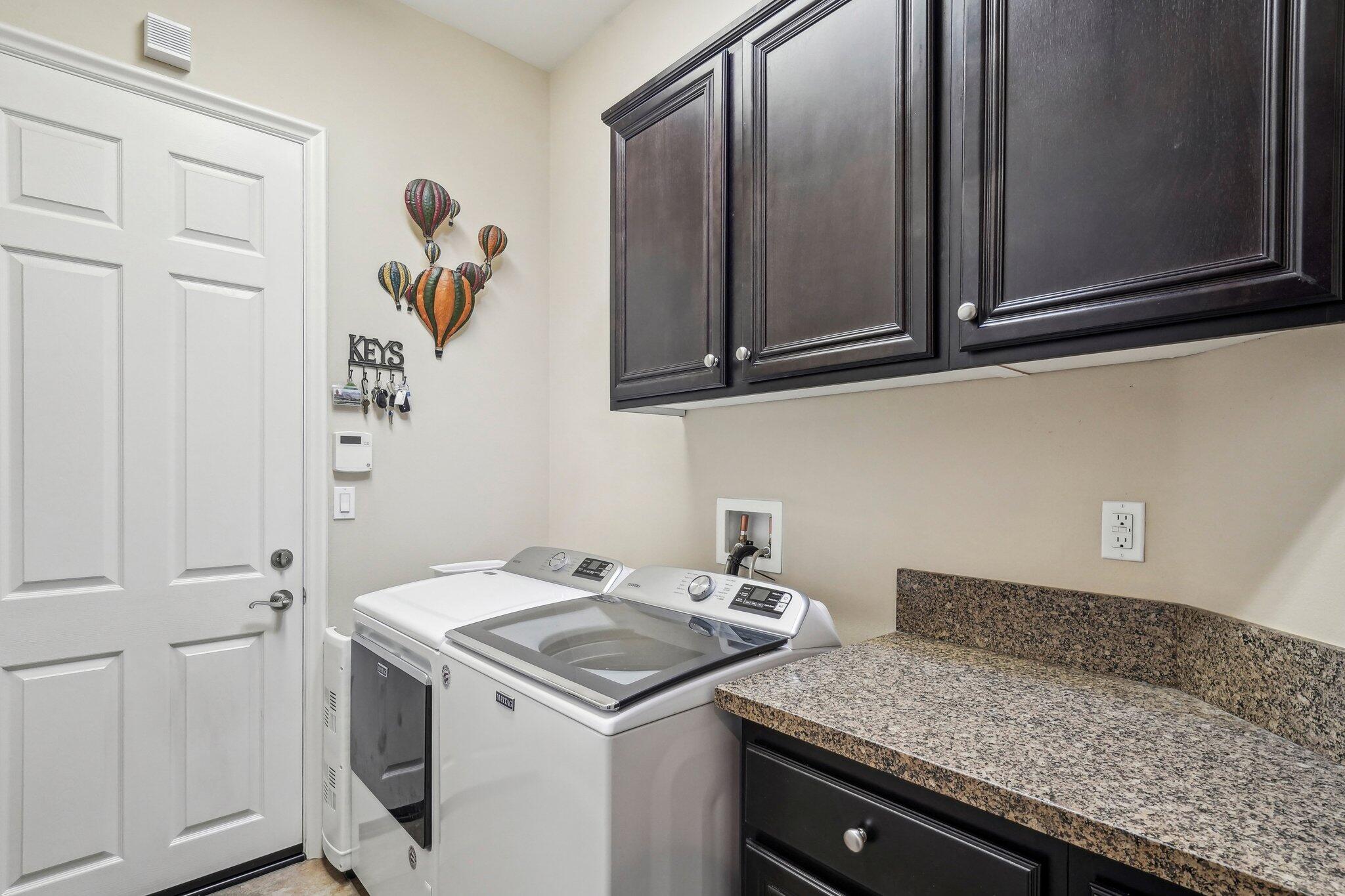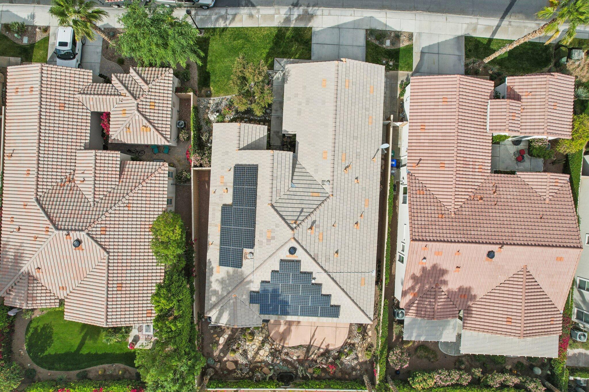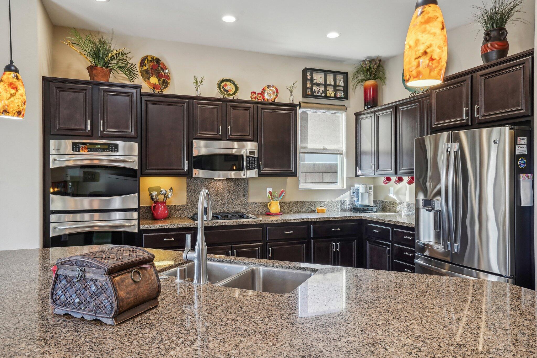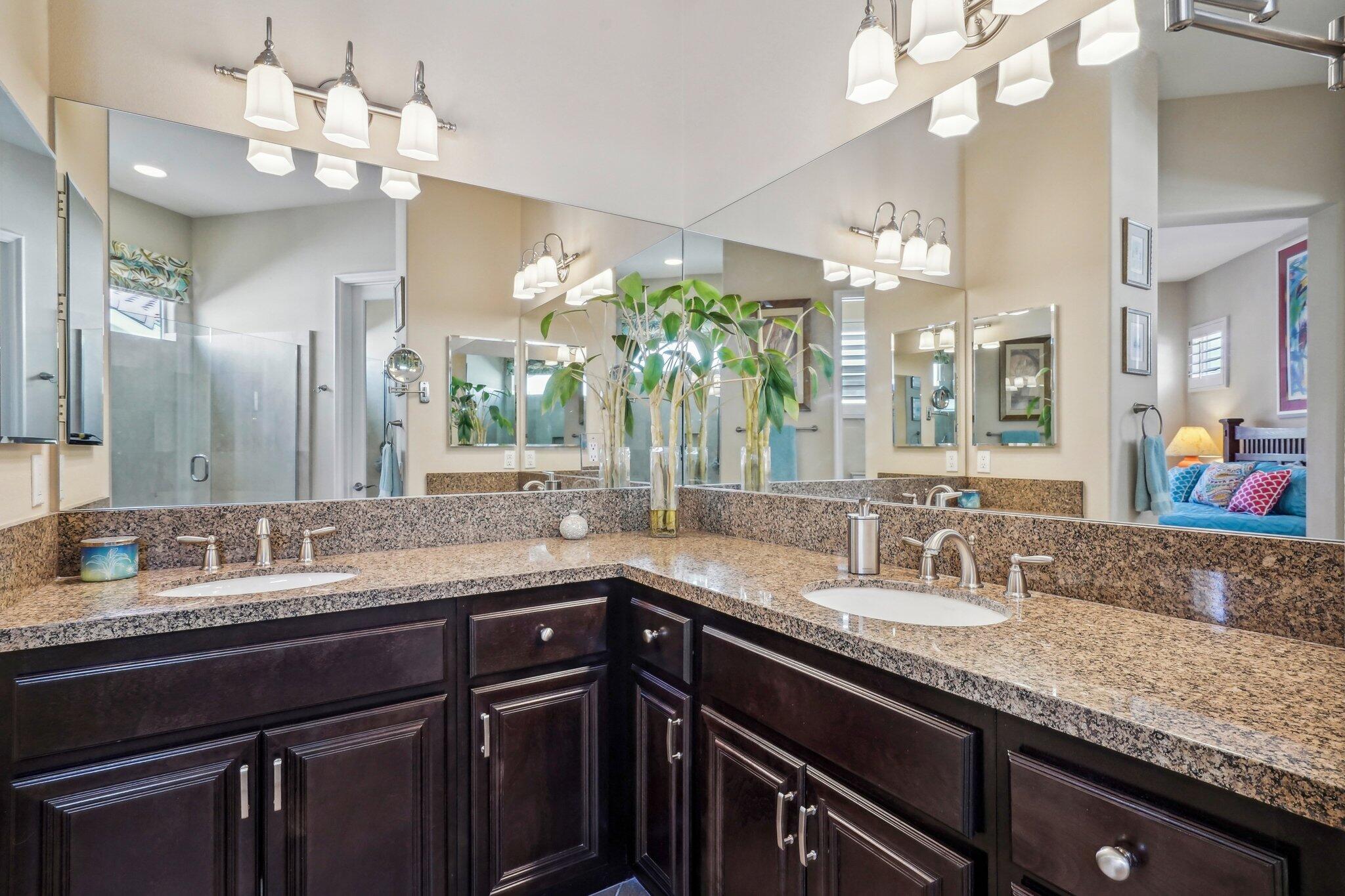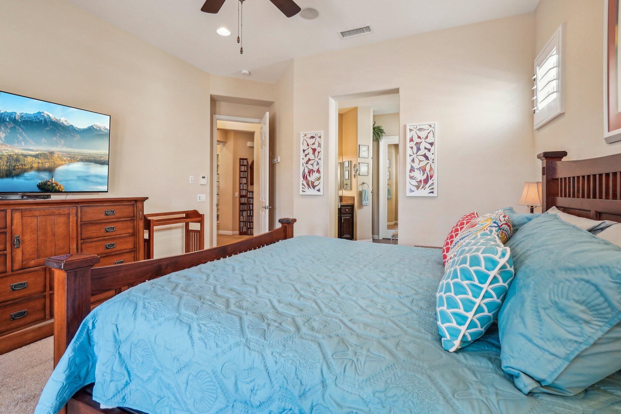 Nestled in the highly sought-after Trilogy La Quinta 55+ Resort Community, this stunning Caspian plan with a Tuscan elevation and energy-efficient solar system is the epitome of desert luxury. From its impressive curb appeal to its thoughtfully designed 1,775 sq. ft. interior, this 2-bedroom, 2-bath home with a versatile den/office offers the perfect blend of elegance and comfort. The inviting great room features a cozy tile-encased fireplace with gas logs, a TV/media niche, and surround sound, all complemented by custom window treatments and sleek tile flooring. The gourmet kitchen is a chef's delight, boasting slab granite counters, stainless appliances, double ovens, gas cooktop, espresso cabinetry with brushed nickel pulls, and a large prep island with bar seating and pendant lighting. The primary suite is a private sanctuary, with French doors leading to the backyard, a spa-inspired en suite with dual vanities, plantation shutters, slab counters, and a tiled shower enclosure. Thoughtfully separated guest quarters ensure privacy for visitors, with a nearby bath featuring travertine tile finishes. Step outside to your serene backyard oasis, complete with a covered patio, expansive concrete deck, and lush professional landscaping--the perfect setting for relaxing or entertaining under the desert skies. Don't forget the extra garage golf cart parking space!!Interested in this Listing?