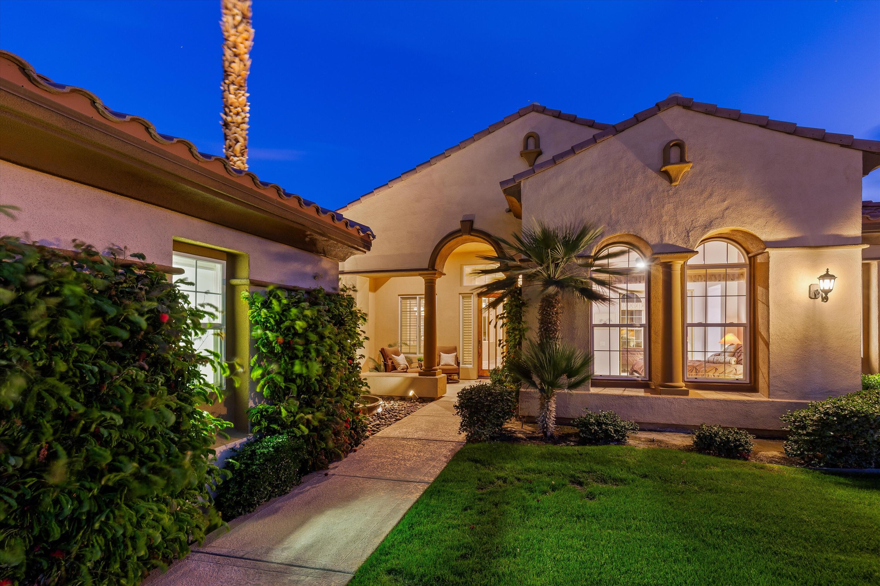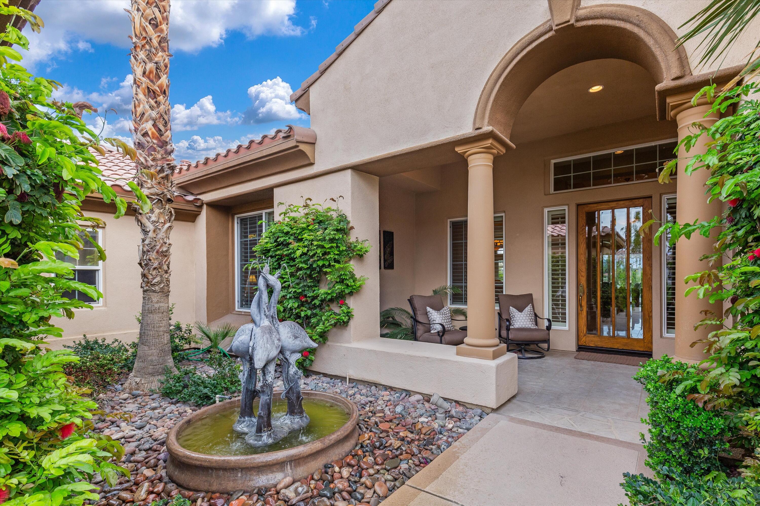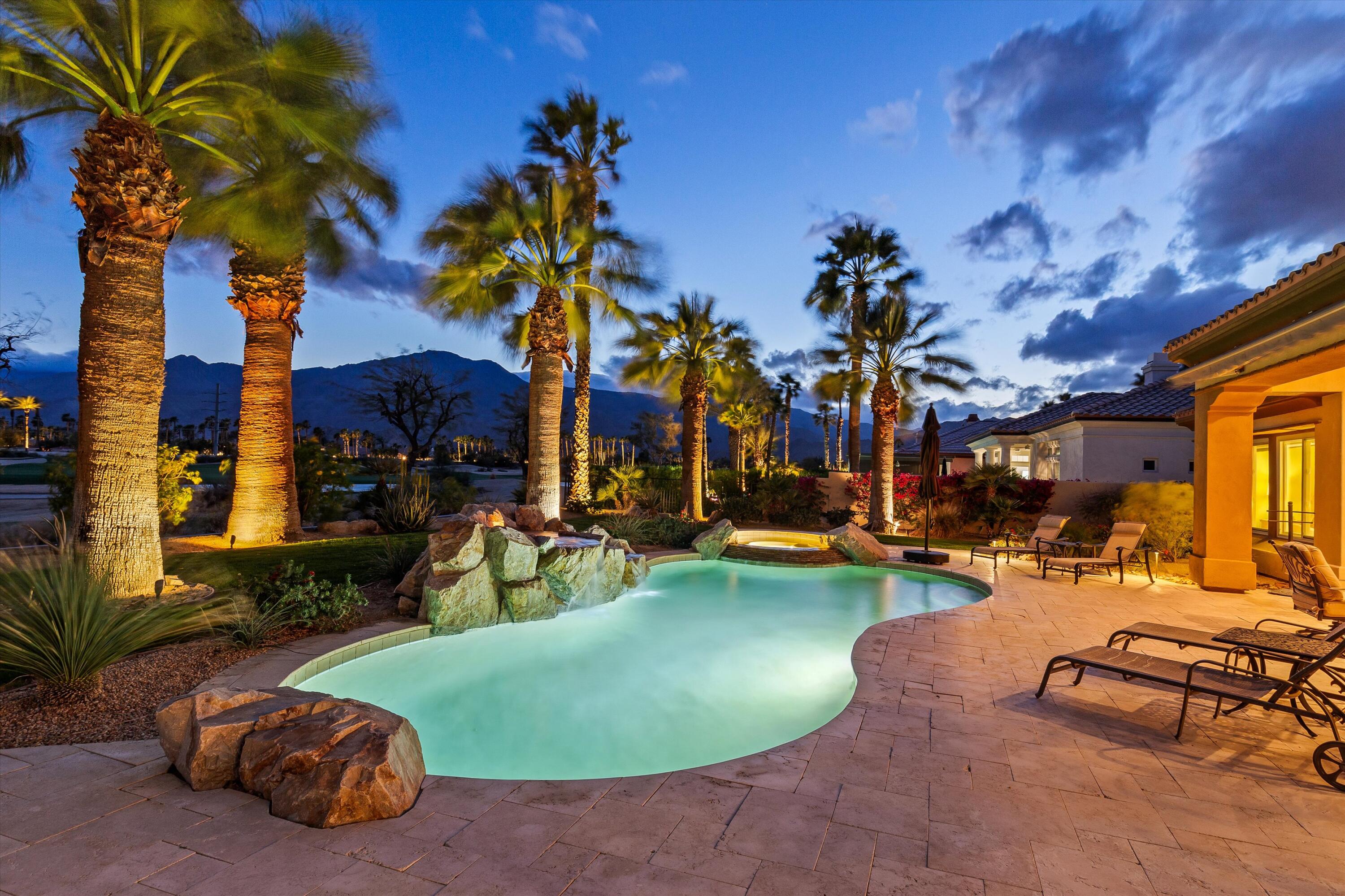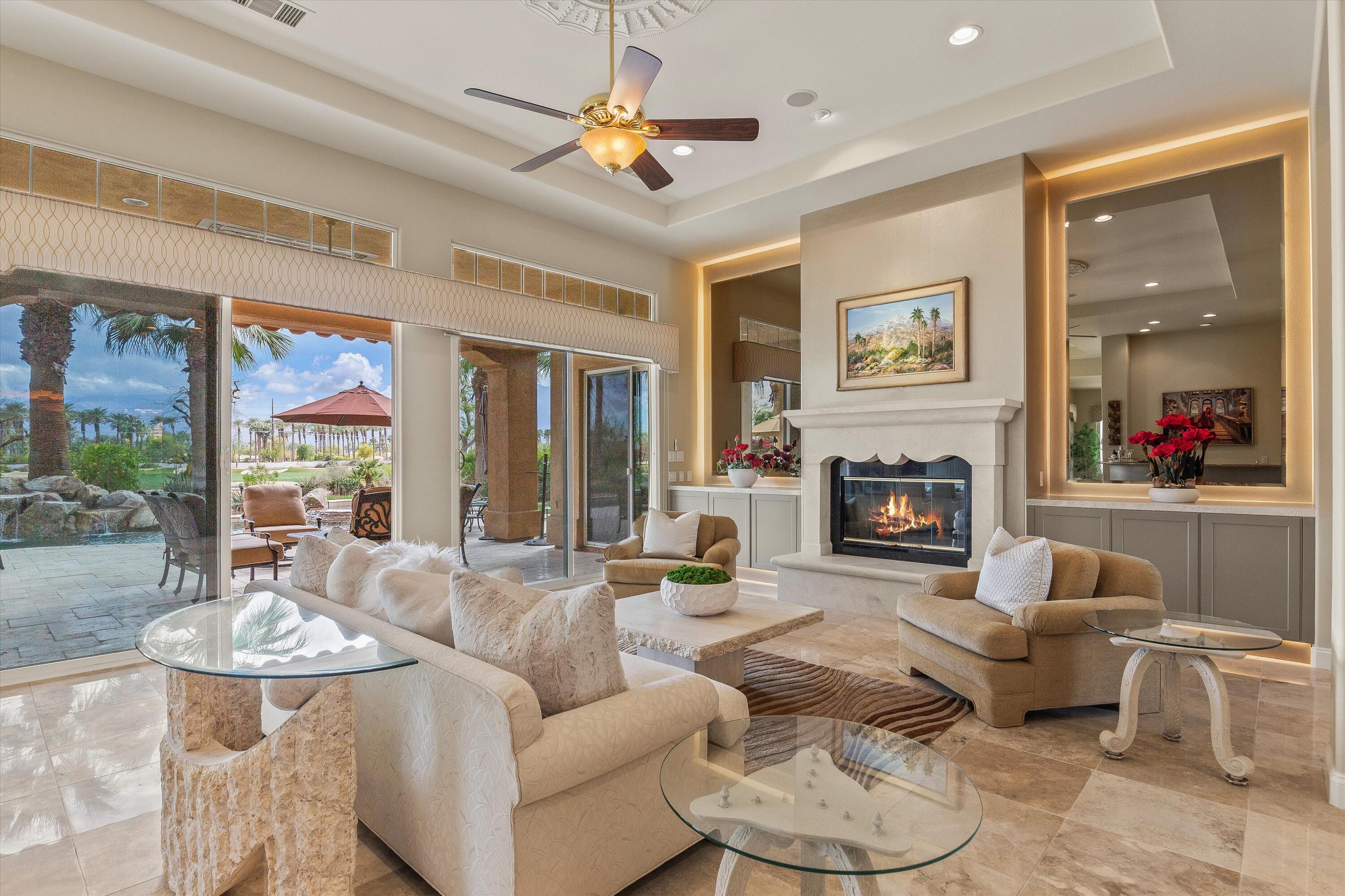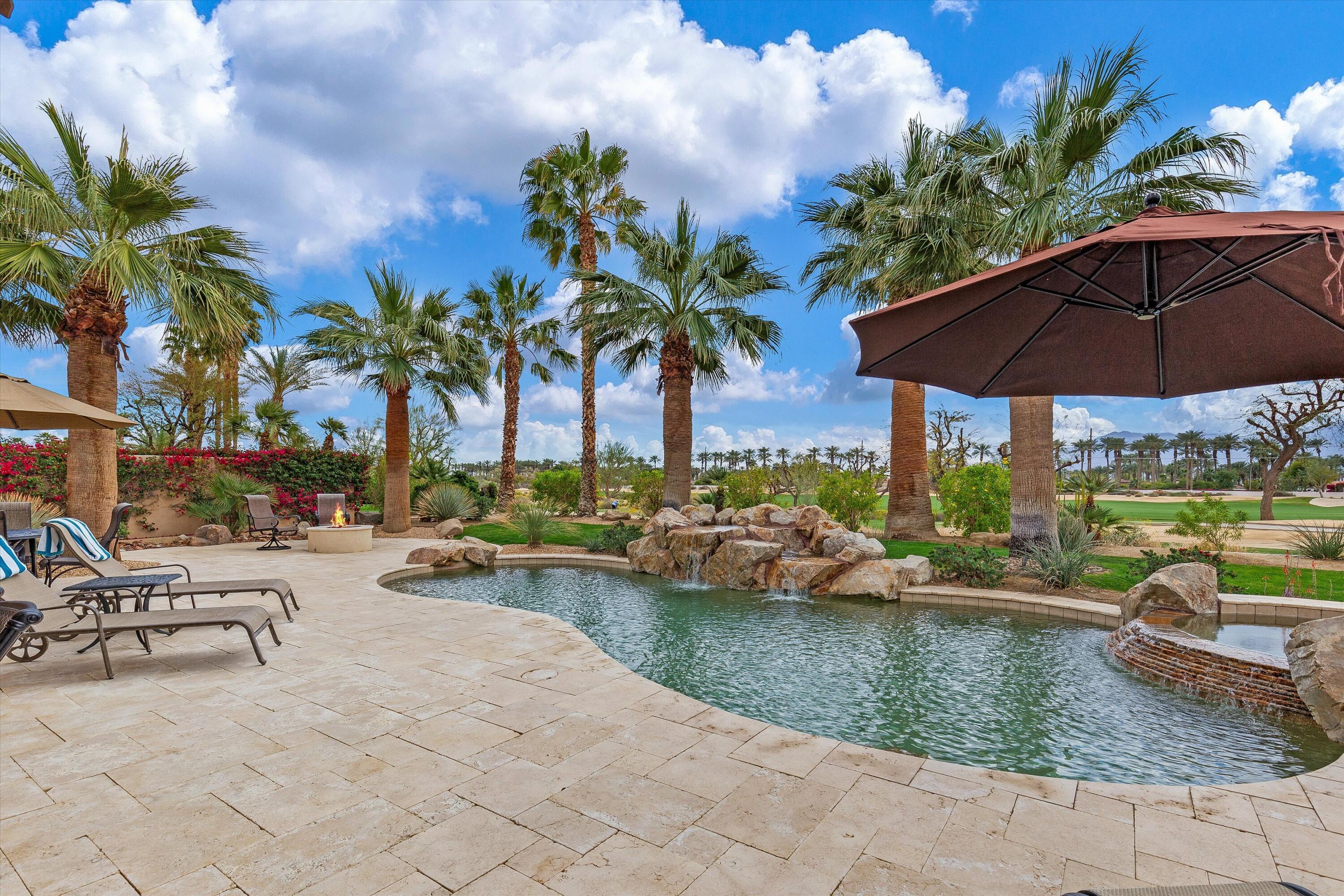 This specially cared for PGA West home sits on a secluded lot that measures over a third of an acre, and is situated ABOVE the 14th tee box with sweeping SOUTHERN double fairway VIEWS of the Greg Norman Golf Course and Santa Rosa Mountains. The backyard has been completely REMODELED with travertine stone decking, mature palms, native plants, pebble tech pool with waterfall, spa and two heaters, fire chat area, built-in barbecue, California room with recessed overhead, infra red heaters, automated awning and misters for YEAR-ROUND OUTDOOR ENJOYMENT. The Toll Brothers Mendocino plan is a spectacular home that begins with a welcoming porch and calming fountain leading into a grand foyer of polished travertine. Its unique floor plan feels open and spacious with its 12' high ceilings, offering VIEWS out to the yard and pool, and flows easily from one space to the next: A formal dining area with a dramatic 20' high skylight, an inviting living room anchored by a grand fireplace, an entertainer's wet bar with ample seating, a casual lounge area with built in book case and TV, and of course, a gourmet kitchen with island, walk-in pantry, and breakfast area. The primary suite also overlooks the pool and views of the golf course and has its own backyard access. It includes an en suite bath featuring a luxurious Roman therapeutic whirlpool tub, separate shower and dual vanities, plus walk in closet with built-ins. There is a 2-car garage plus adjacent golf cart garage so you can easily commute to all 6 world-renowned golf courses within the community. HOA includes 24-hour attended security gate, front & backyard landscaping and water, front yard lighting, expanded cable & Internet package.Interested in this Listing?