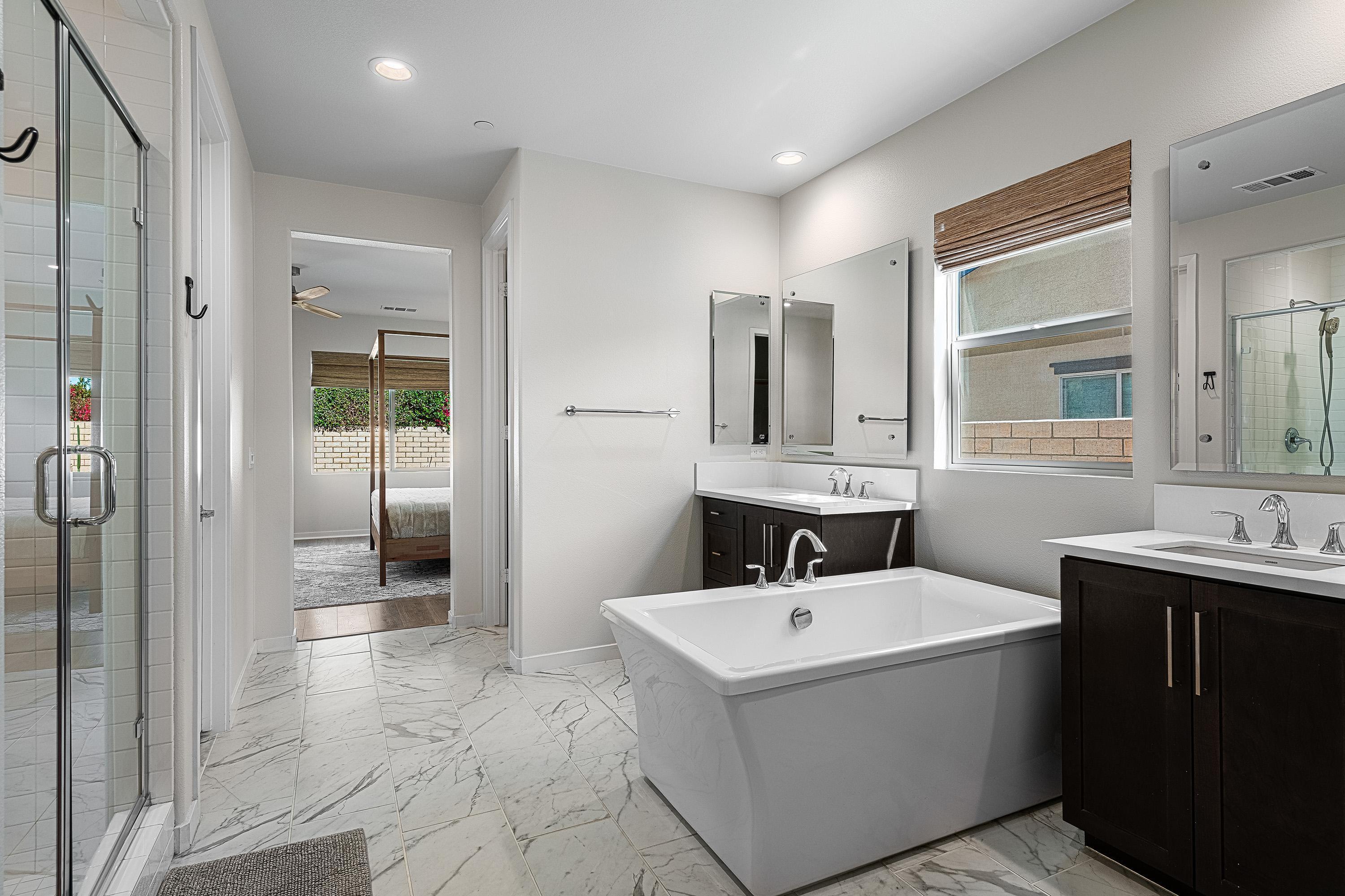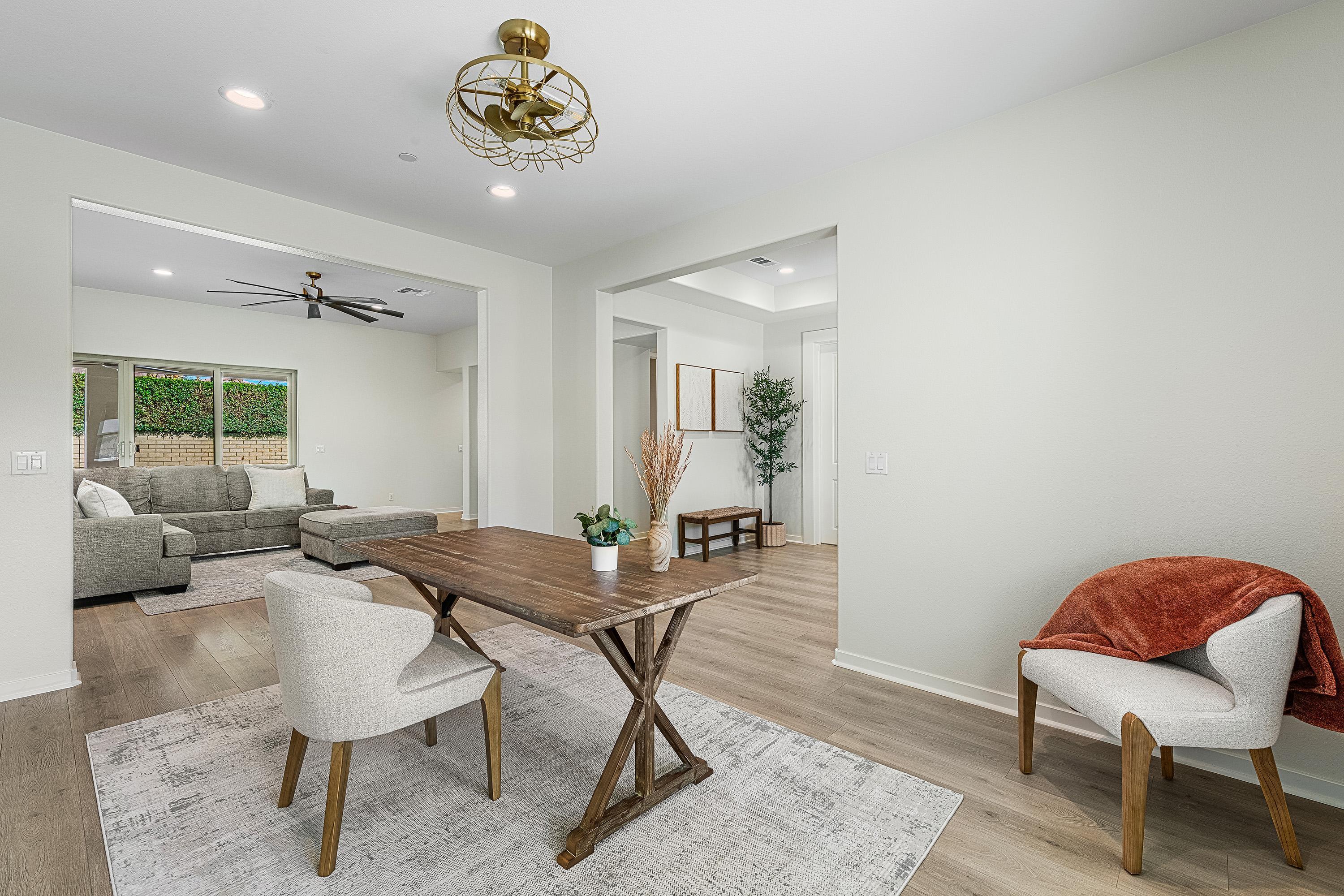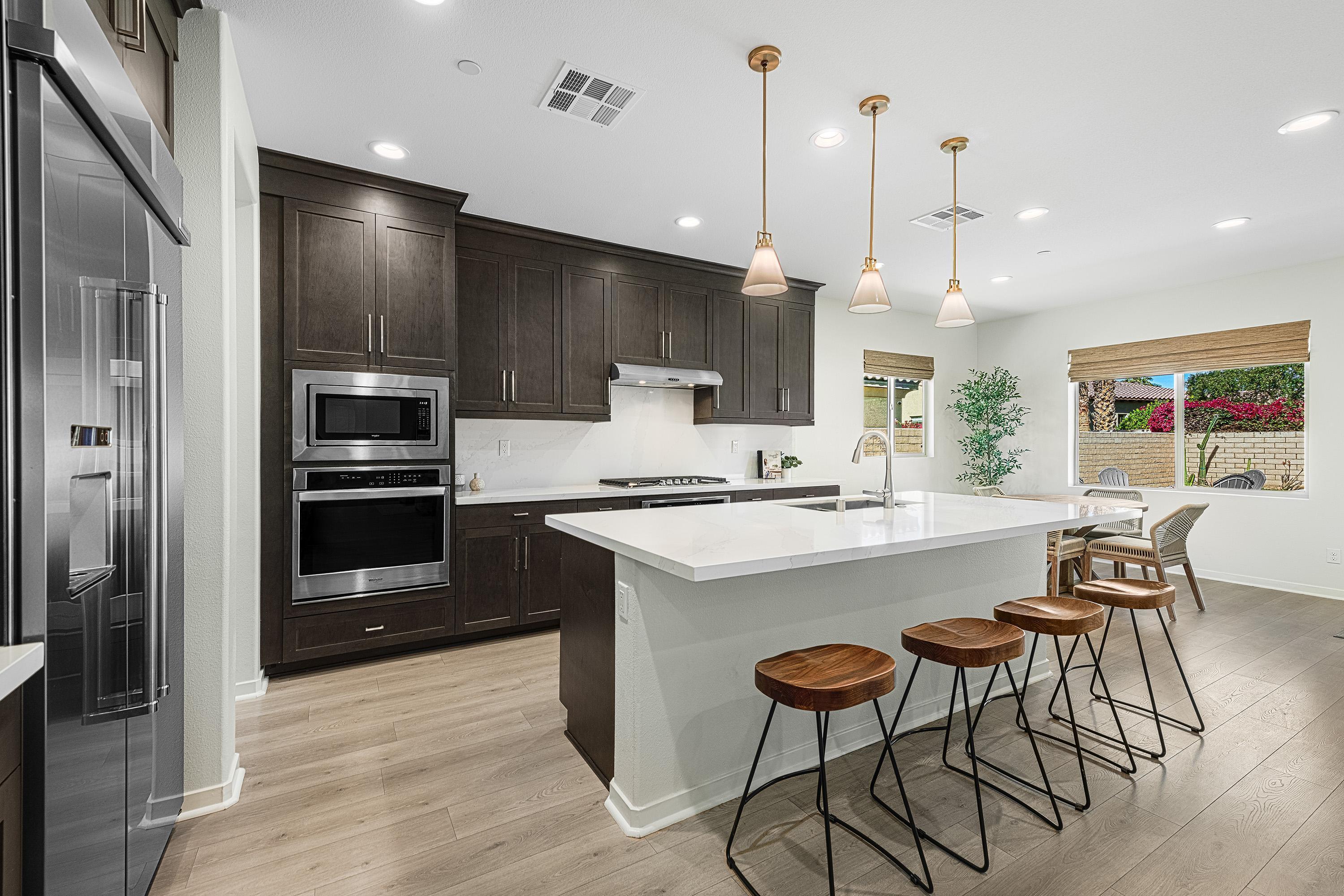 Discover the perfect blend of luxury and comfort in this stunning 4-bedroom, 2.5-bathroom smart home nestled on a quiet cul-de-sac in south La Quinta. Designed for modern living, this home is offered furnished and boasts an open floor concept that seamlessly connects the living, dining, and kitchen spaces. The gourmet kitchen is a chef's dream, featuring a large island, quartz countertops, stainless steel appliances, a breakfast nook, and a walk-in pantry--all framed by elegant luxury vinyl plank flooring throughout the home. The bathrooms feature stylish tile flooring, while the primary bath offers a relaxing soaking tub and dual walk-in closets, adding a touch of spa-like luxury. With ample storage throughout, you'll have plenty of space to keep everything organized. Step outside to your private backyard retreat, complete with a sparkling pool and spa, covered patio, and plenty of space for entertaining or unwinding under the desert sky. The charming front courtyard adds an inviting touch to this already exceptional property. With smart home features for effortless convenience and solar panels for energy efficiency, this La Quinta gem is ready to be your new sanctuary.Interested in this Listing?
